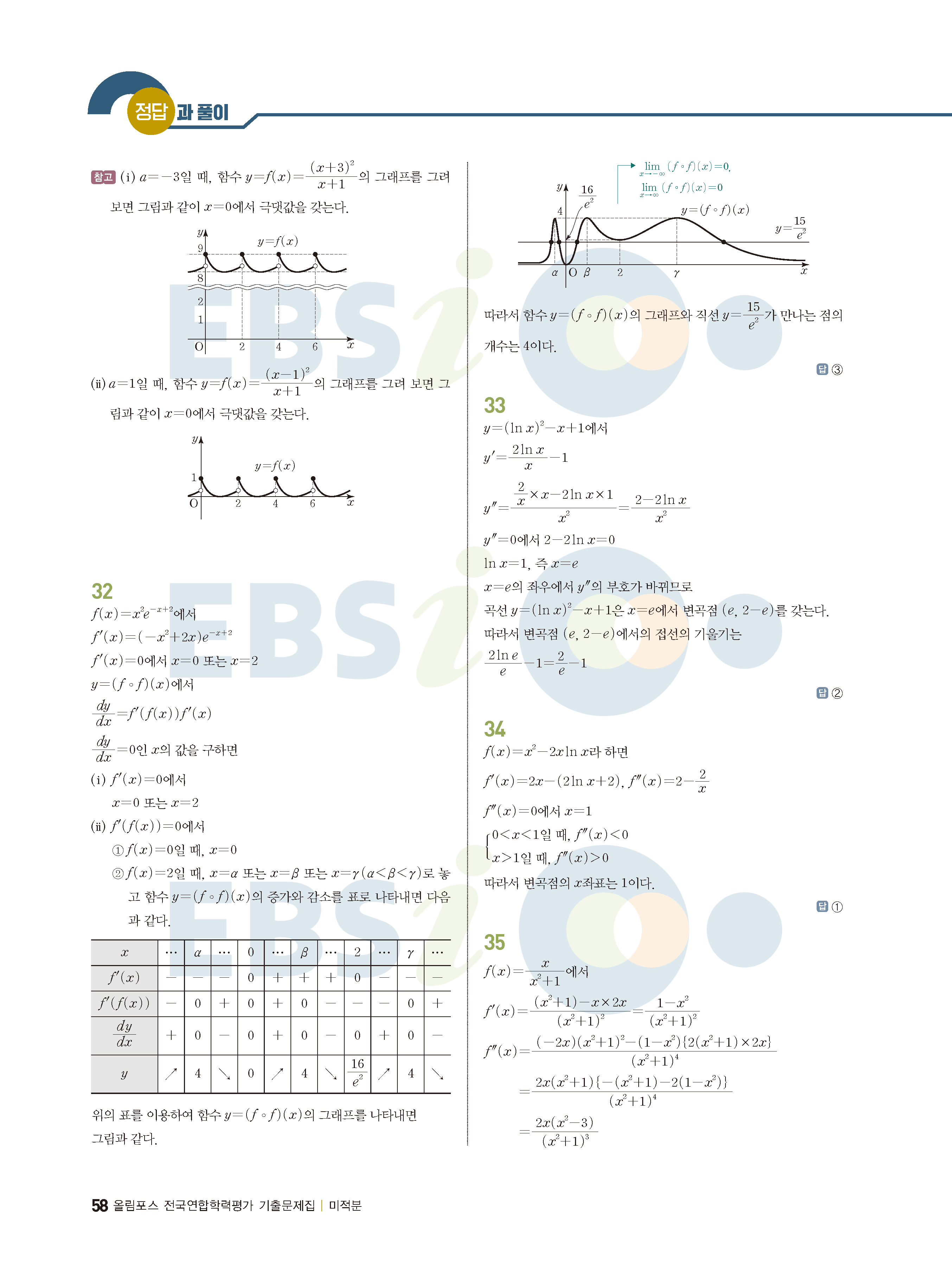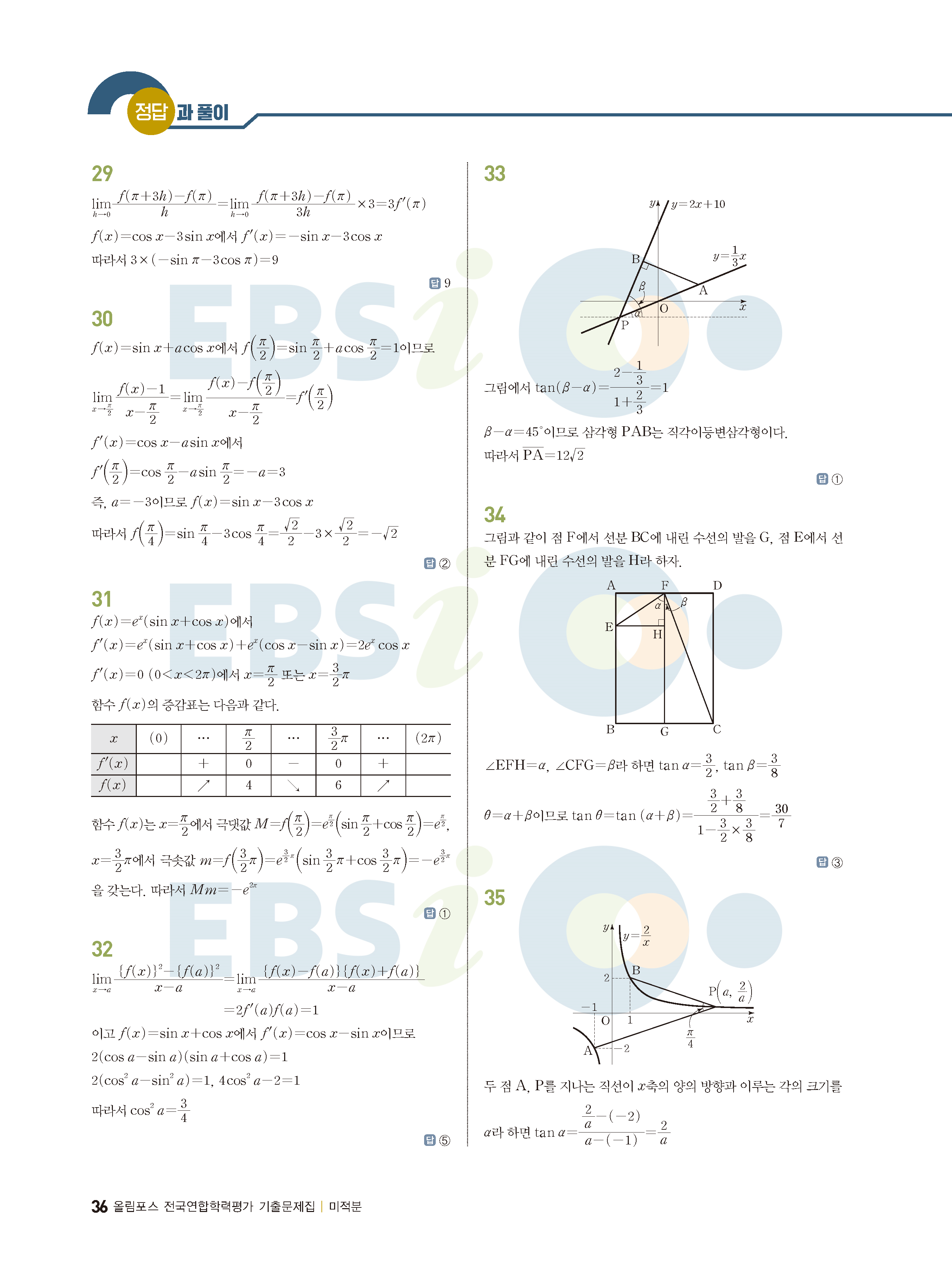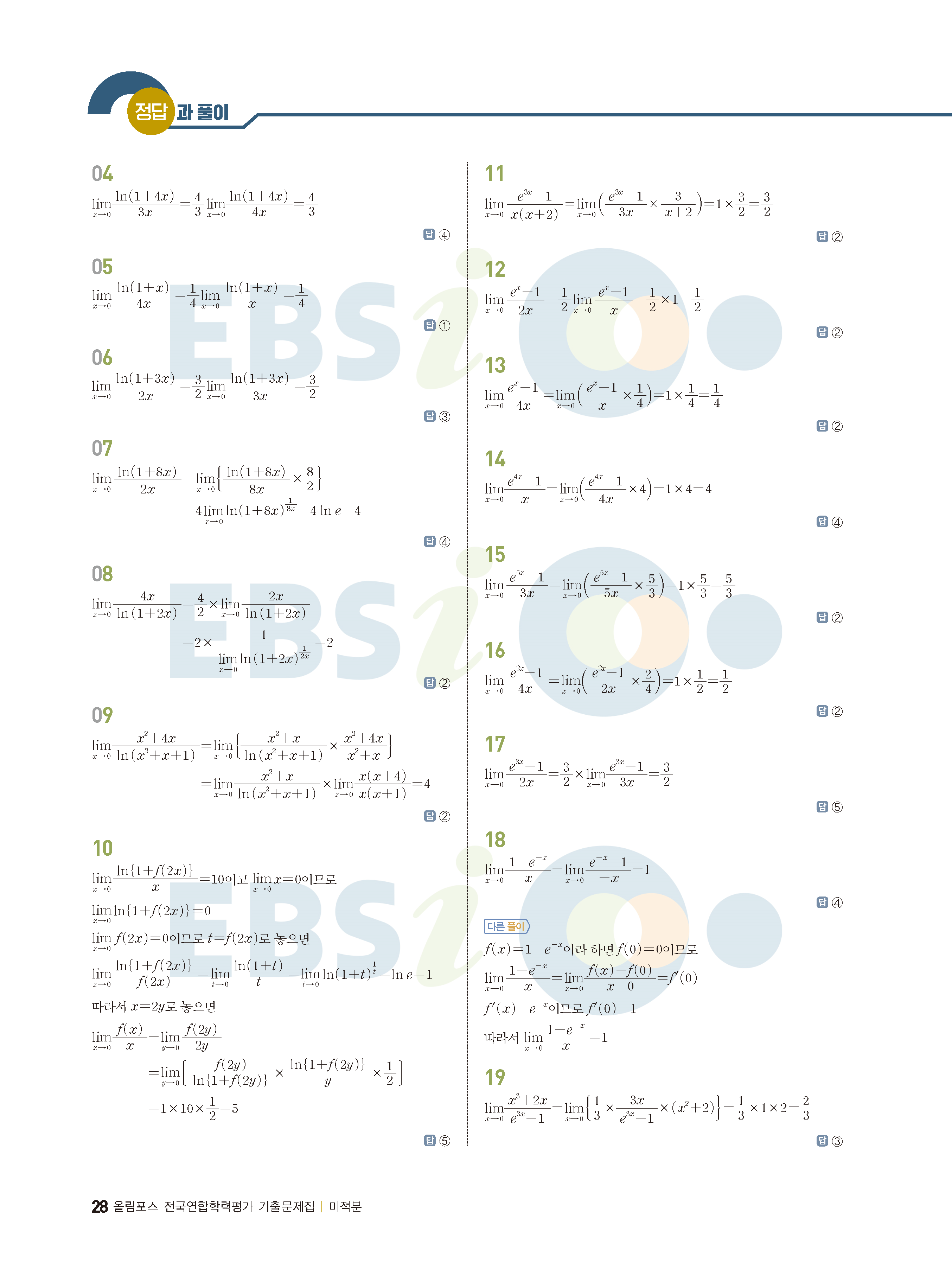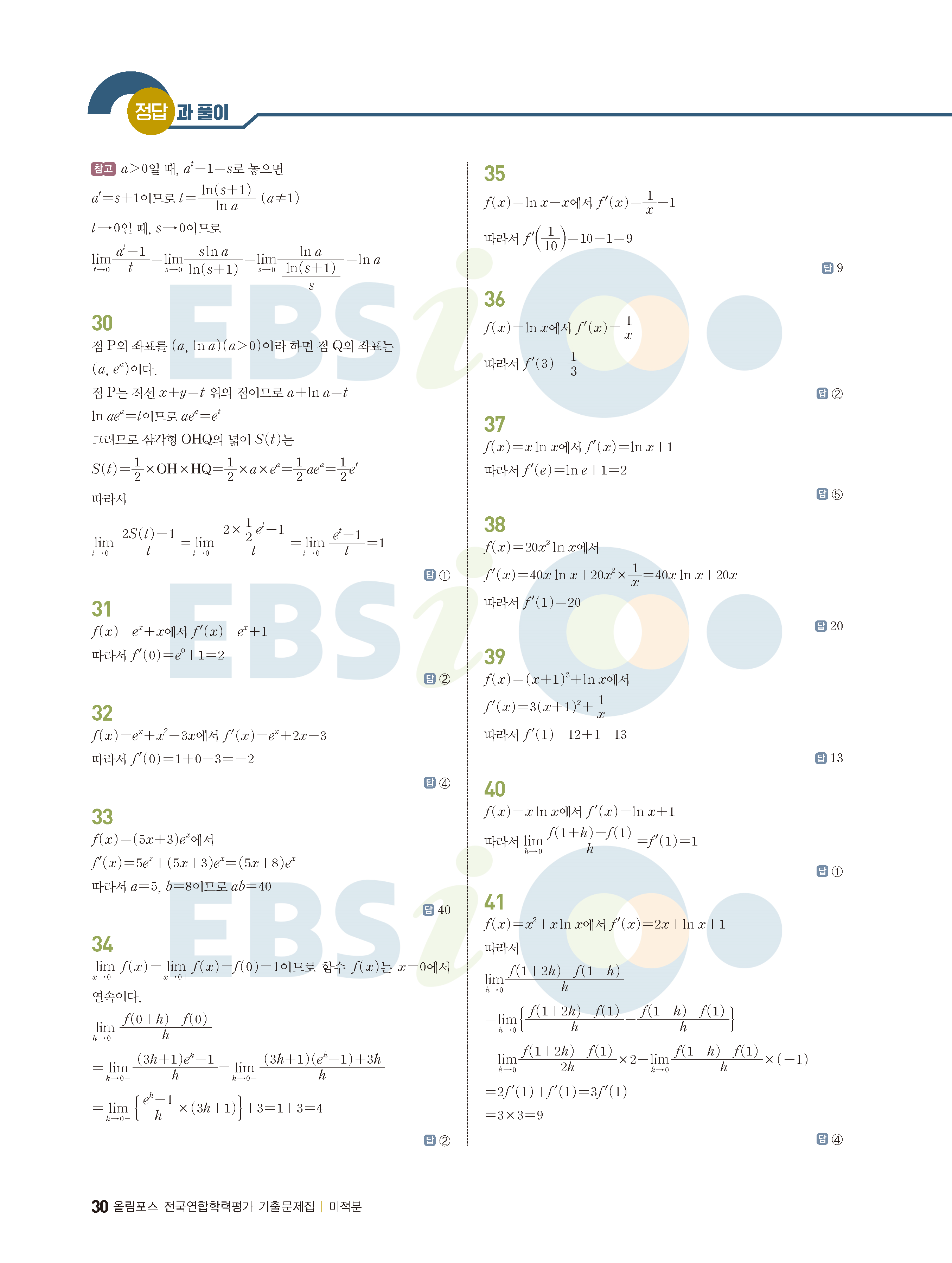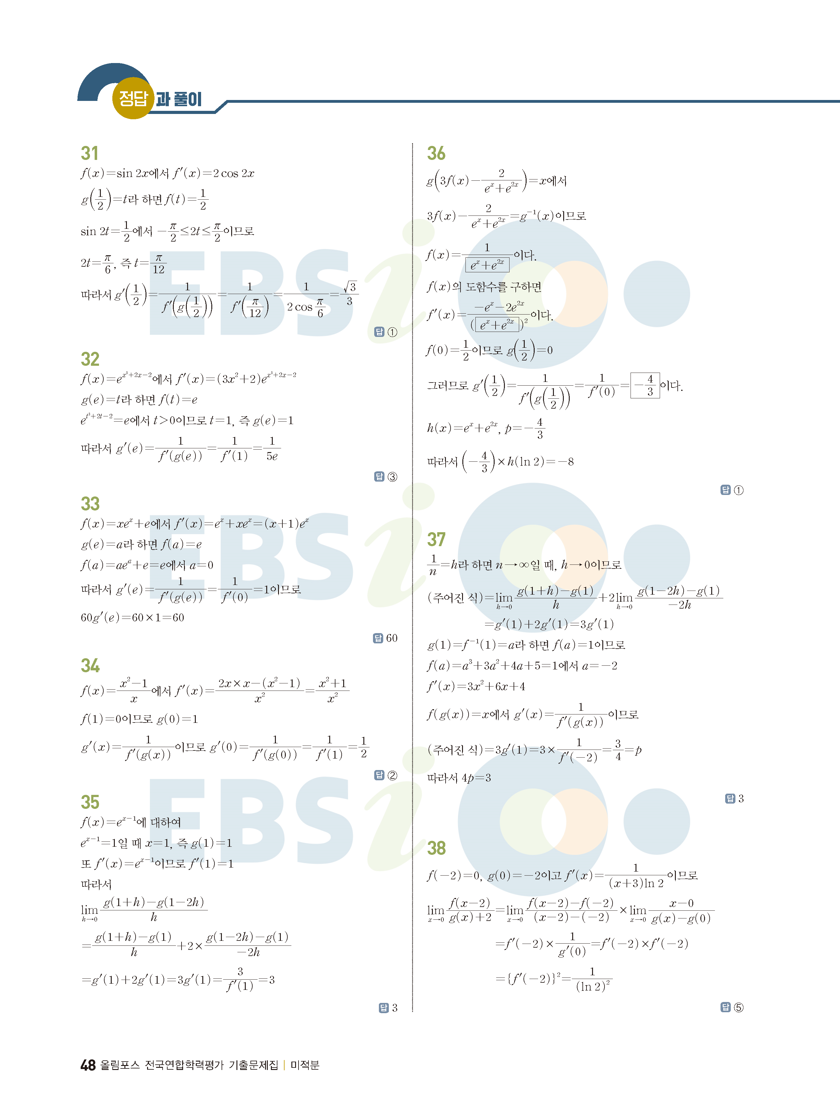 ebs 올림포스 기출문제집 미적분 답지 해설지 바로보는 사진답지 빠른답지 모바일최적화