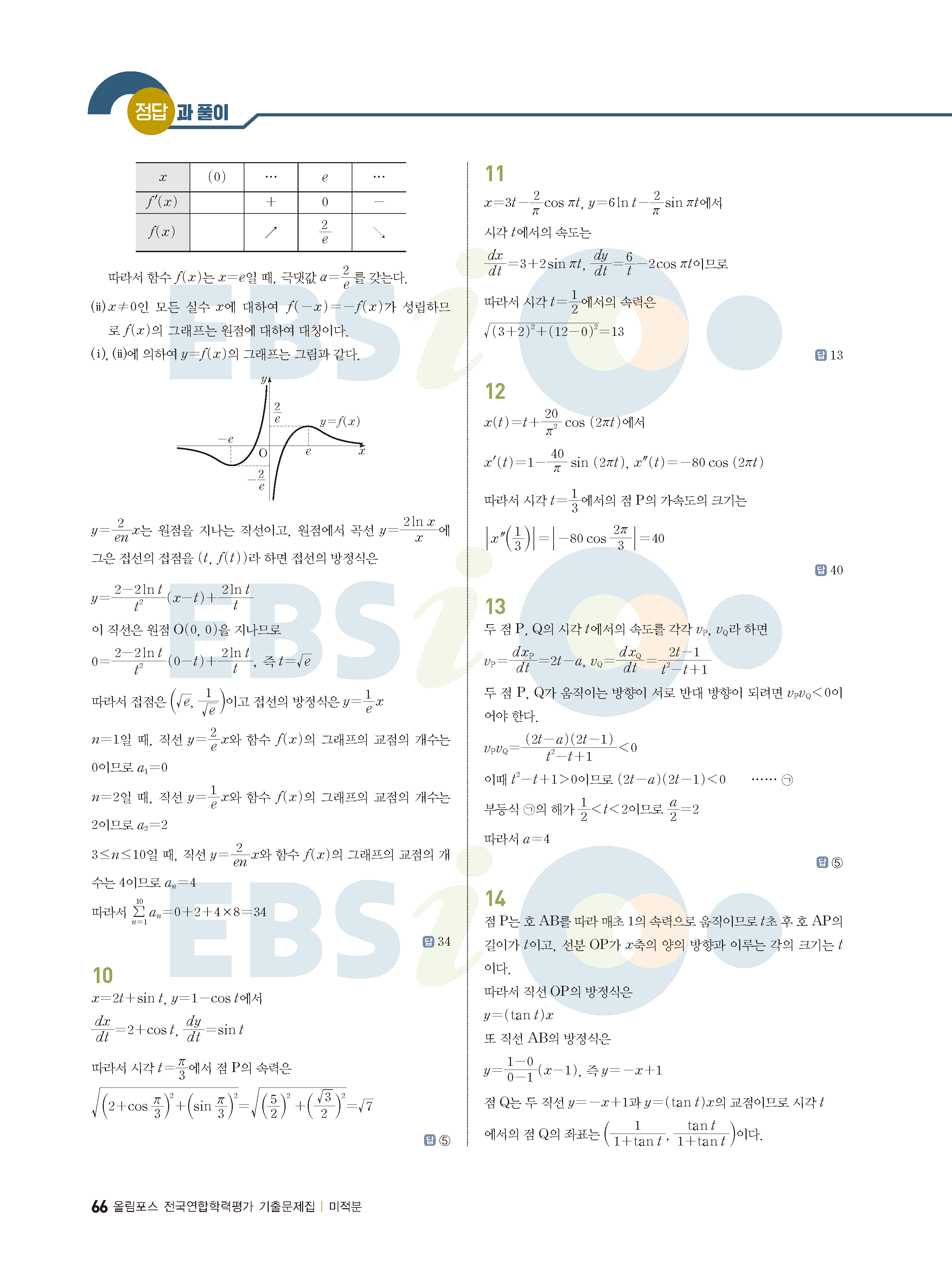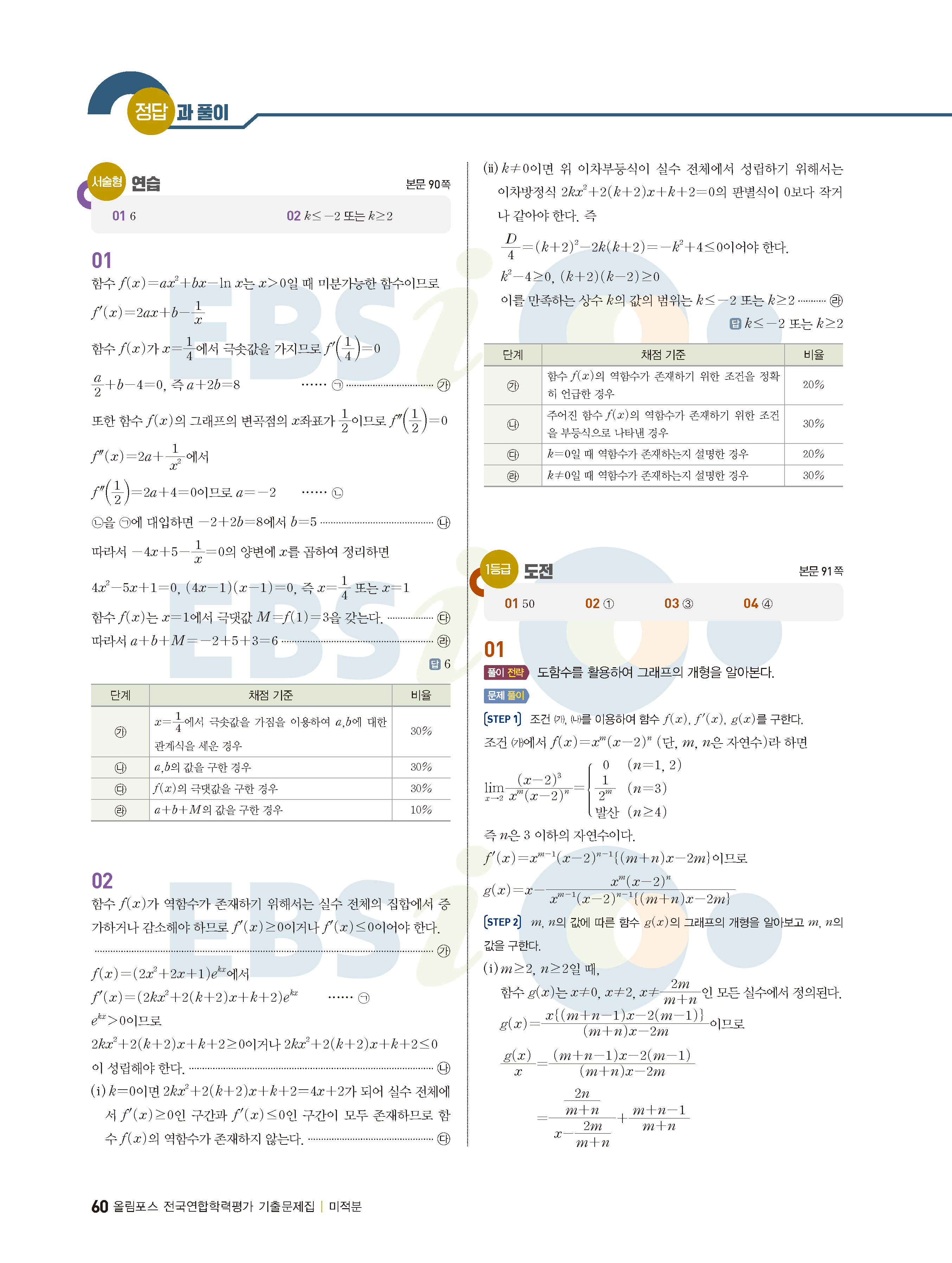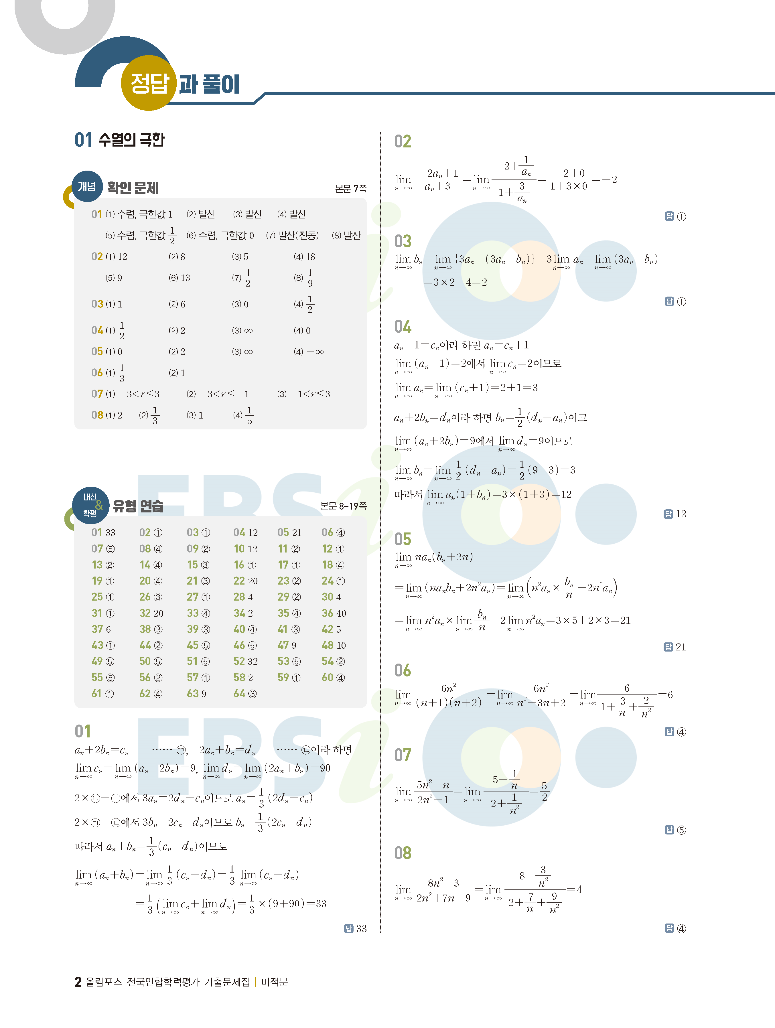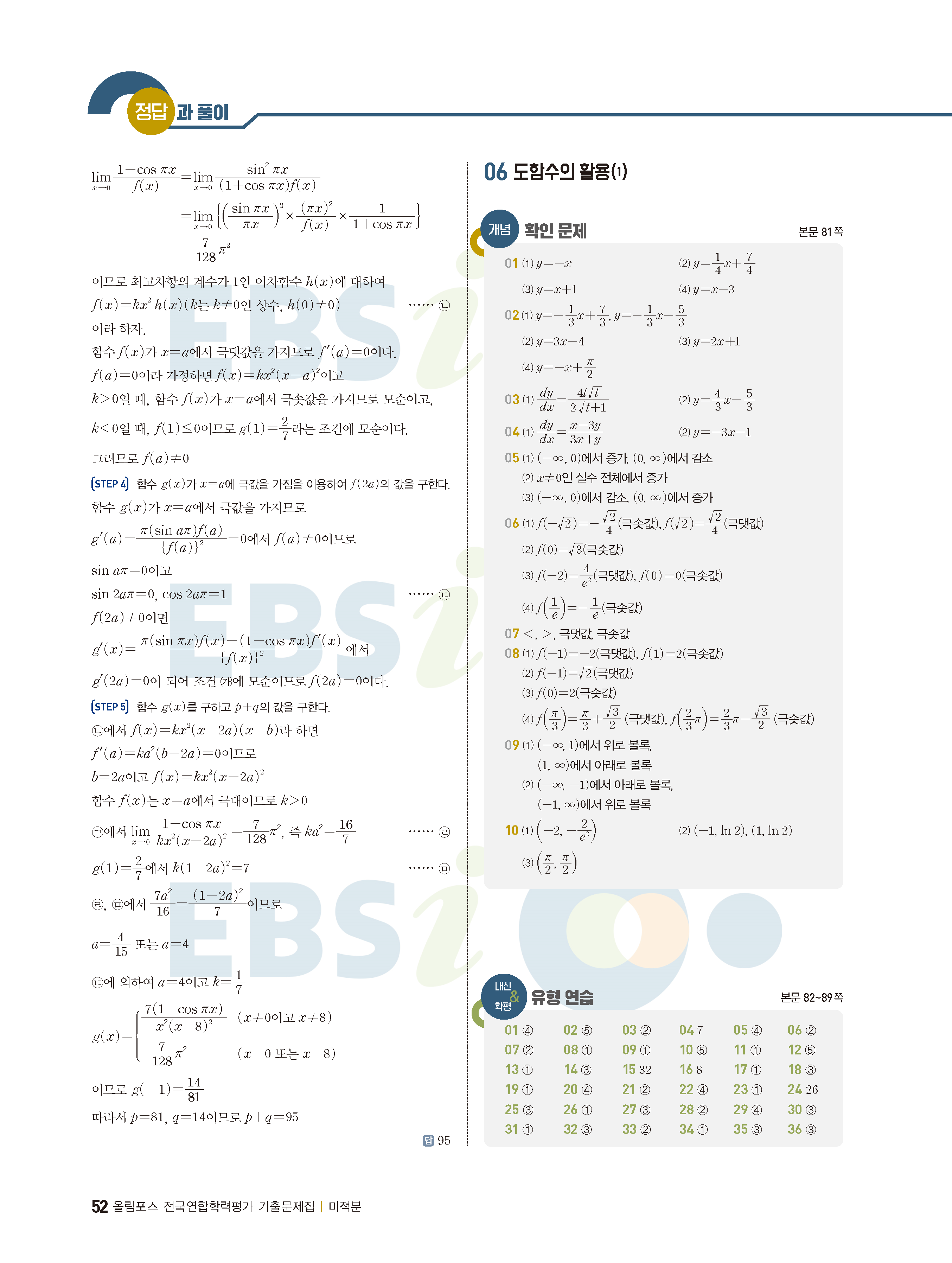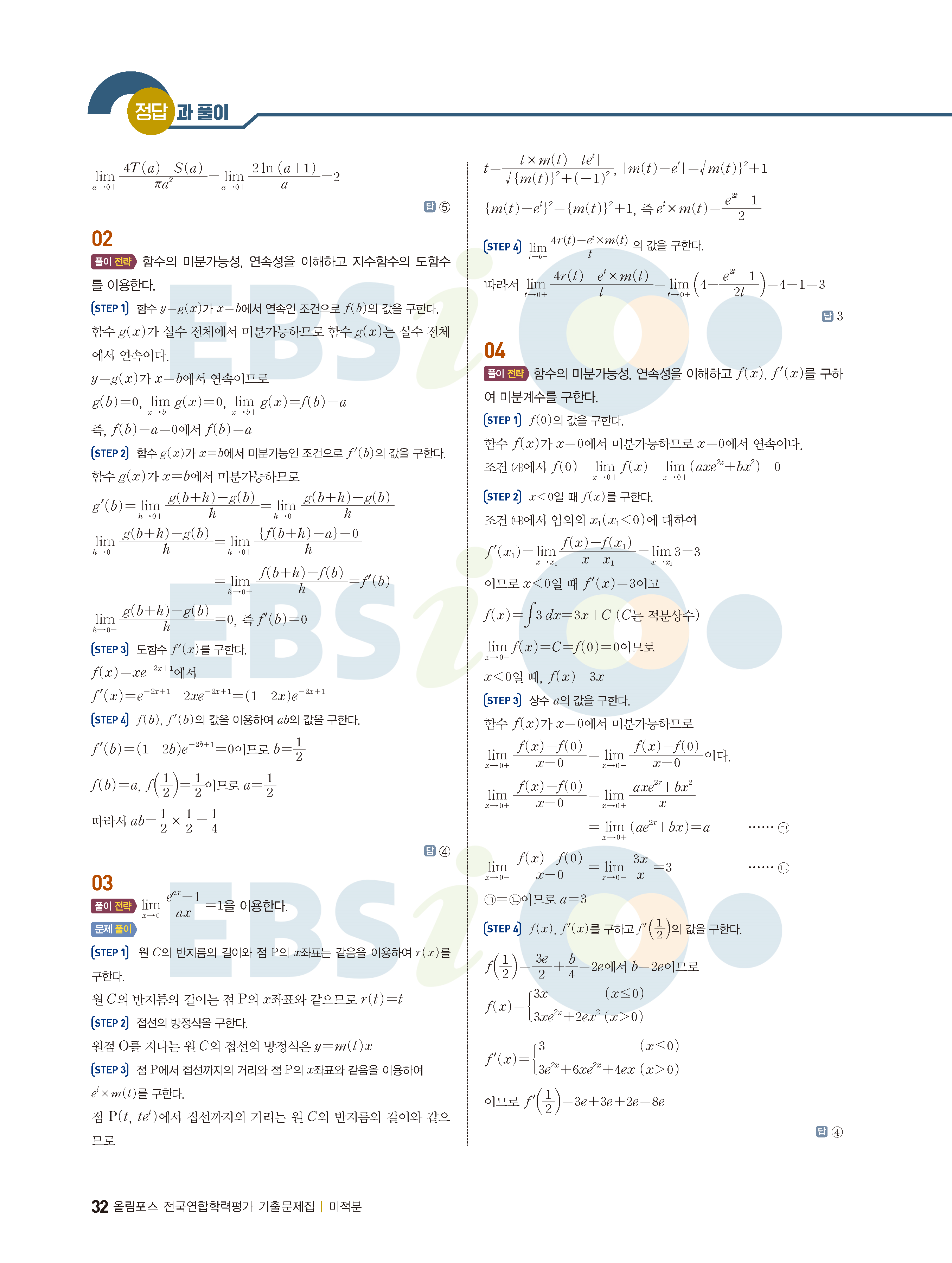ebs 올림포스 기출문제집 미적분 답지 해설지 바로보는 사진답지 빠른답지 모바일최적화