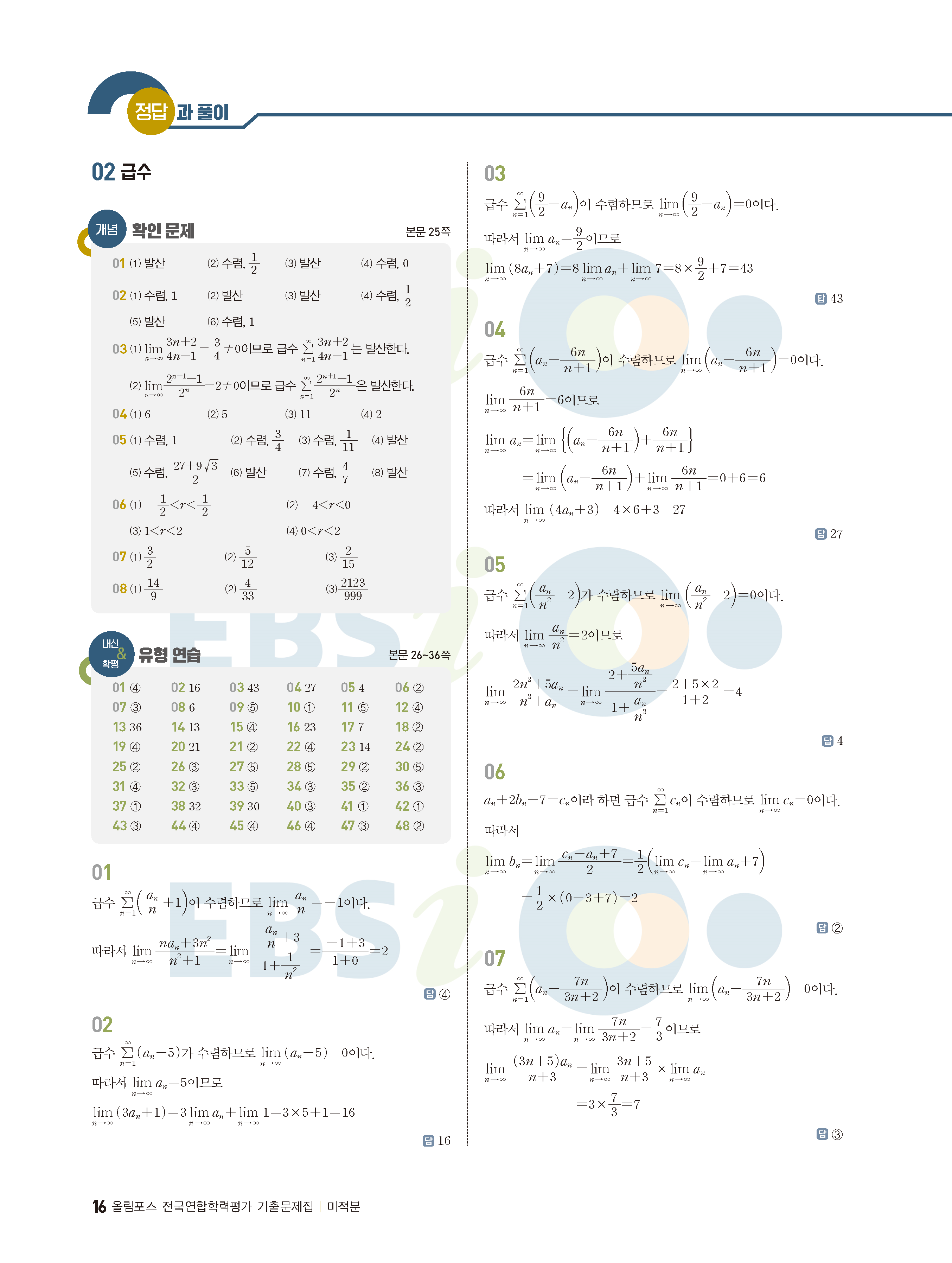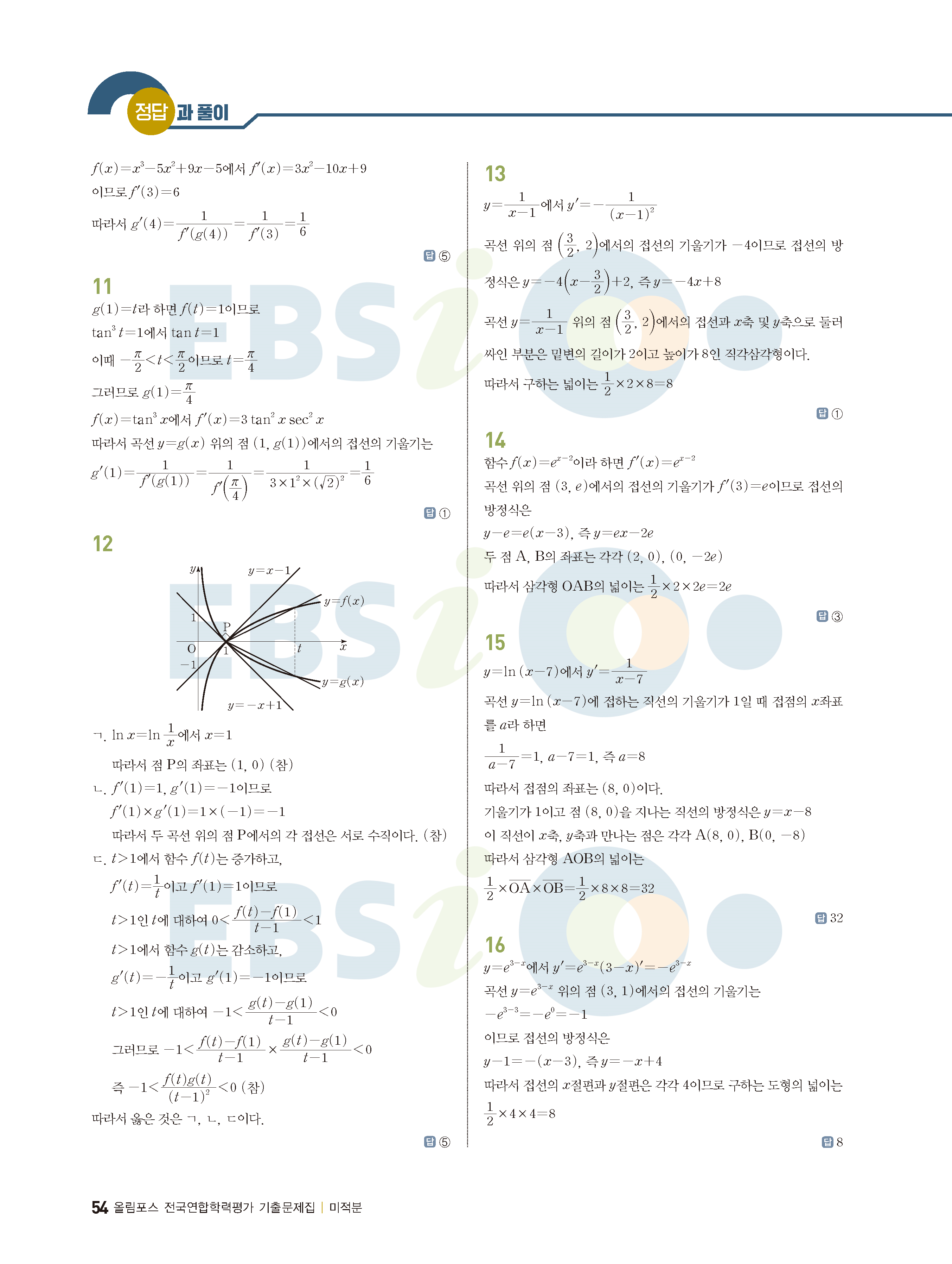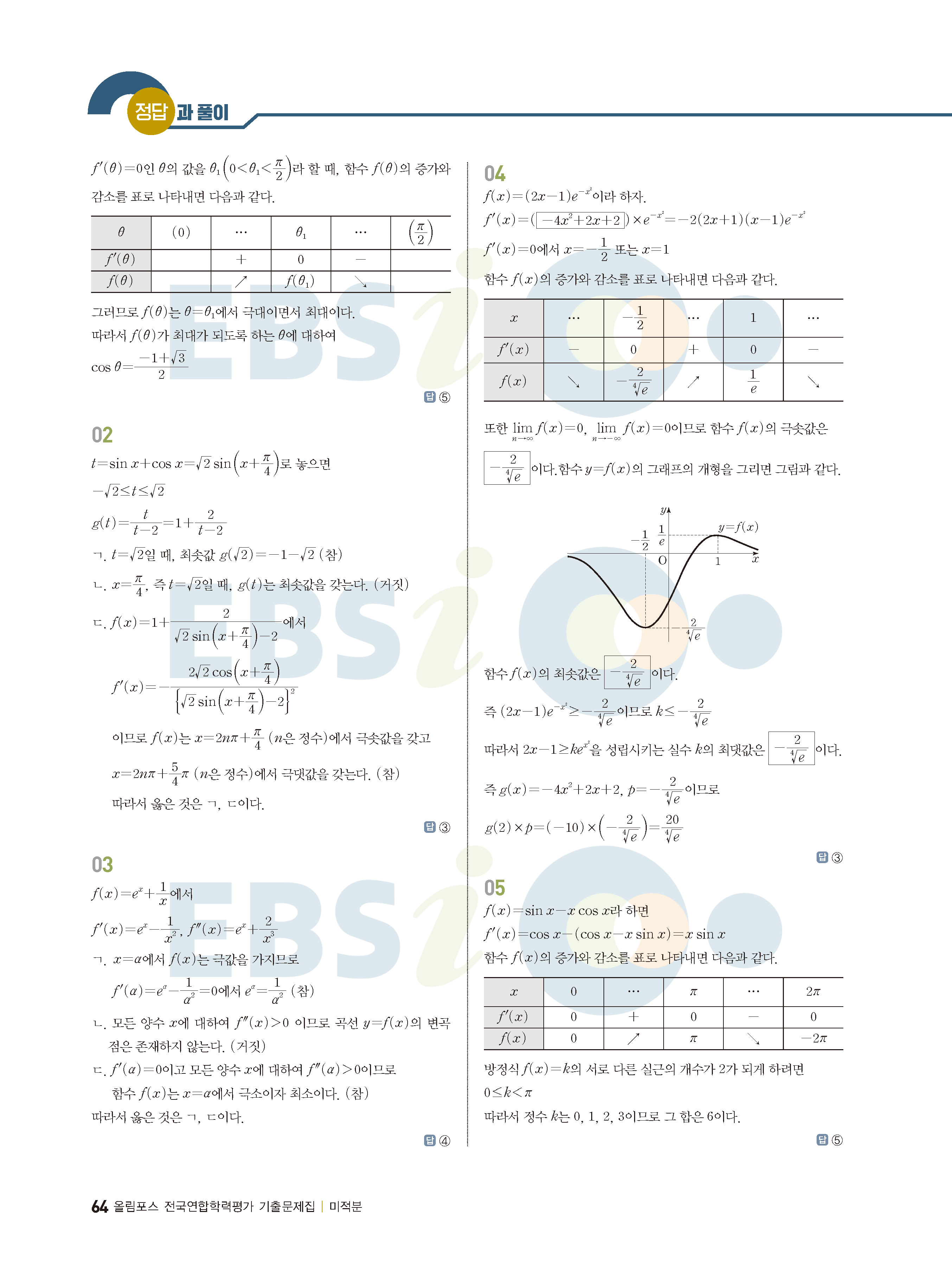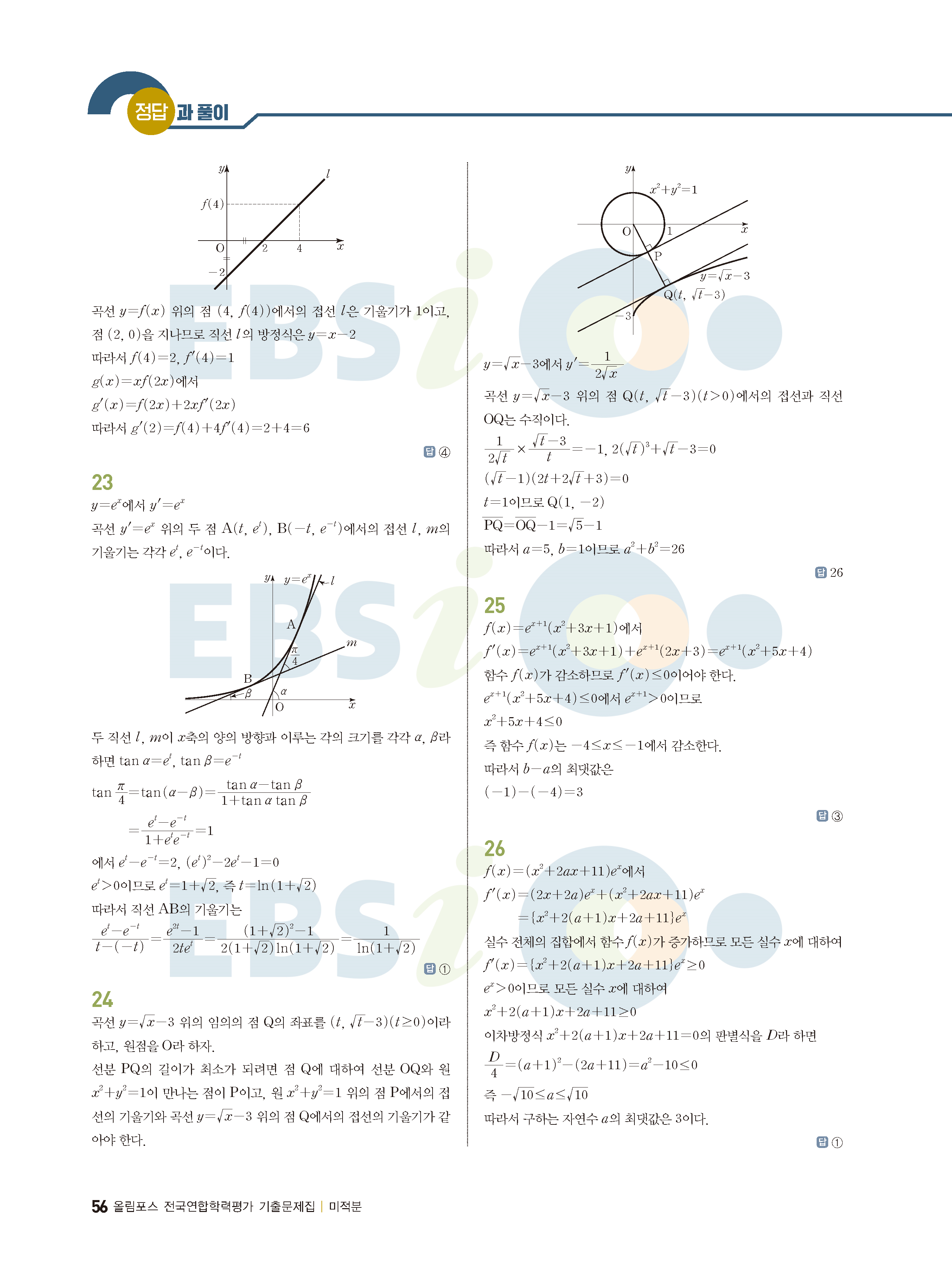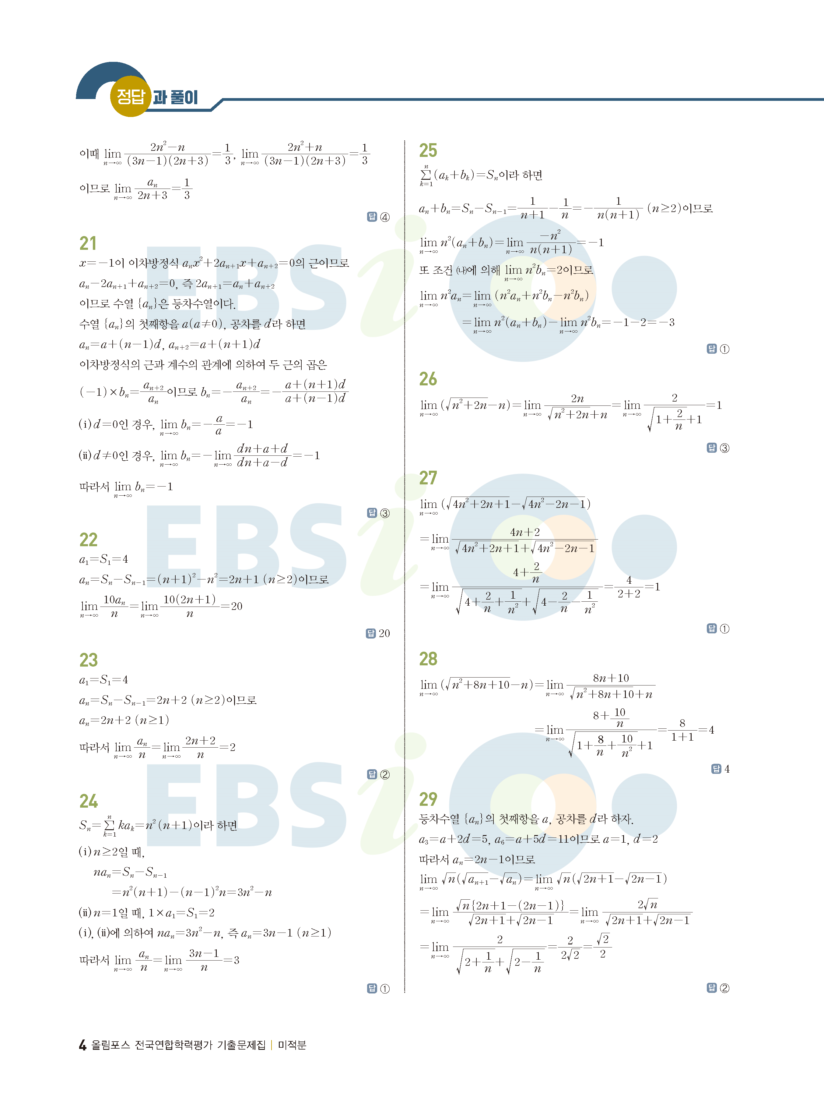 ebs 올림포스 기출문제집 미적분 답지 해설지 바로보는 사진답지 빠른답지 모바일최적화