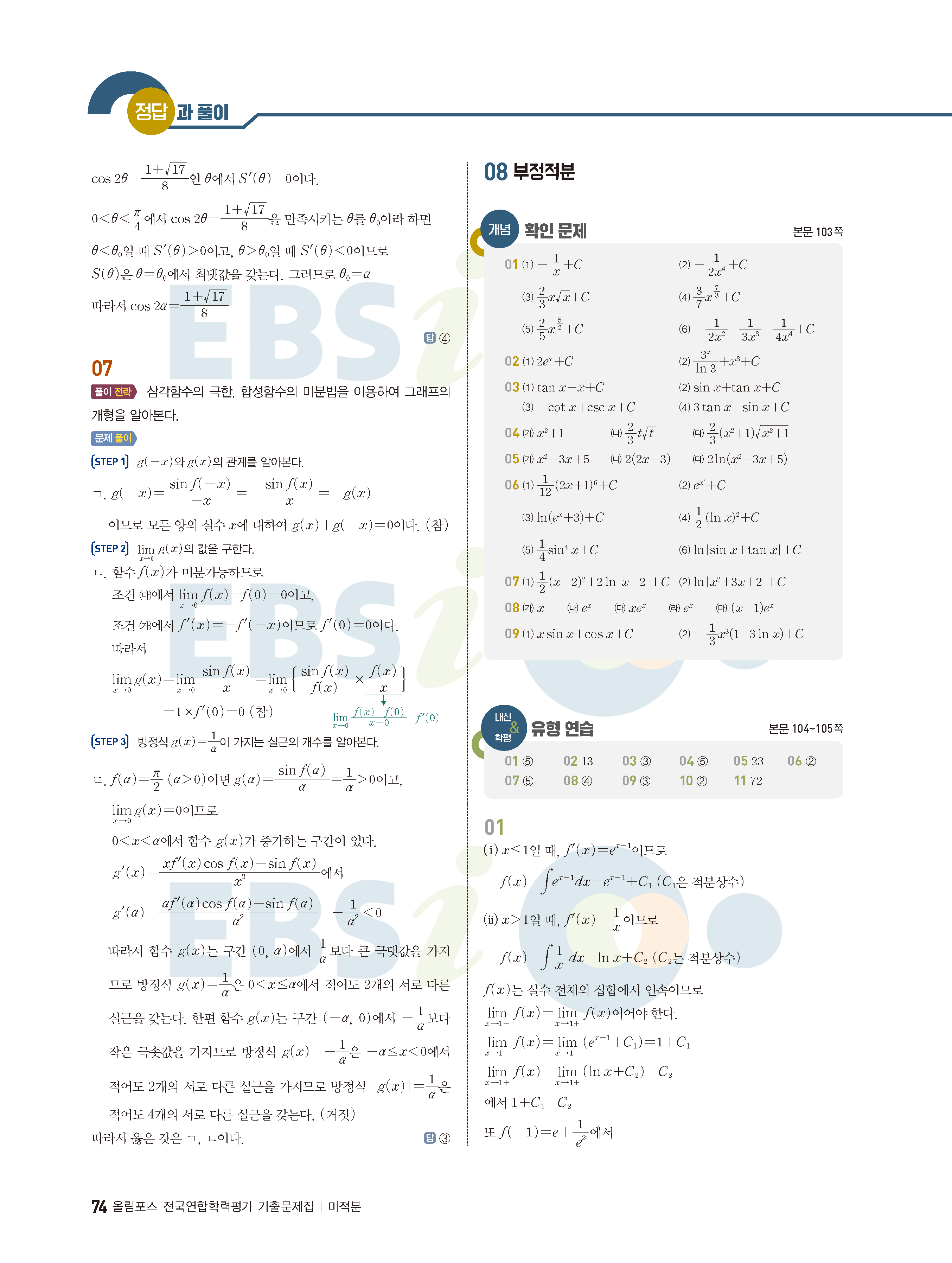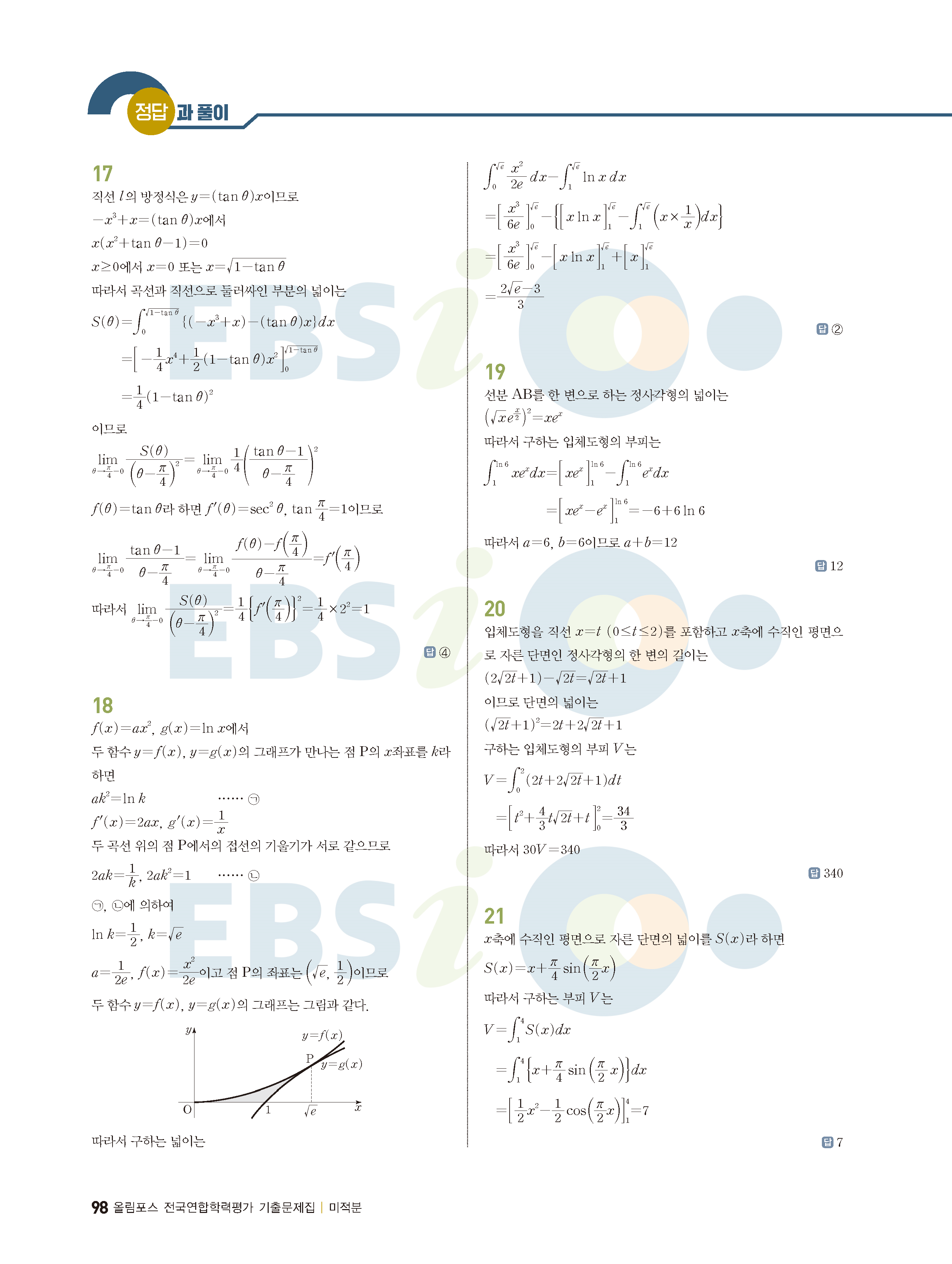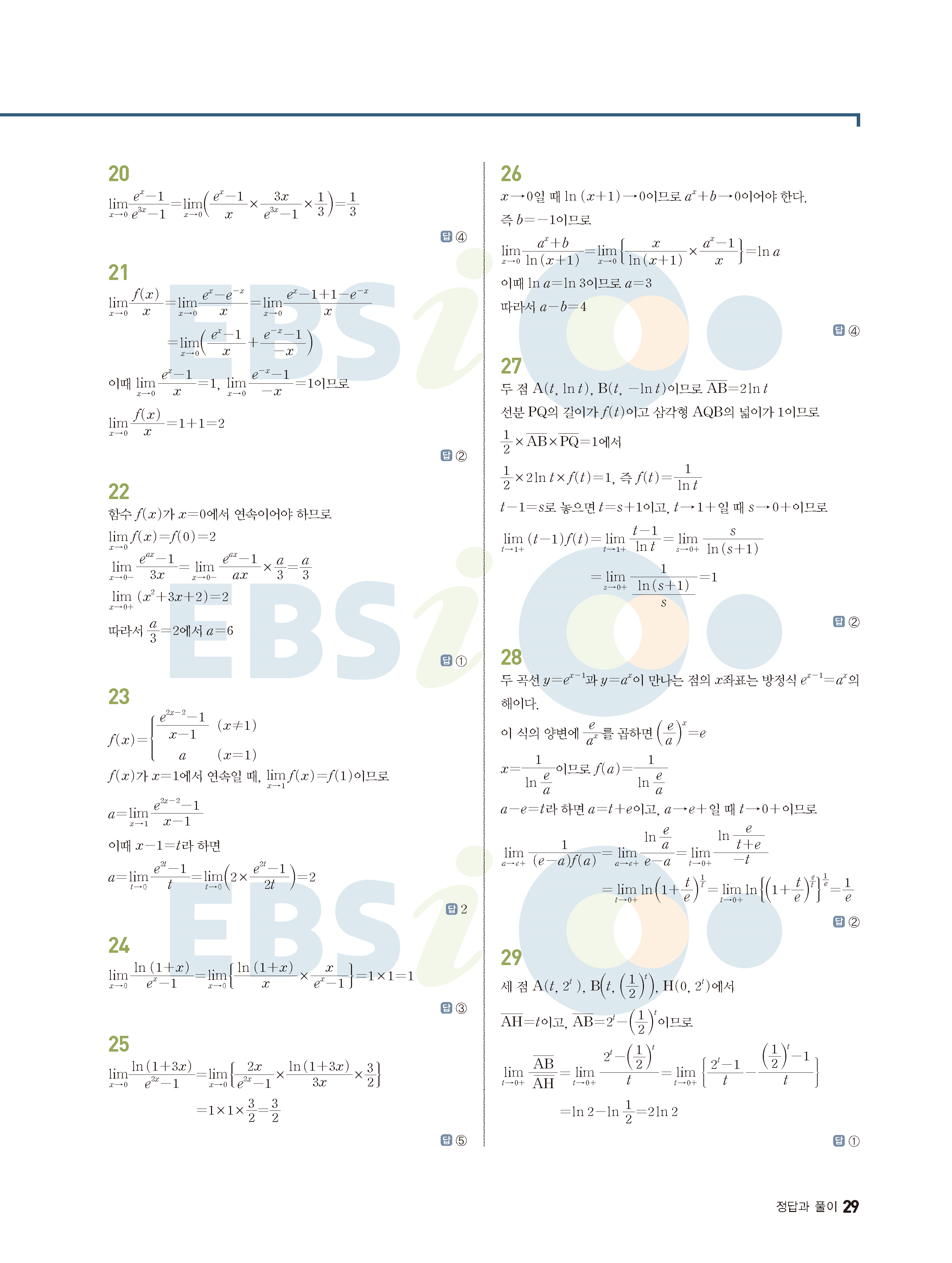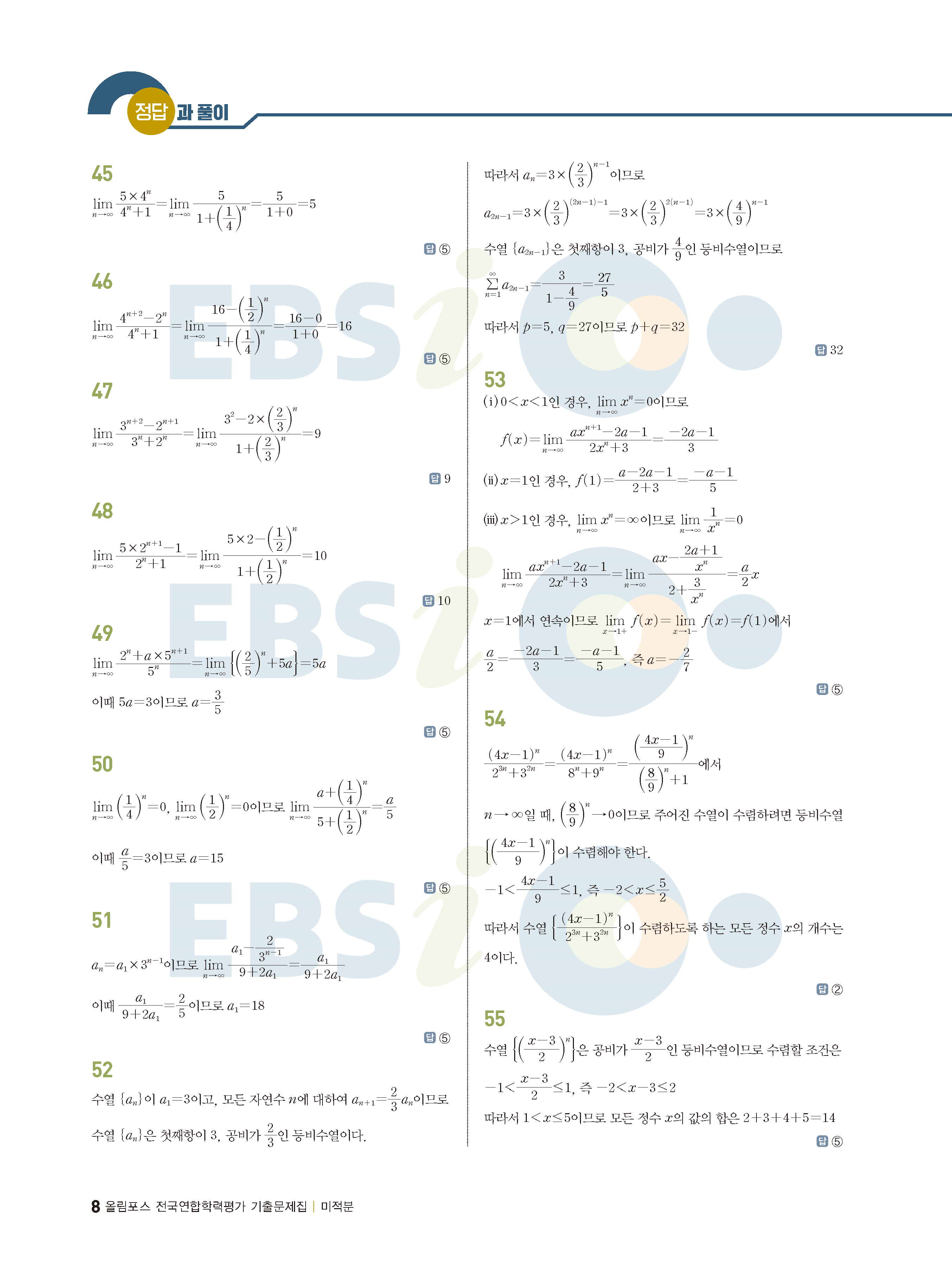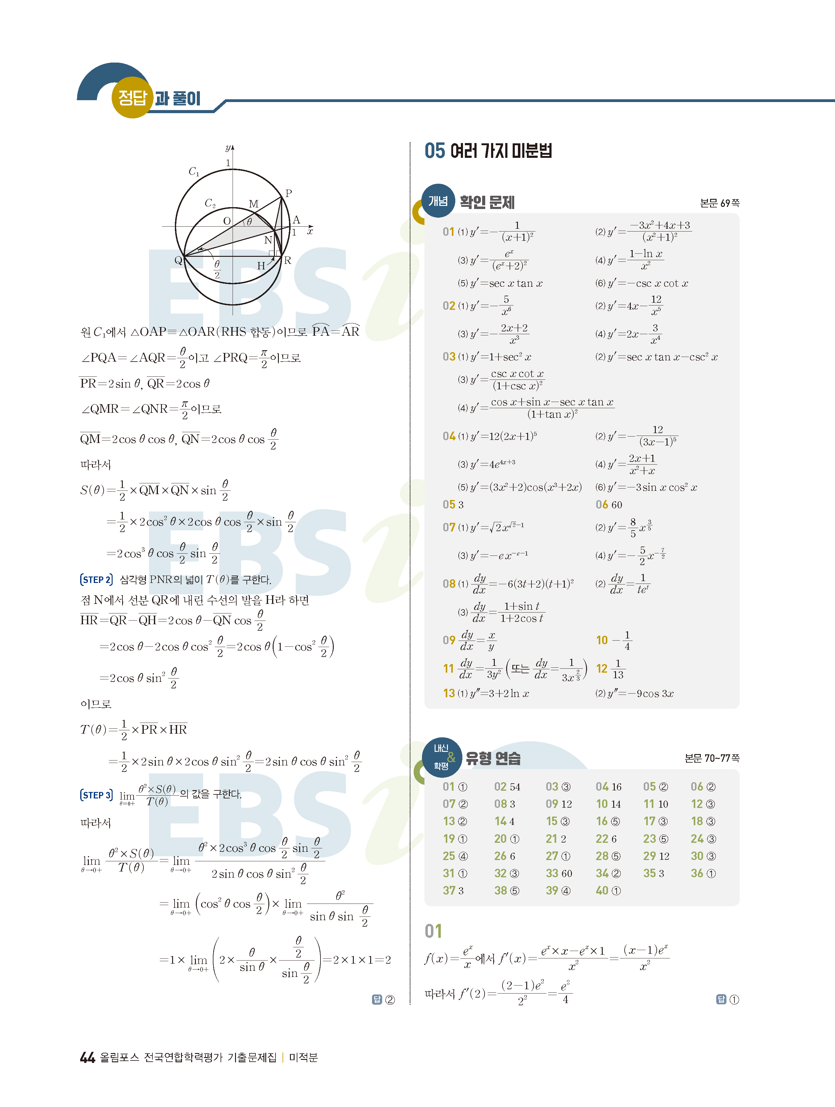 ebs 올림포스 기출문제집 미적분 답지 해설지 바로보는 사진답지 빠른답지 모바일최적화