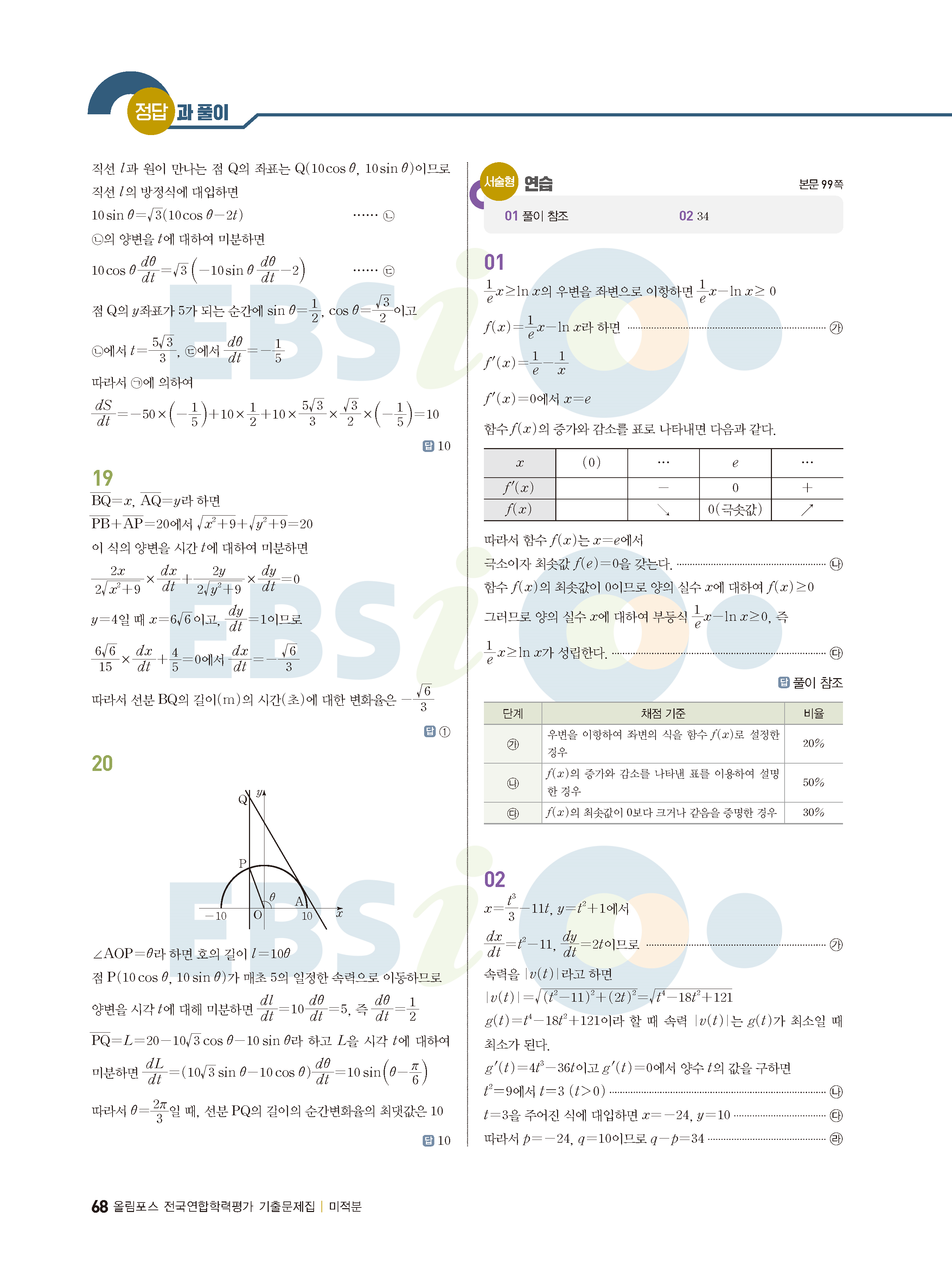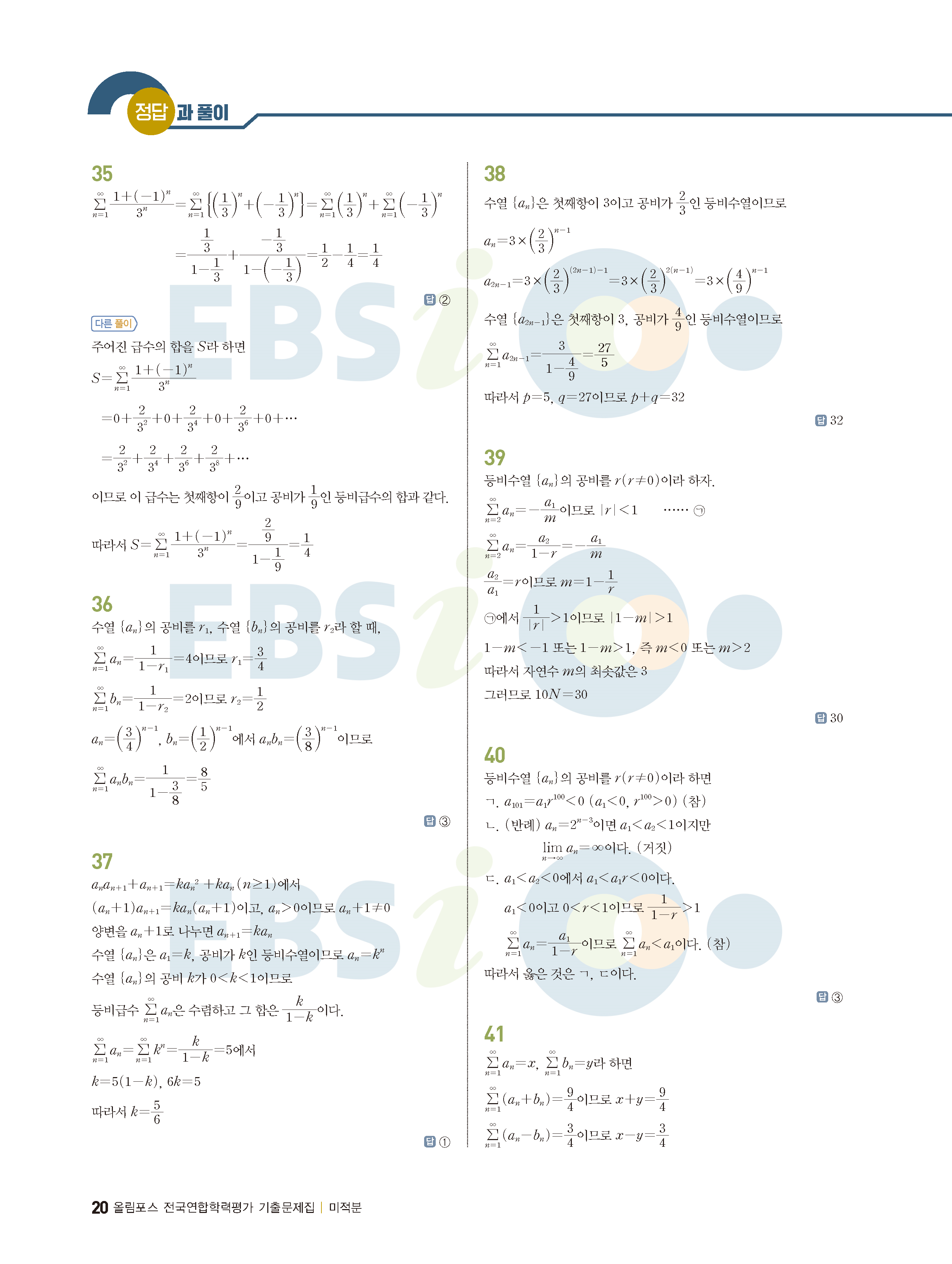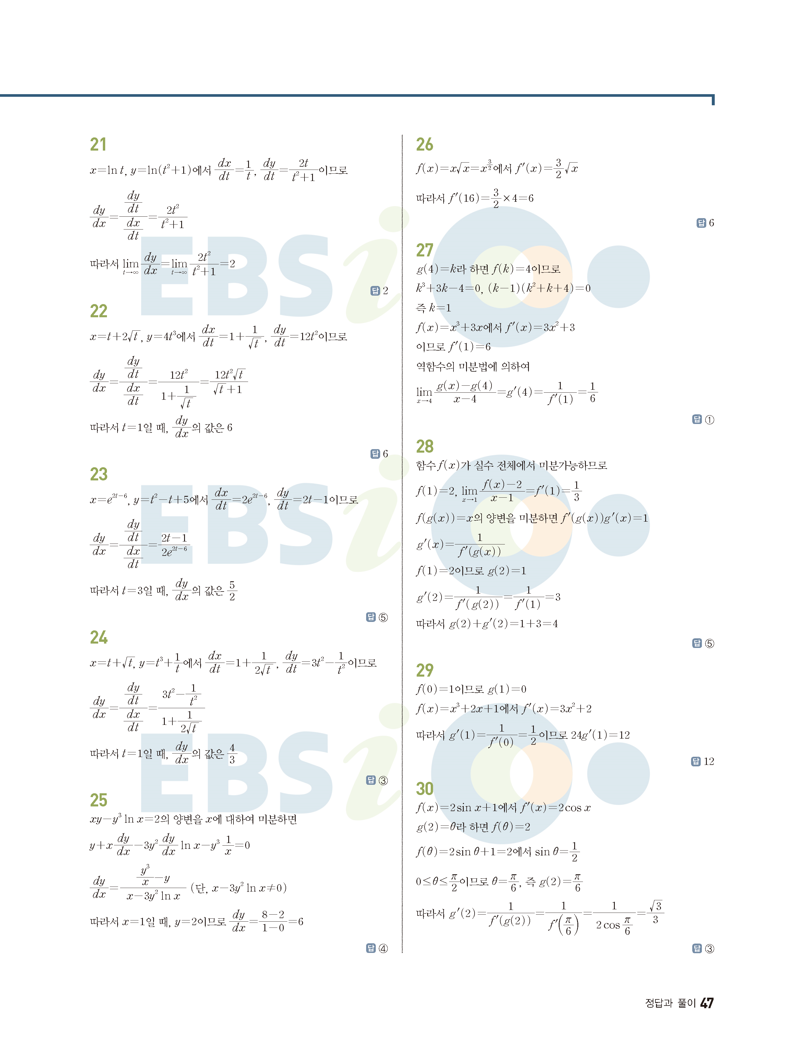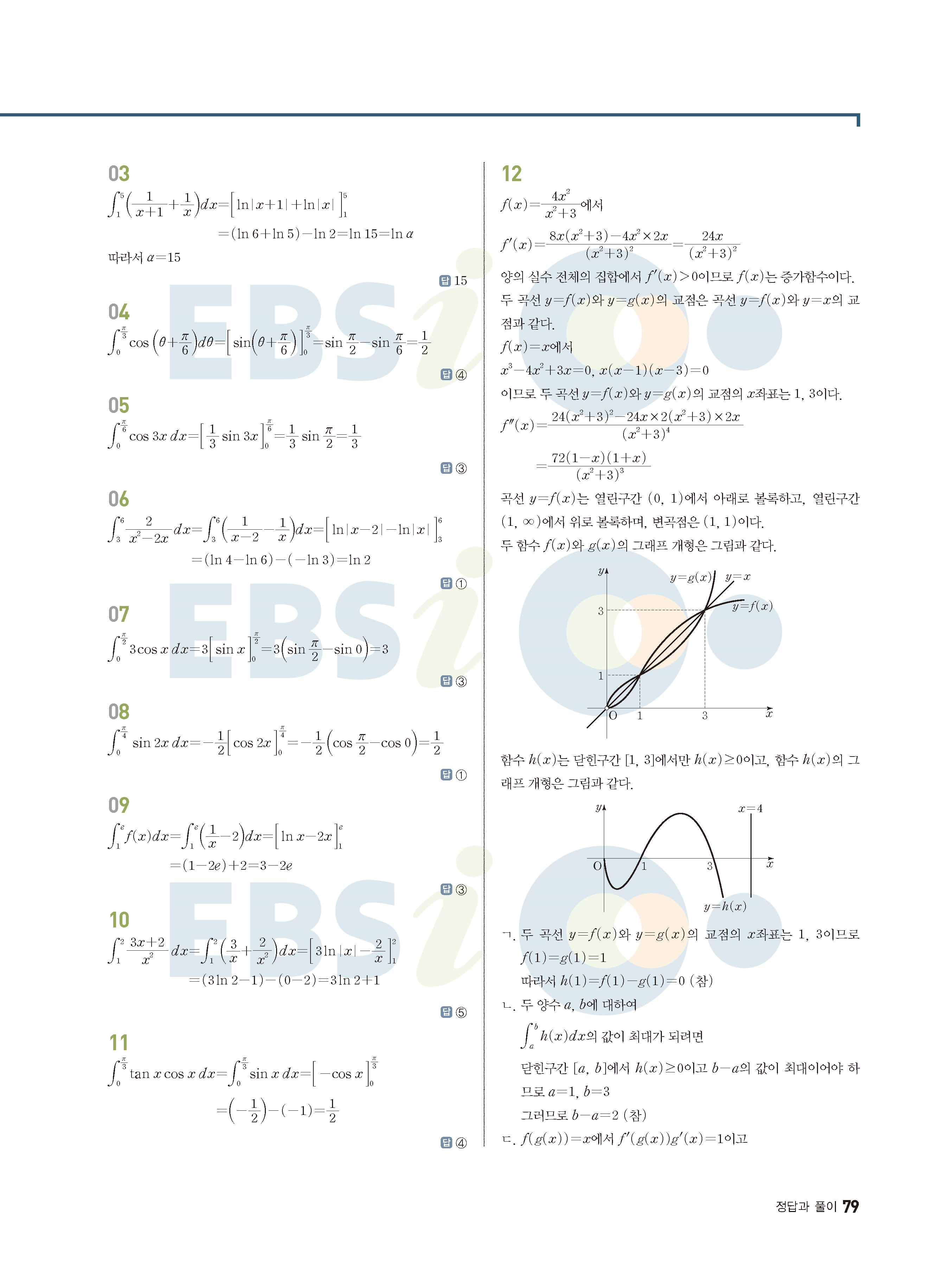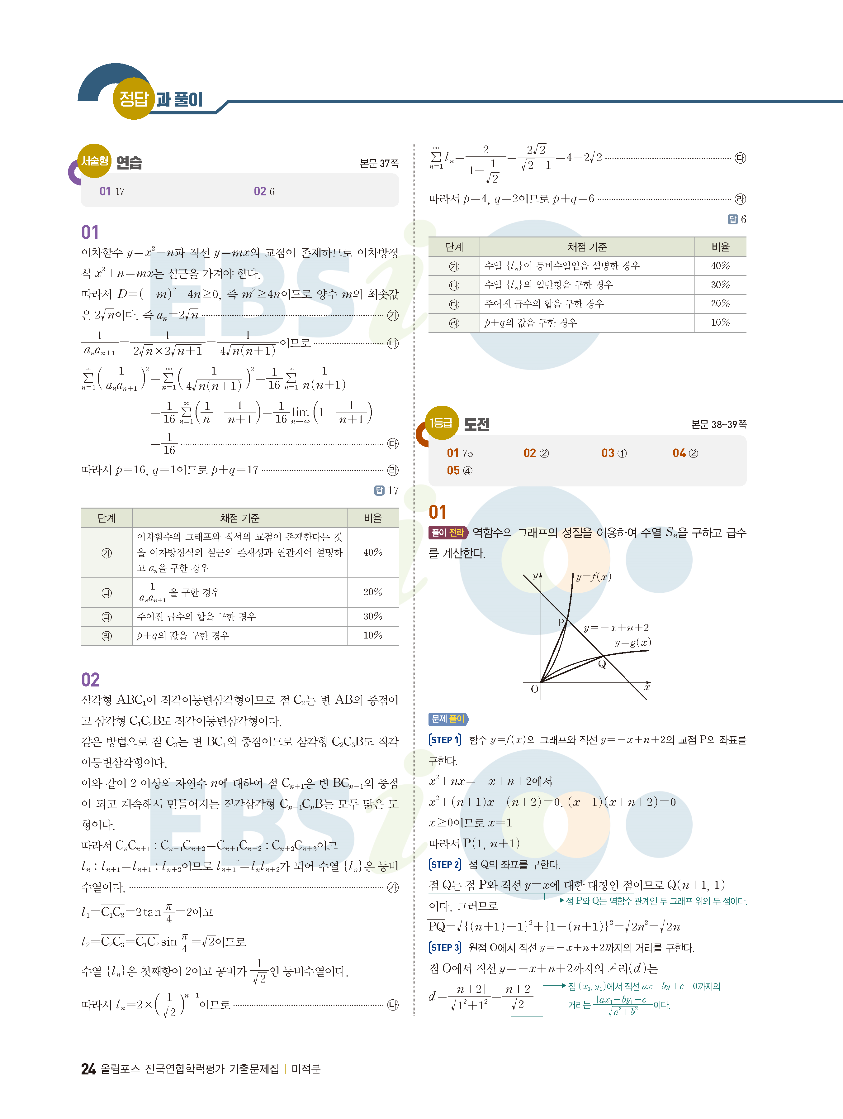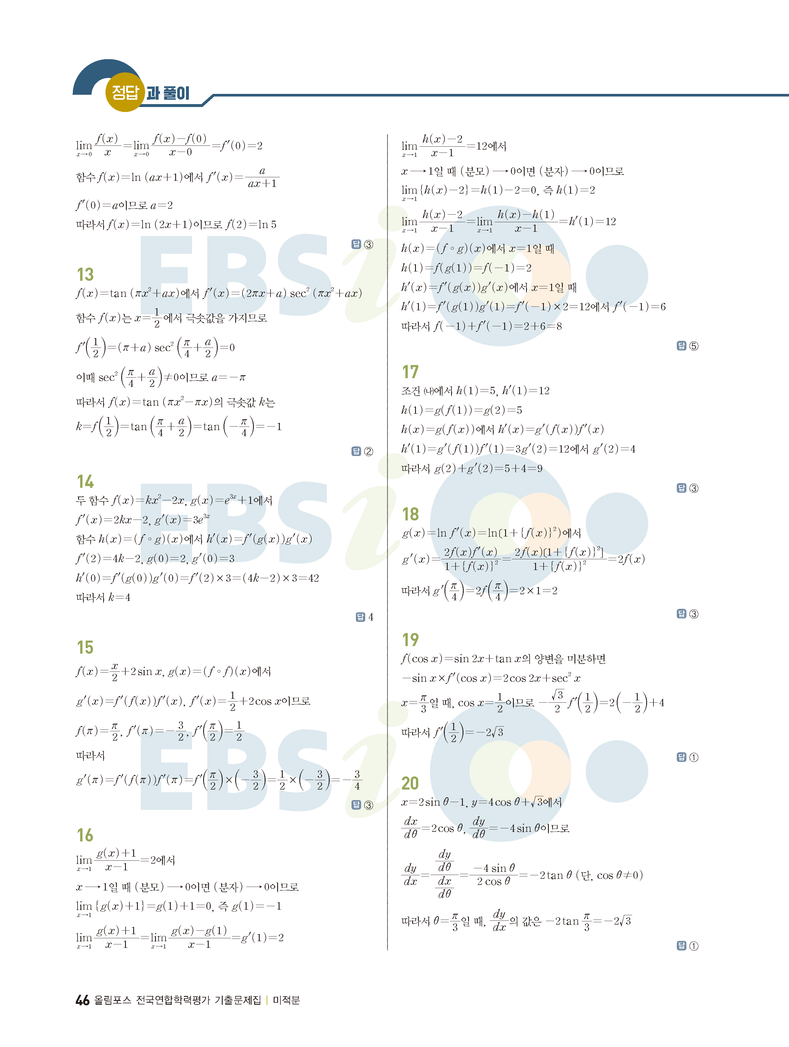 ebs 올림포스 기출문제집 미적분 답지 해설지 바로보는 사진답지 빠른답지 모바일최적화