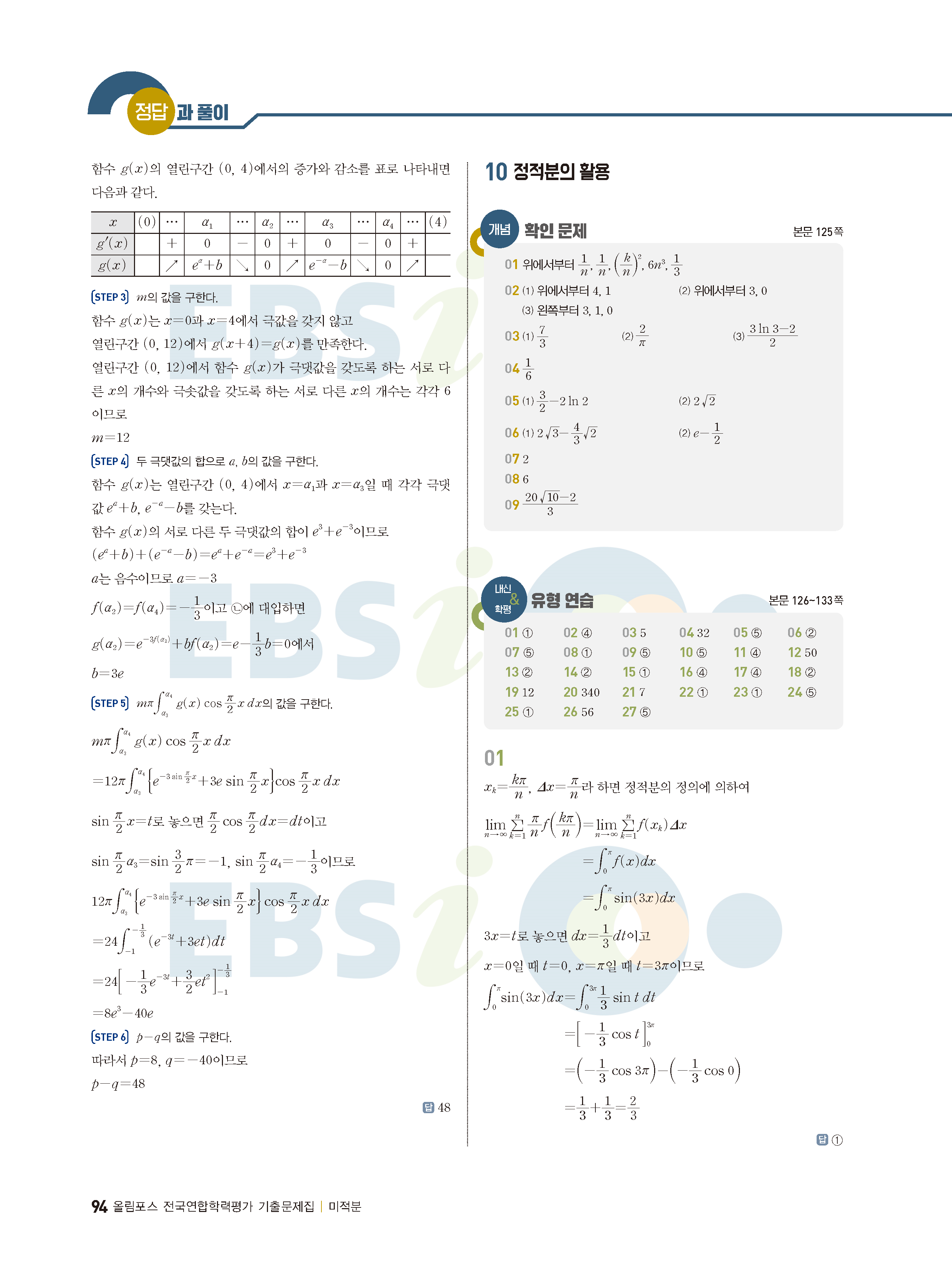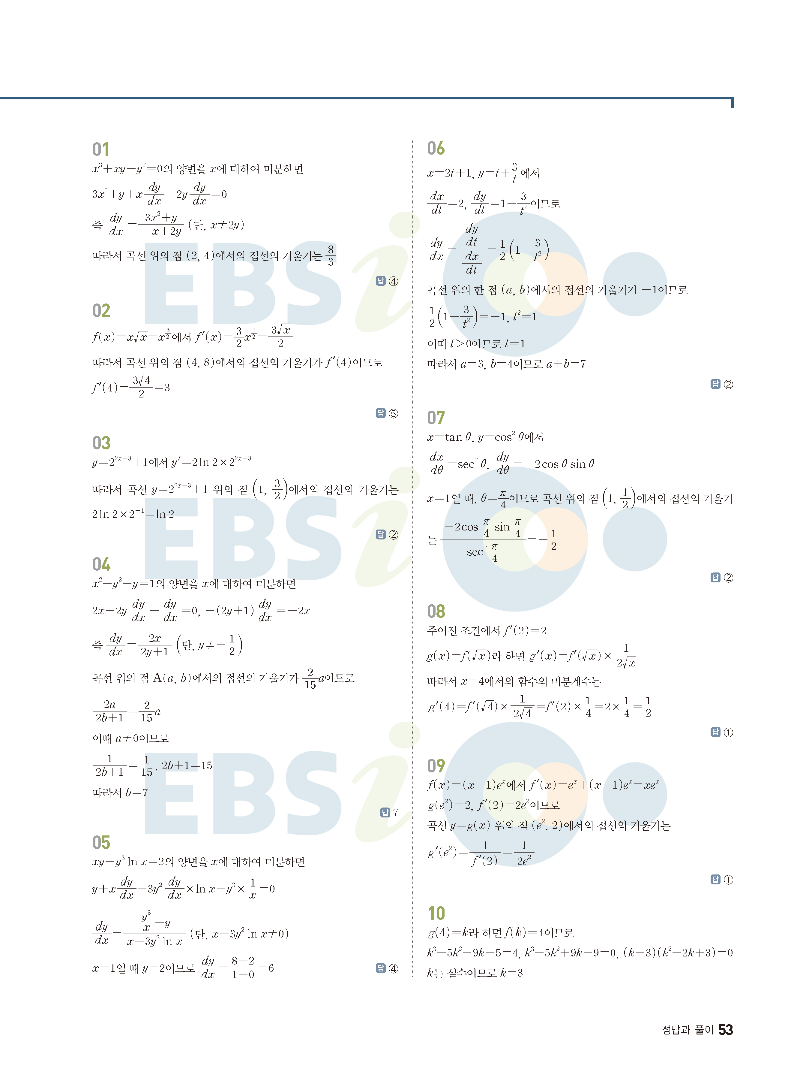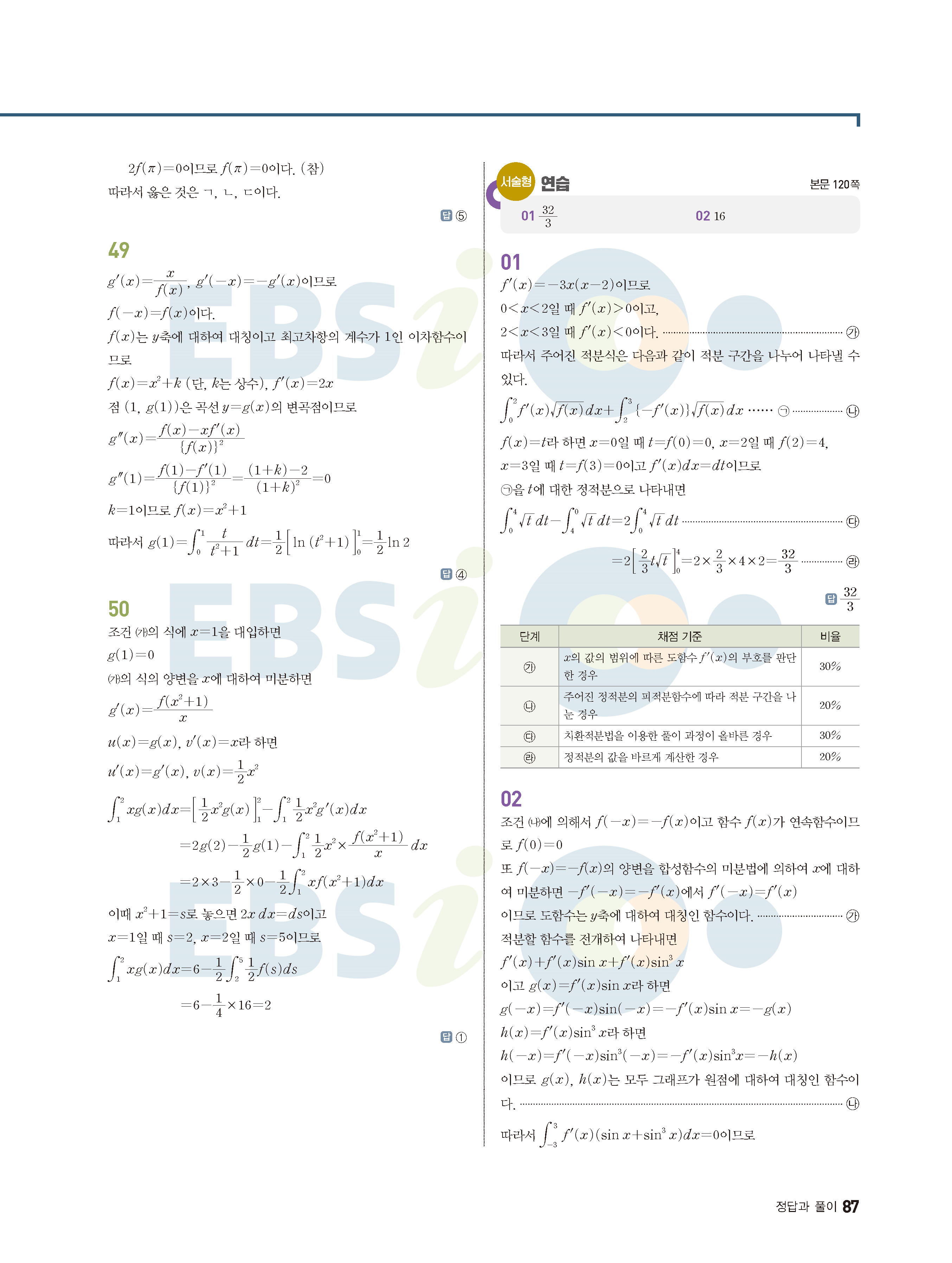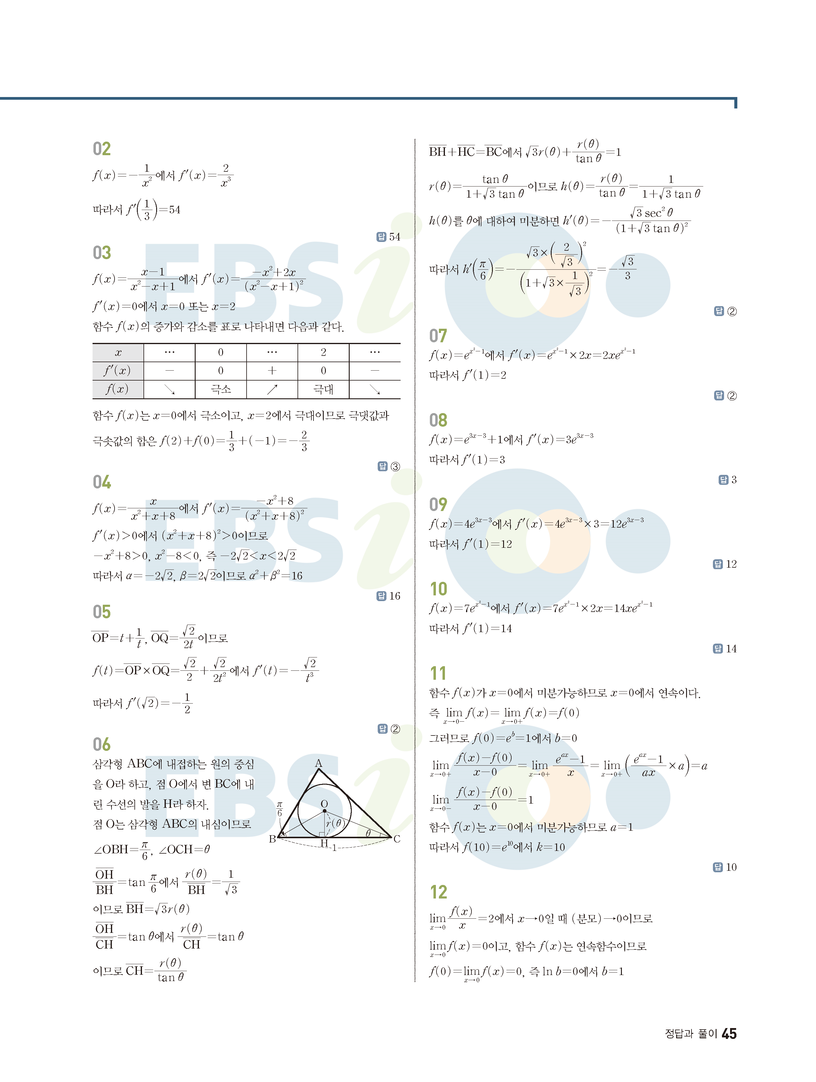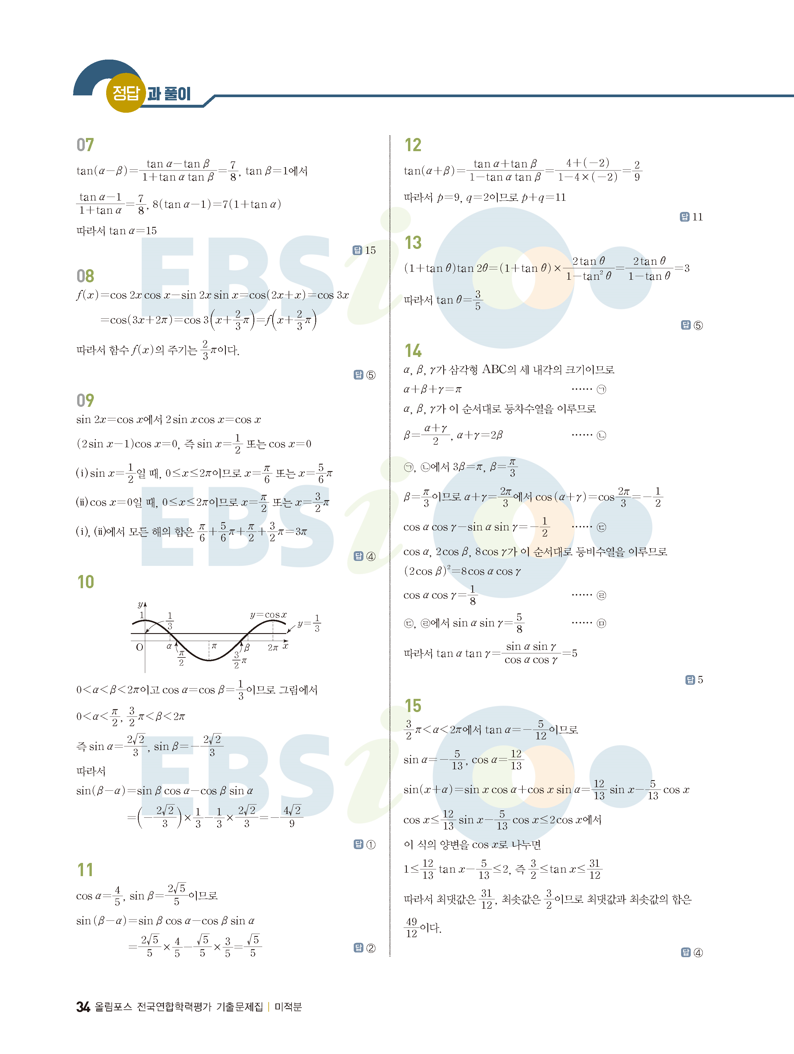 ebs 올림포스 기출문제집 미적분 답지 해설지 바로보는 사진답지 빠른답지 모바일최적화