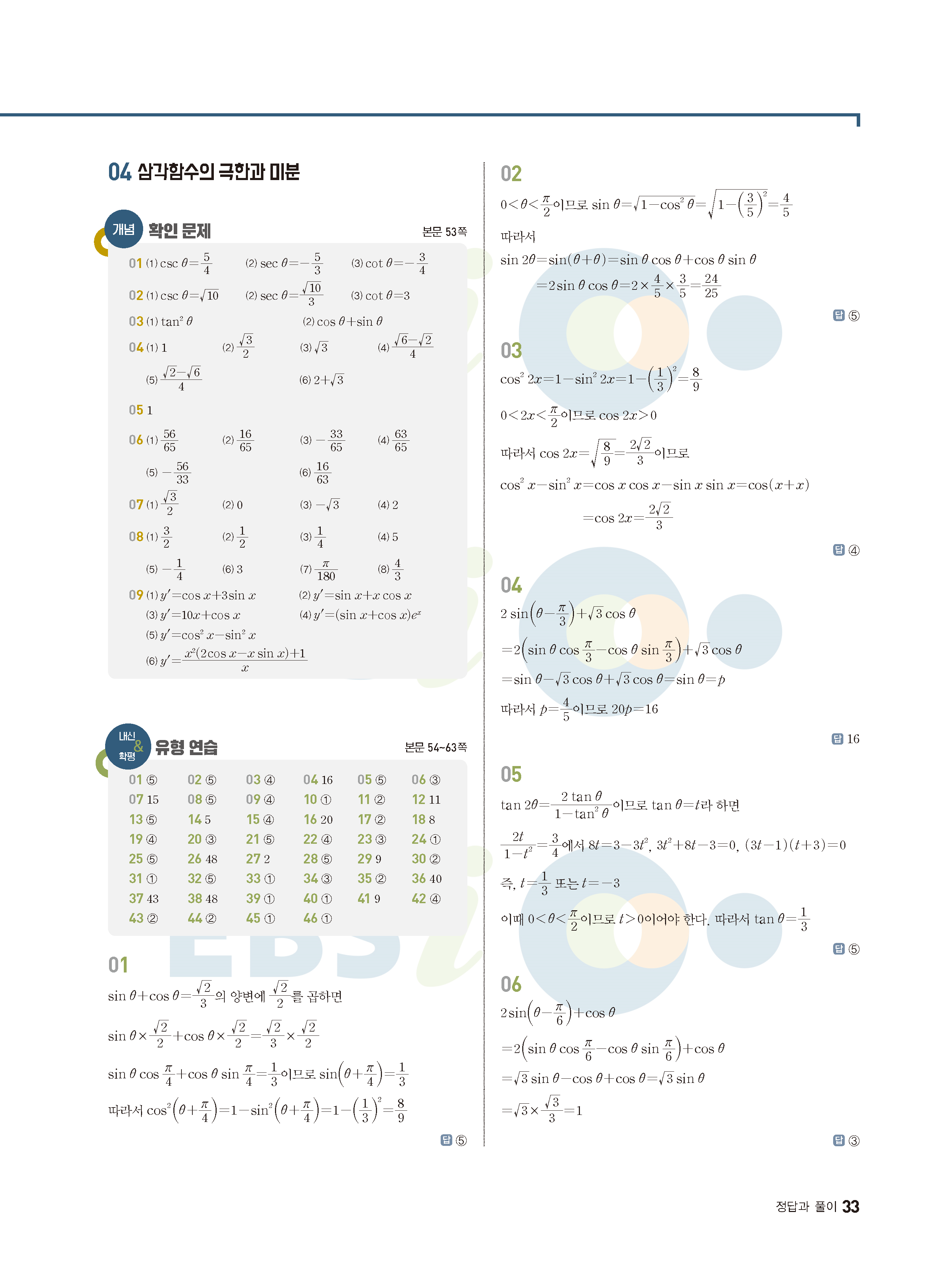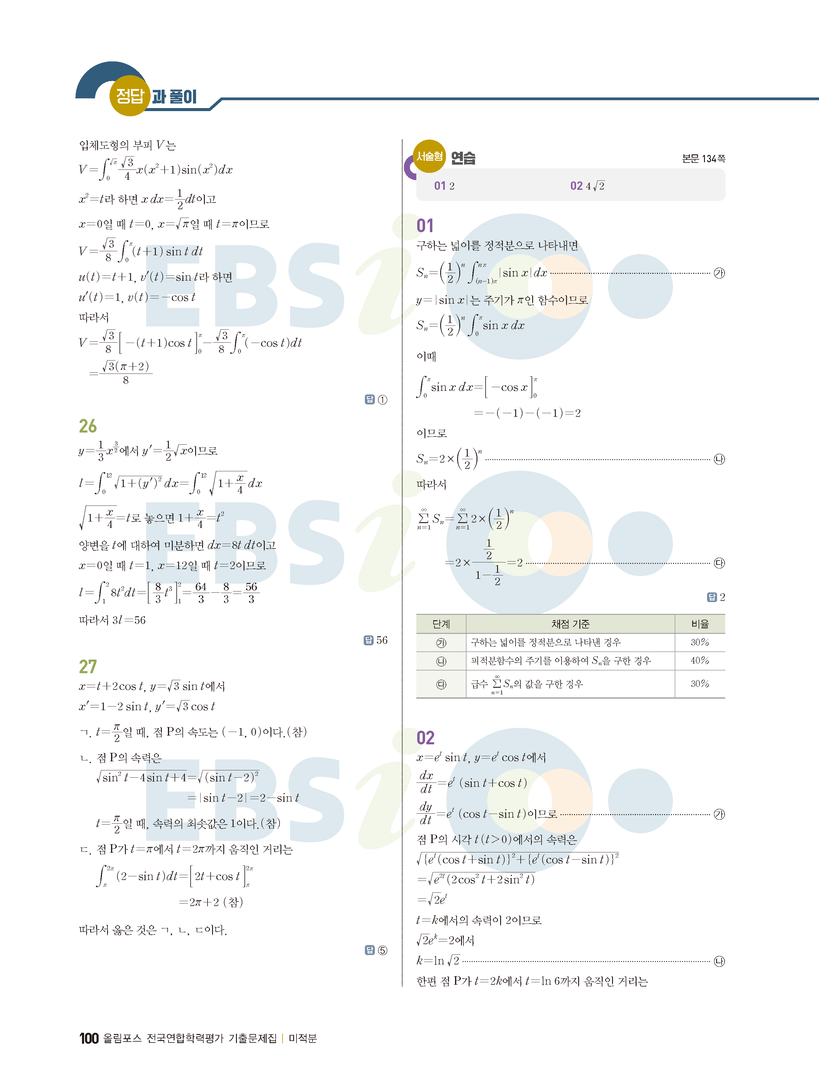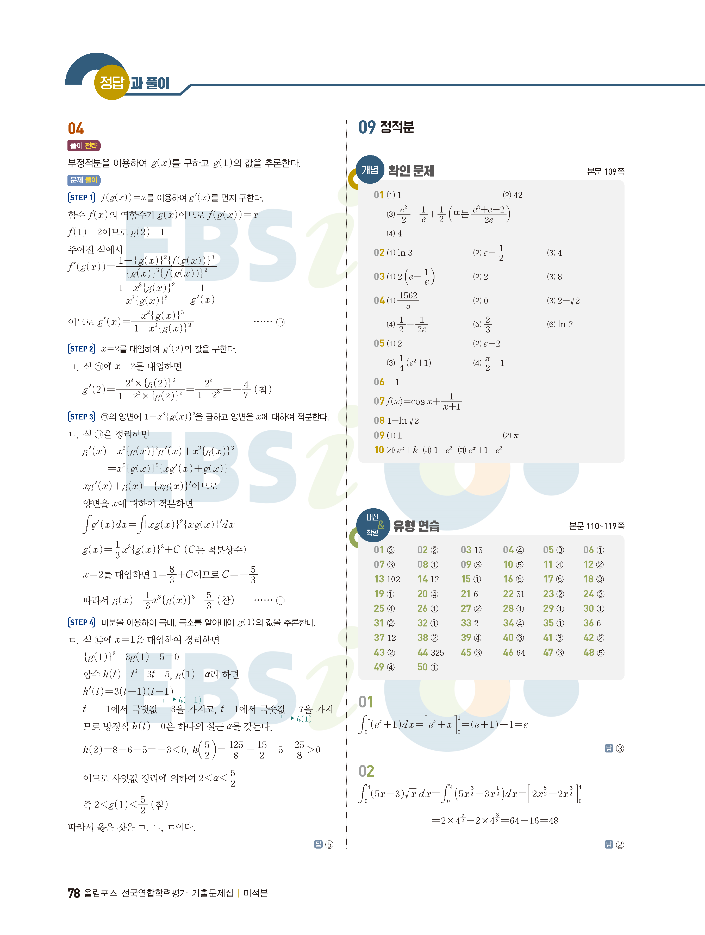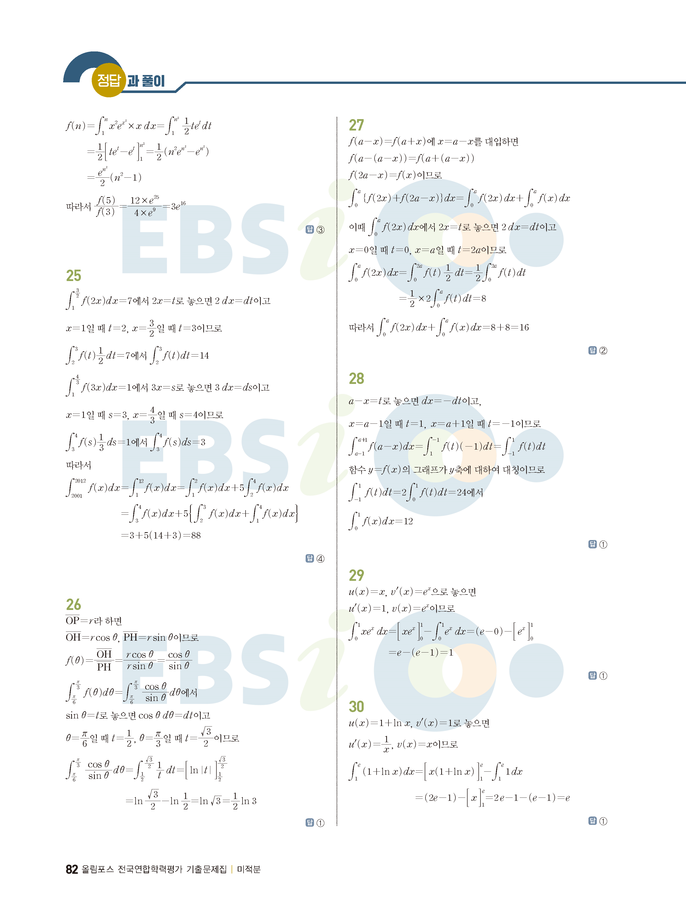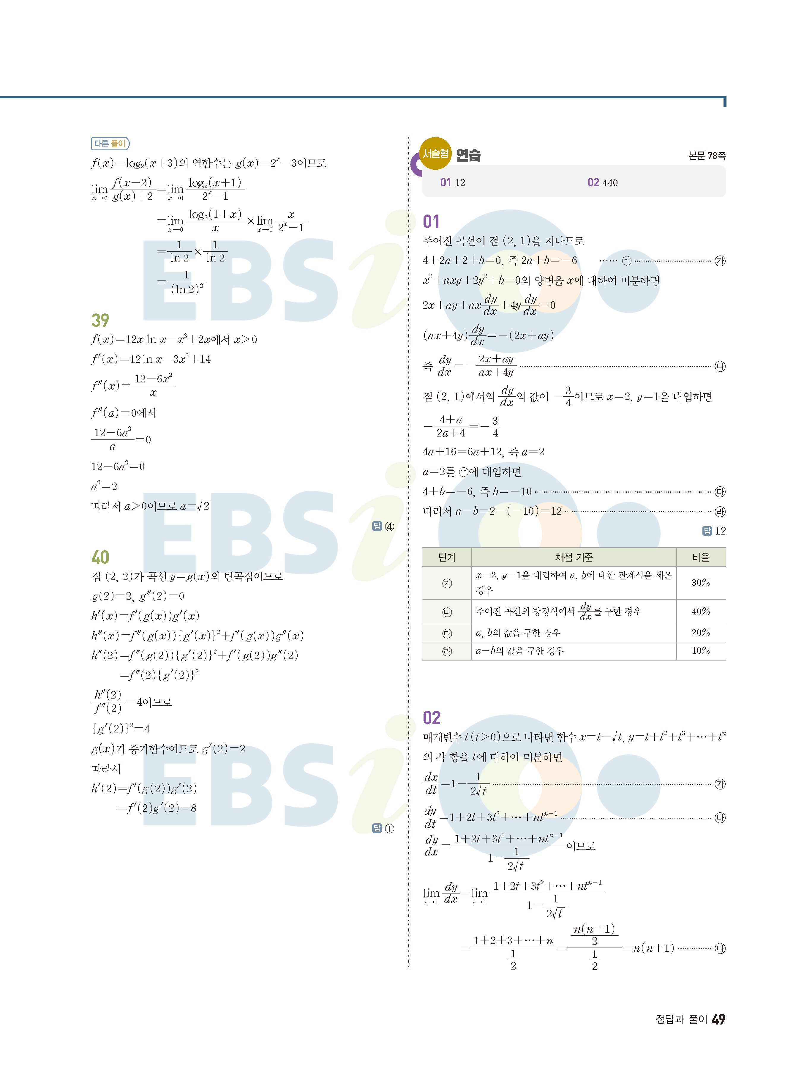 ebs 올림포스 기출문제집 미적분 답지 해설지 바로보는 사진답지 빠른답지 모바일최적화