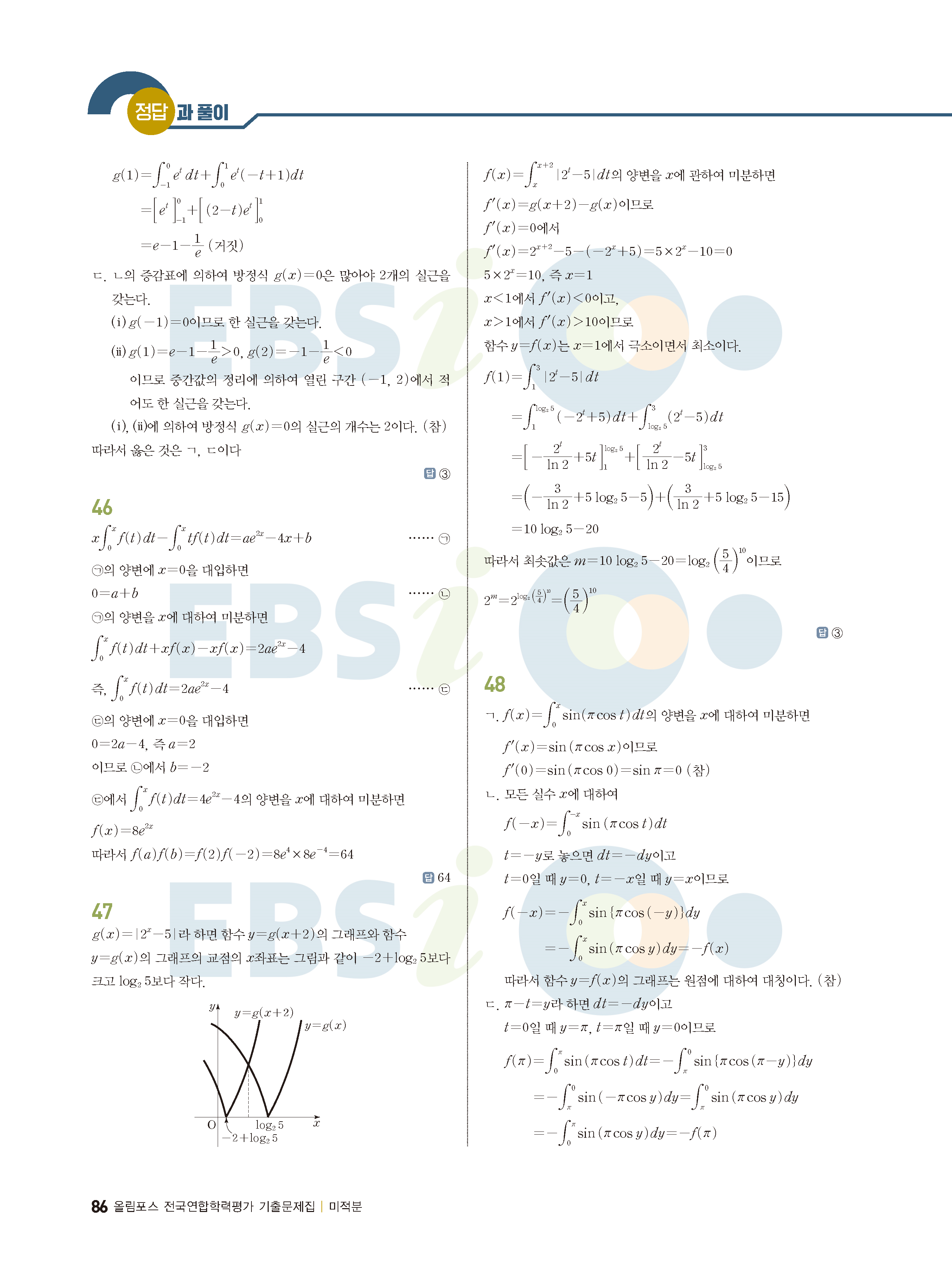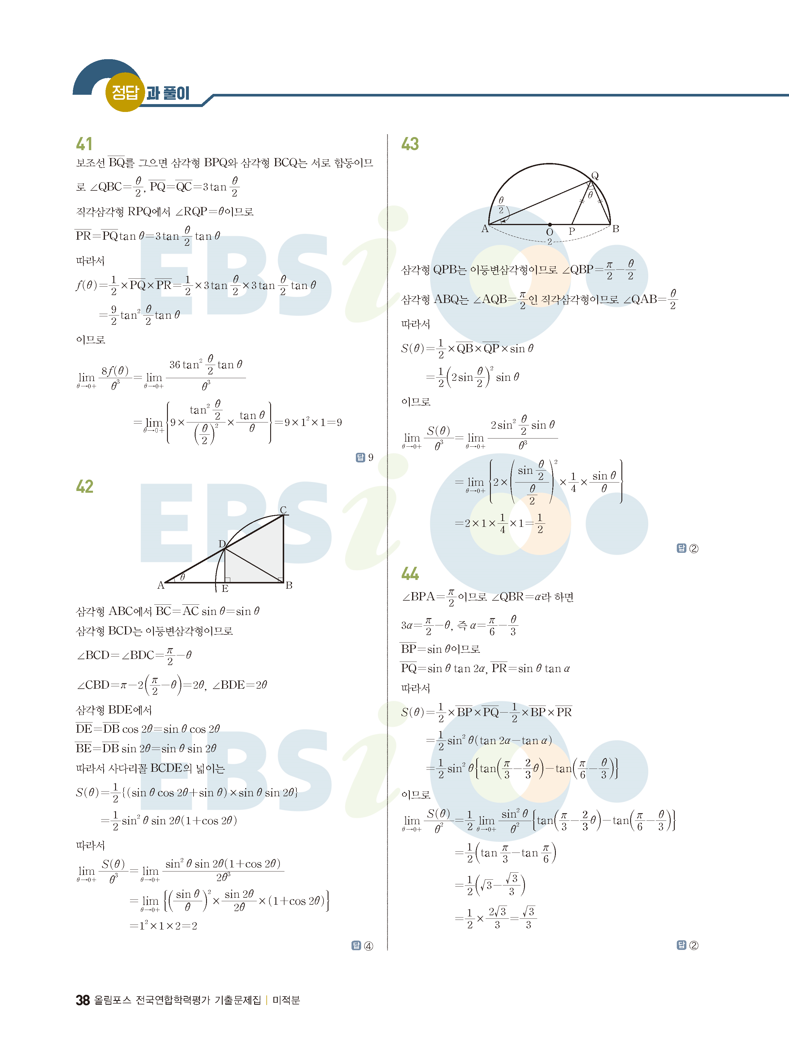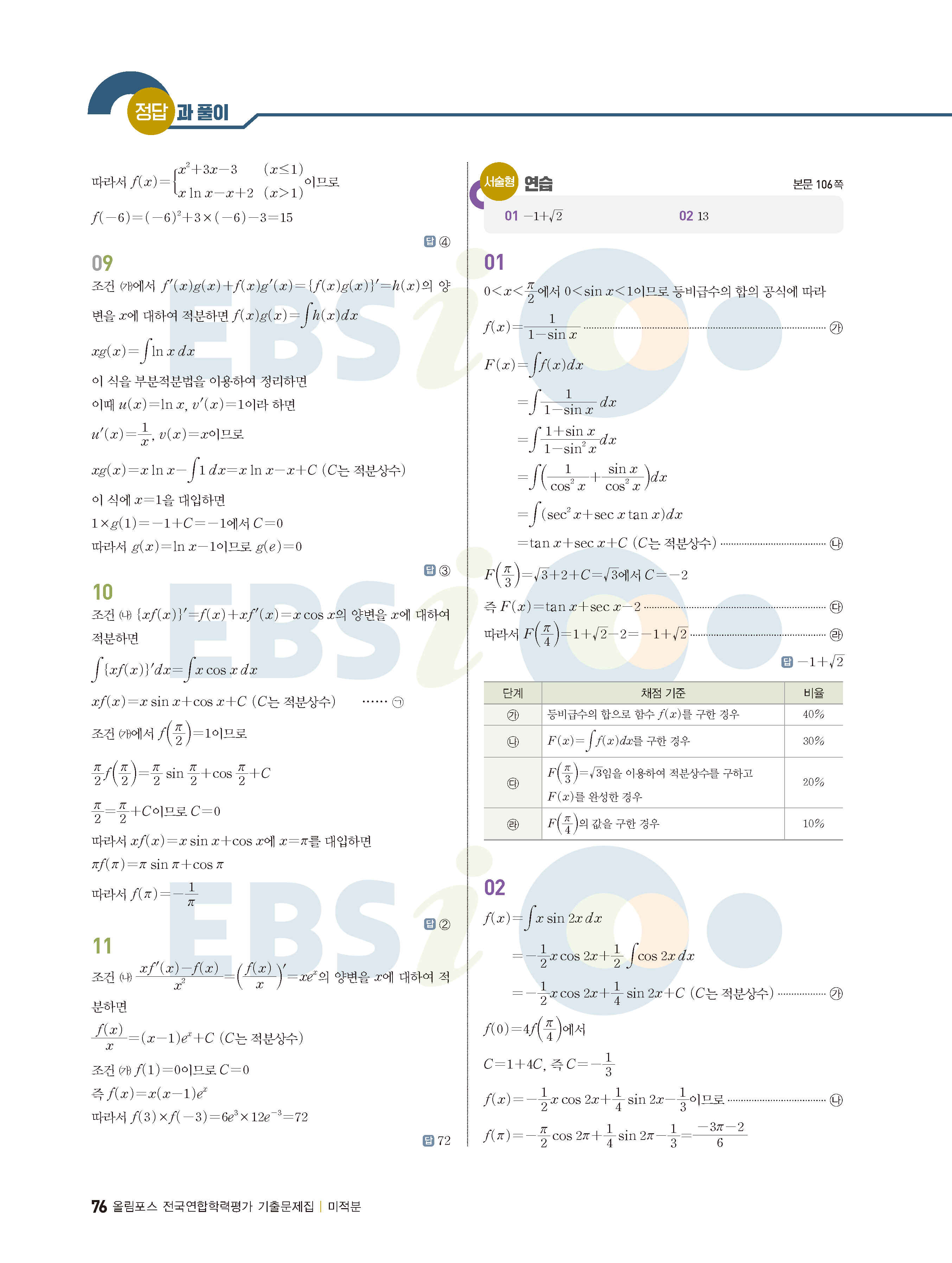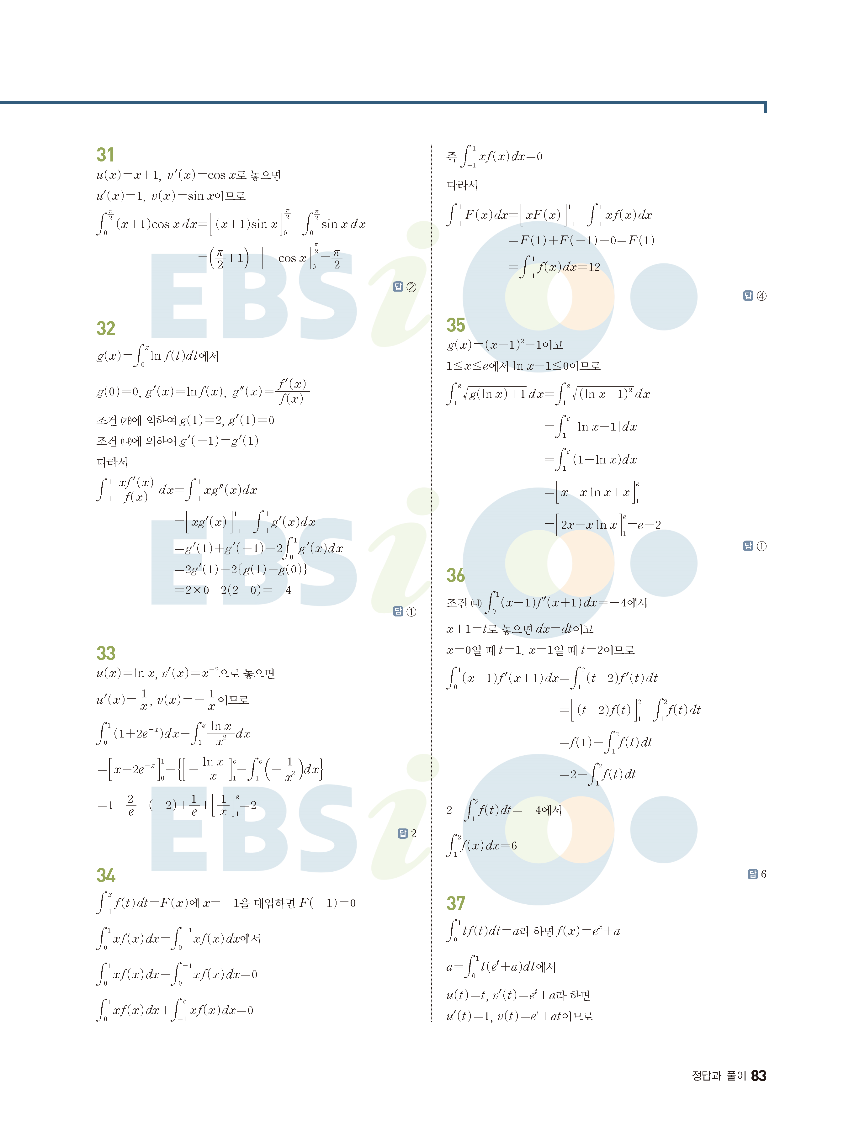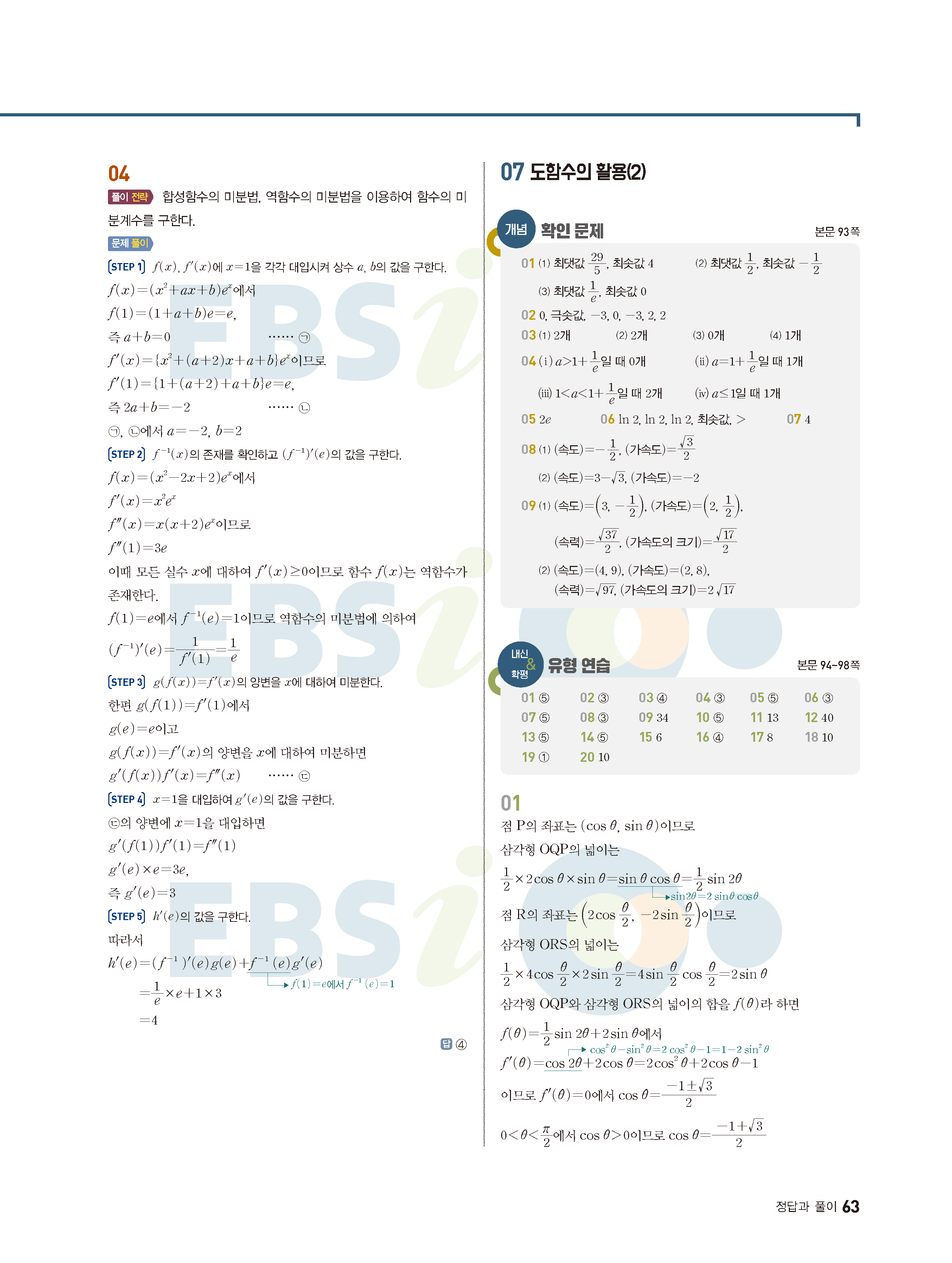 ebs 올림포스 기출문제집 미적분 답지 해설지 바로보는 사진답지 빠른답지 모바일최적화