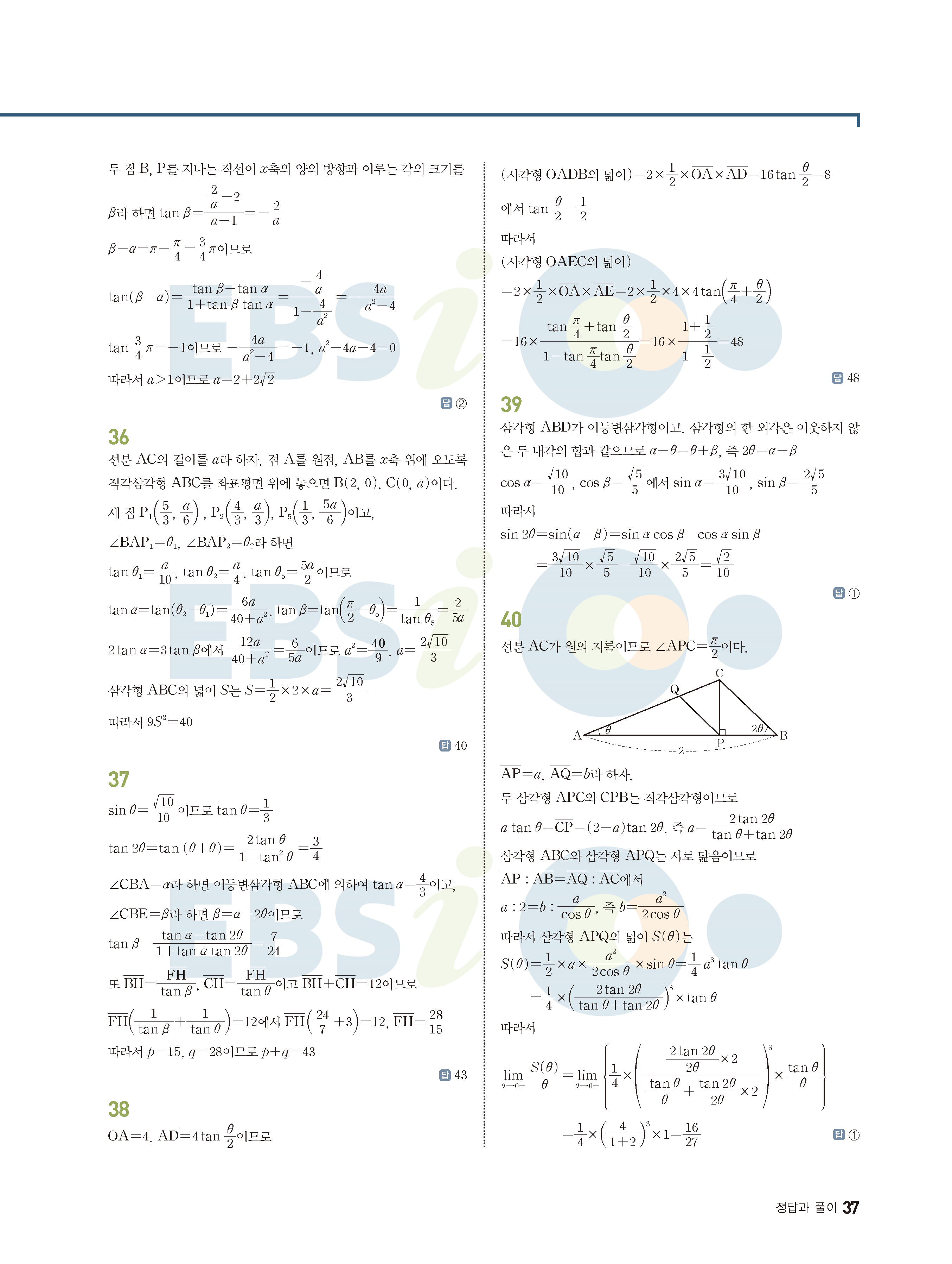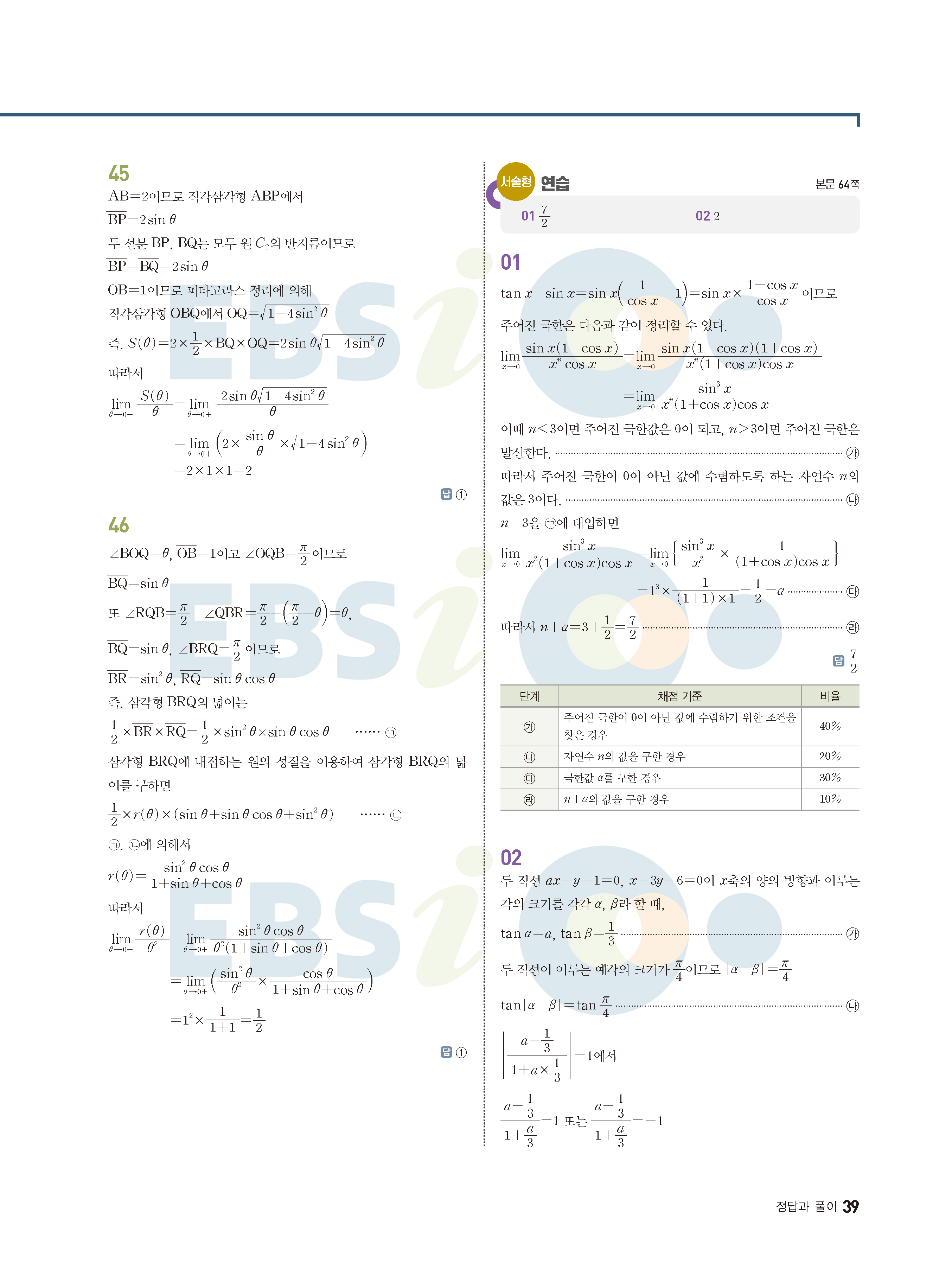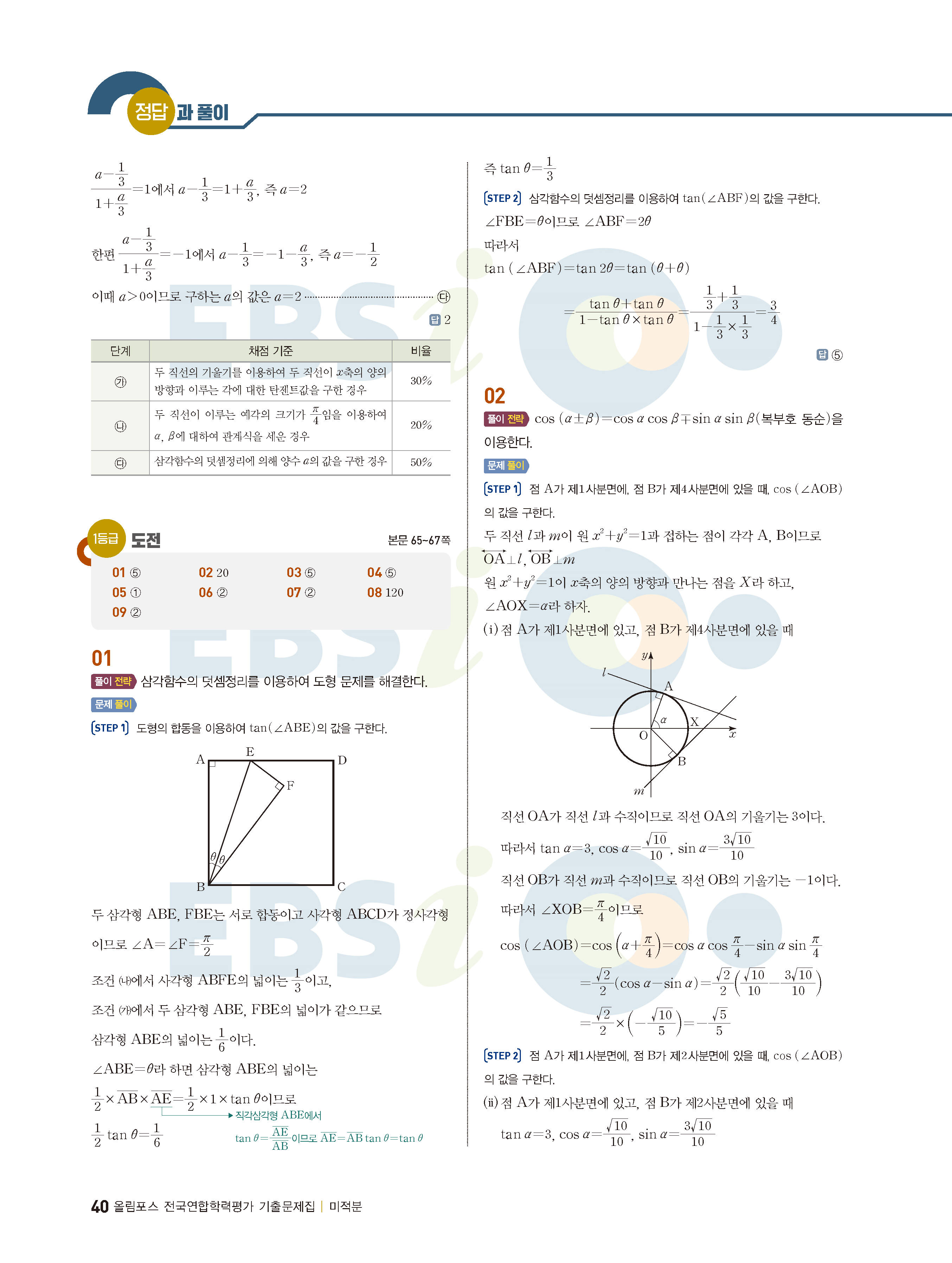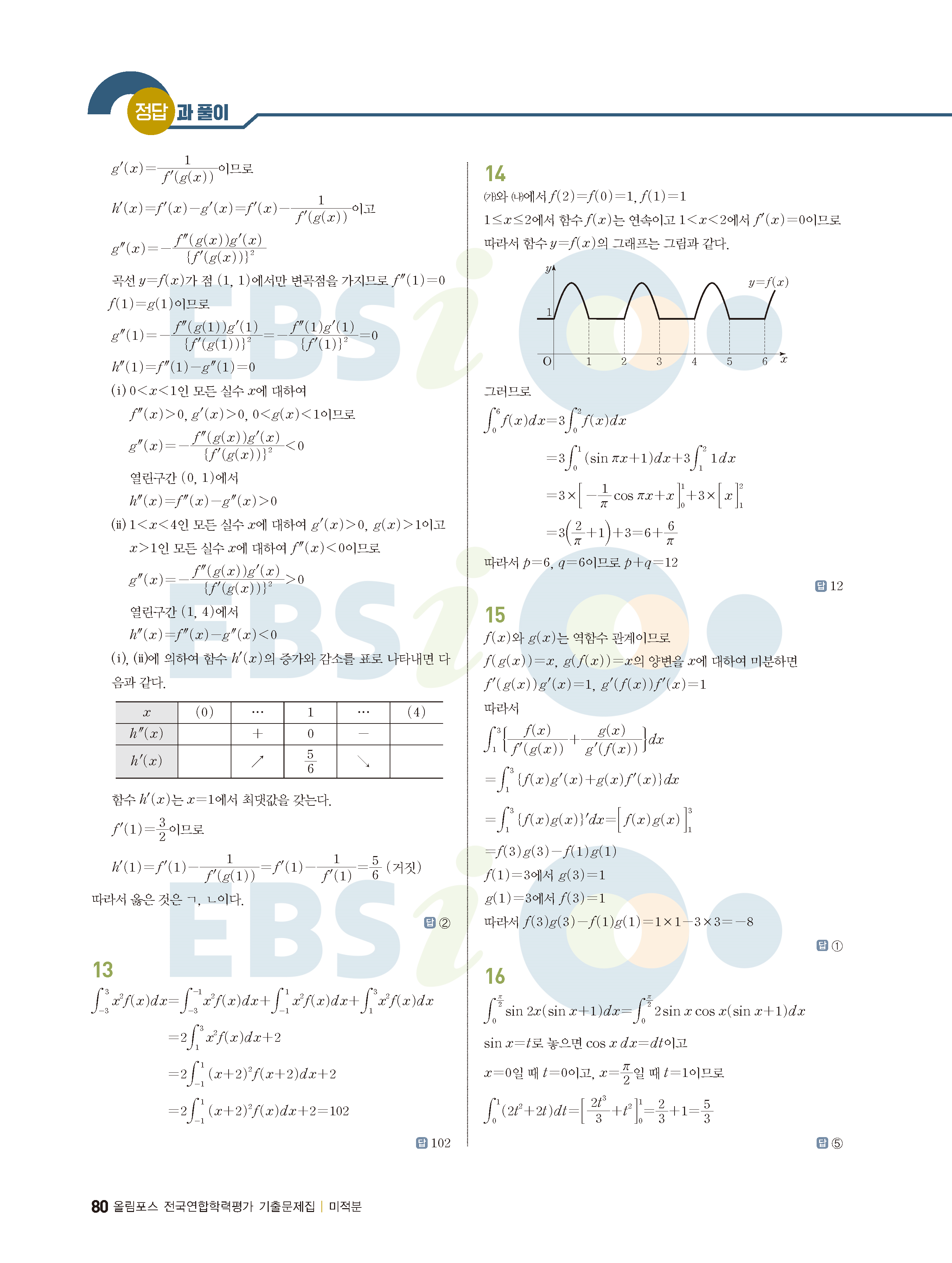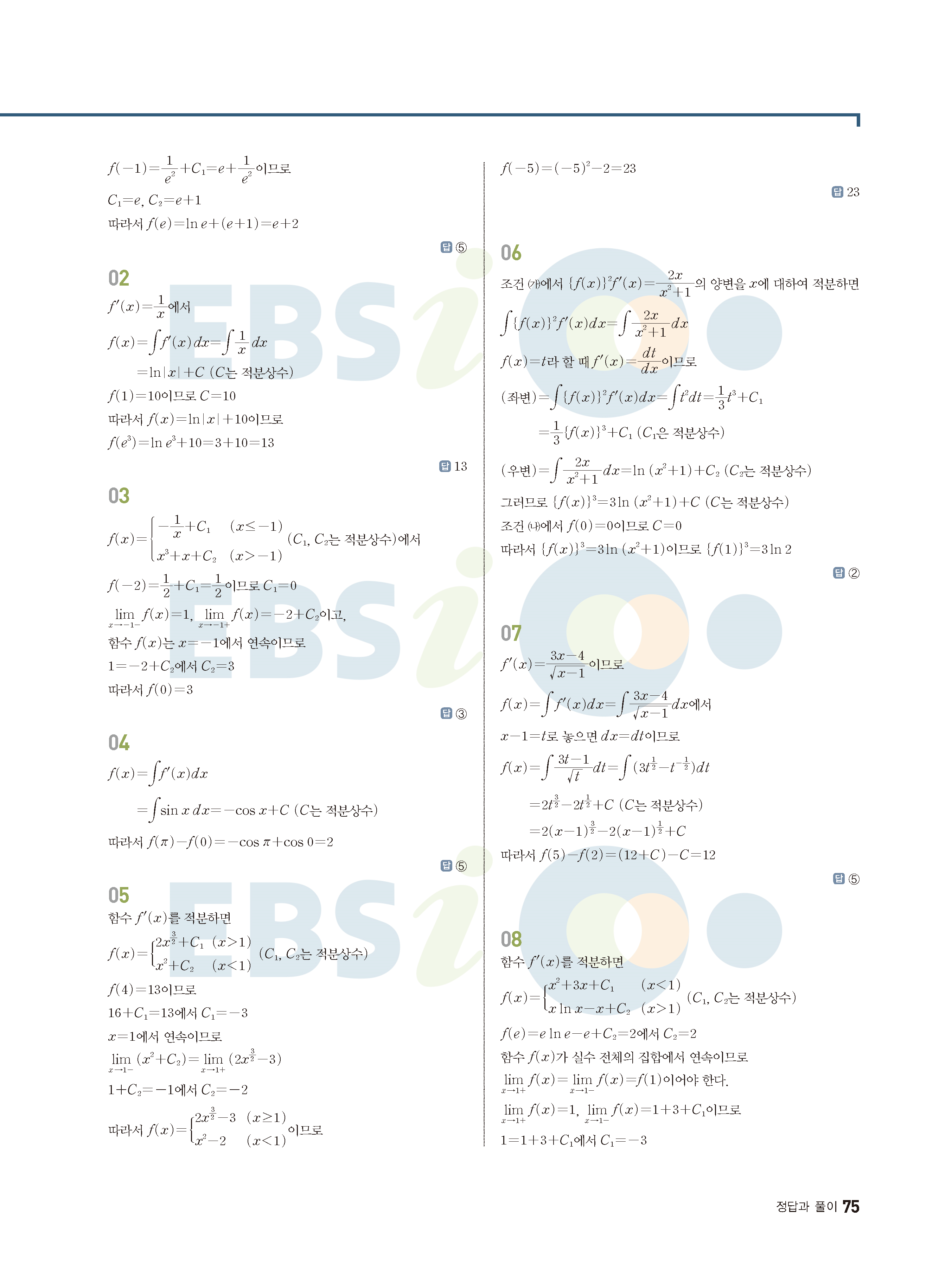 ebs 올림포스 기출문제집 미적분 답지 해설지 바로보는 사진답지 빠른답지 모바일최적화
