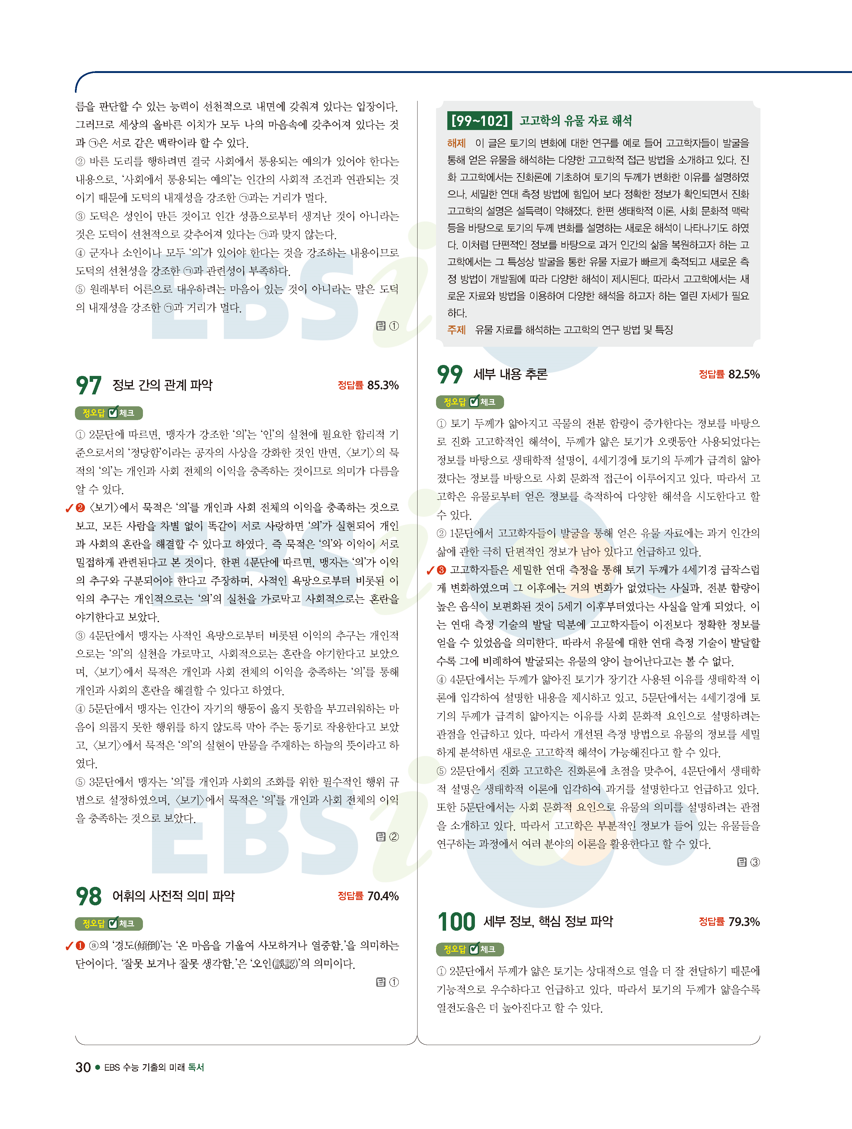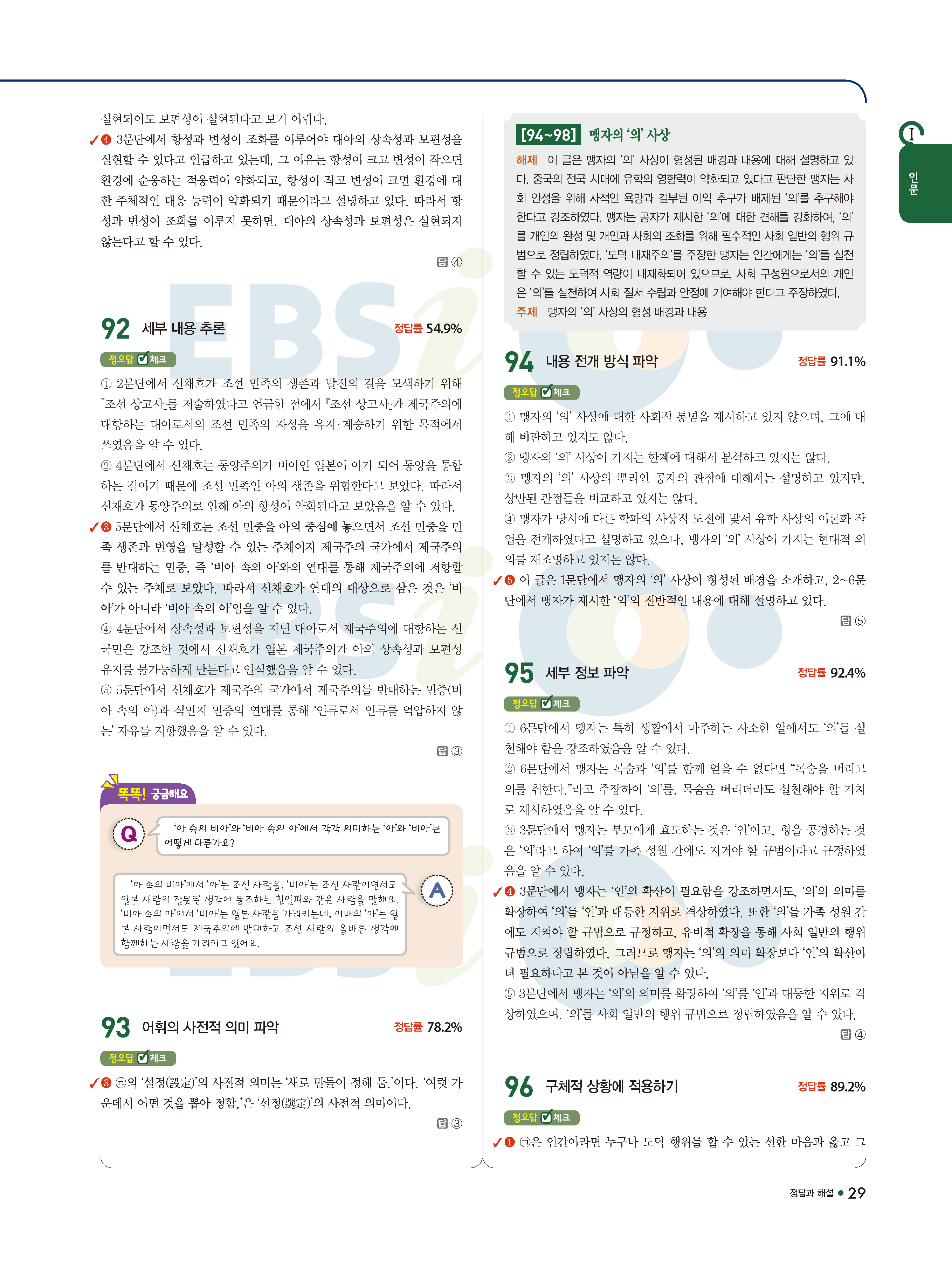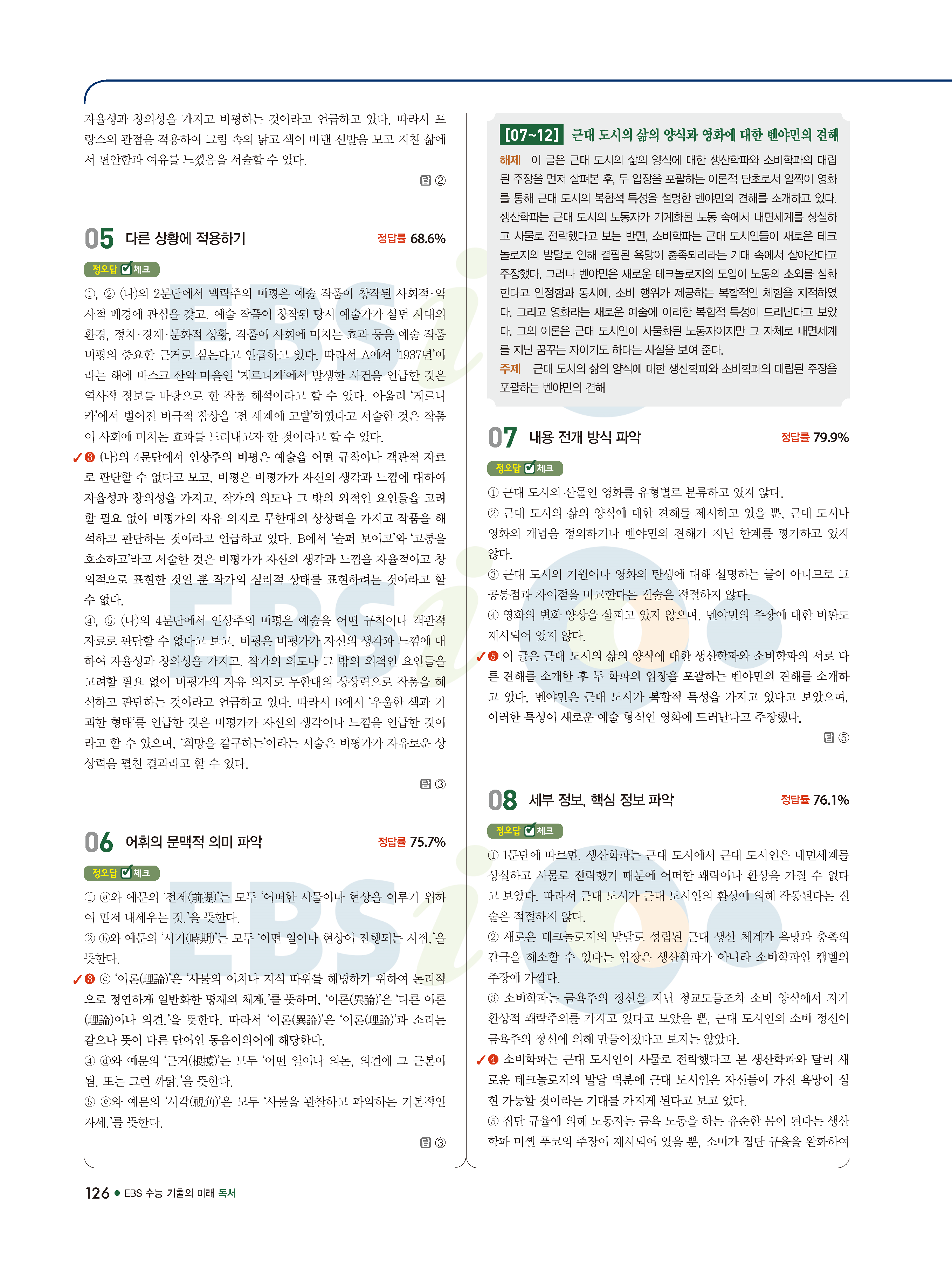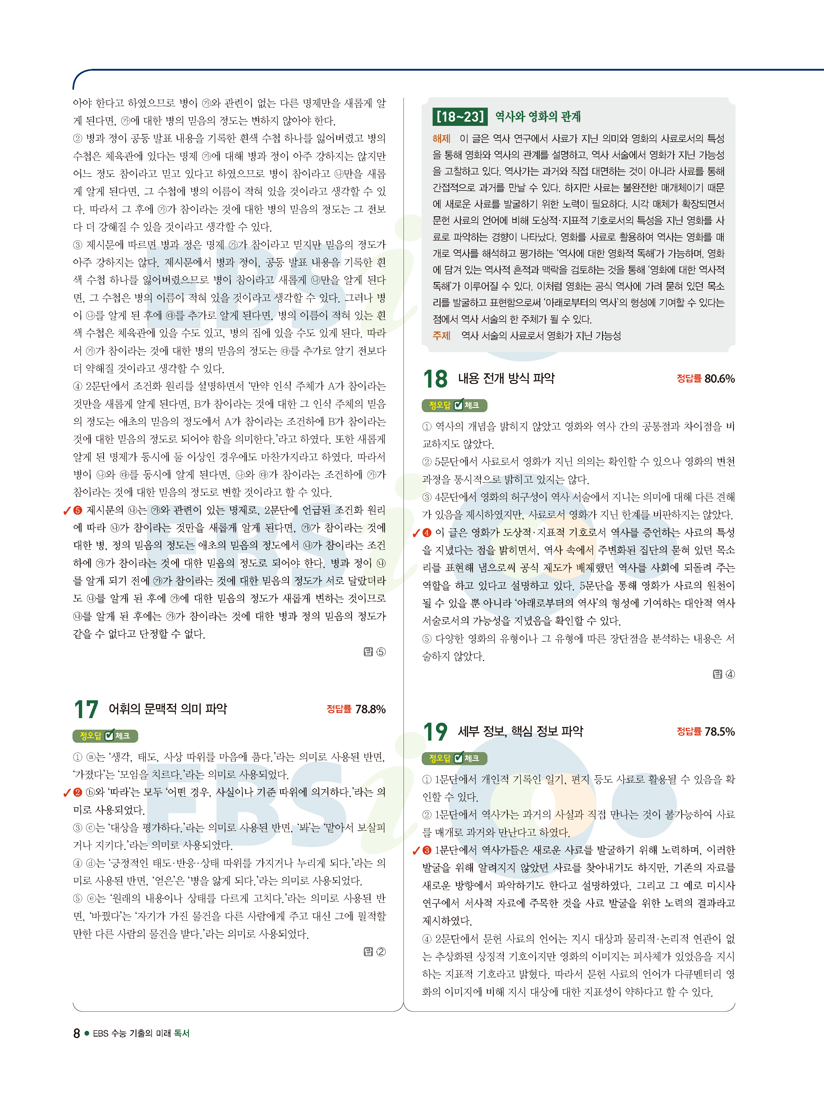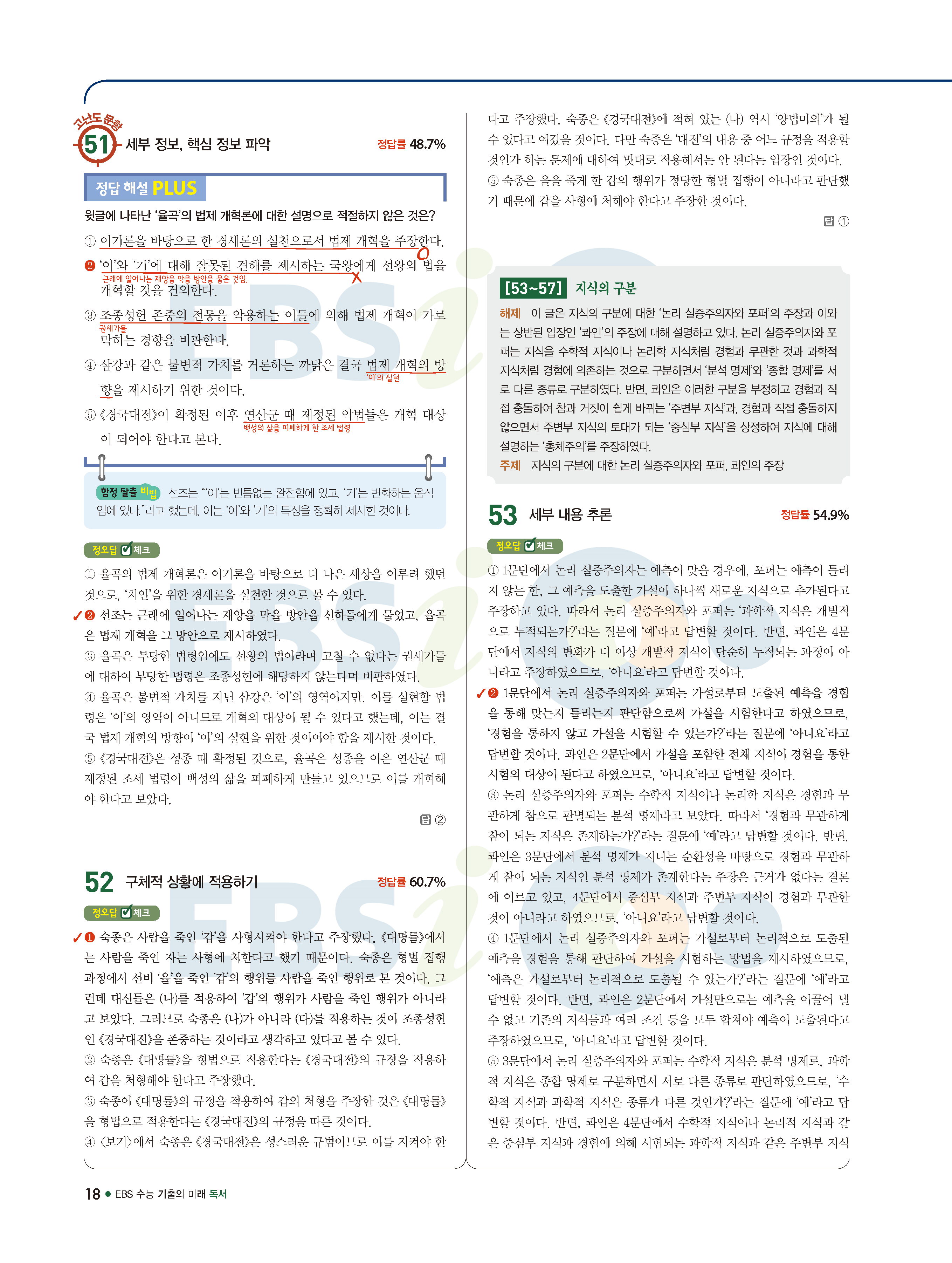 ebs 수능 기출의 미래 독서 답지 해설지 바로보는 사진답지 빠른답지 모바일최적화