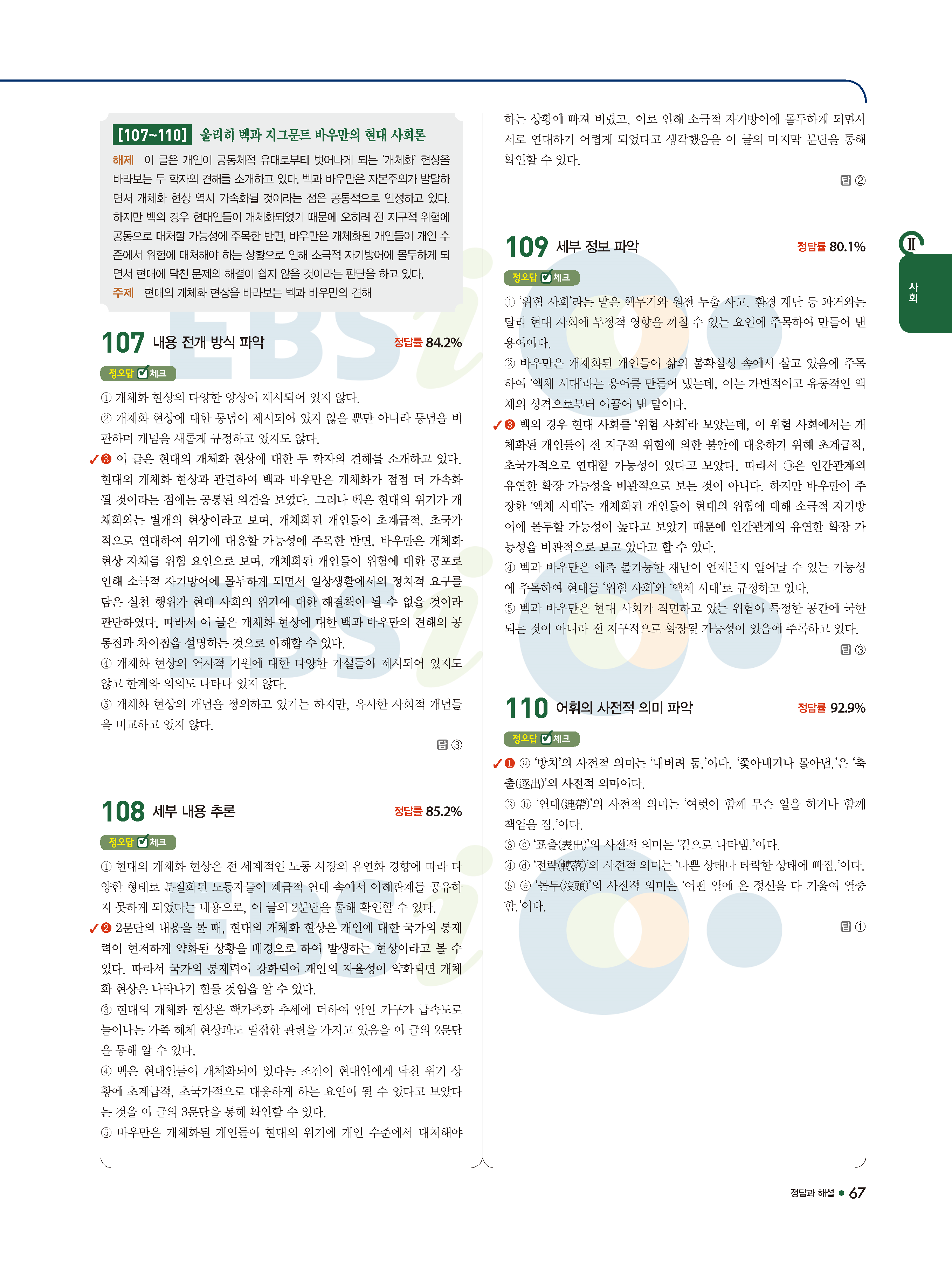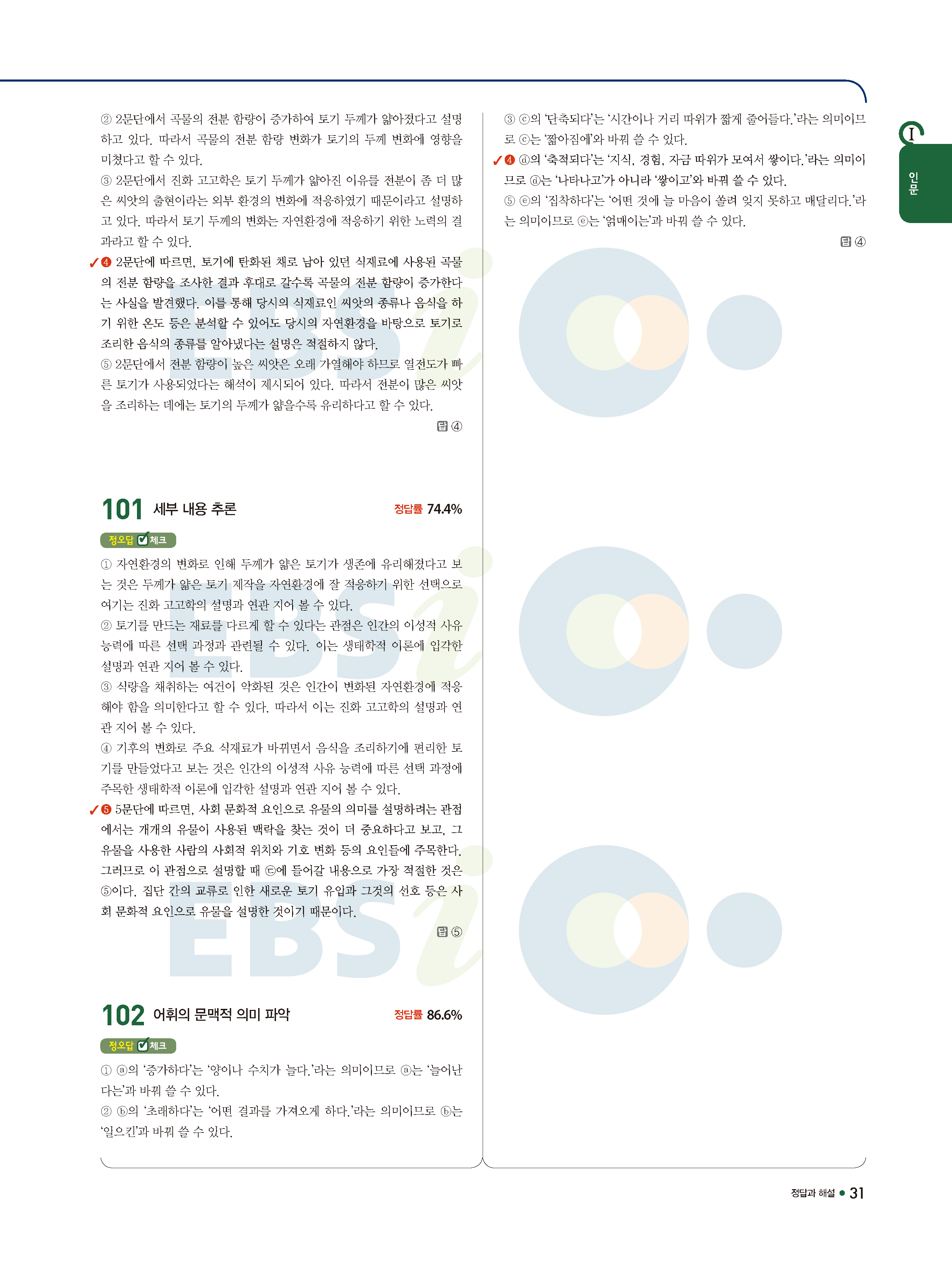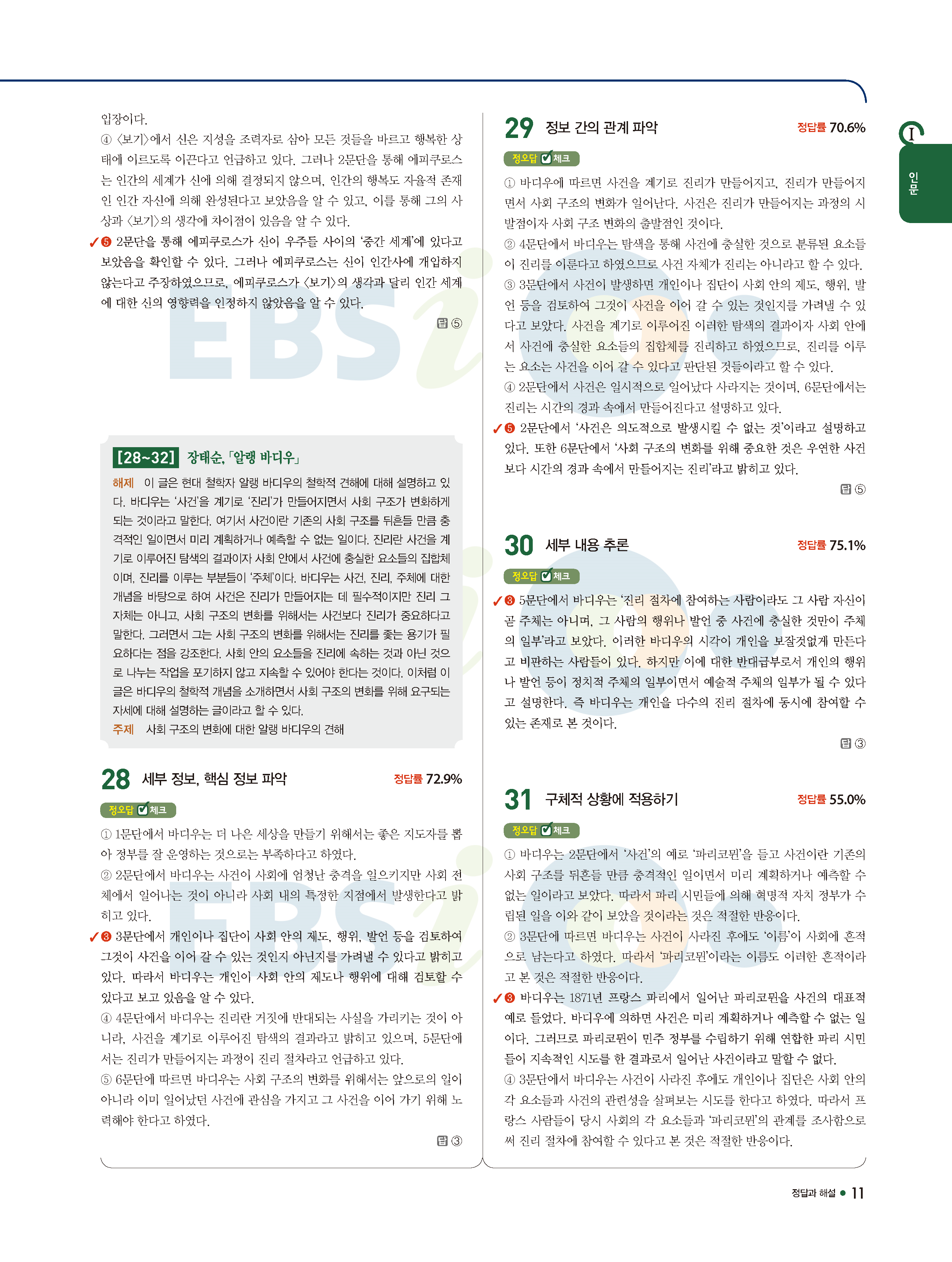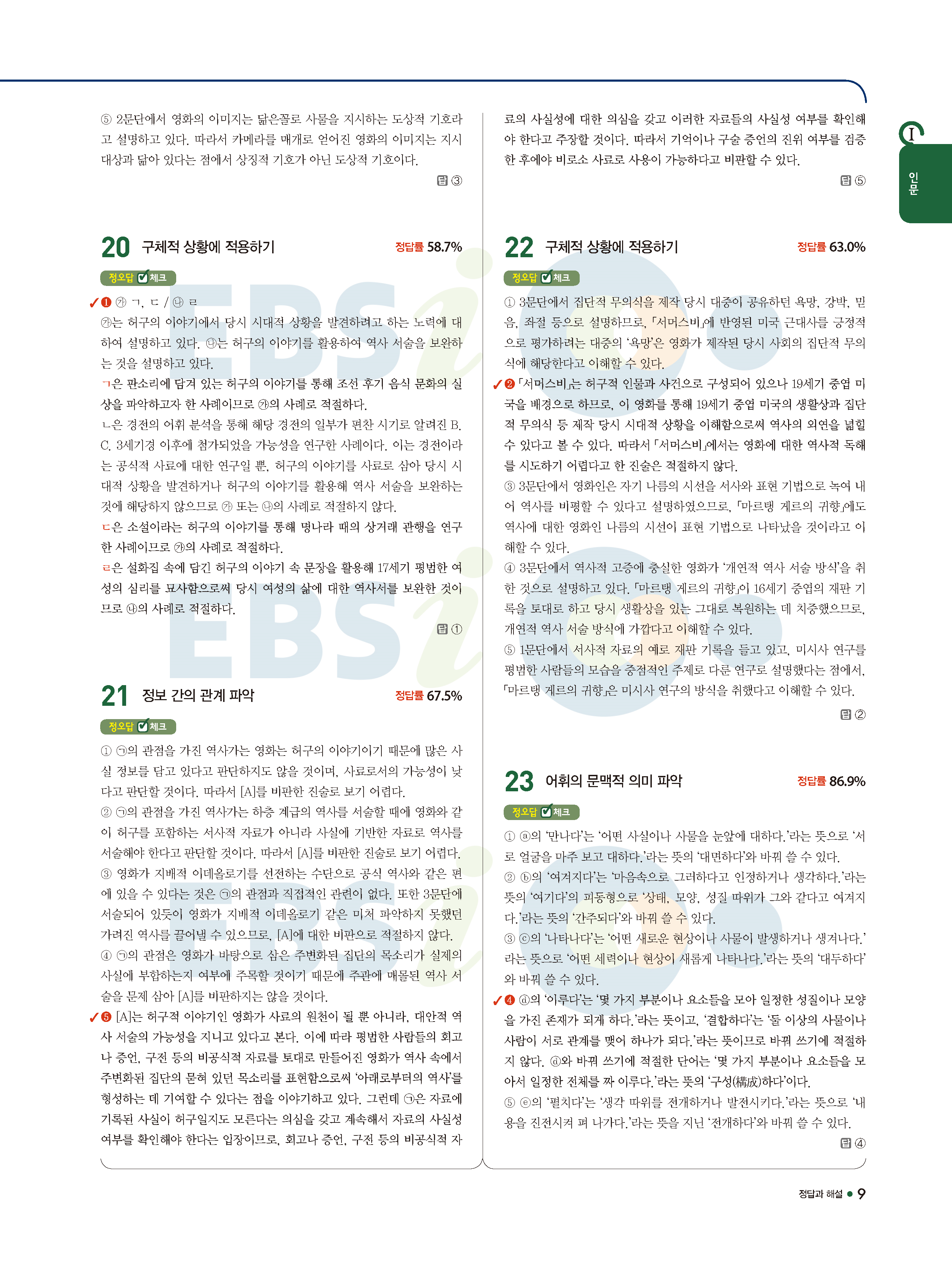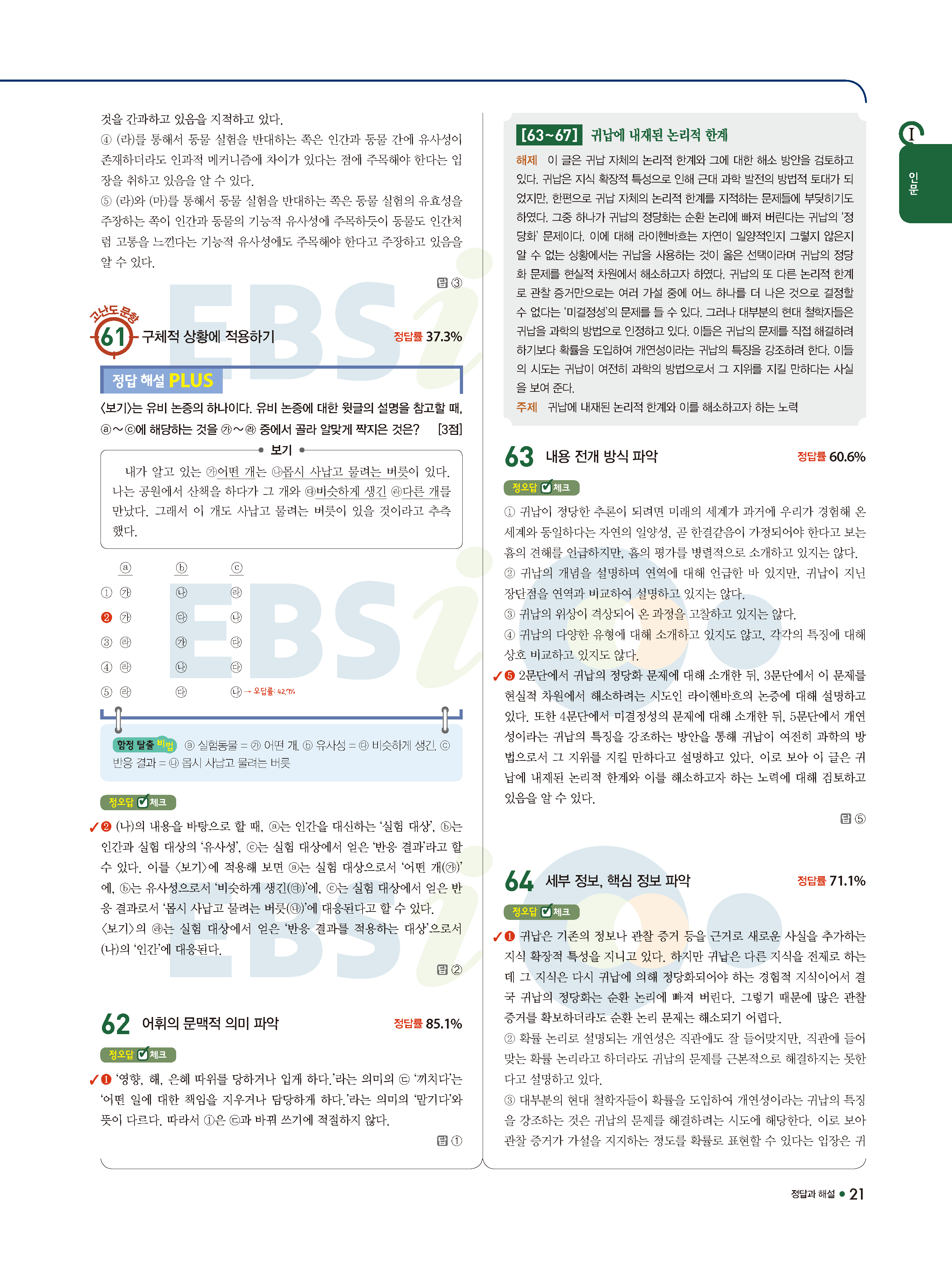 ebs 수능 기출의 미래 독서 답지 해설지 바로보는 사진답지 빠른답지 모바일최적화