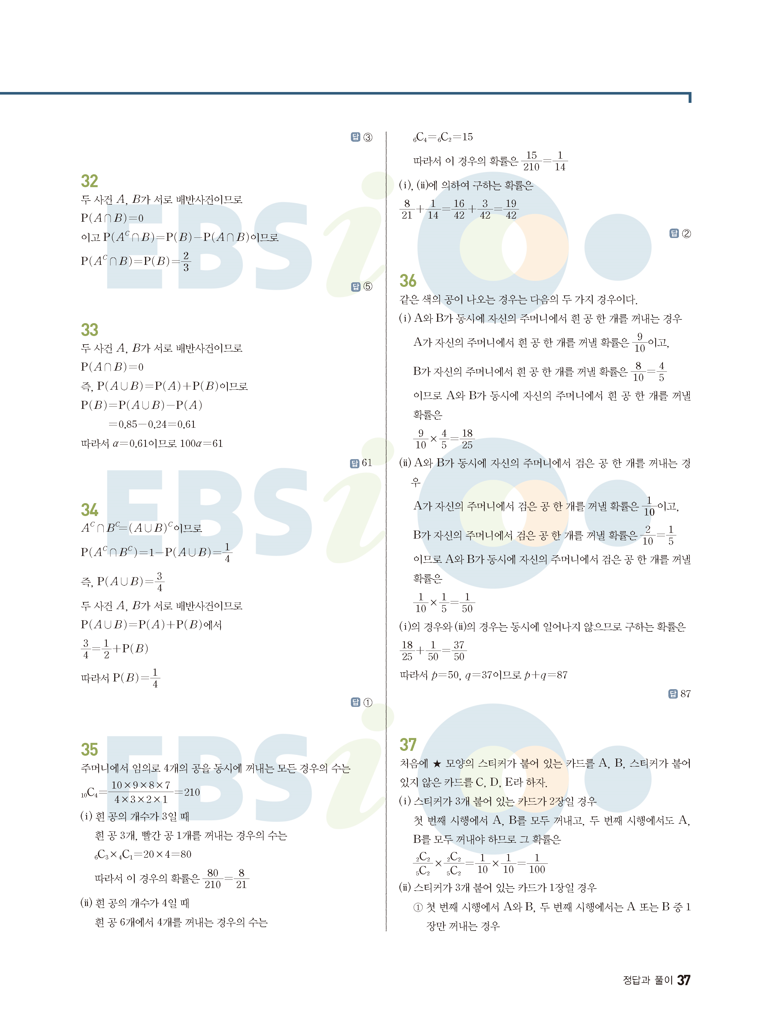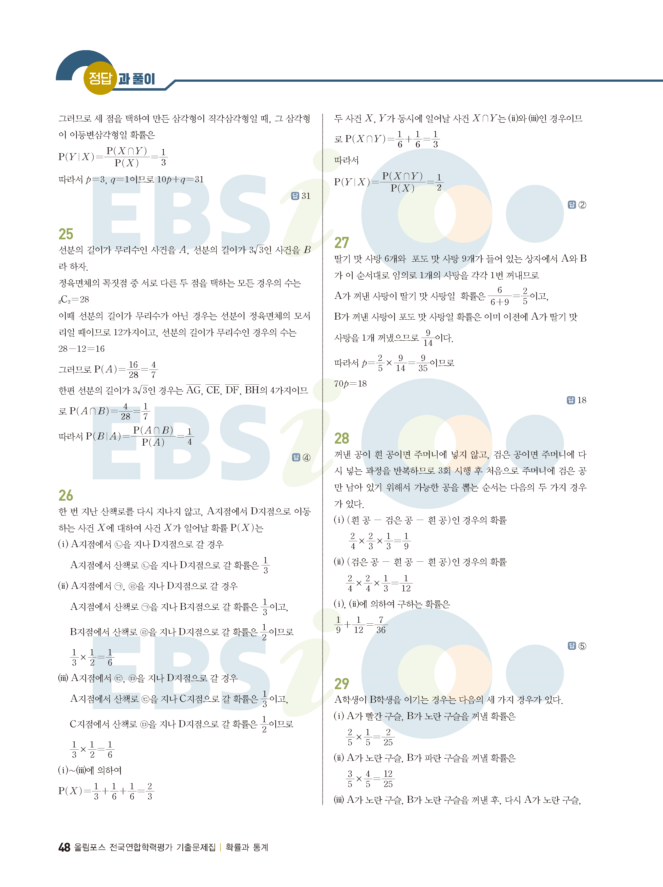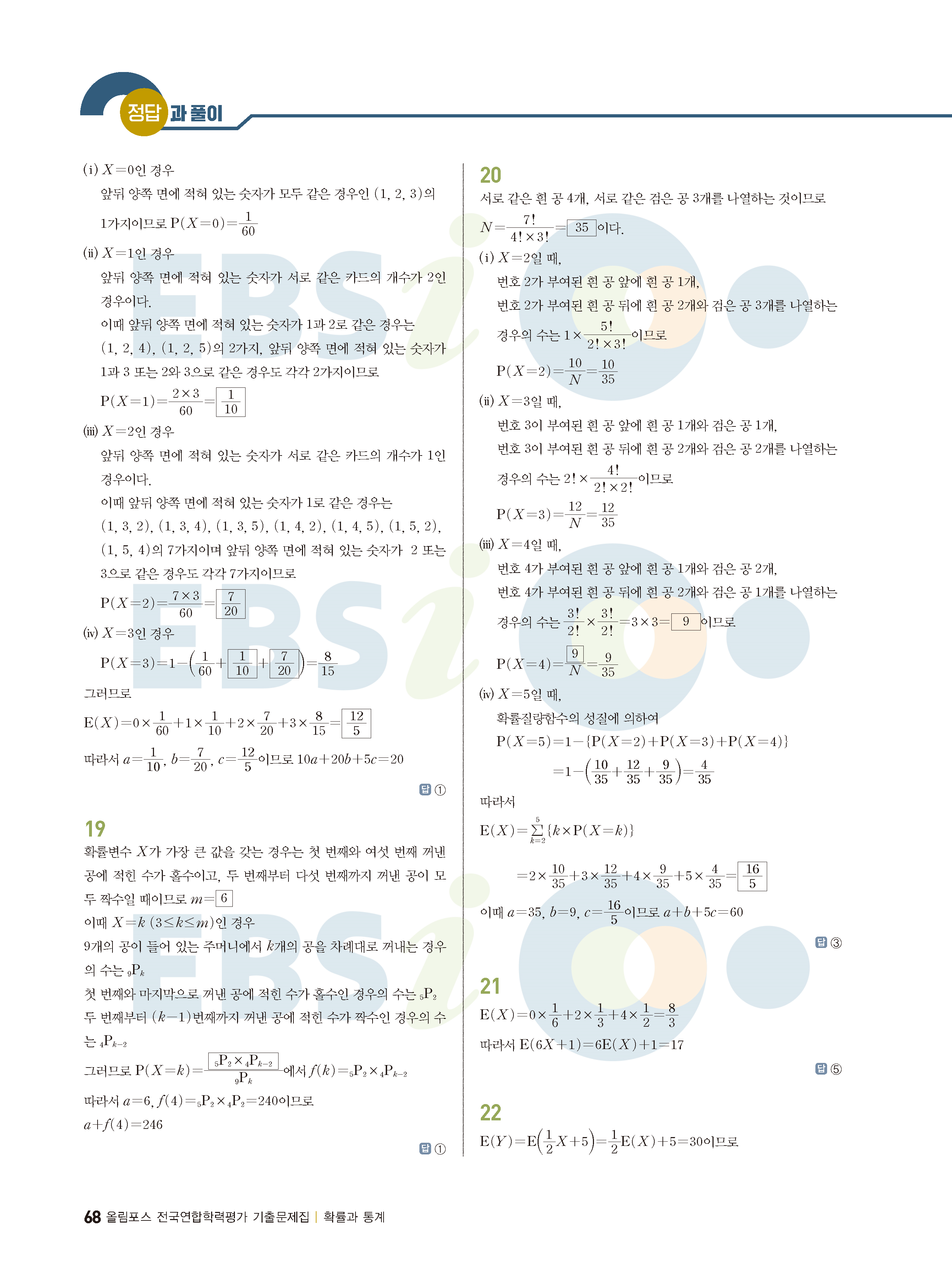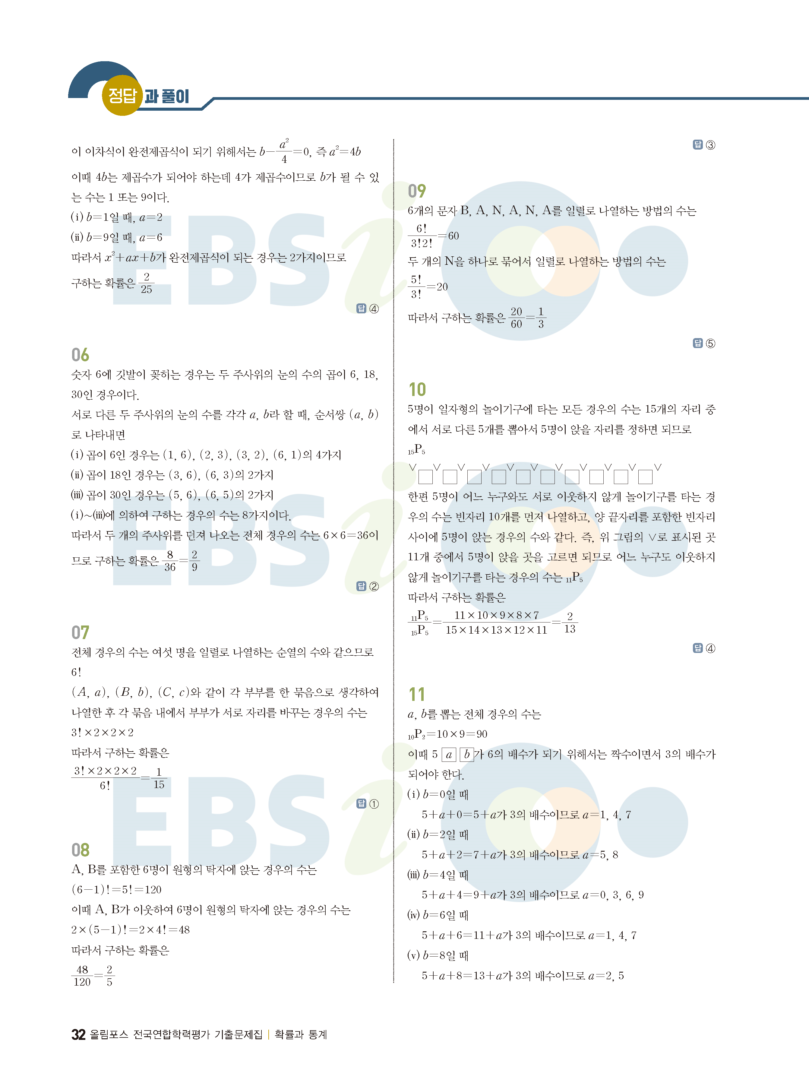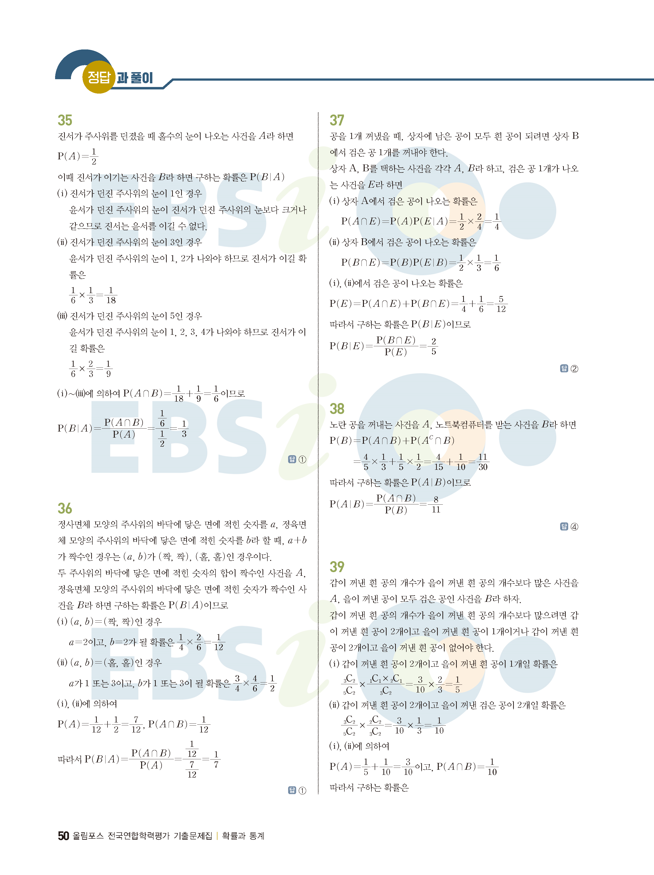 ebs 수능 기출의 미래 확률과통계 답지 해설지 바로보는 사진답지 빠른답지 모바일최적화