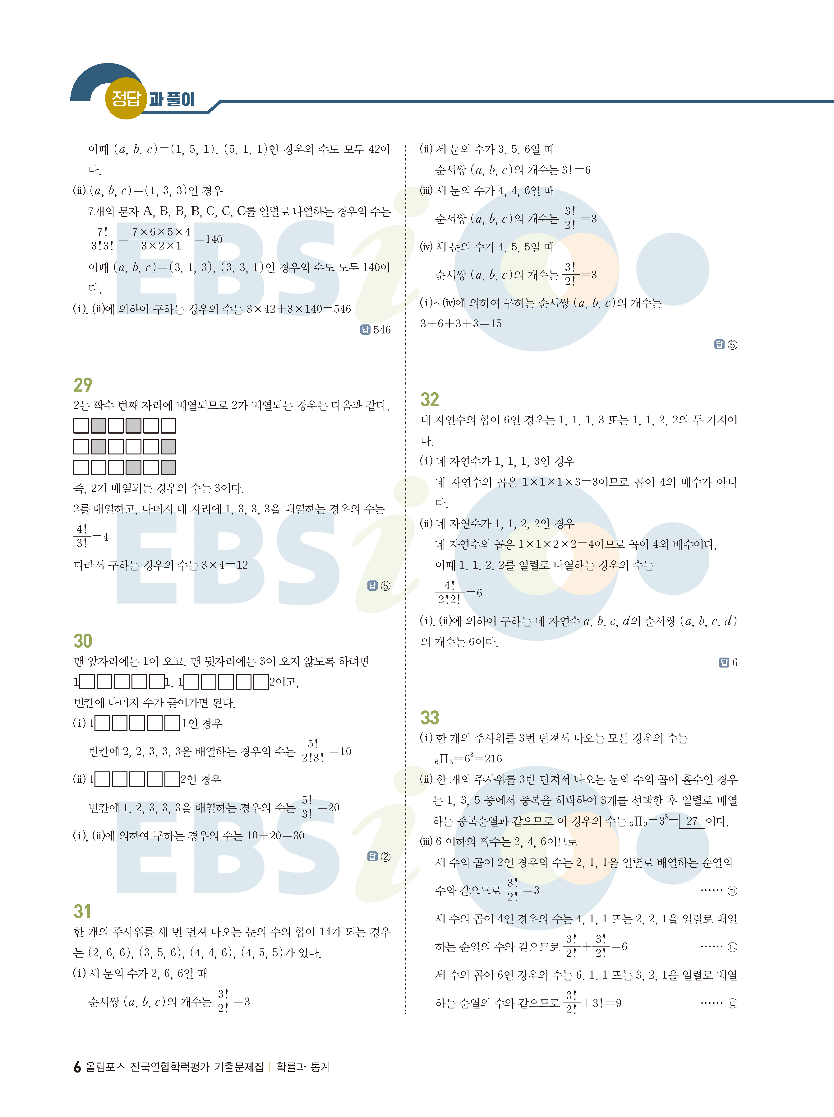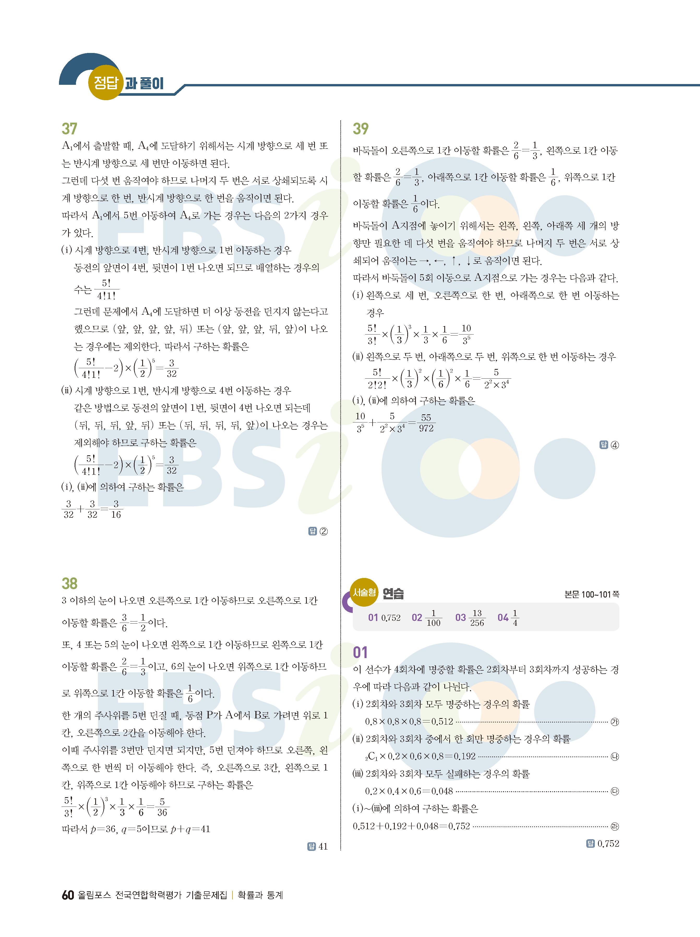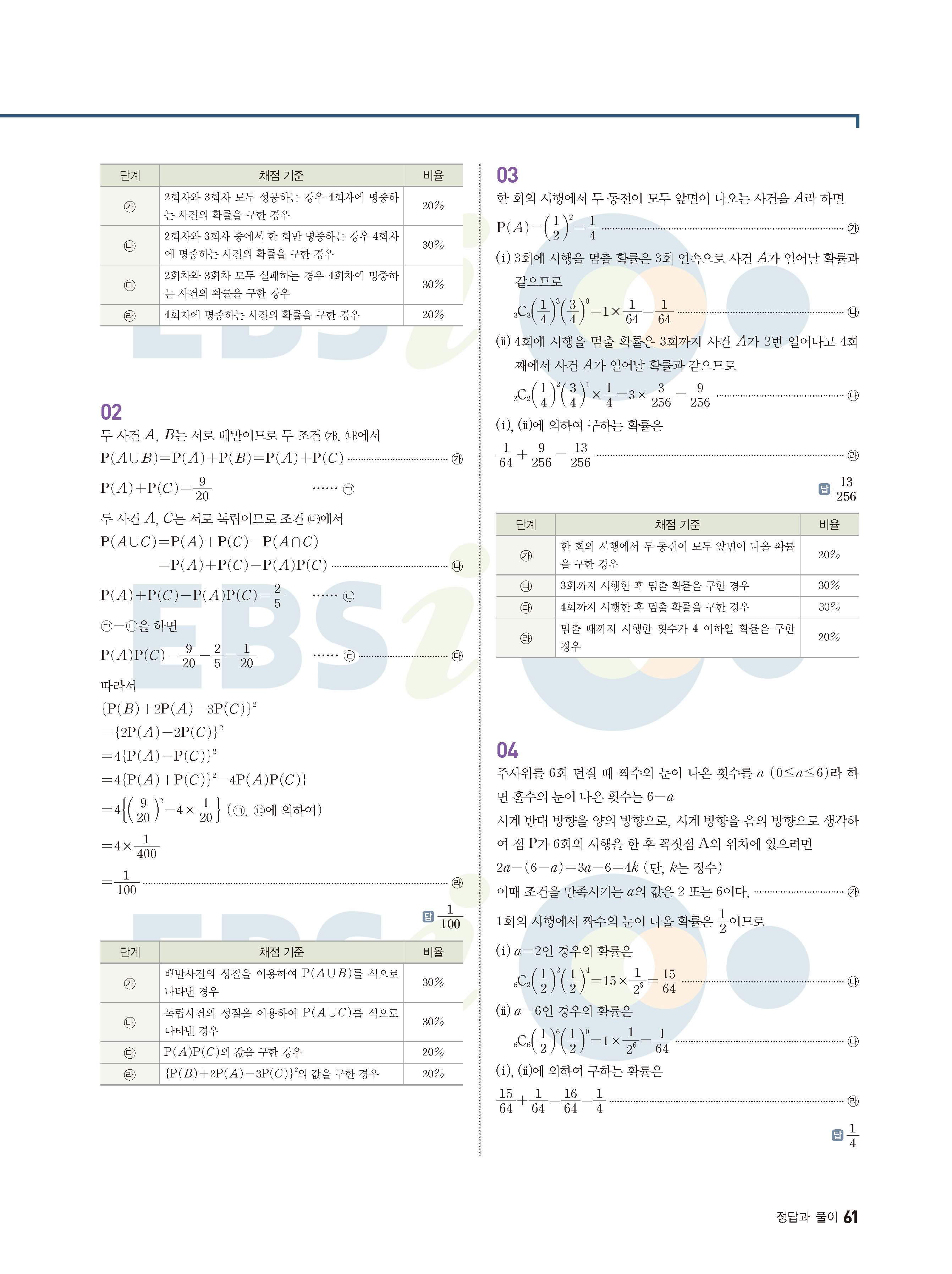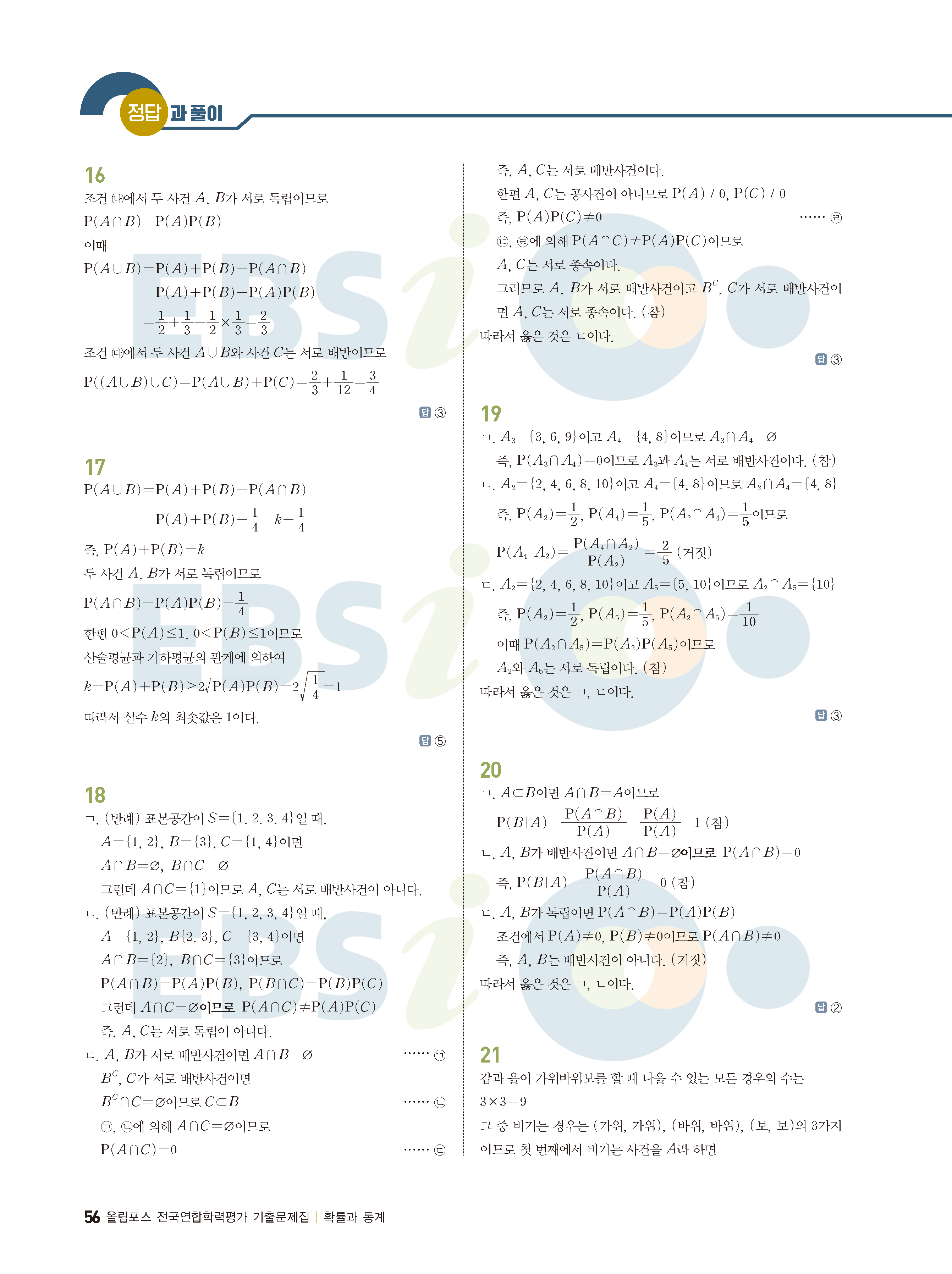 ebs 수능 기출의 미래 확률과통계 답지 해설지 바로보는 사진답지 빠른답지 모바일최적화