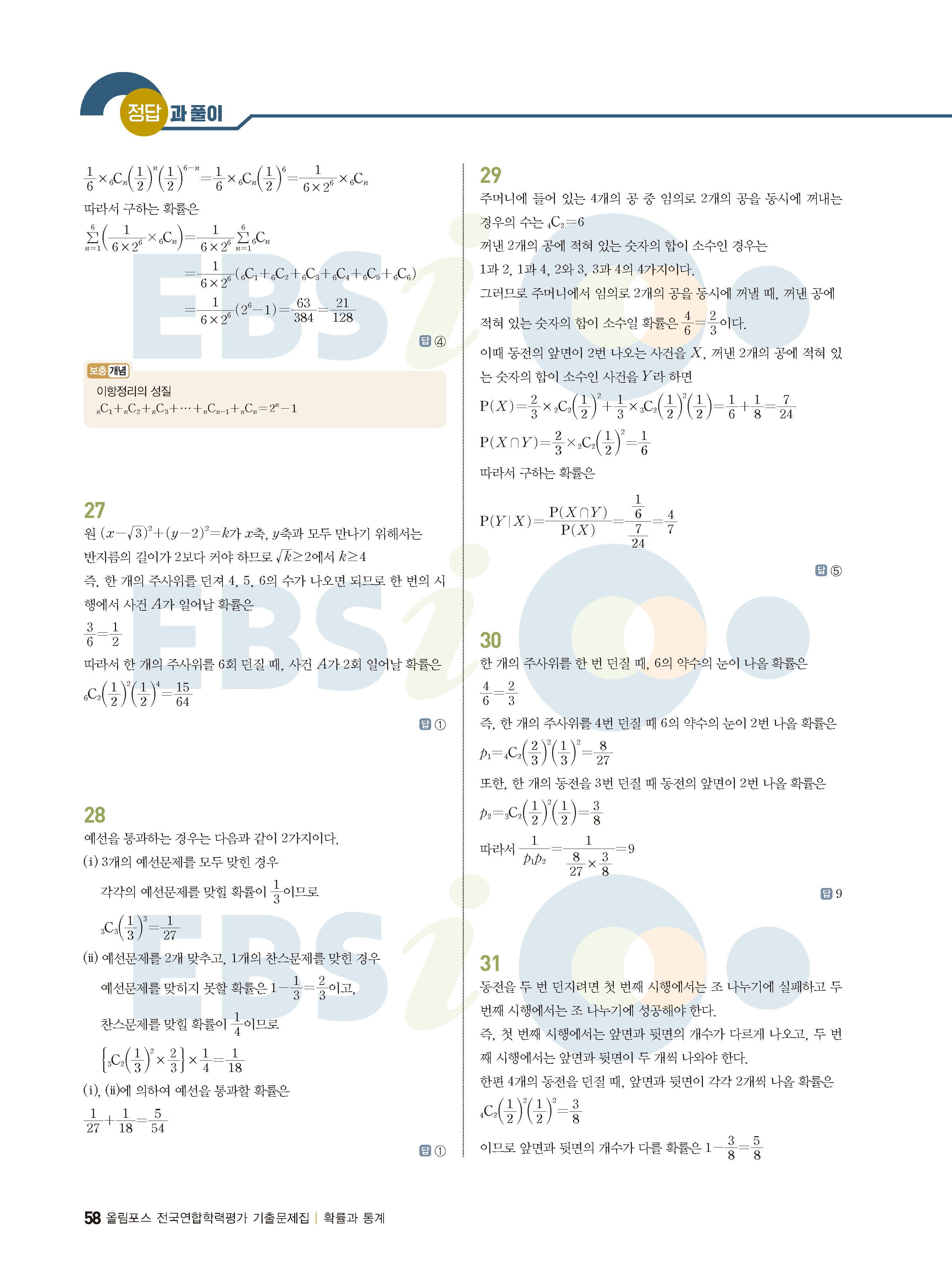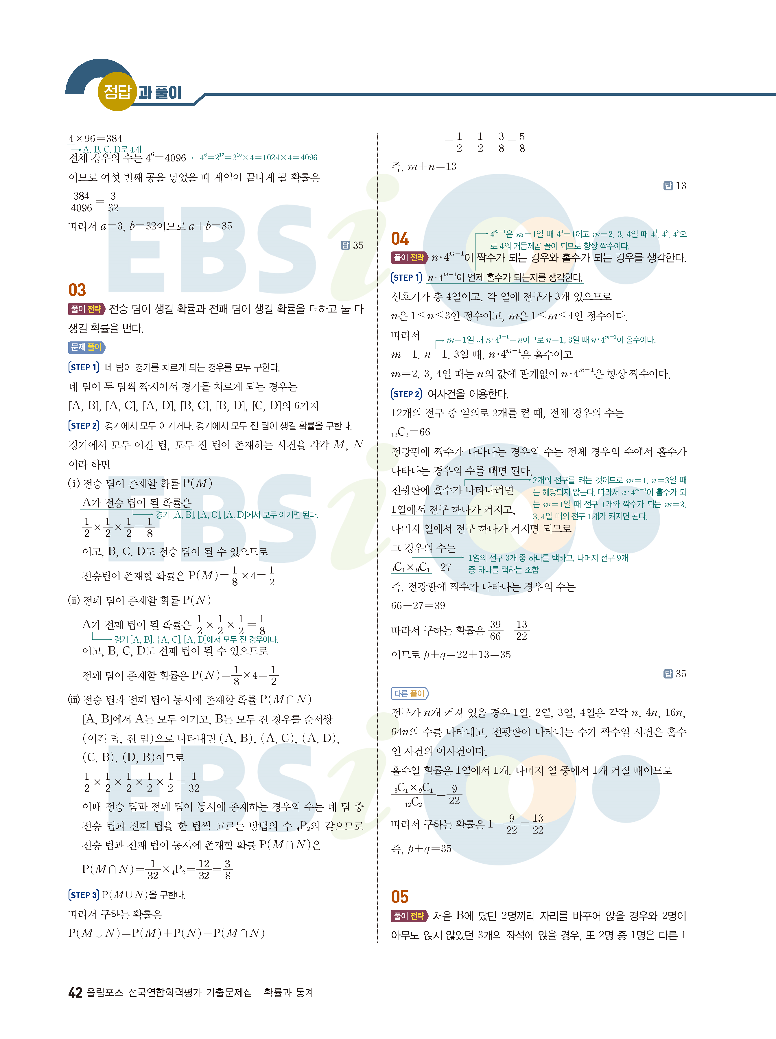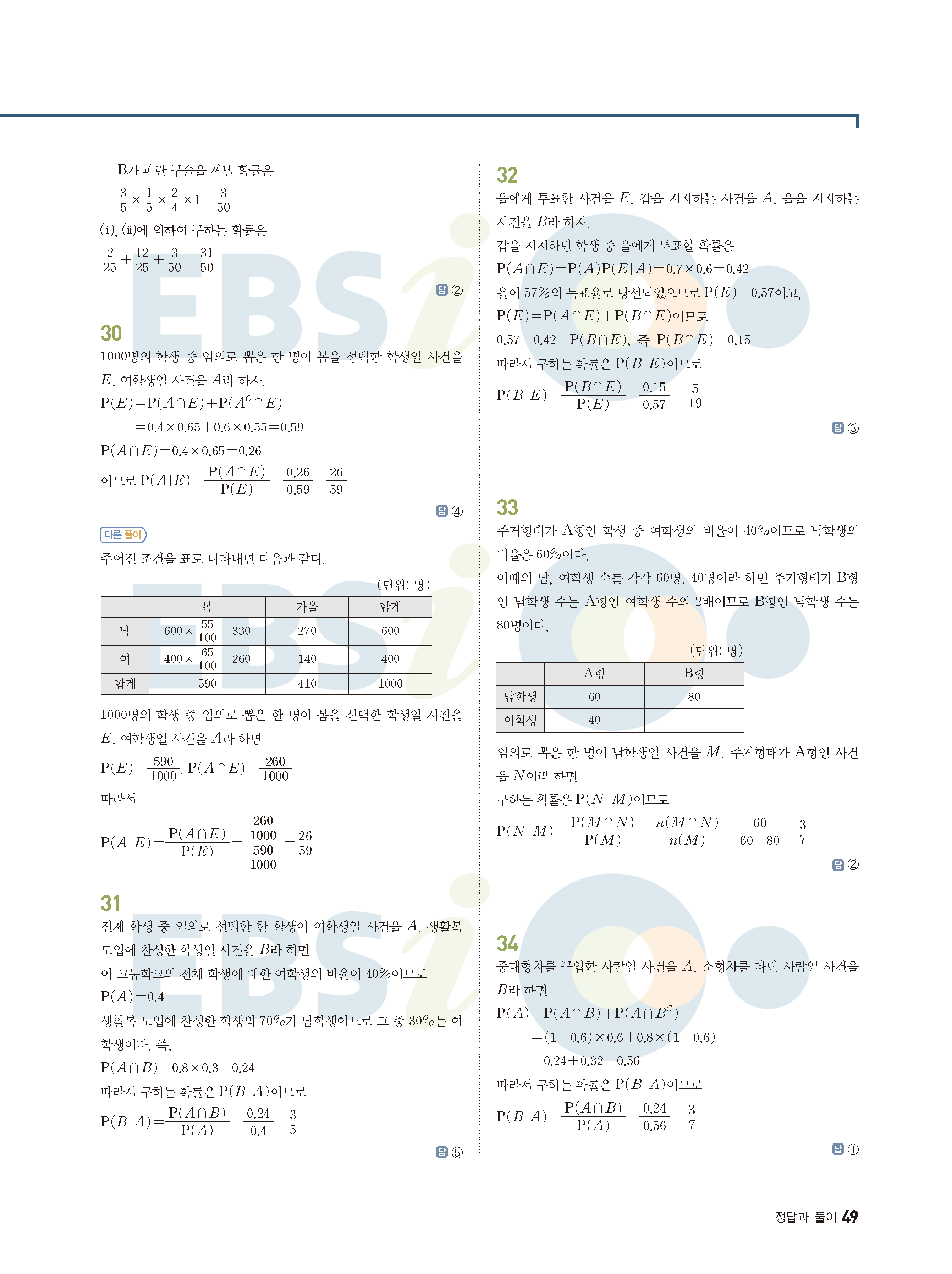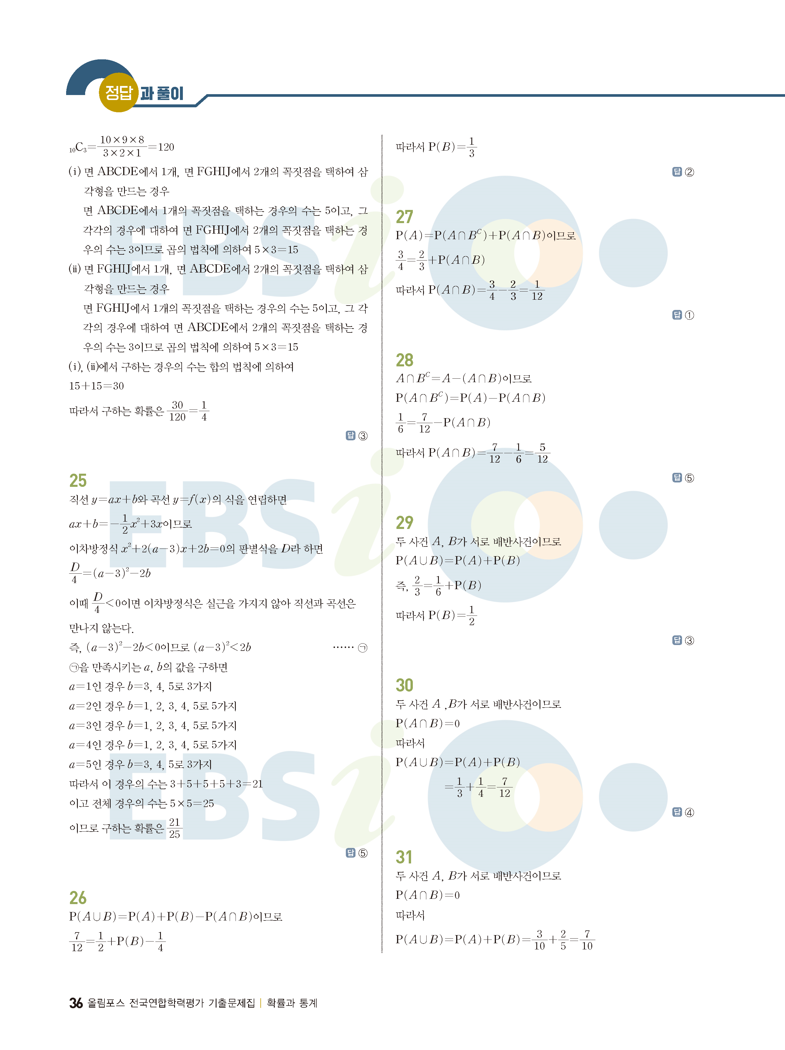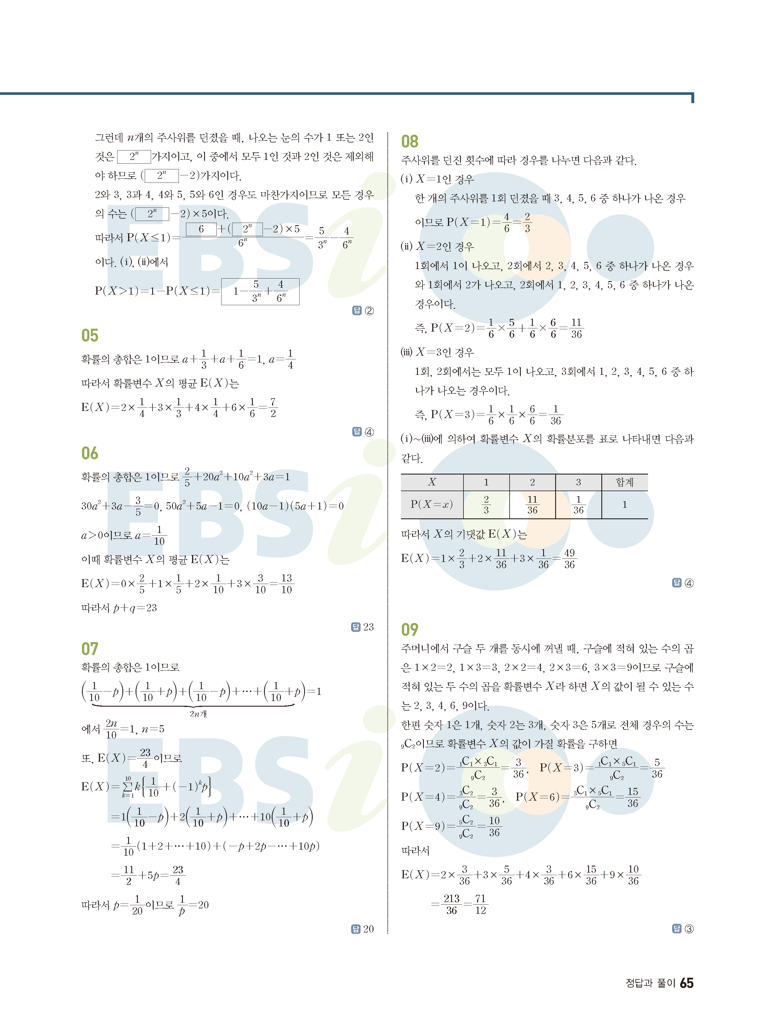 ebs 수능 기출의 미래 확률과통계 답지 해설지 바로보는 사진답지 빠른답지 모바일최적화