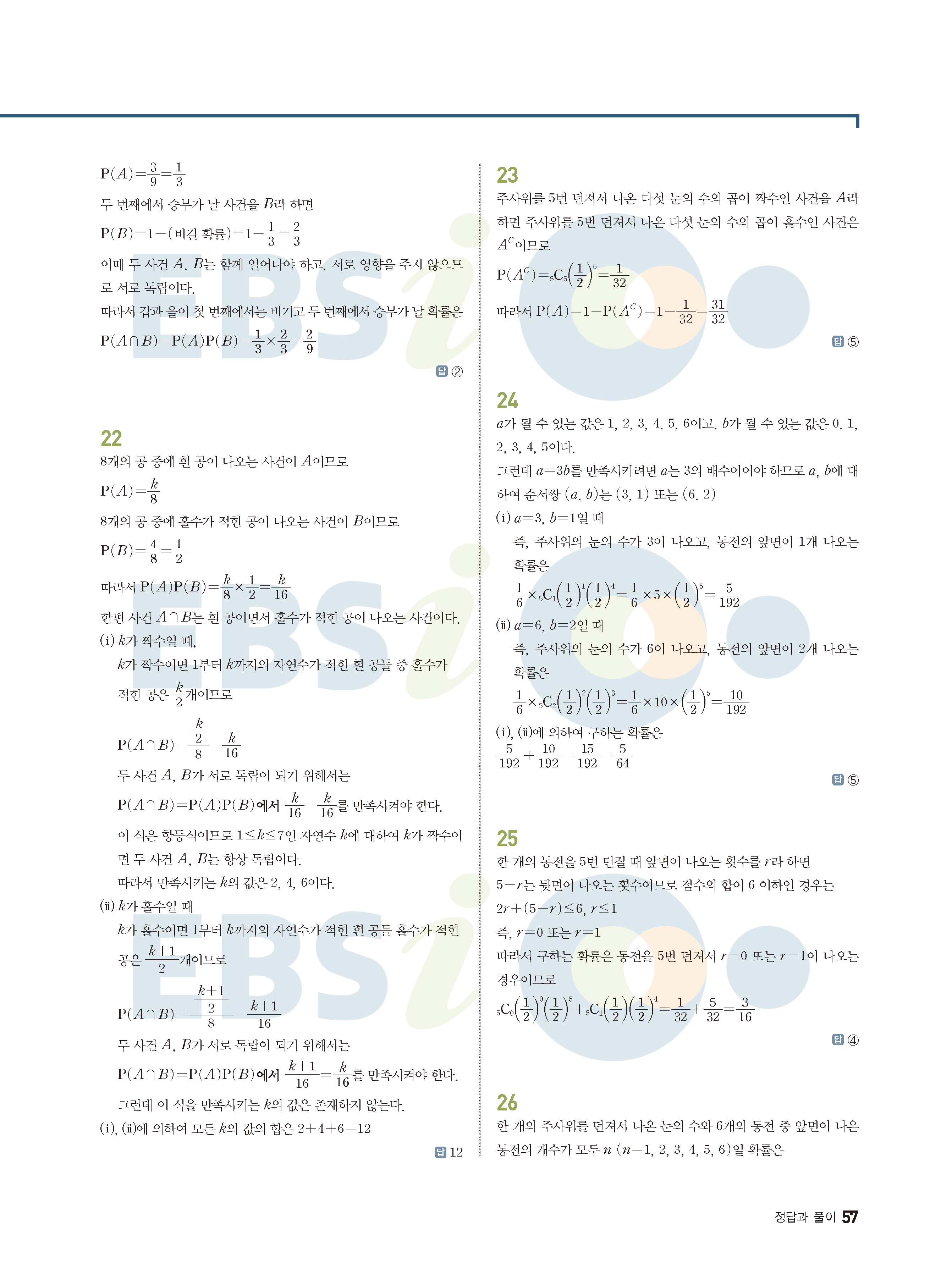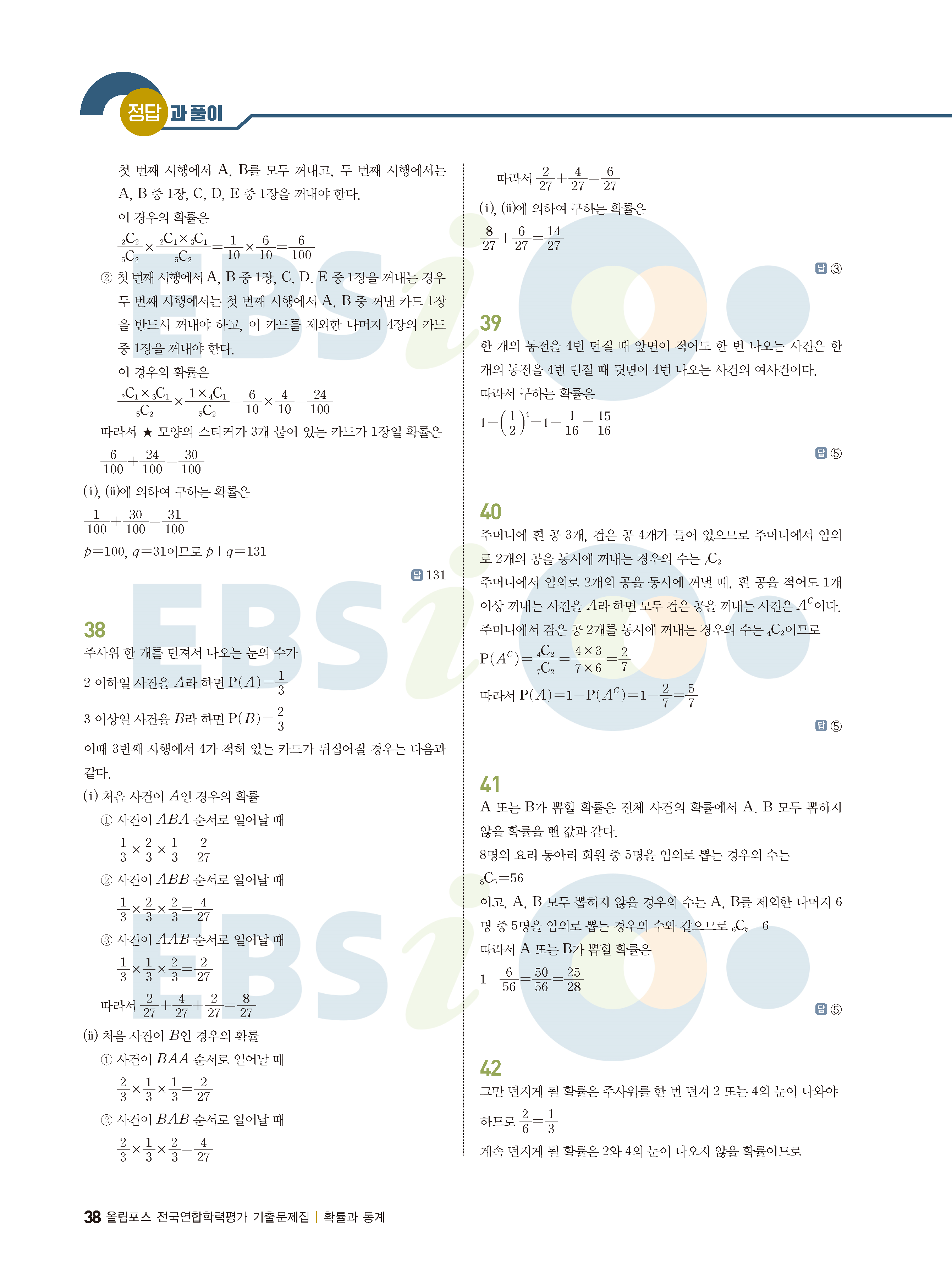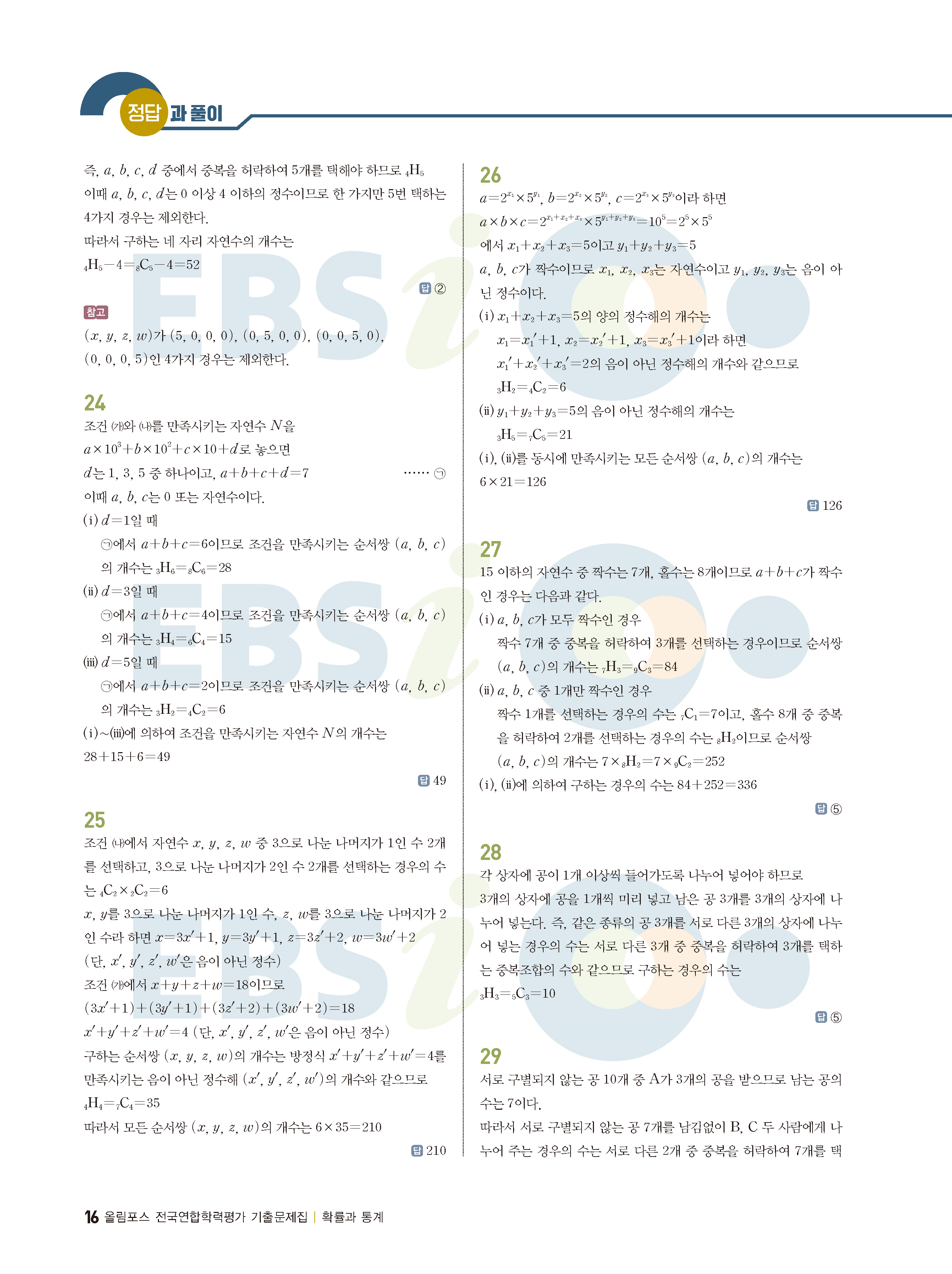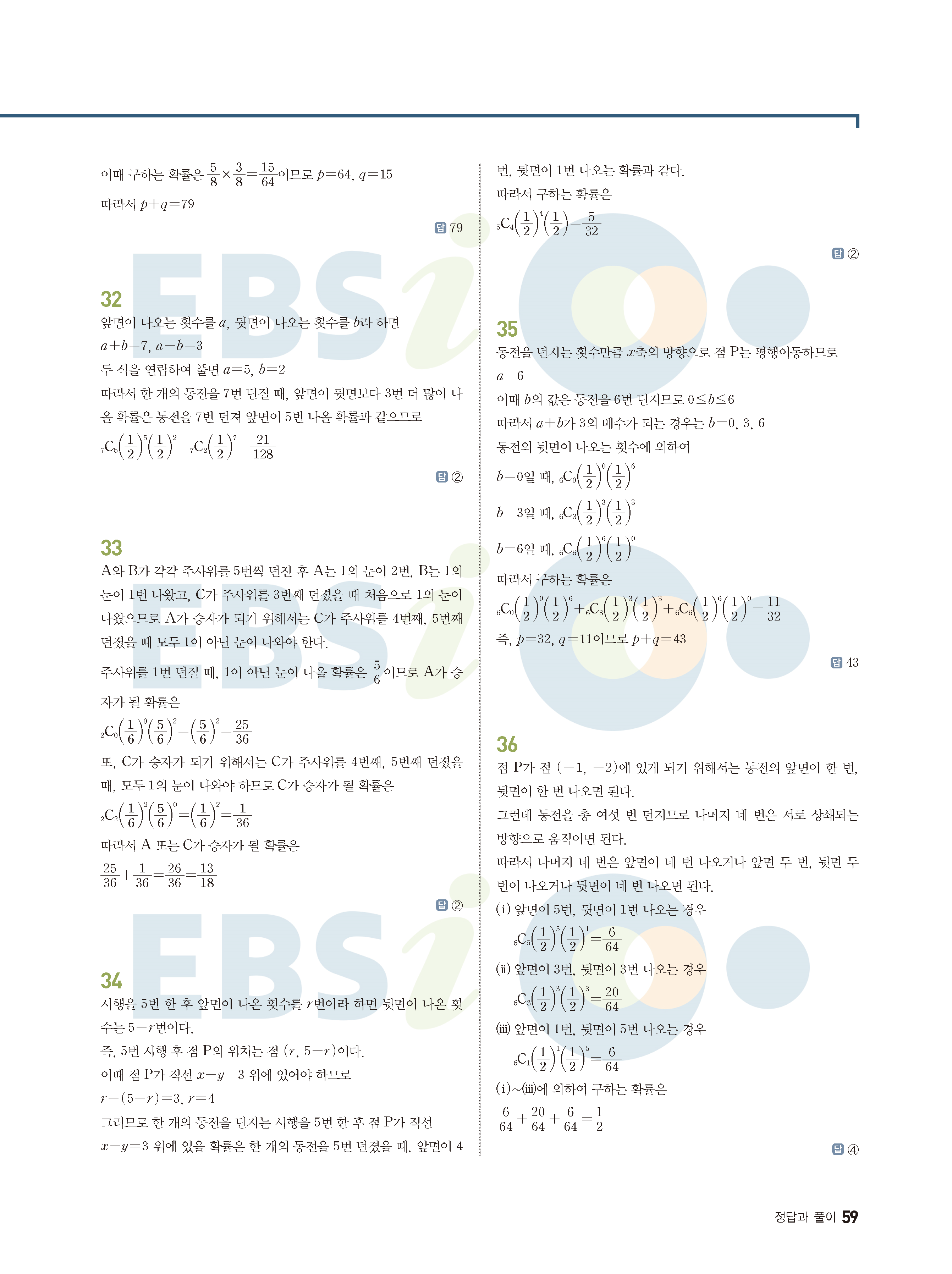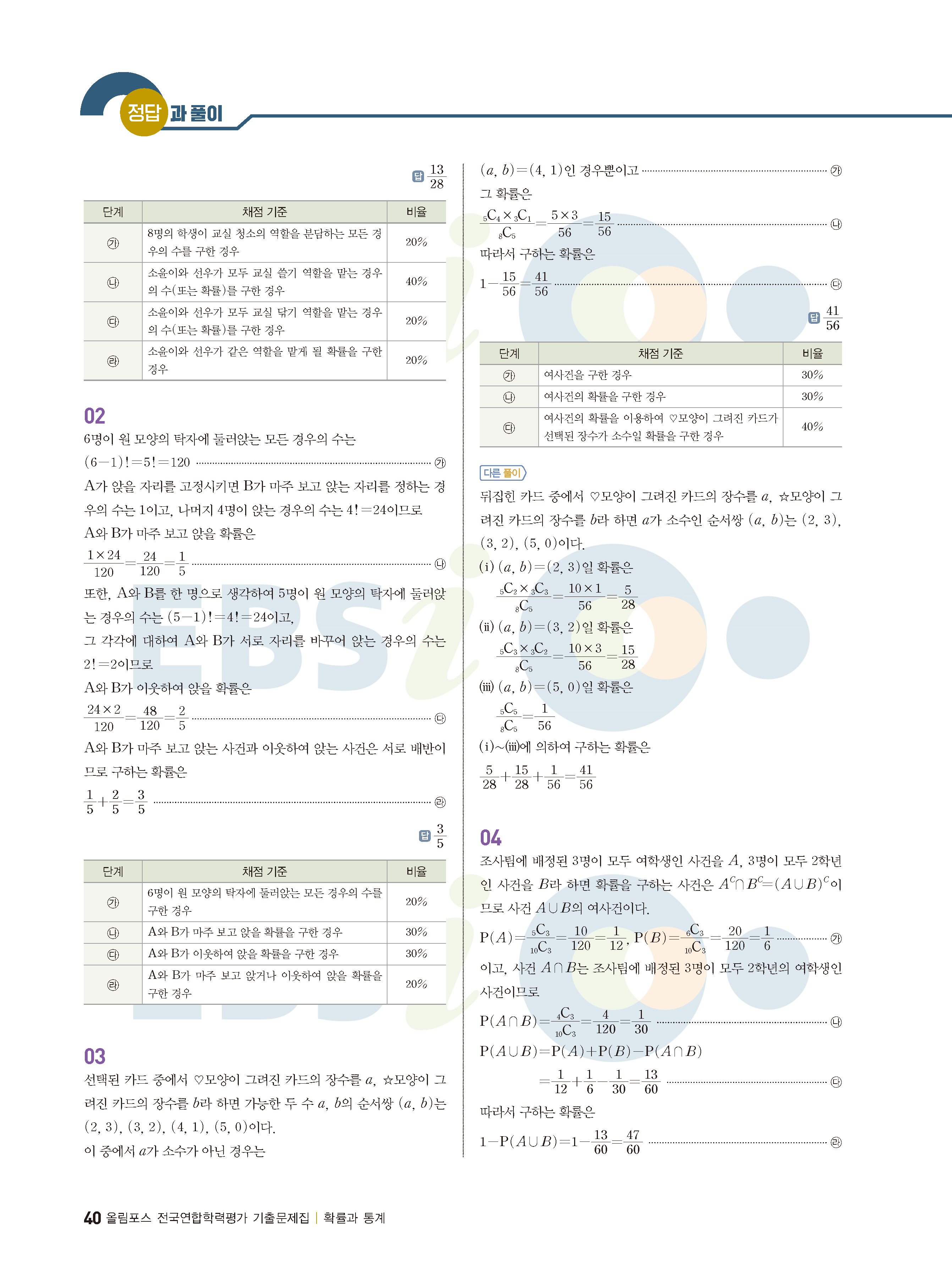 ebs 수능 기출의 미래 확률과통계 답지 해설지 바로보는 사진답지 빠른답지 모바일최적화