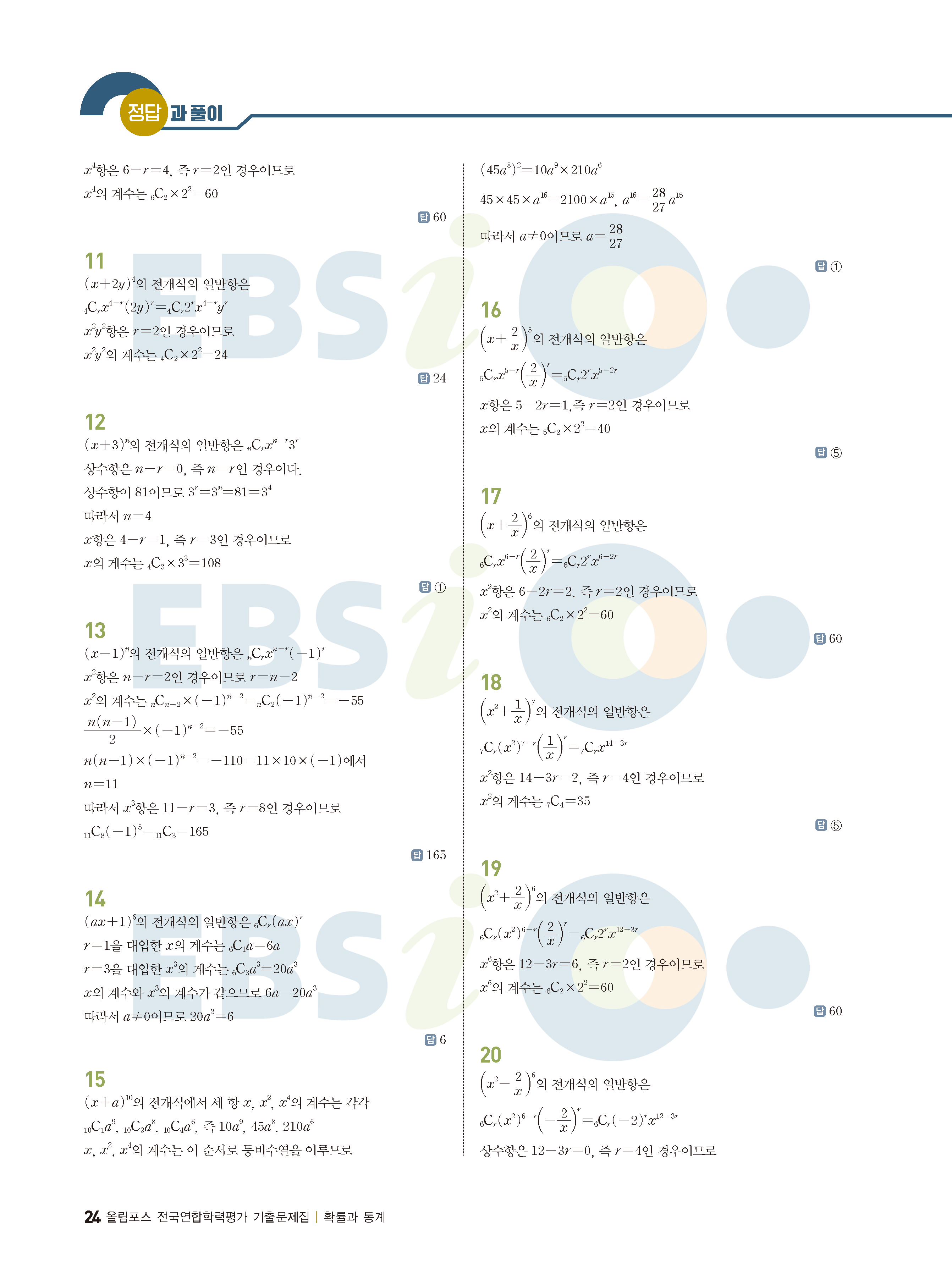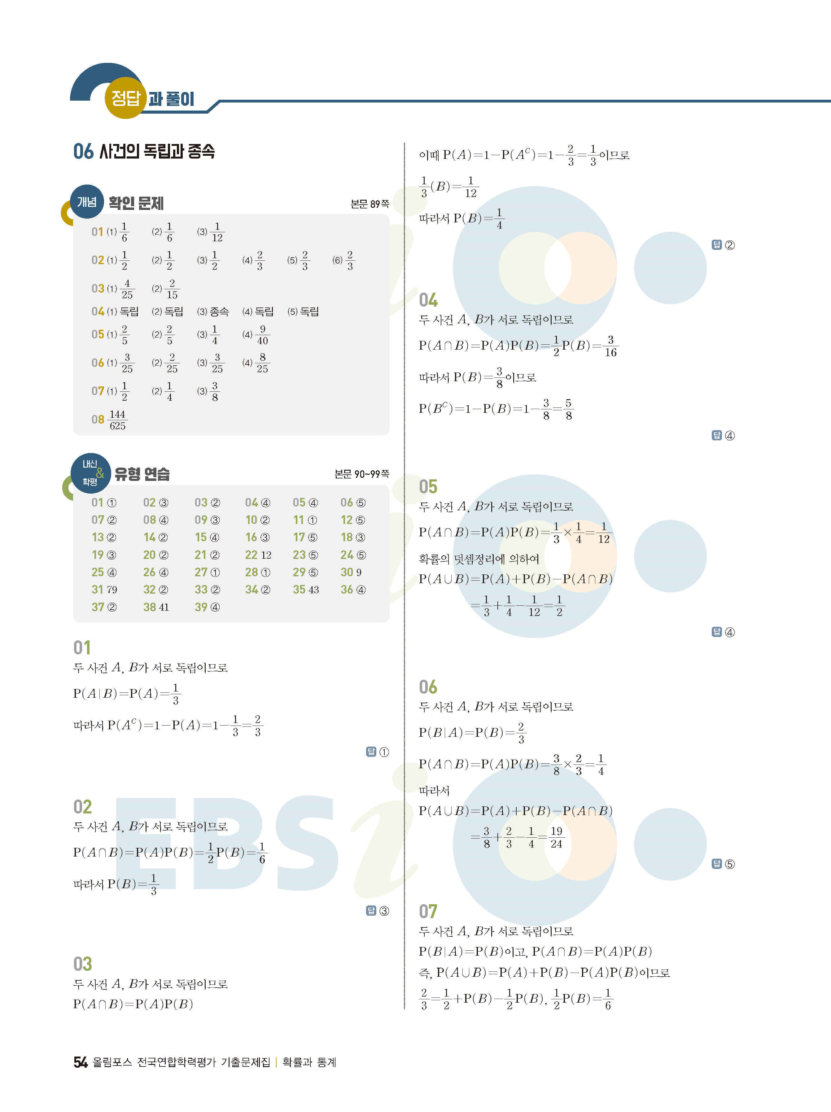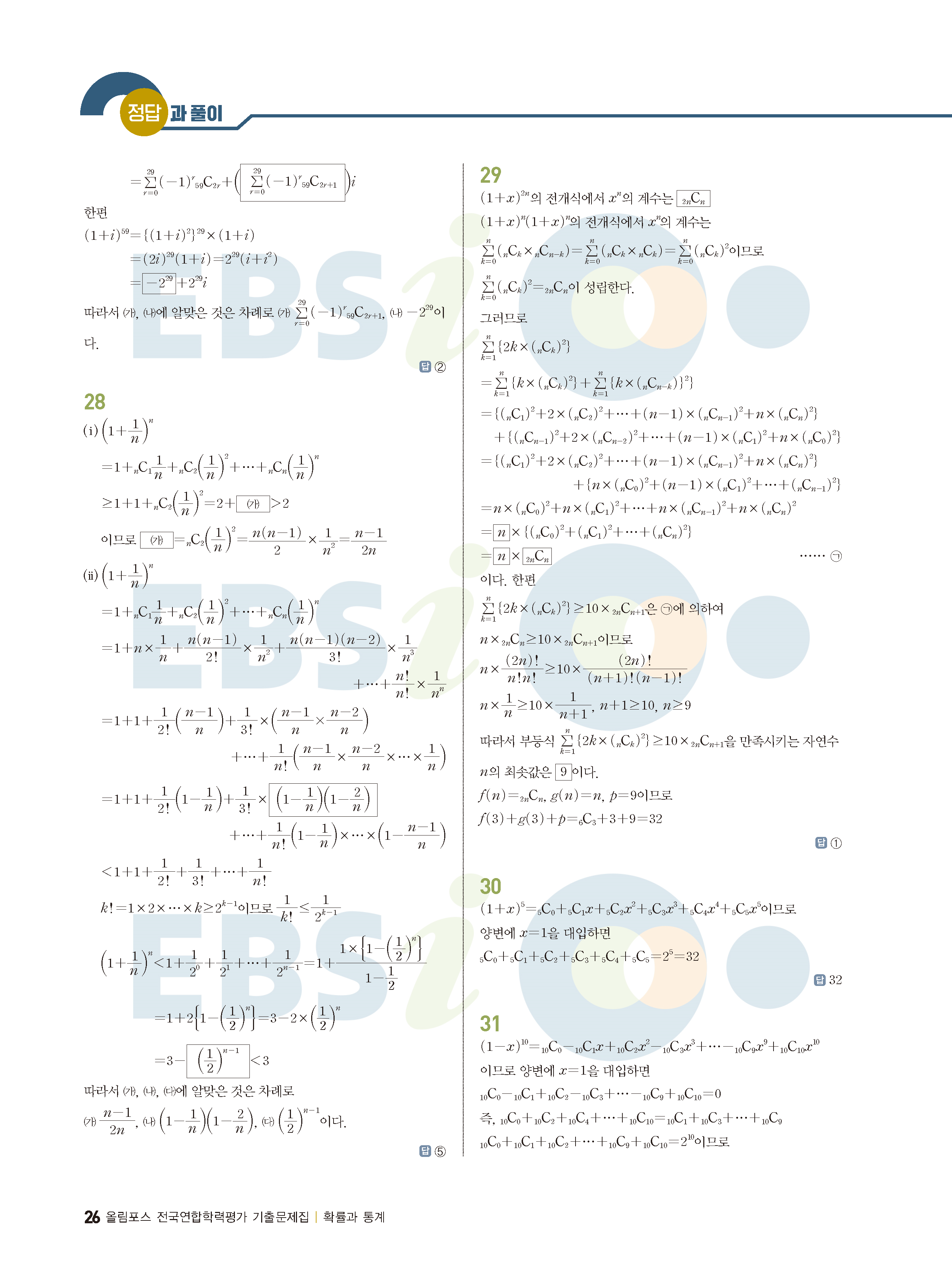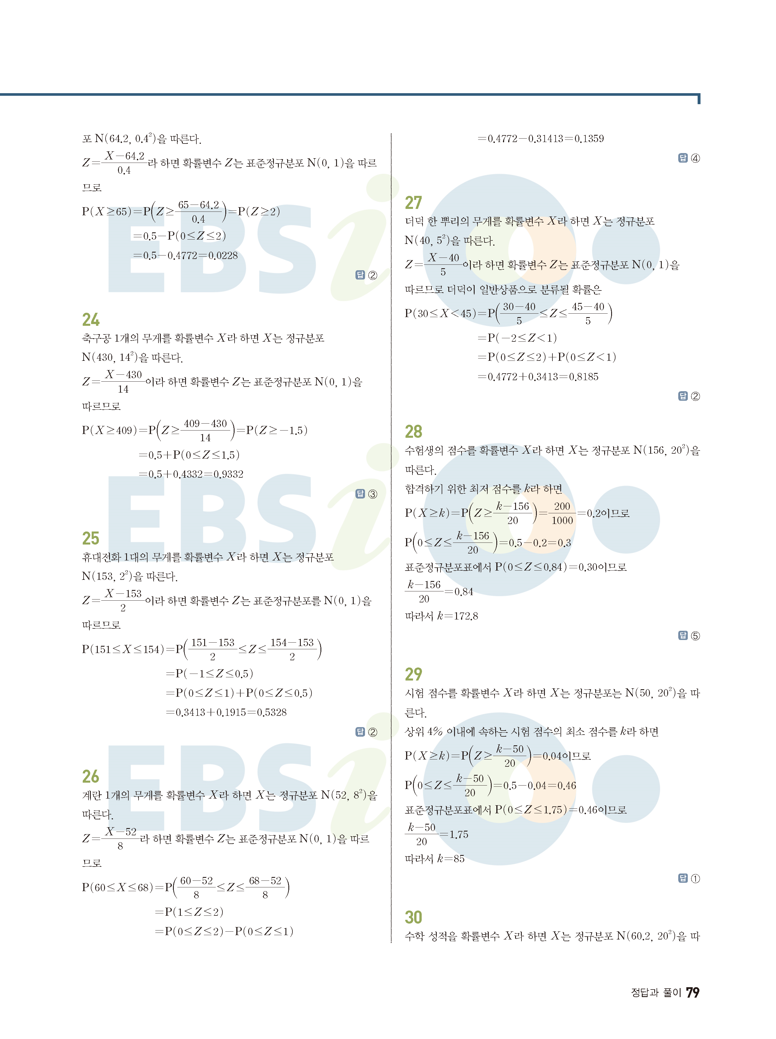 ebs 수능 기출의 미래 확률과통계 답지 해설지 바로보는 사진답지 빠른답지 모바일최적화