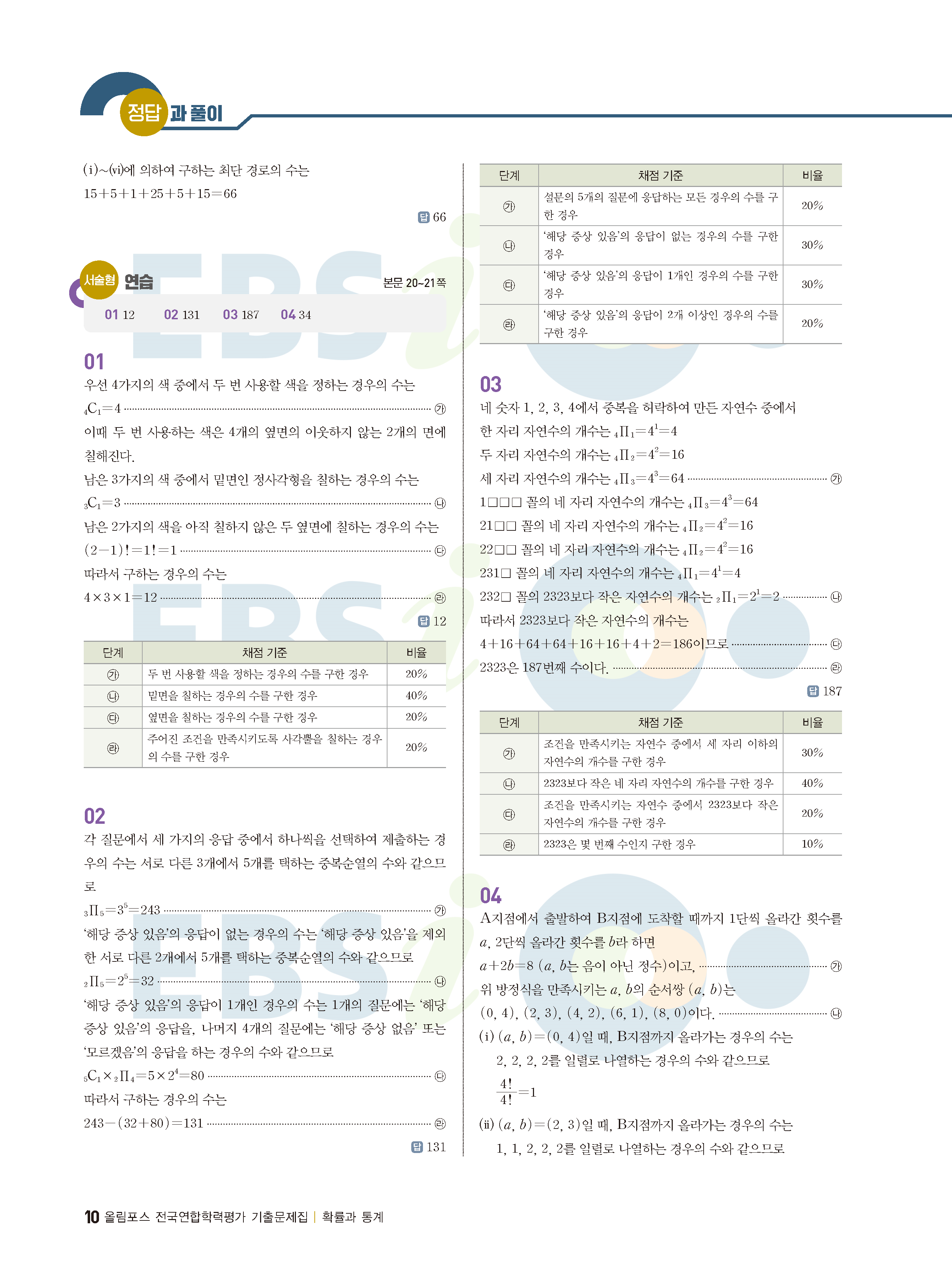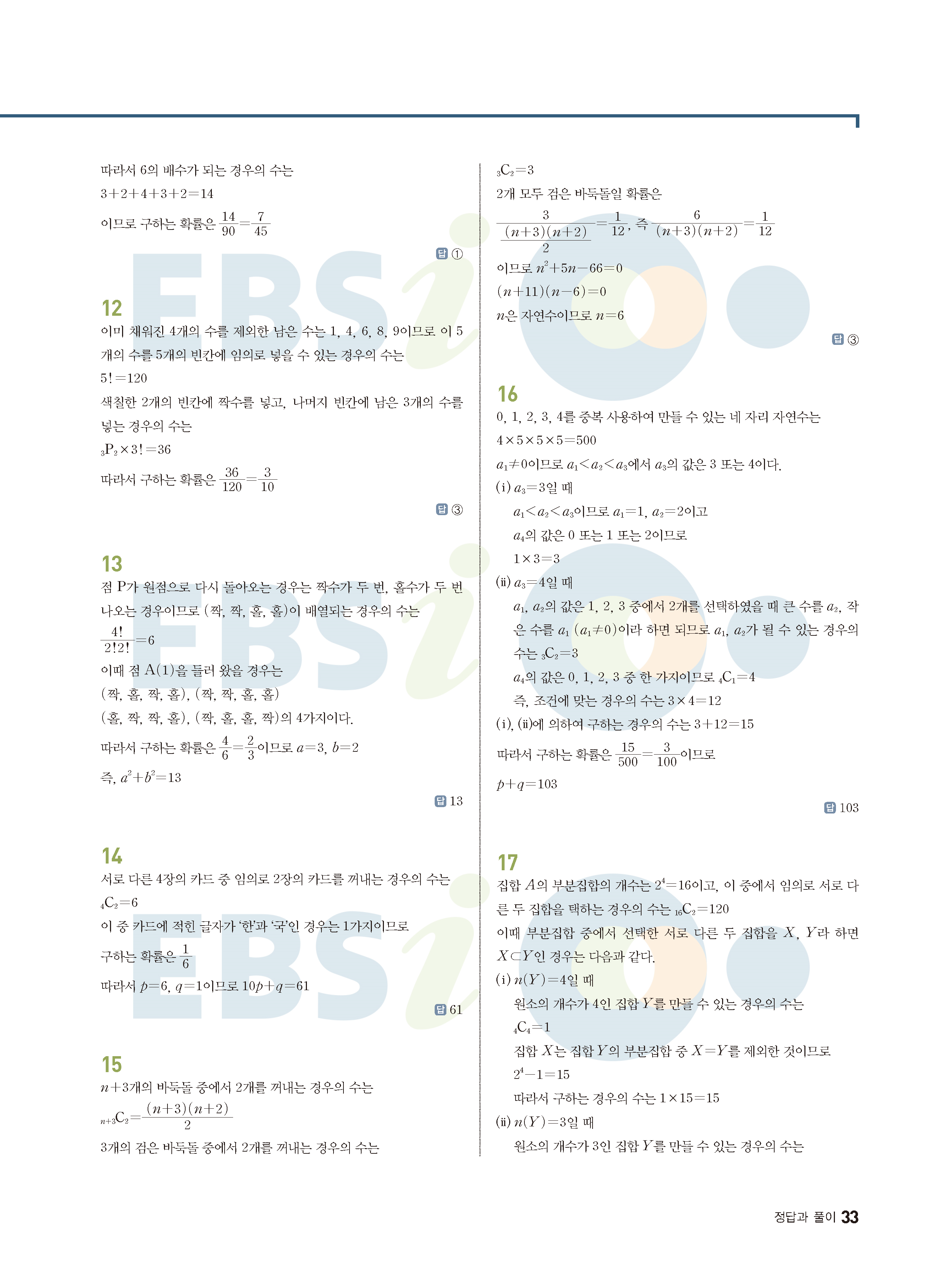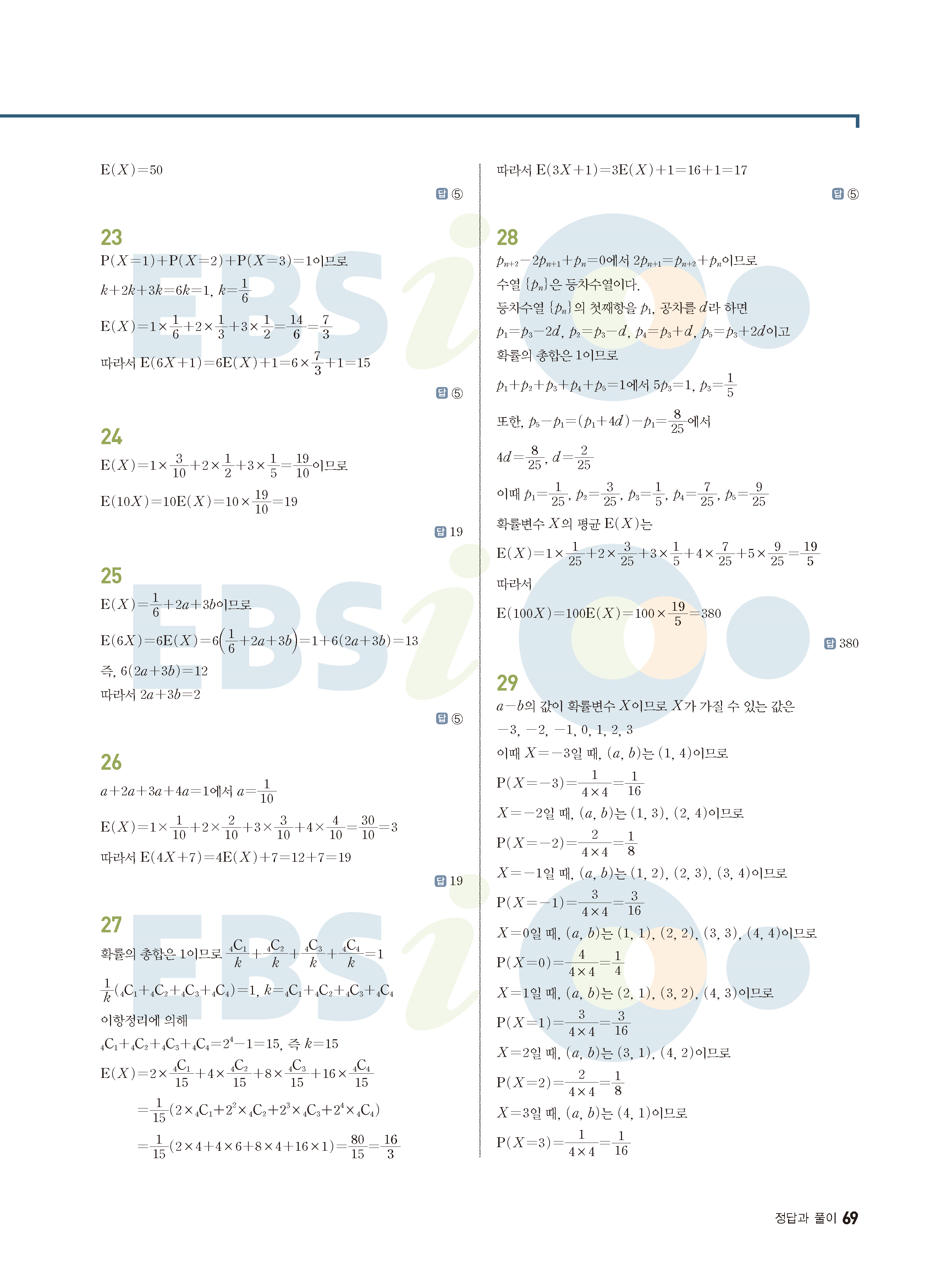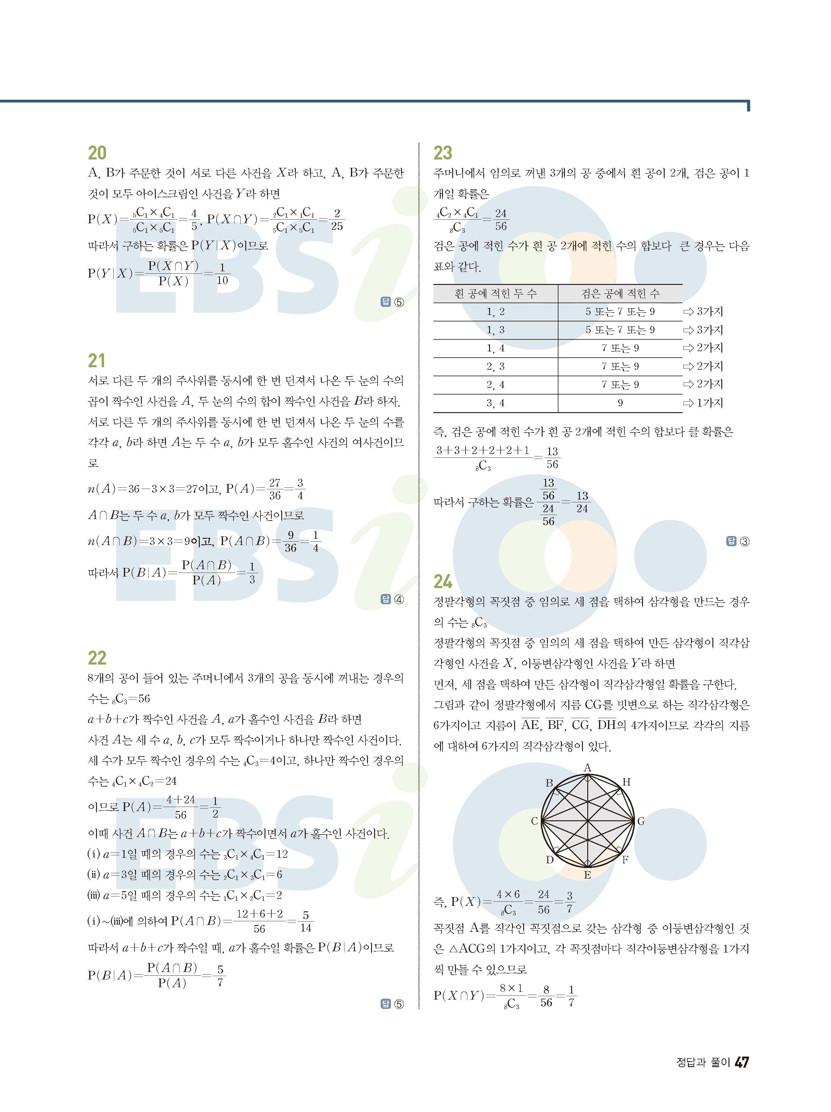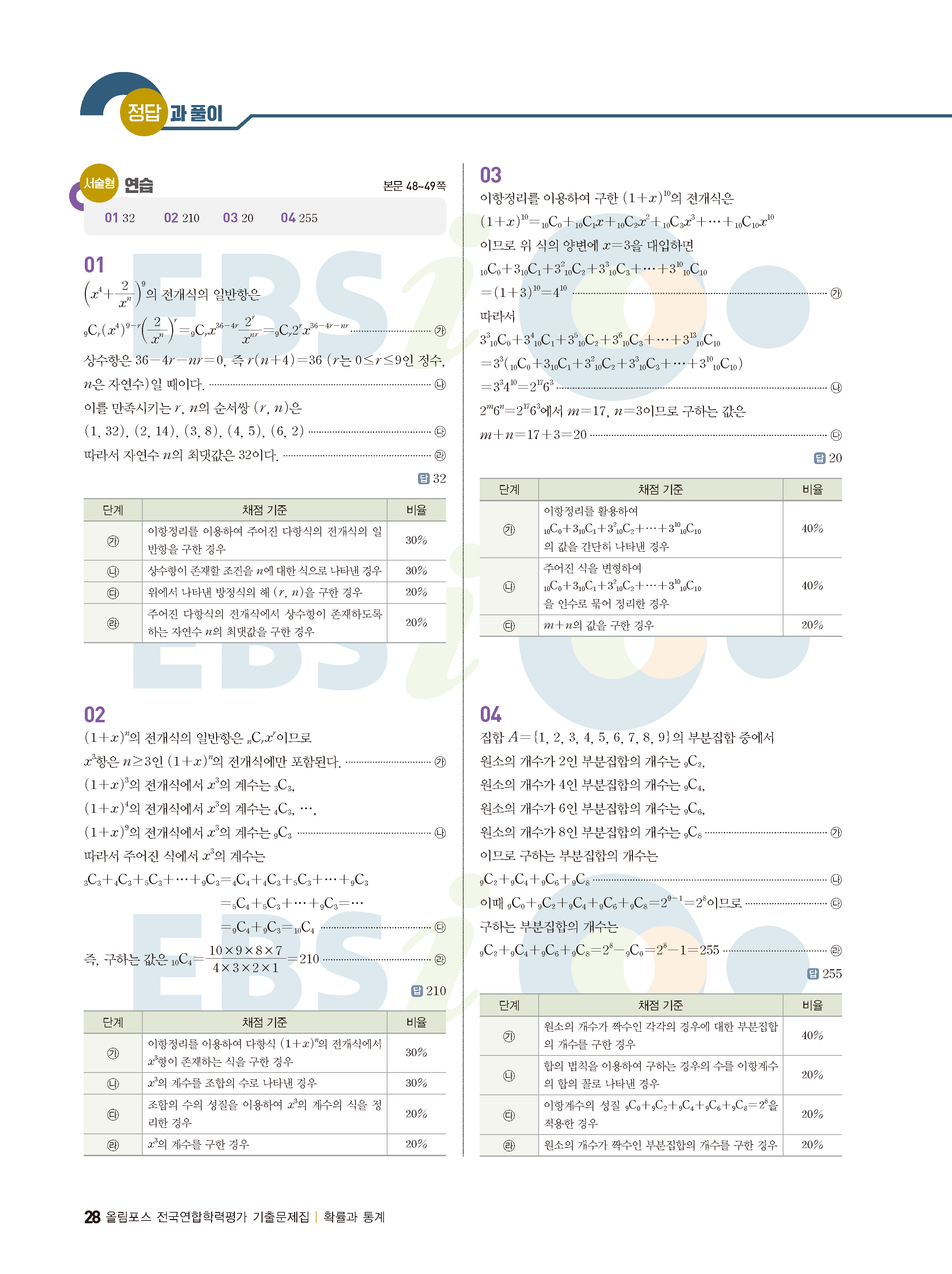 ebs 수능 기출의 미래 확률과통계 답지 해설지 바로보는 사진답지 빠른답지 모바일최적화