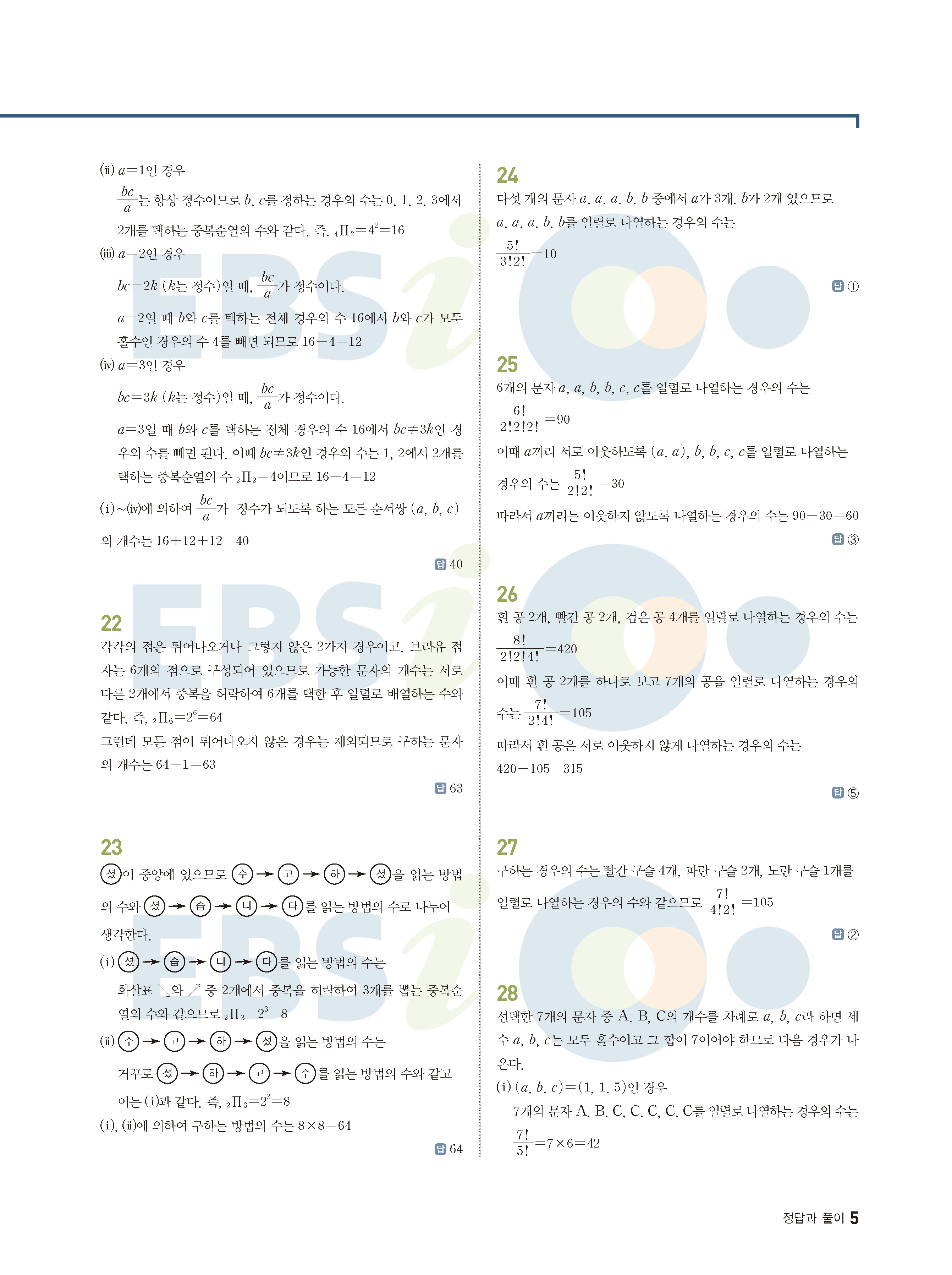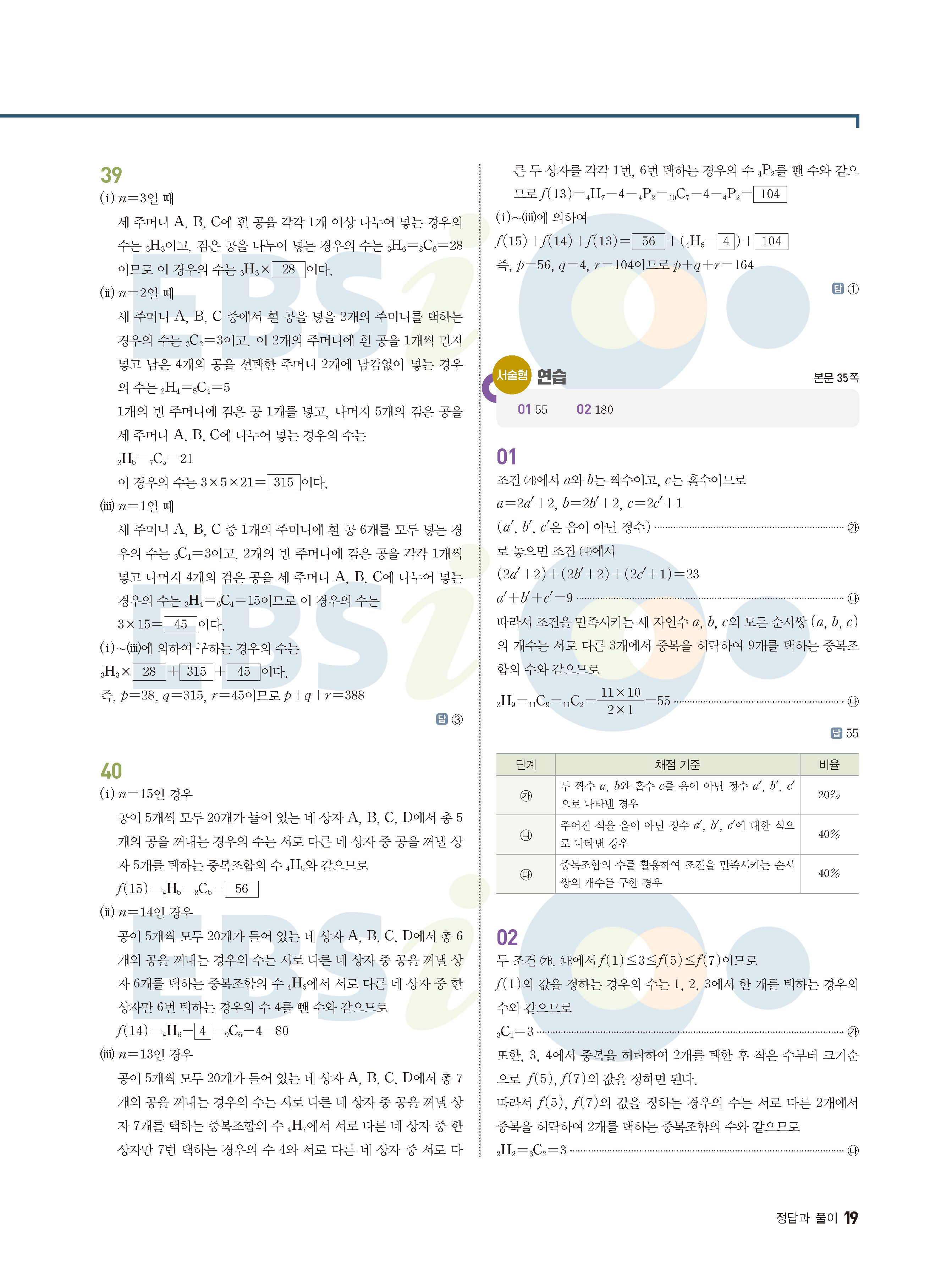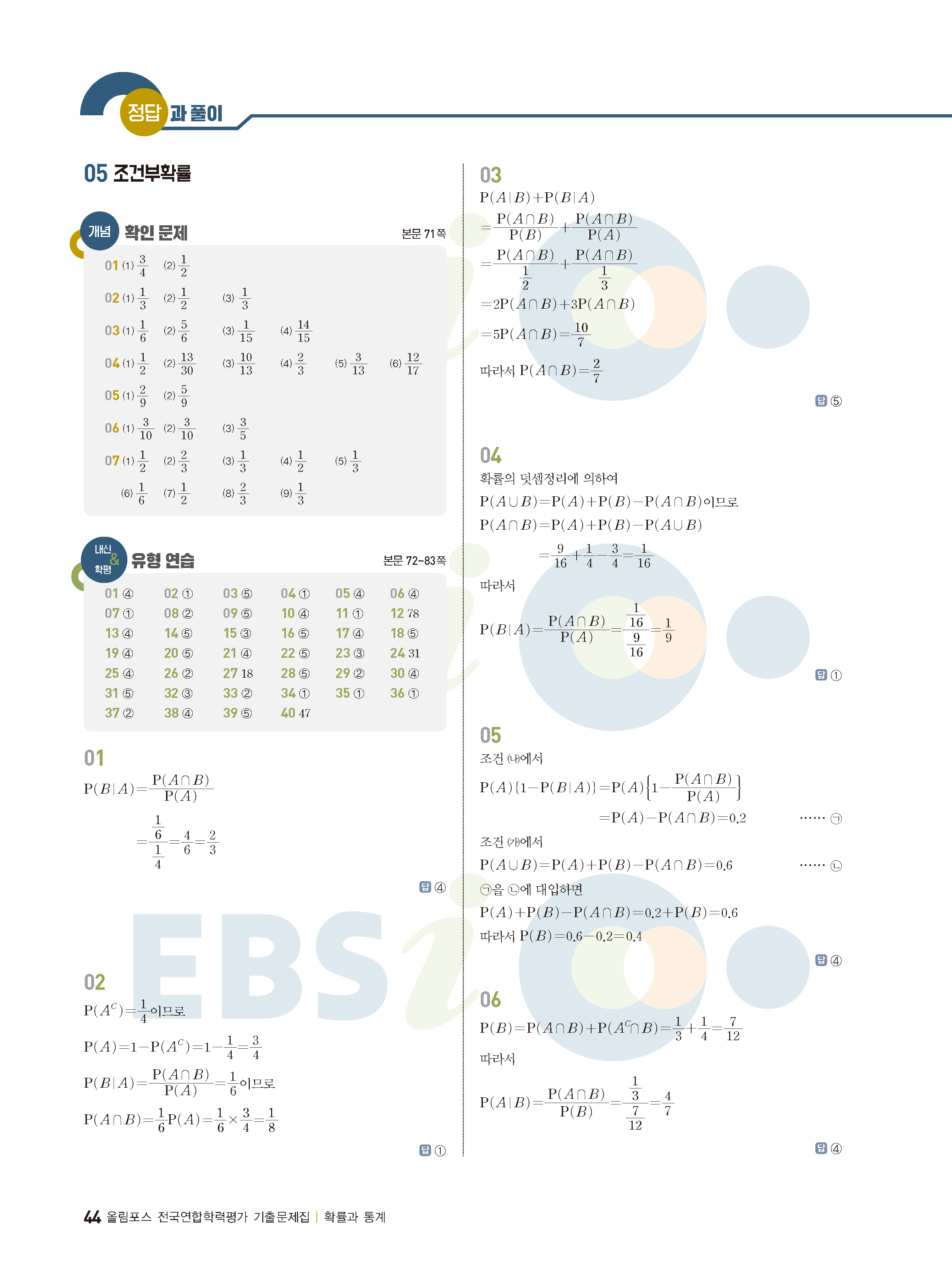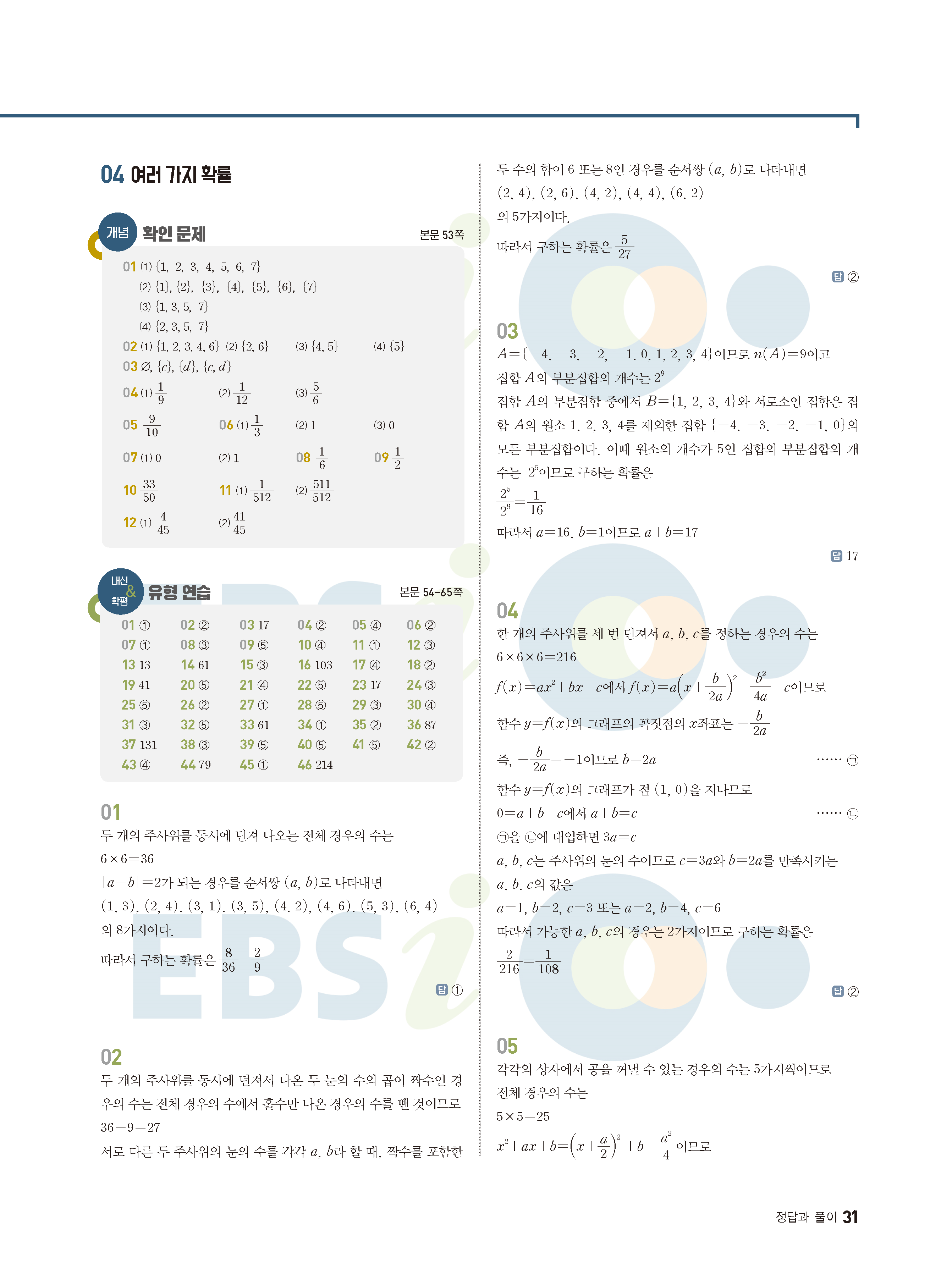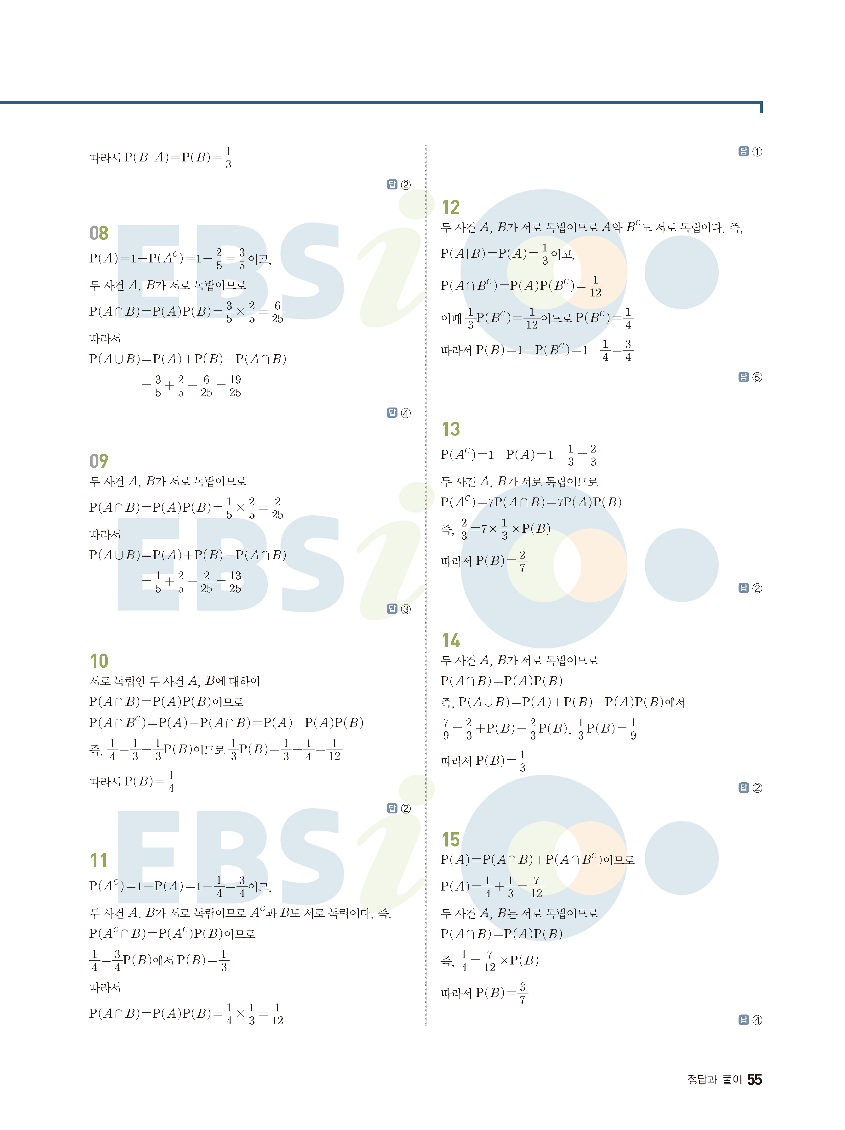 ebs 수능 기출의 미래 확률과통계 답지 해설지 바로보는 사진답지 빠른답지 모바일최적화