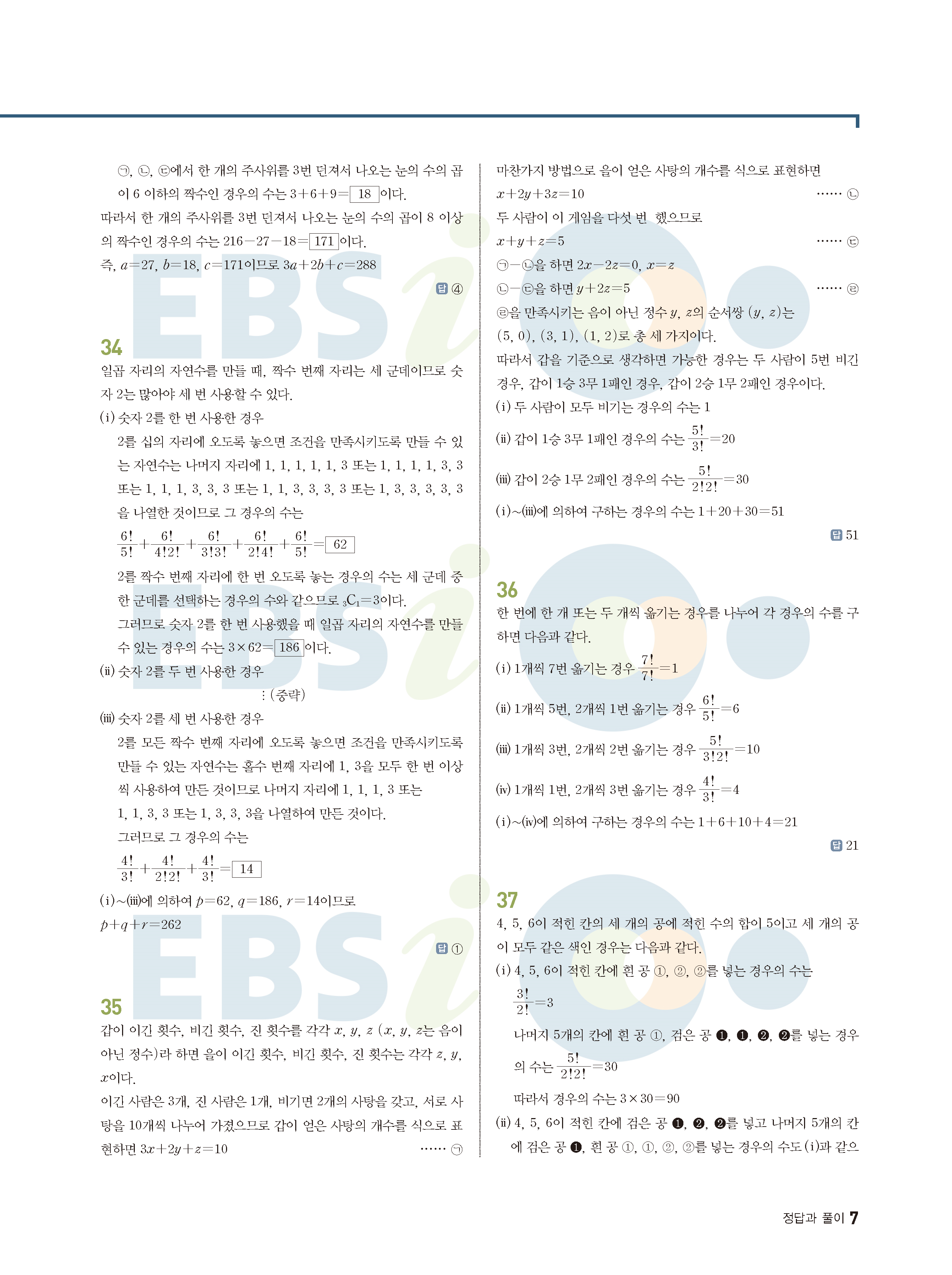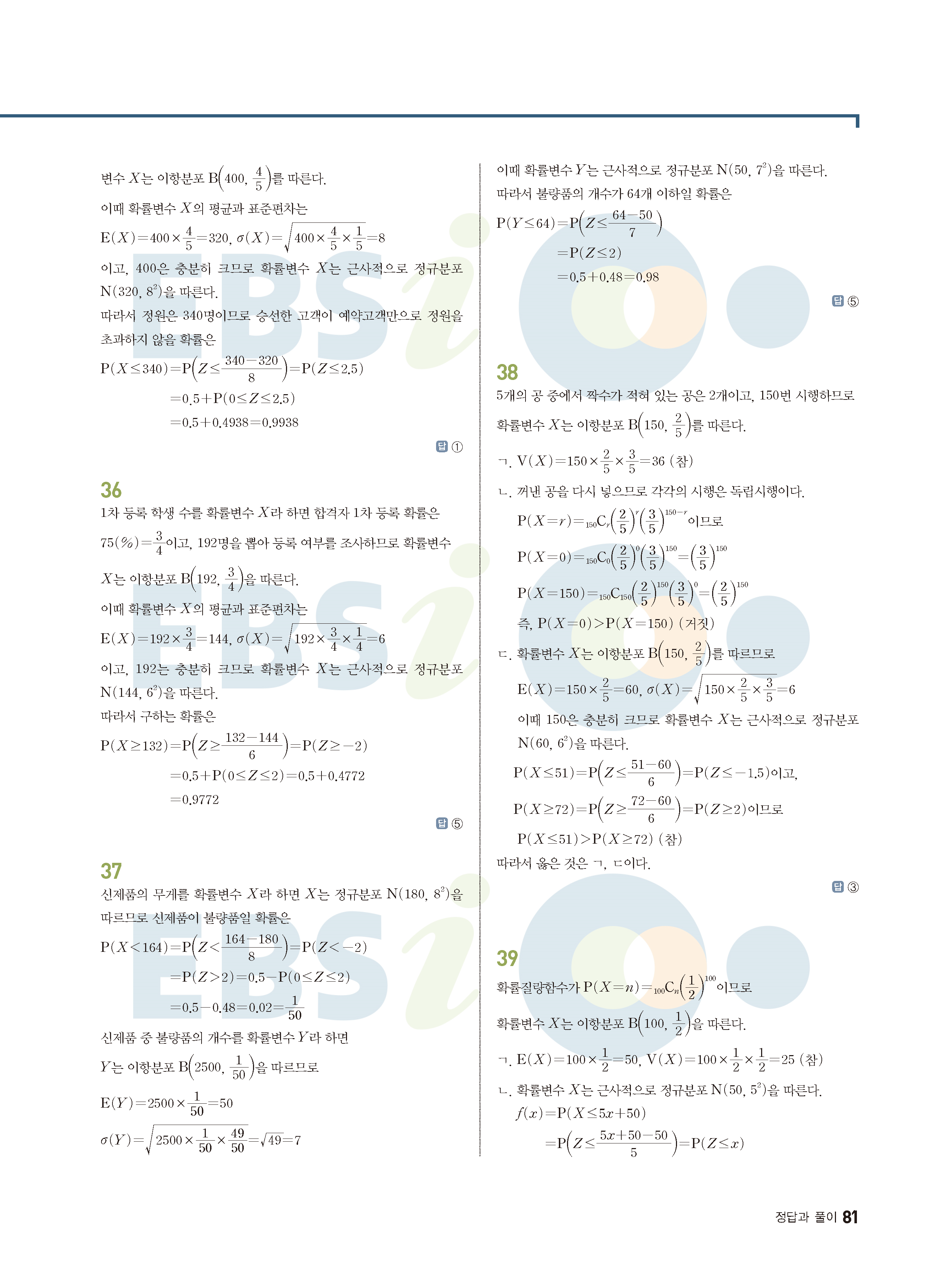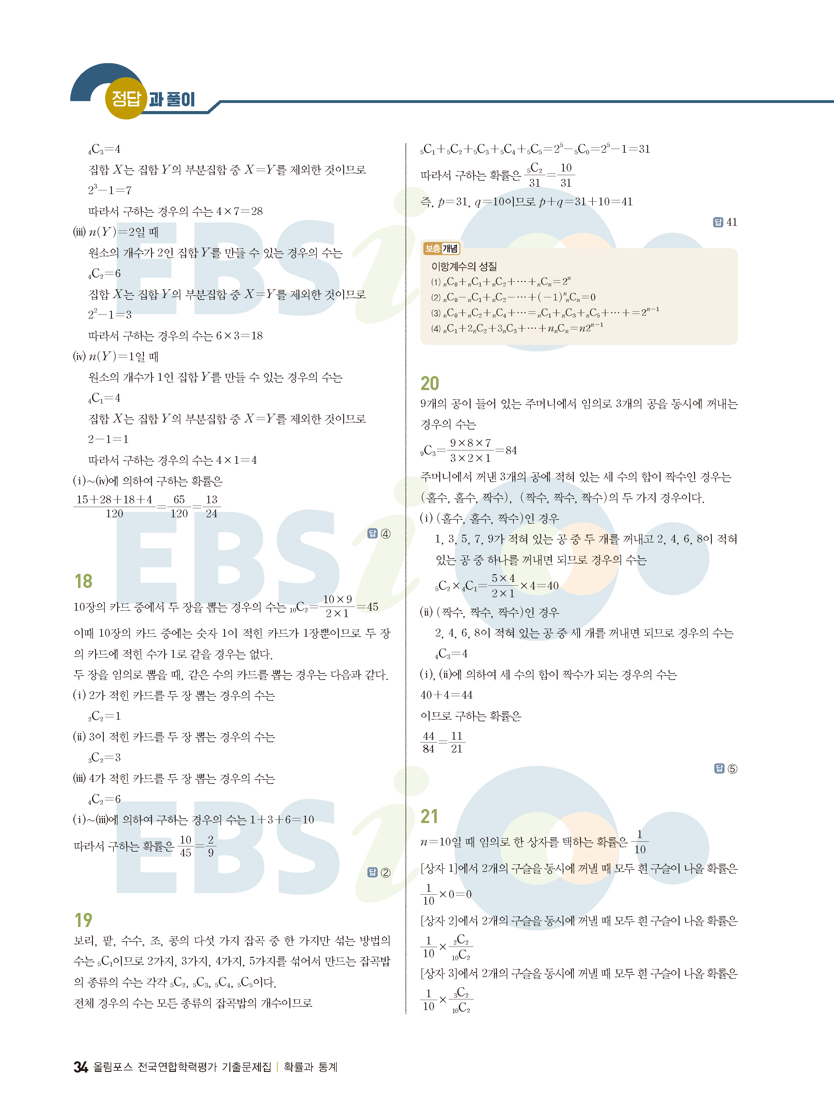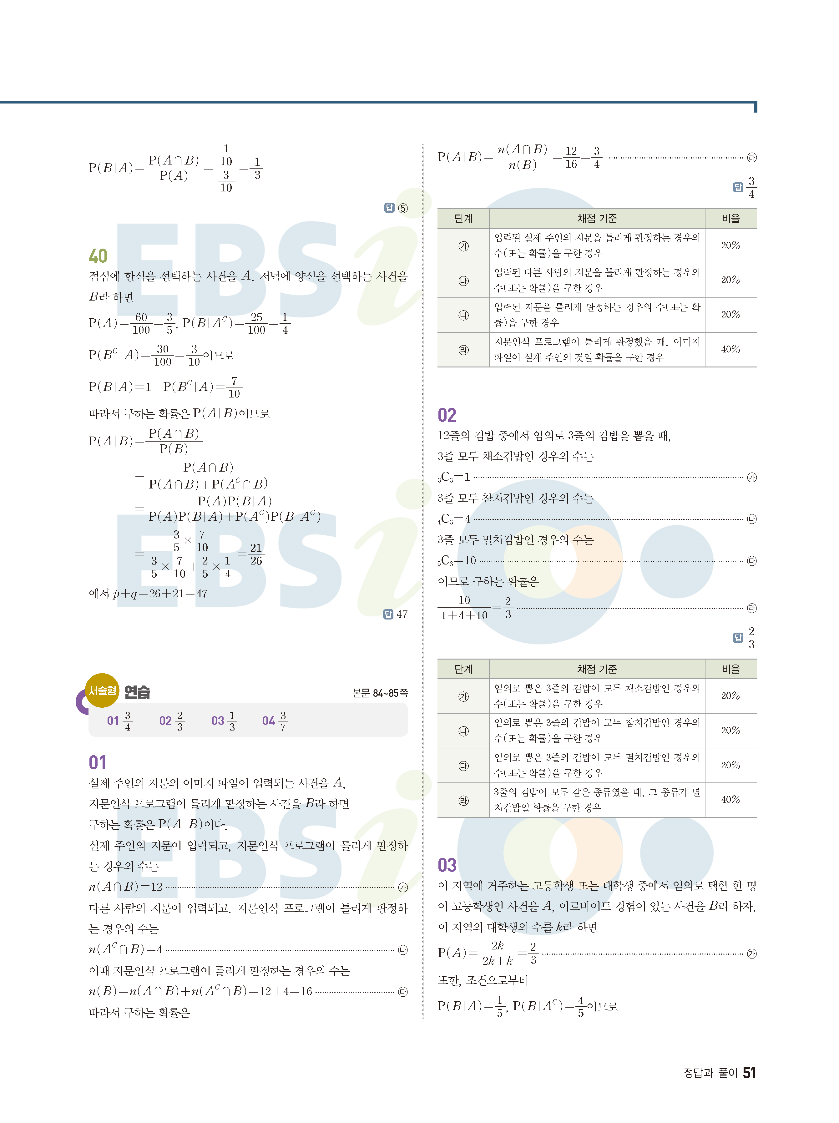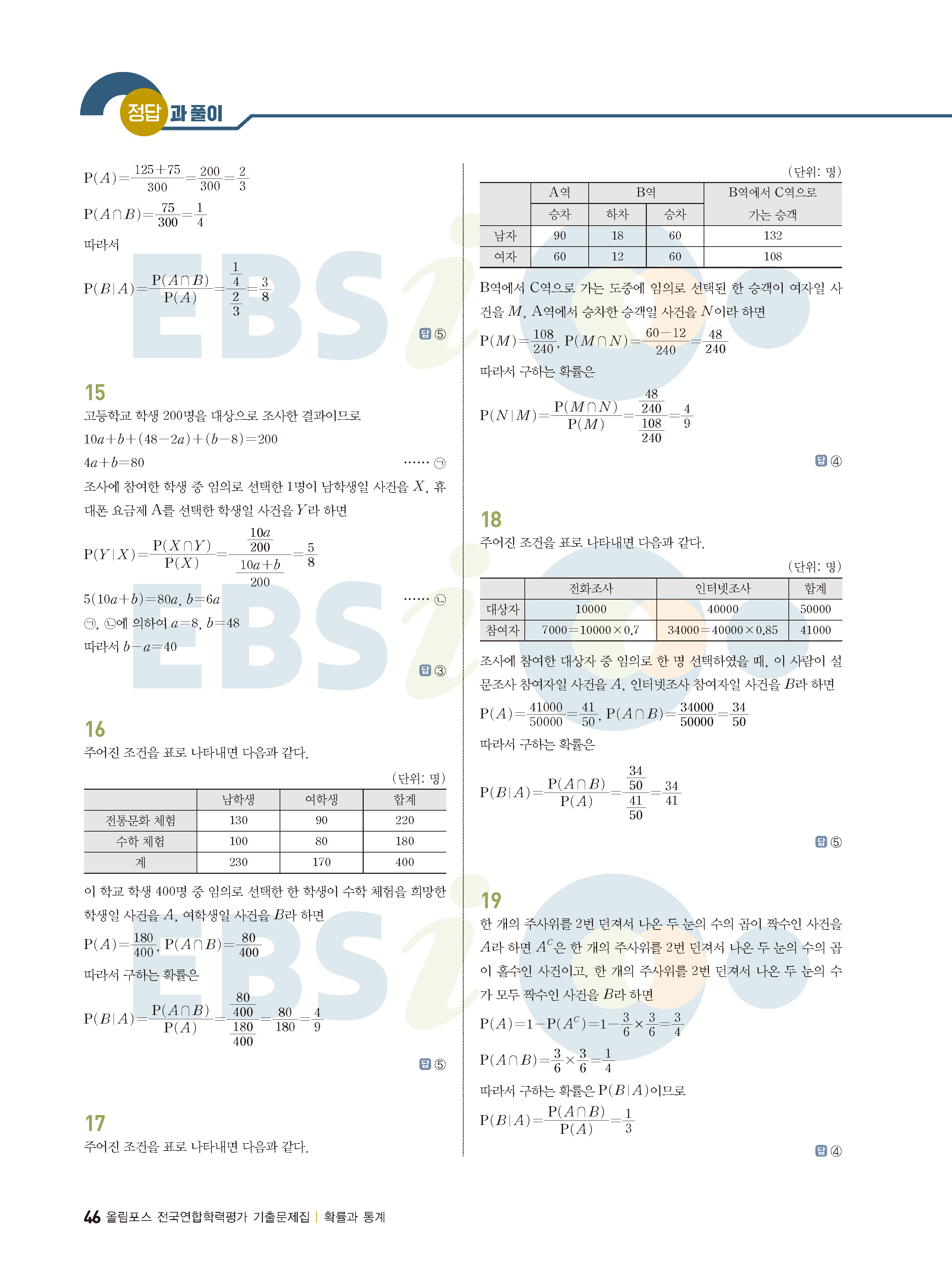 ebs 수능 기출의 미래 확률과통계 답지 해설지 바로보는 사진답지 빠른답지 모바일최적화