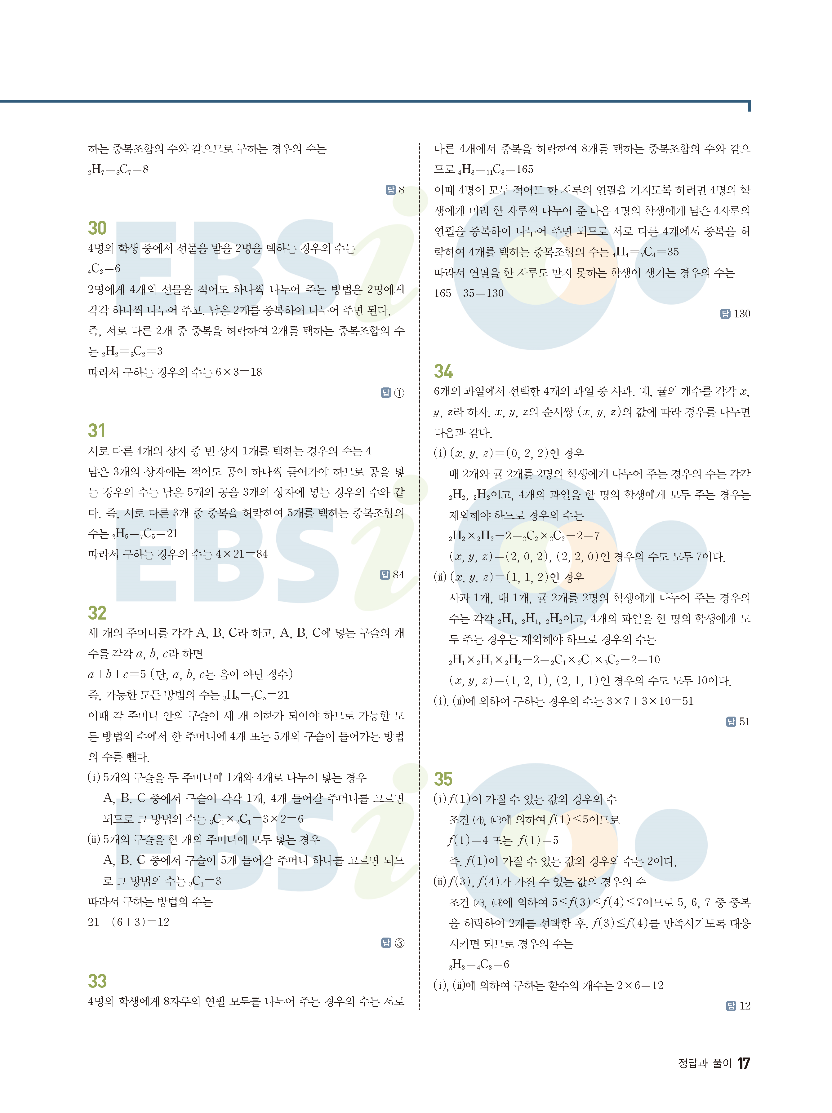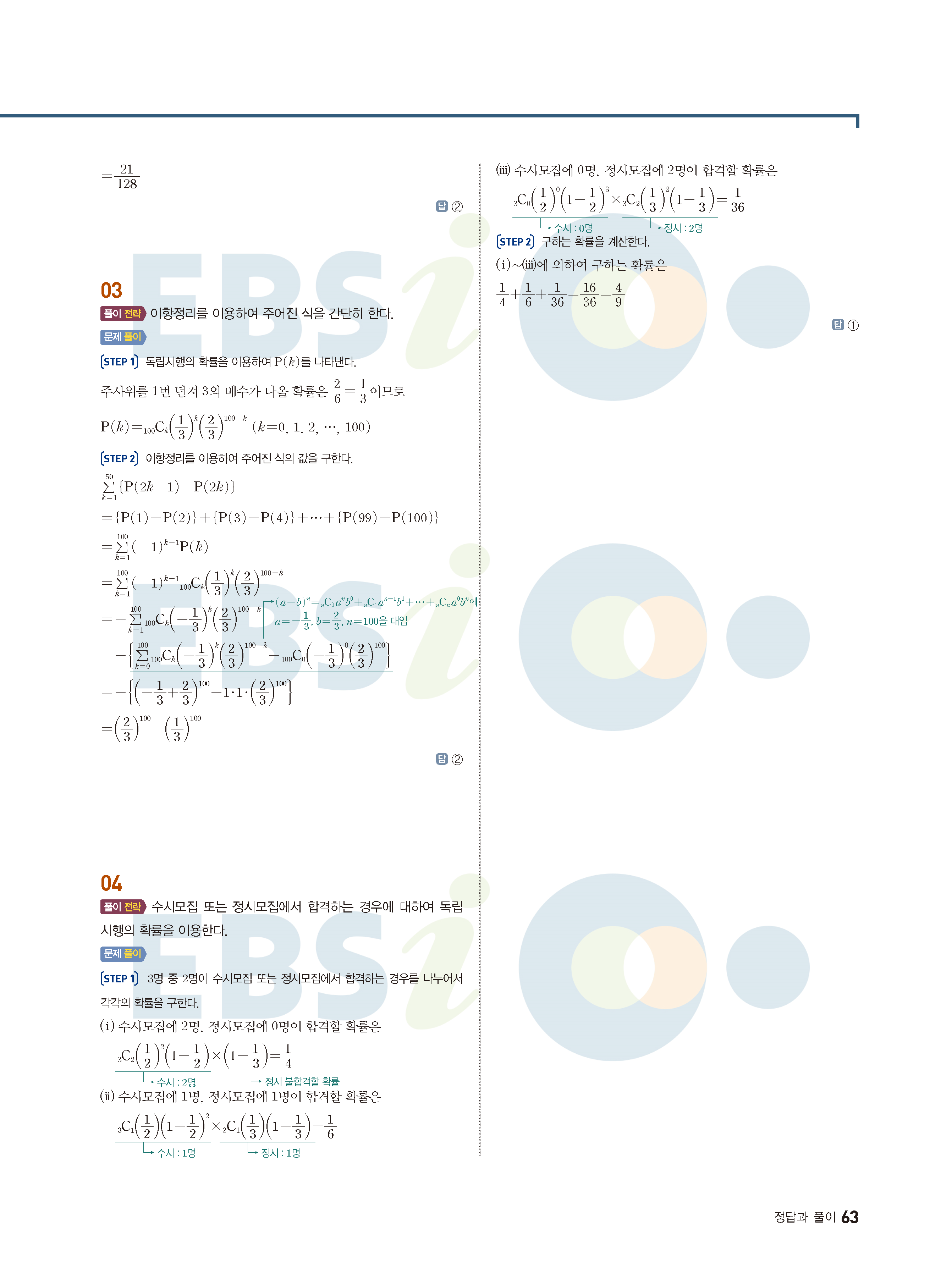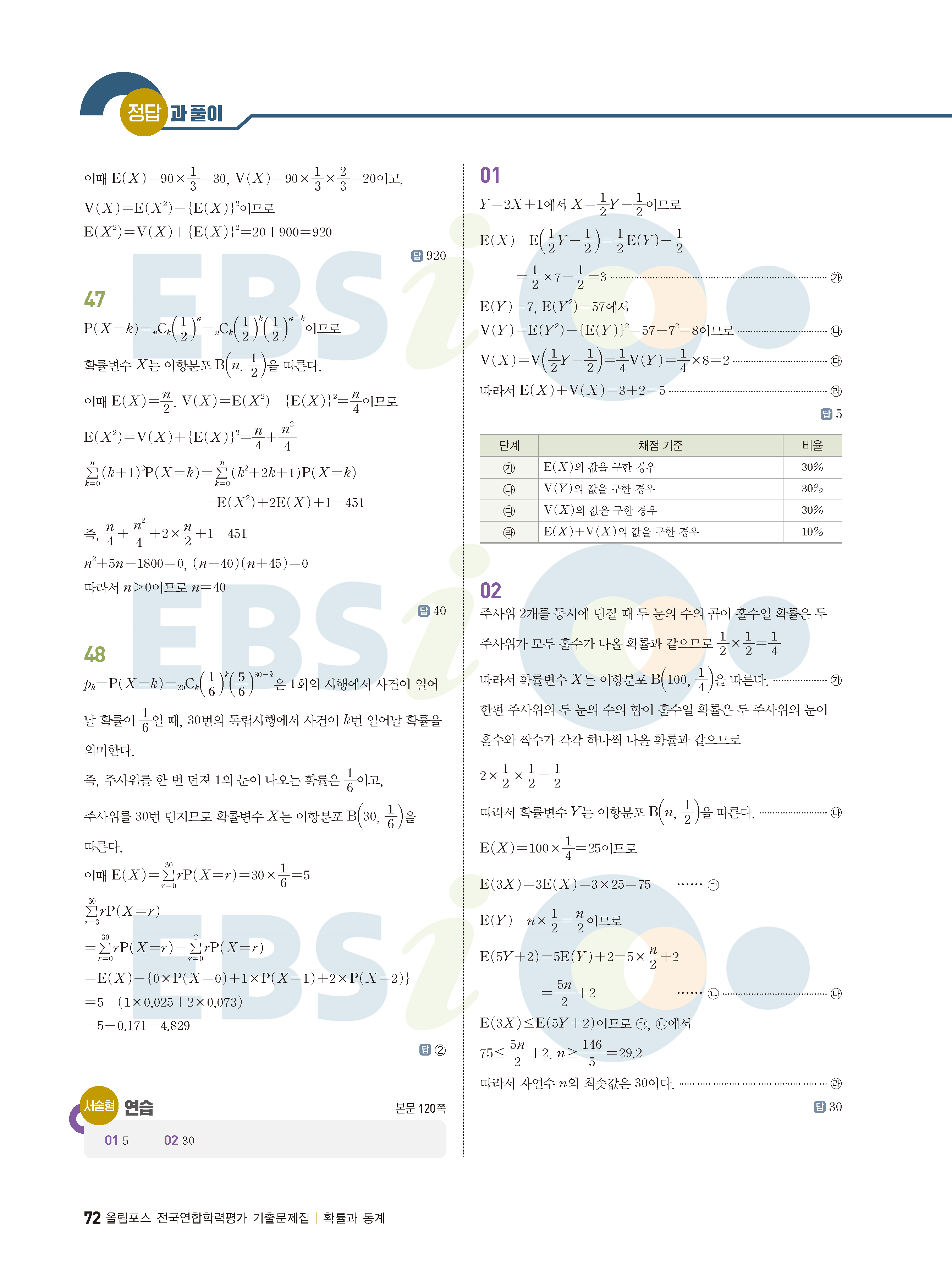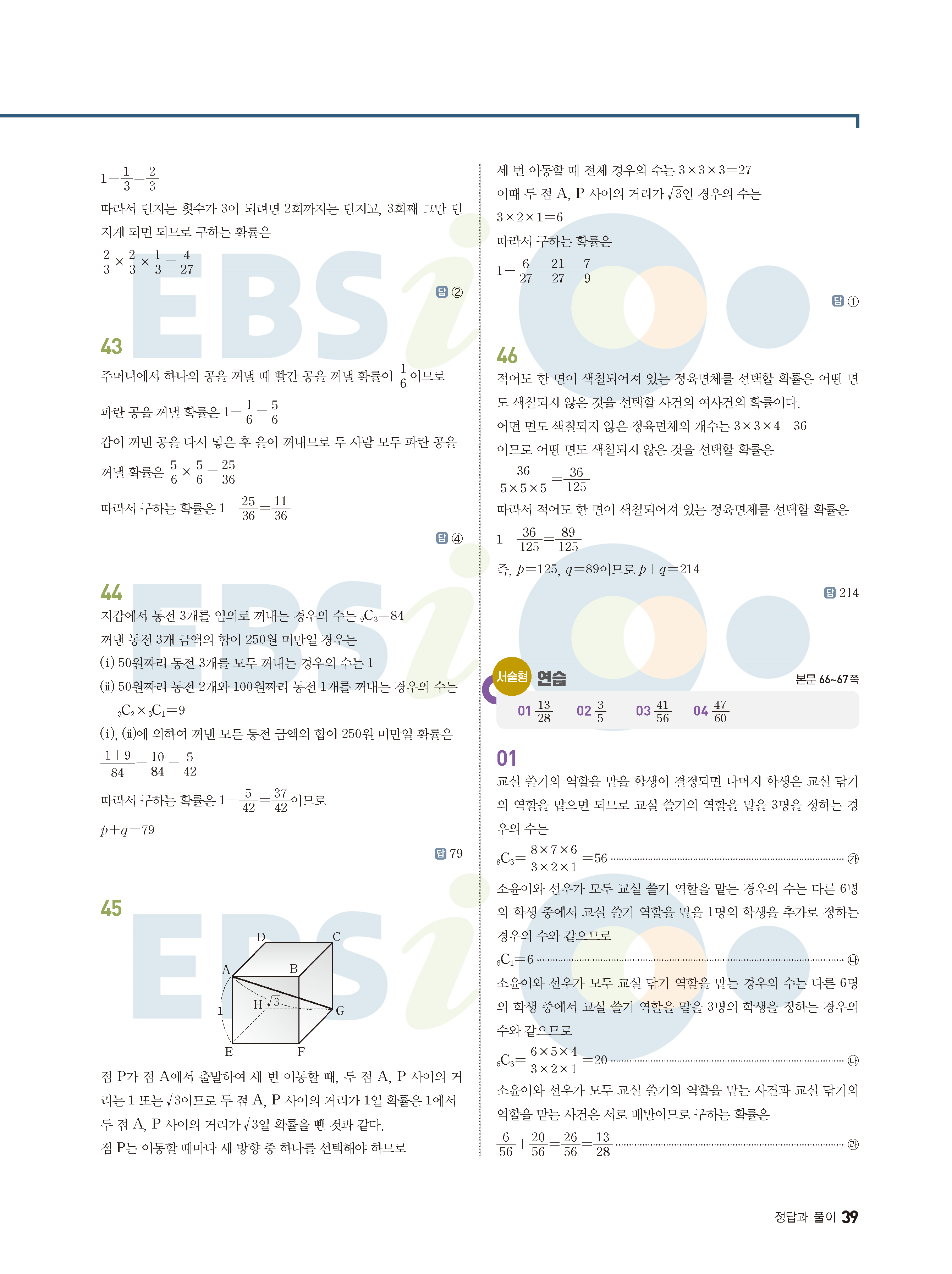 ebs 수능 기출의 미래 확률과통계 답지 해설지 바로보는 사진답지 빠른답지 모바일최적화