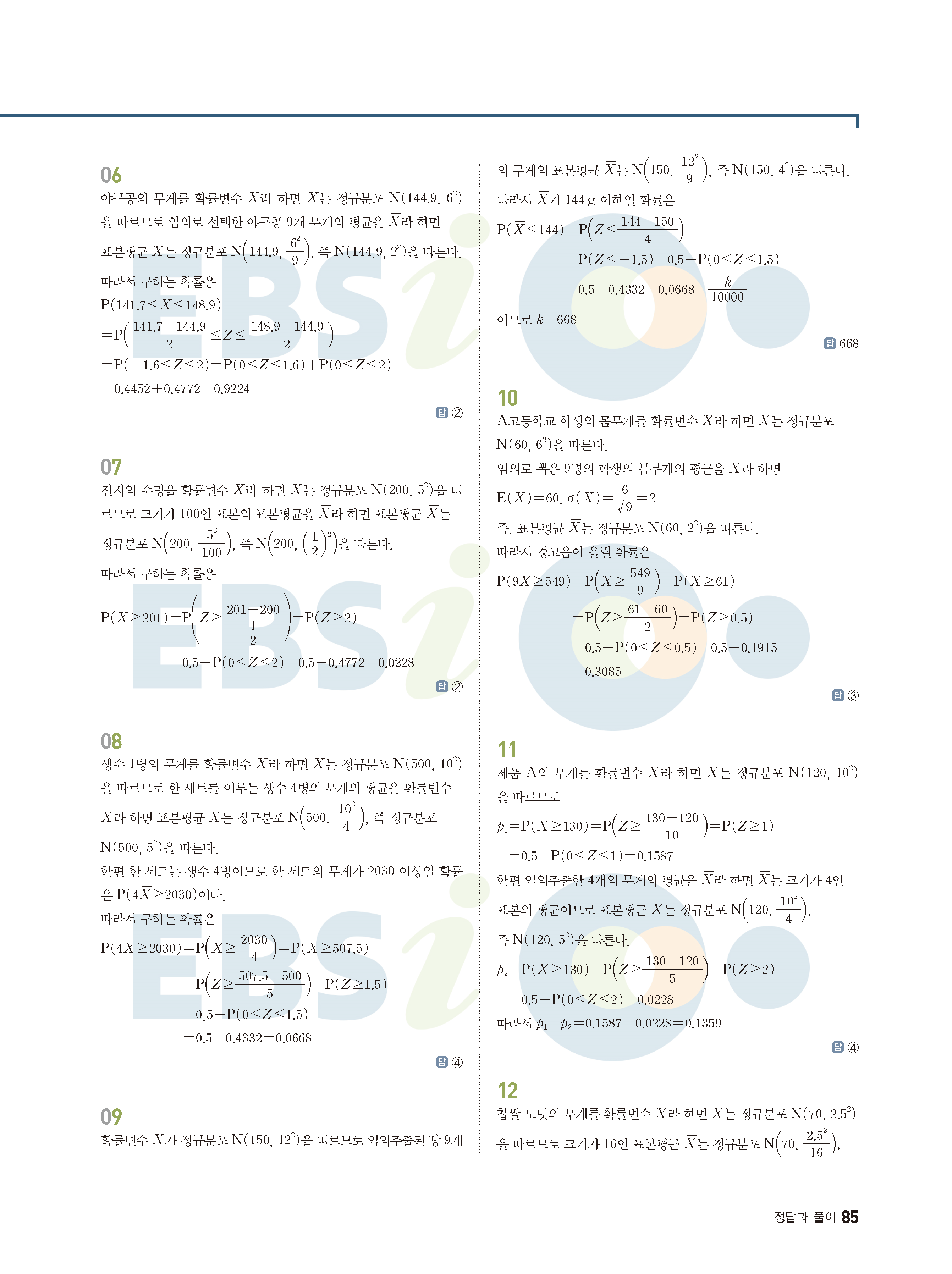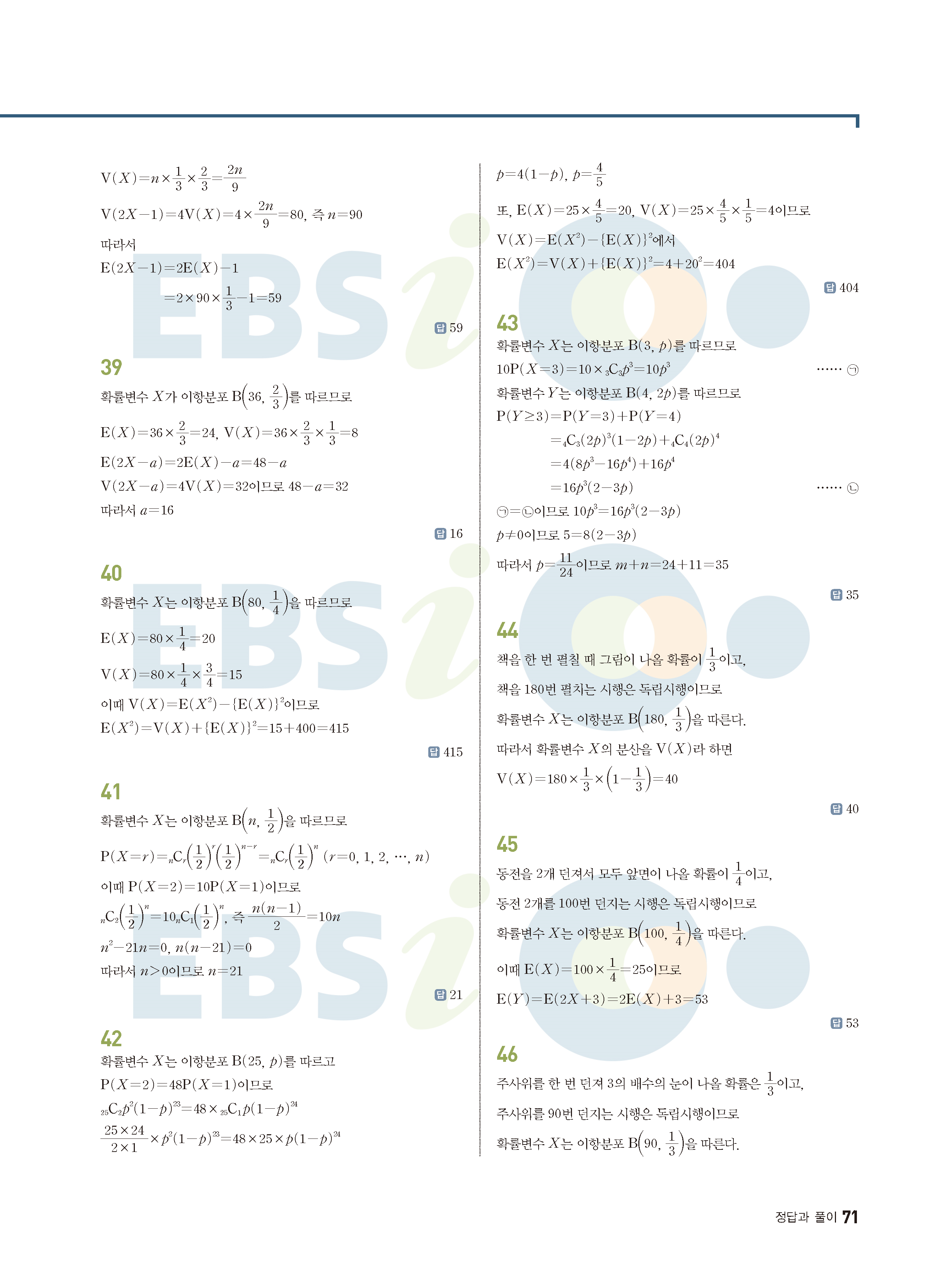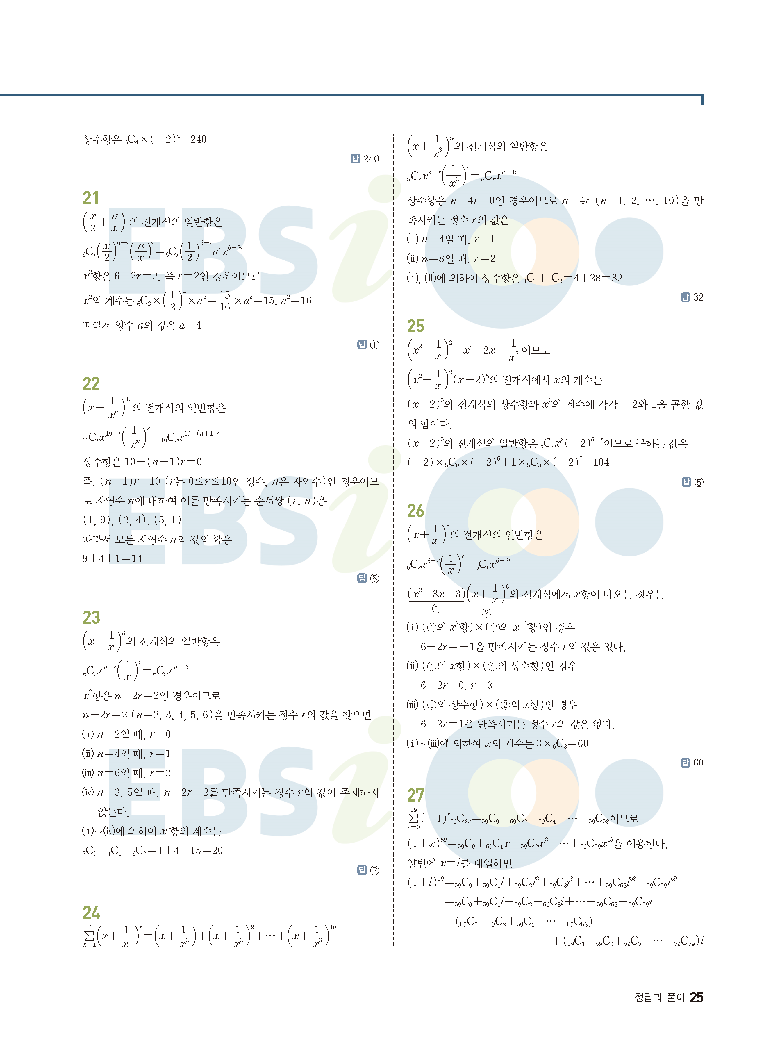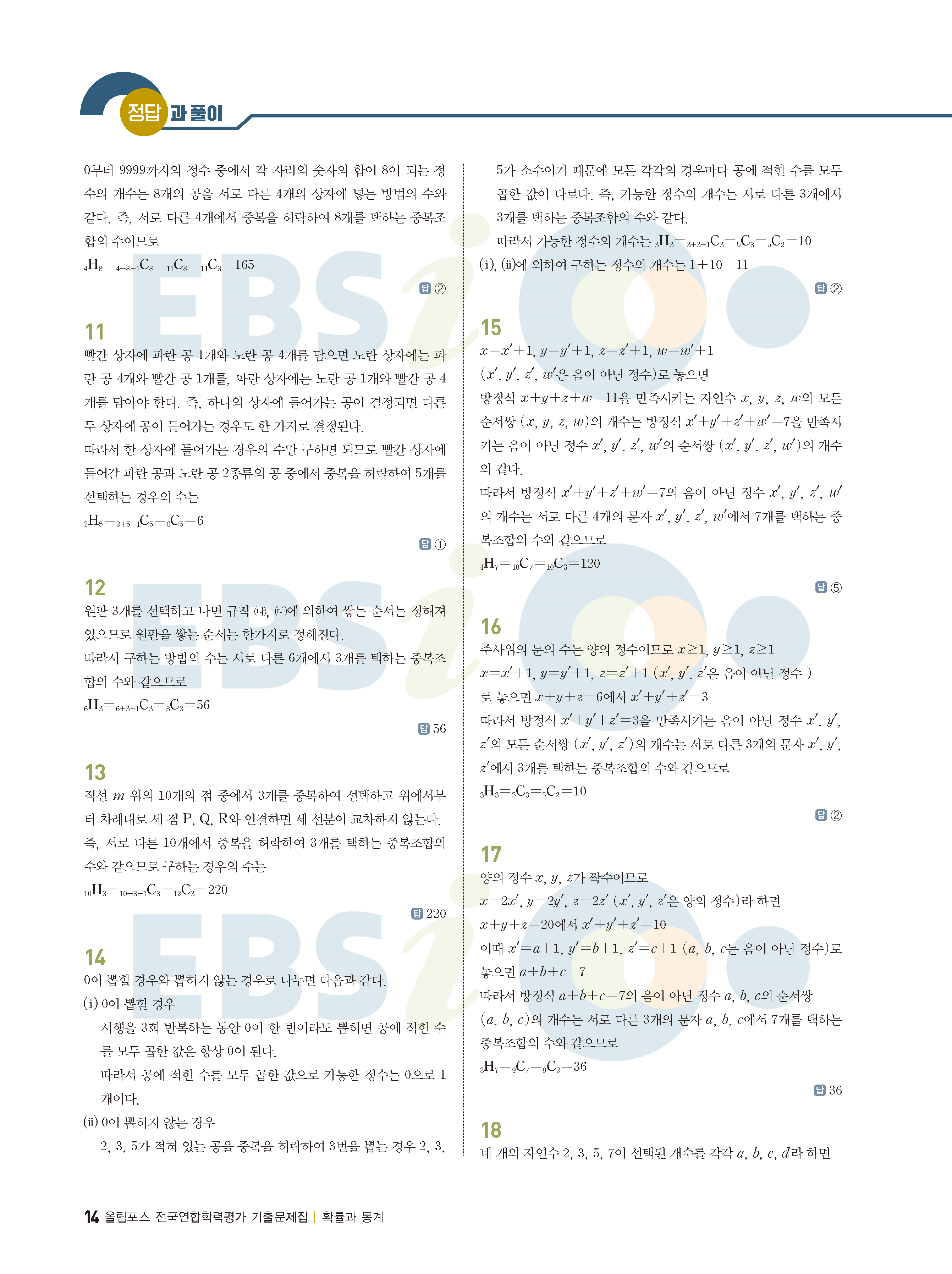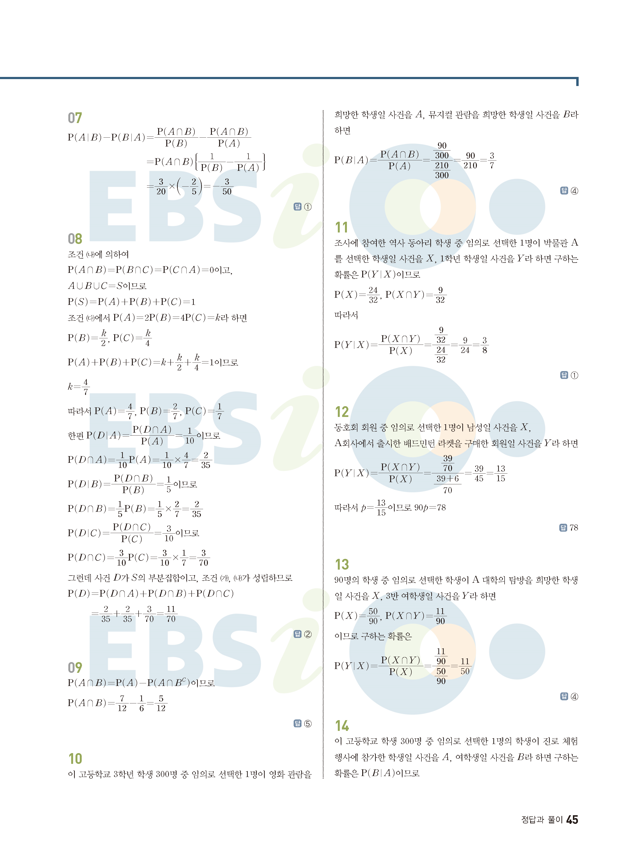 ebs 수능 기출의 미래 확률과통계 답지 해설지 바로보는 사진답지 빠른답지 모바일최적화