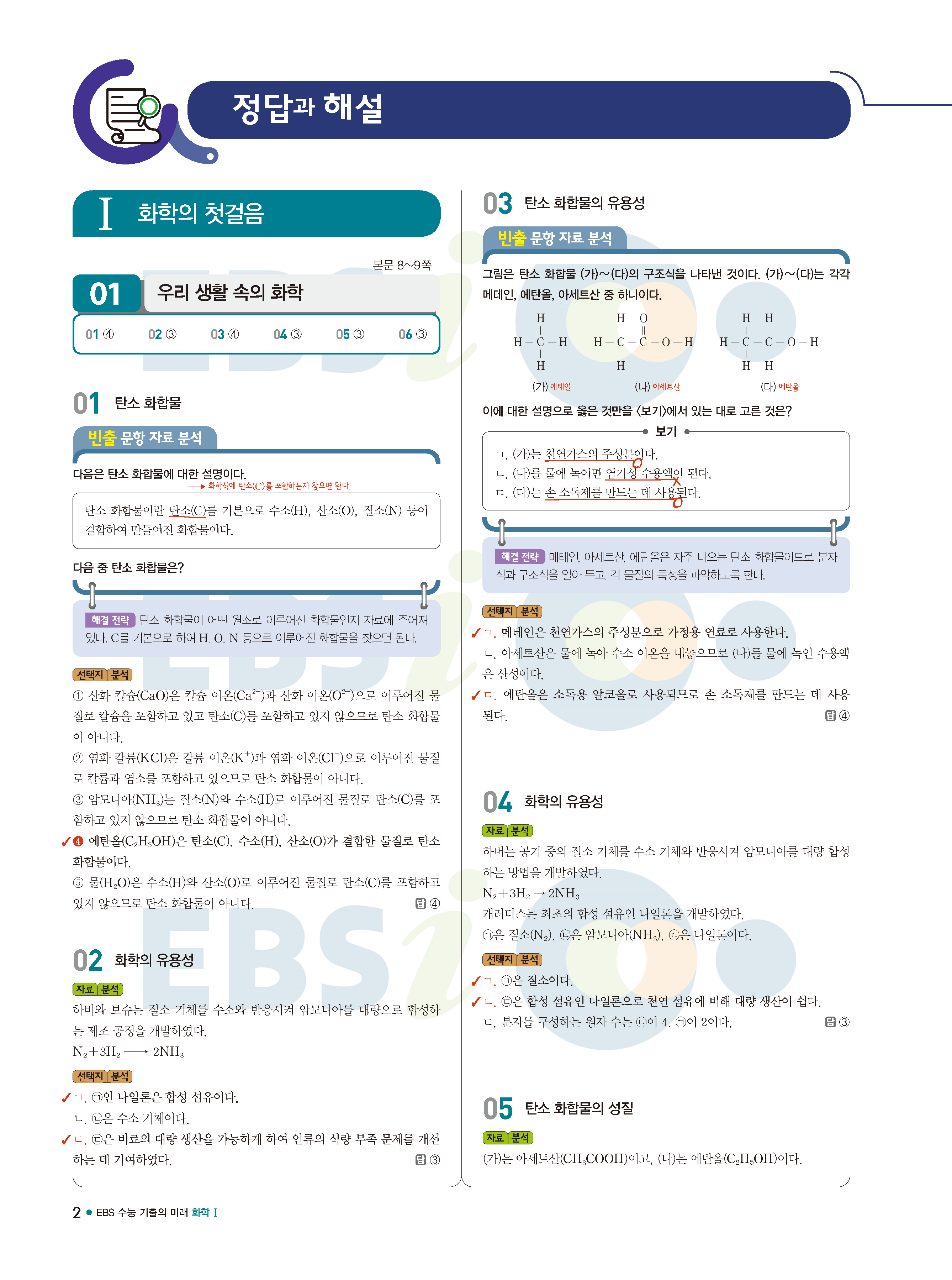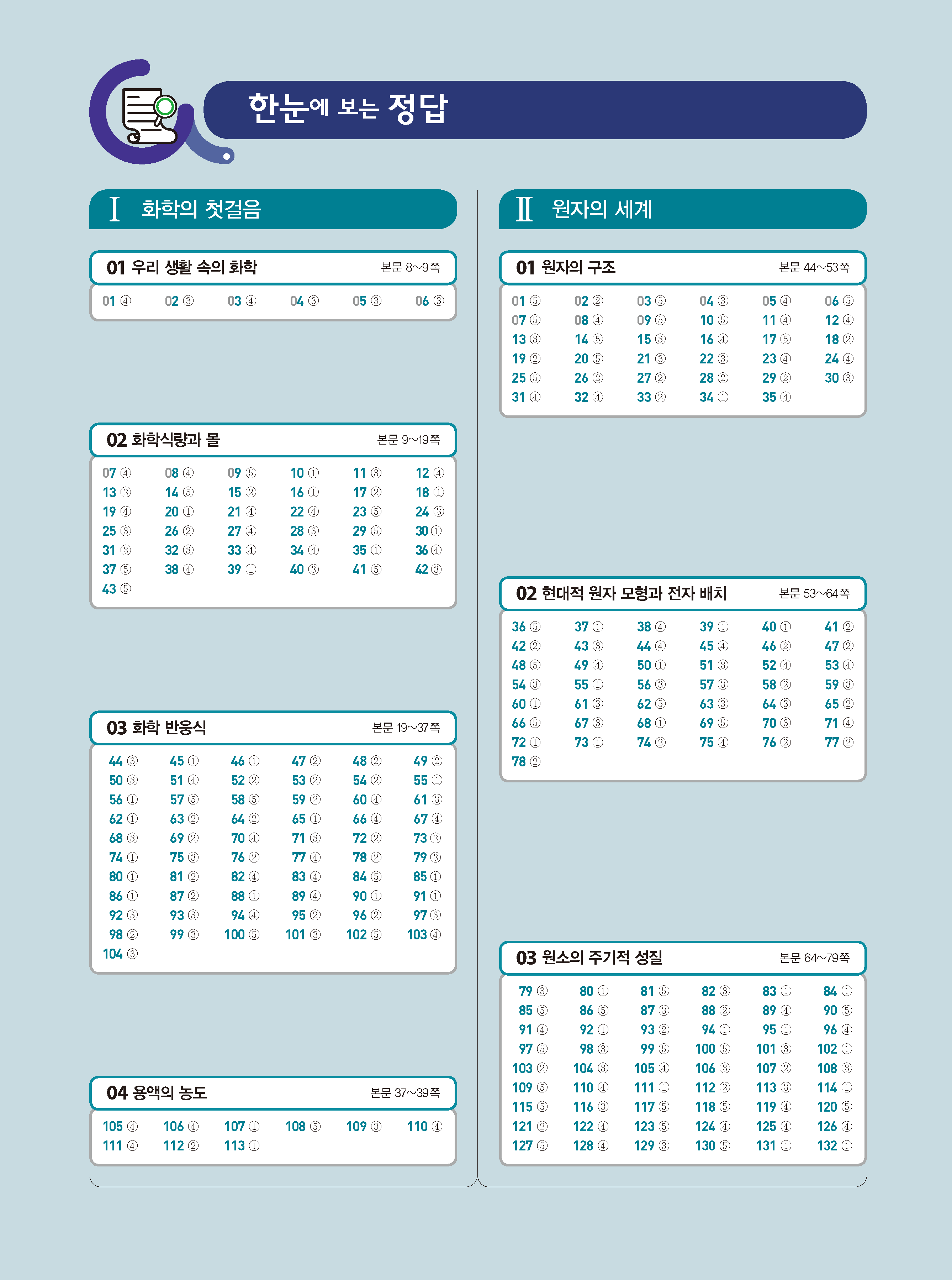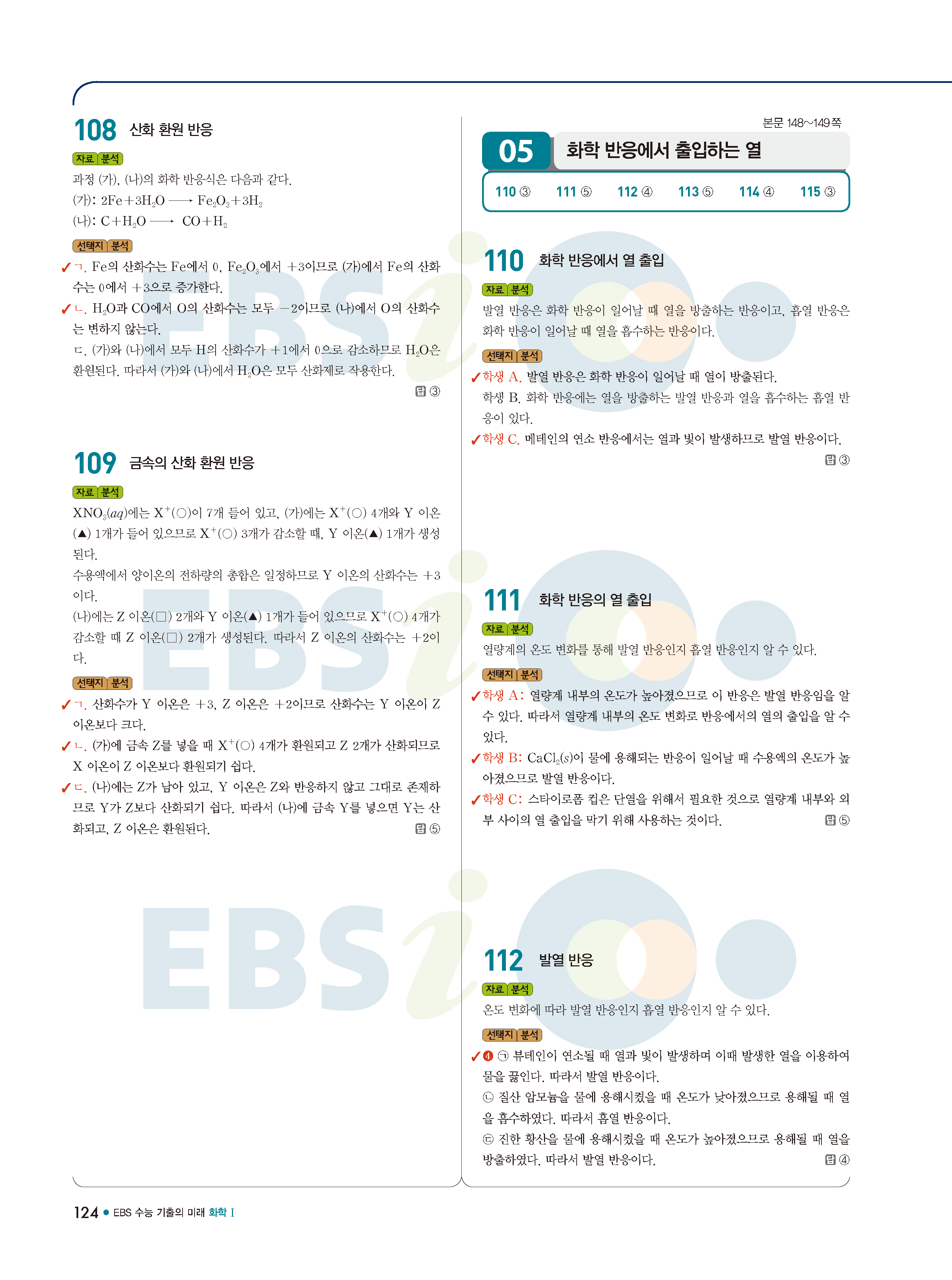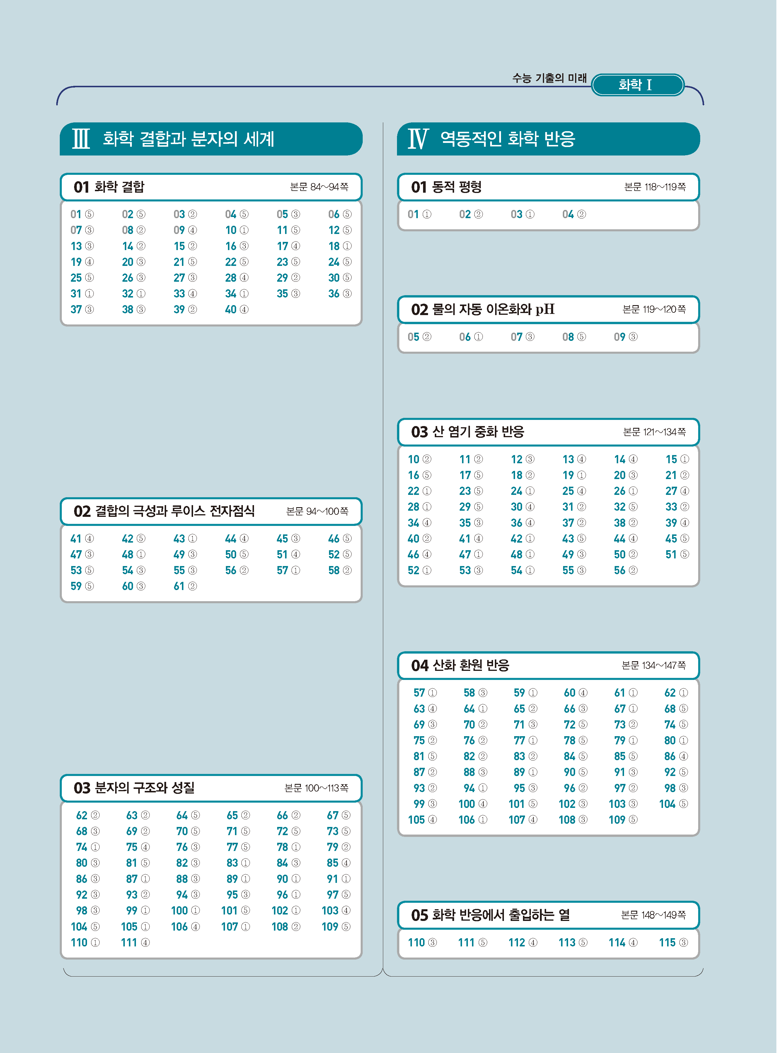 ebs 수능 기출의 미래 화학1 답지 해설지 바로보는 사진답지 빠른답지 모바일최적화