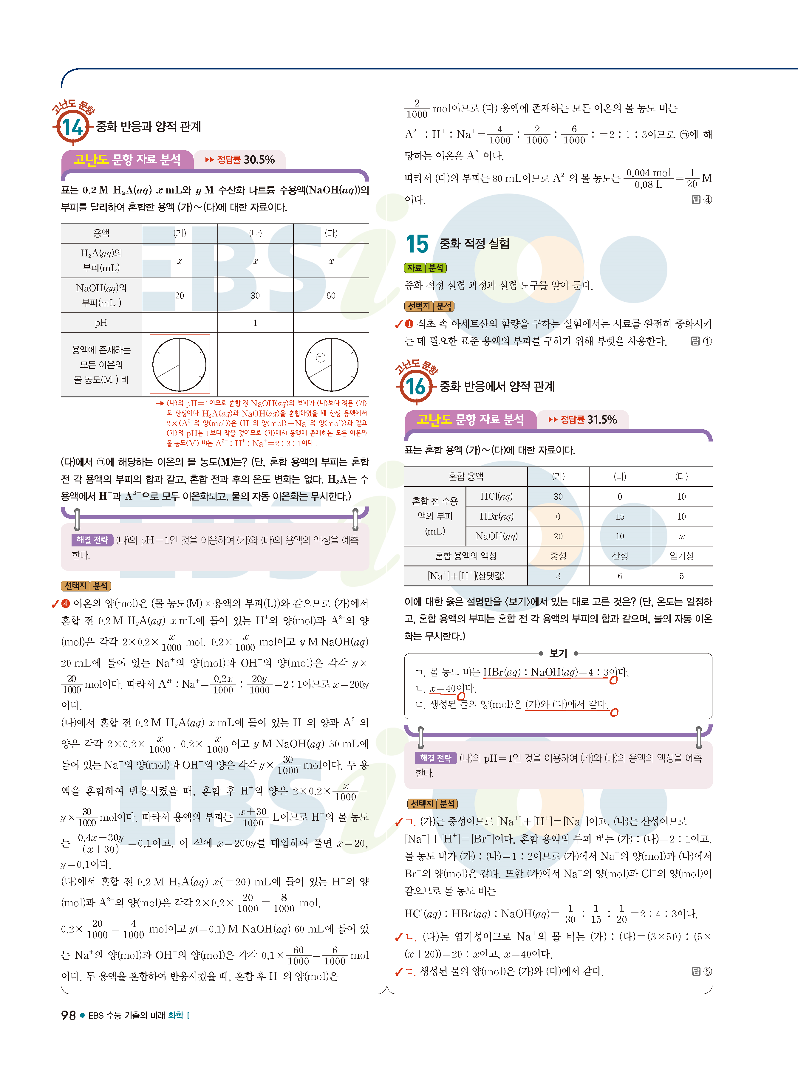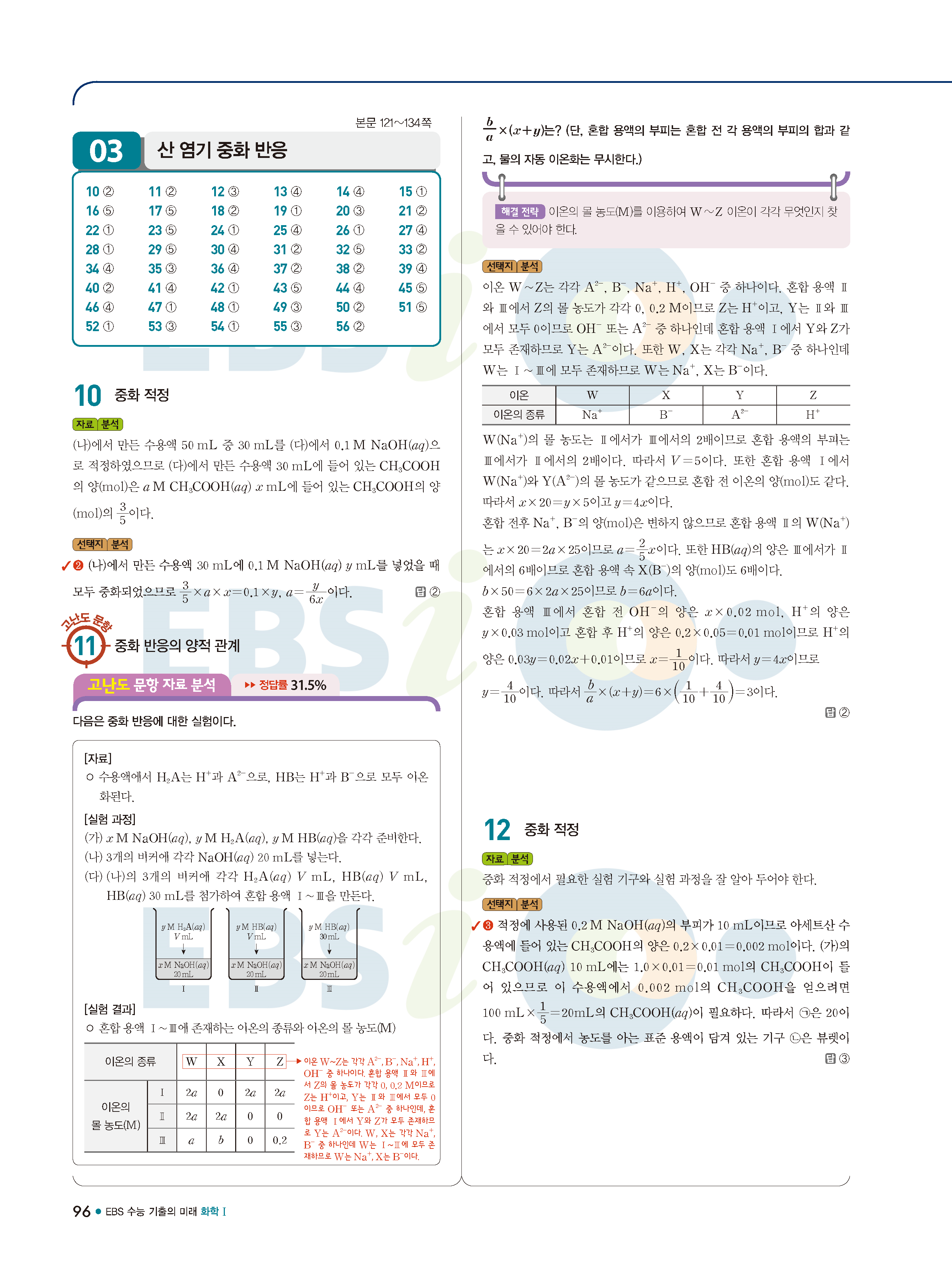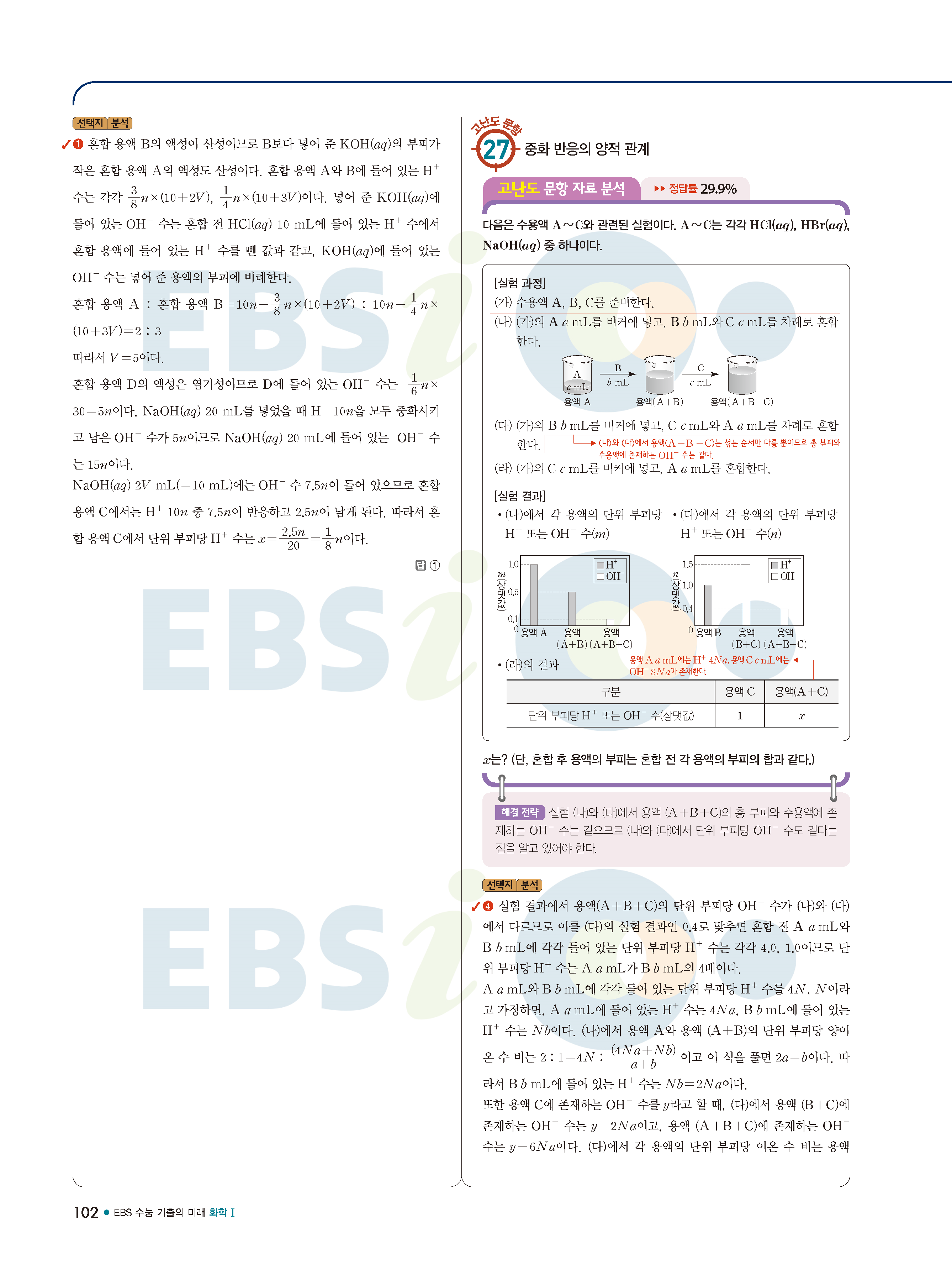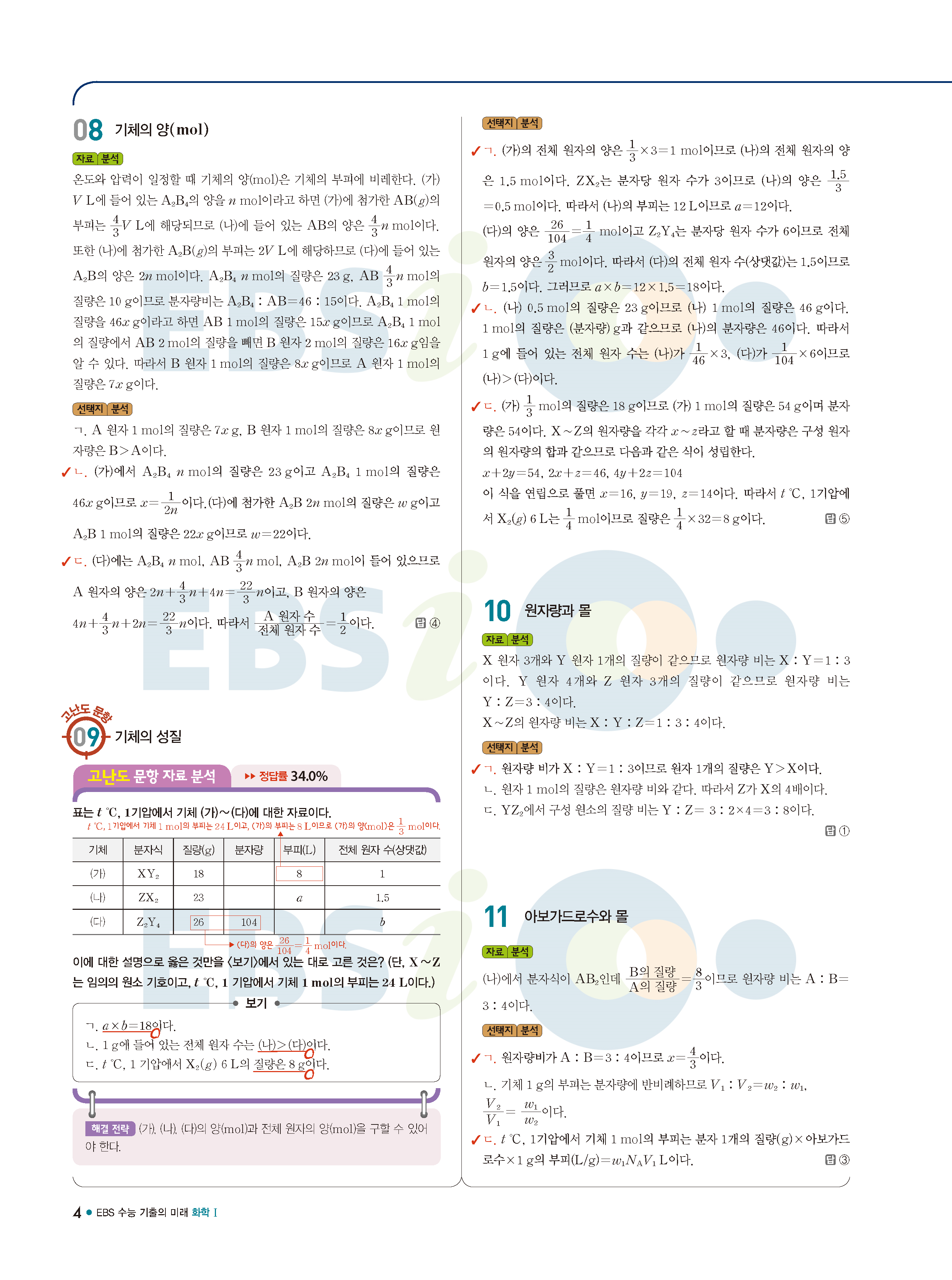 ebs 수능 기출의 미래 화학1 답지 해설지 바로보는 사진답지 빠른답지 모바일최적화
