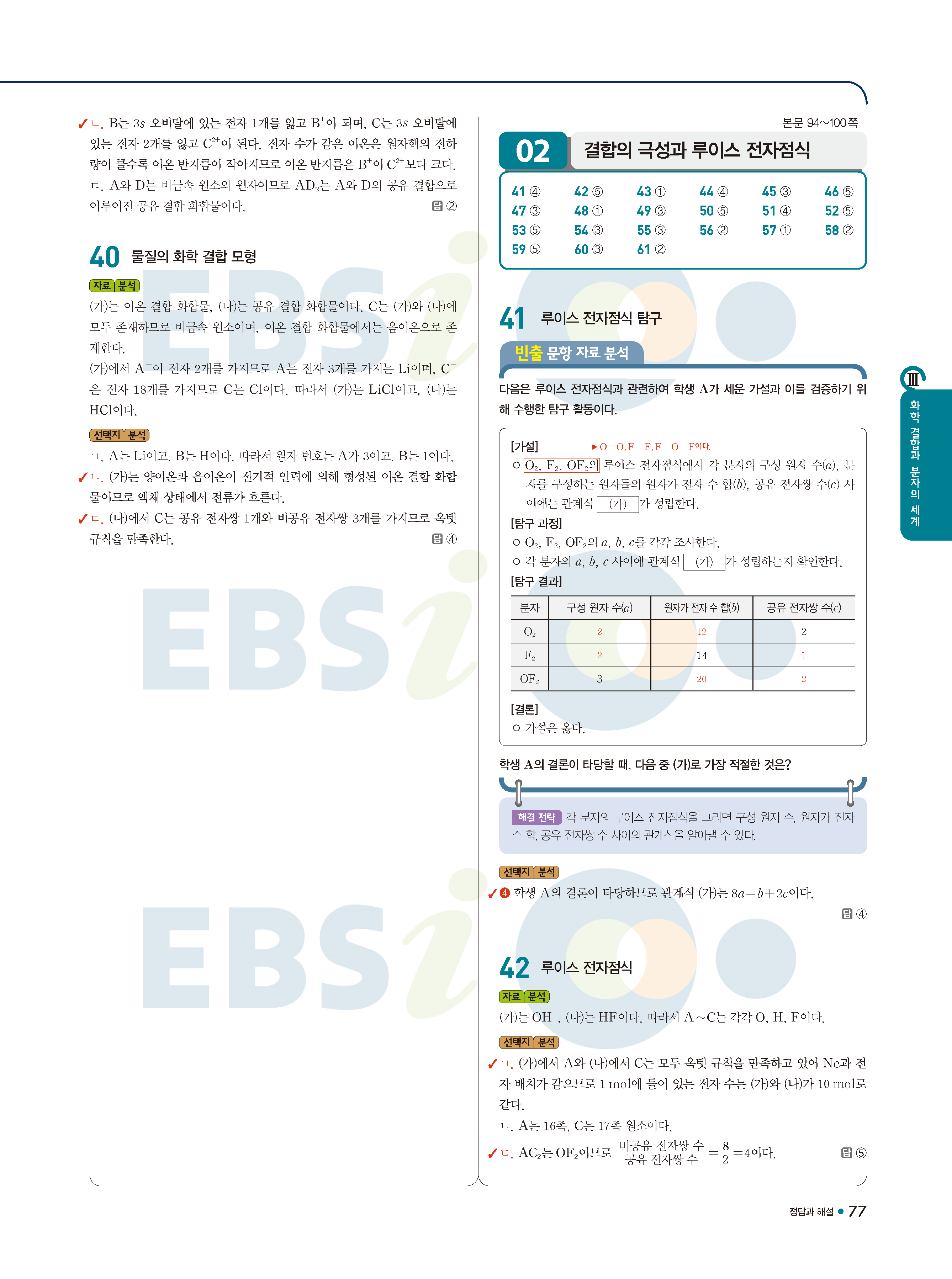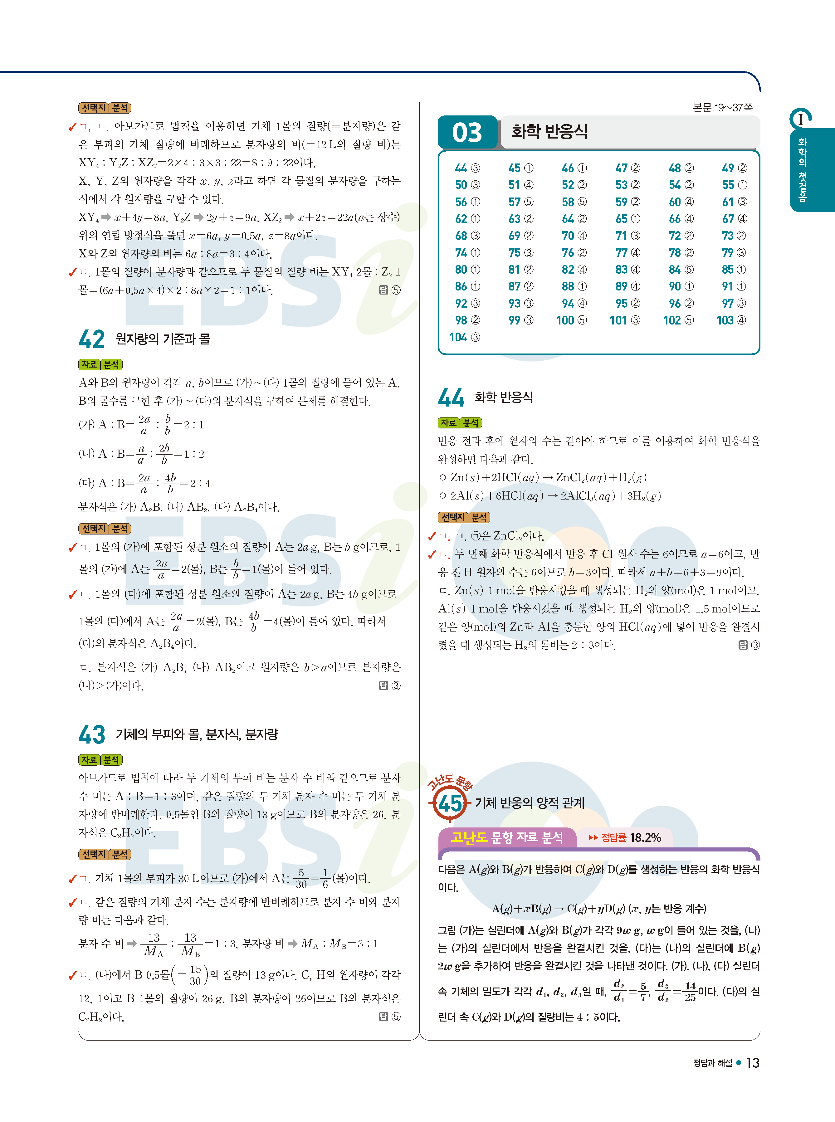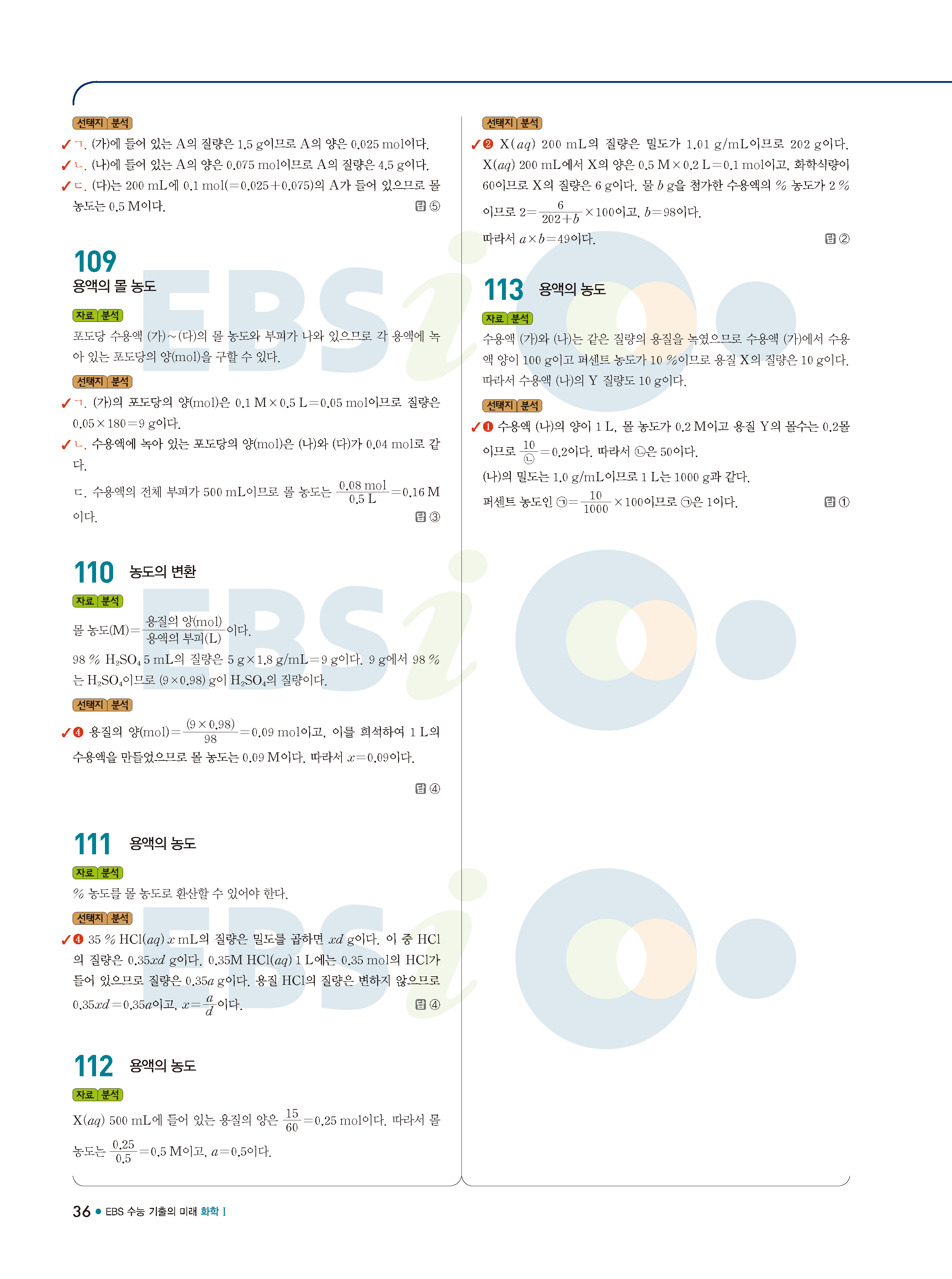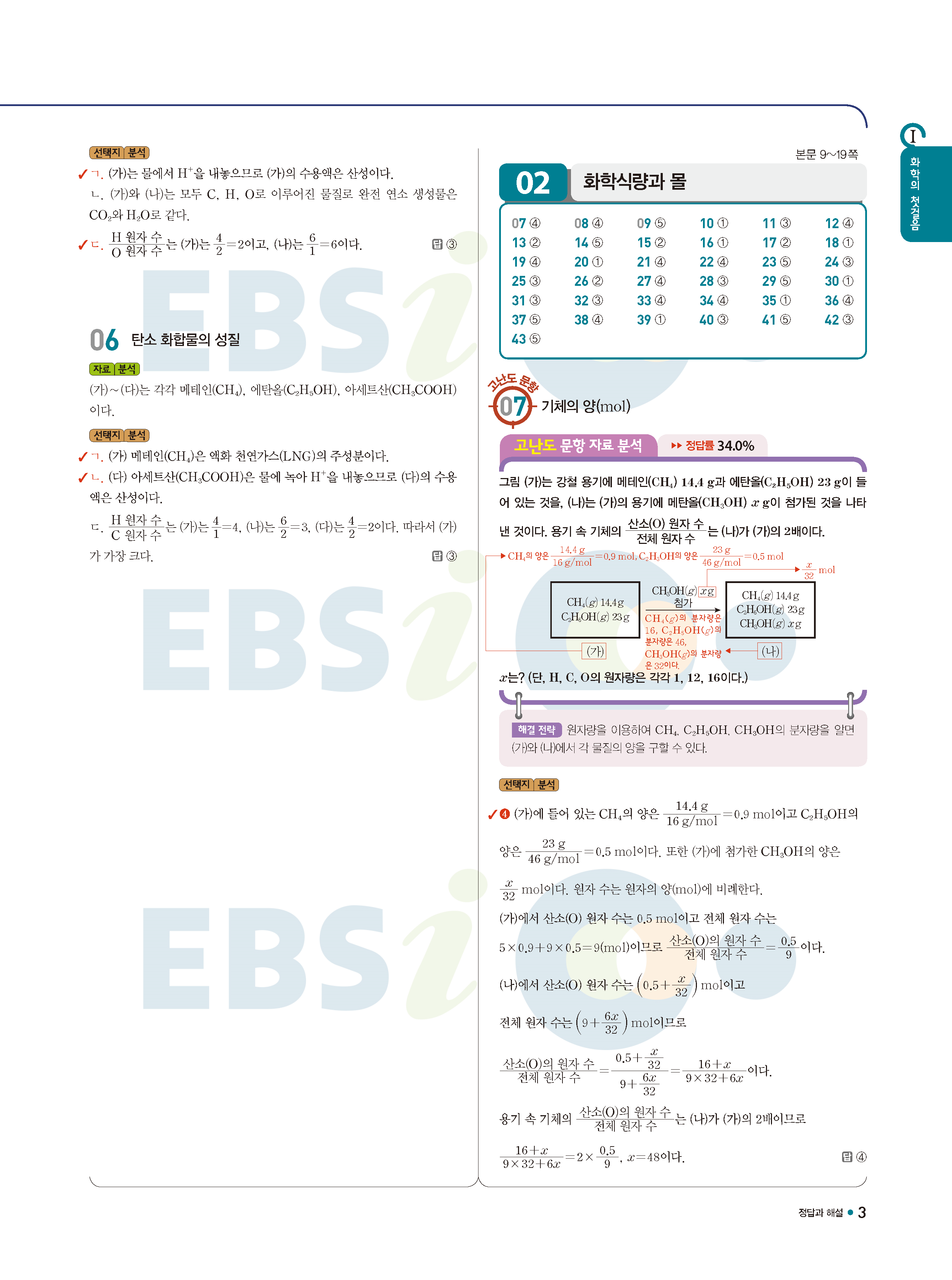 ebs 수능 기출의 미래 화학1 답지 해설지 바로보는 사진답지 빠른답지 모바일최적화