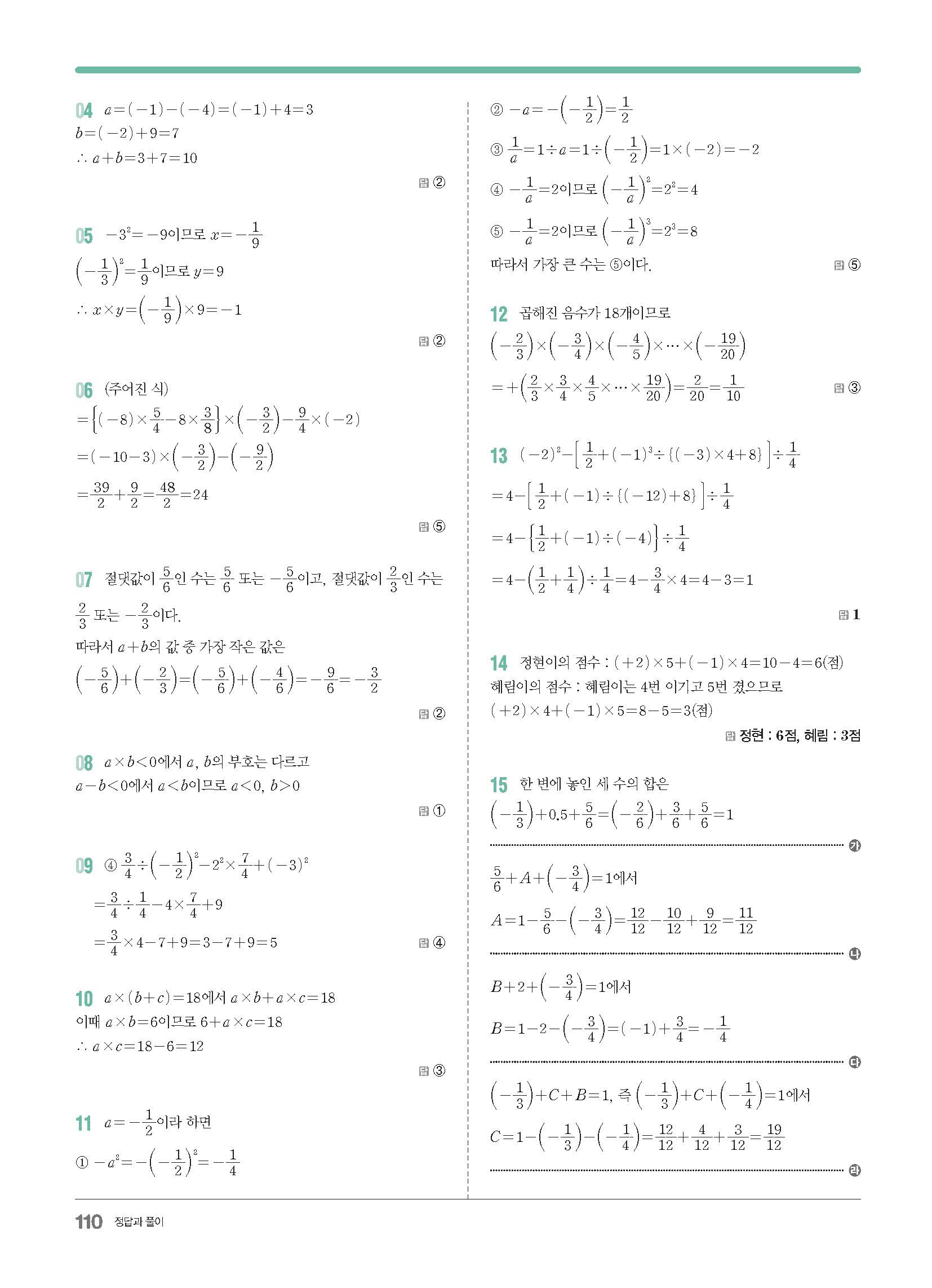 | 라이트쎈 중1-1 | https://mathuncle.tistory.com/15 |