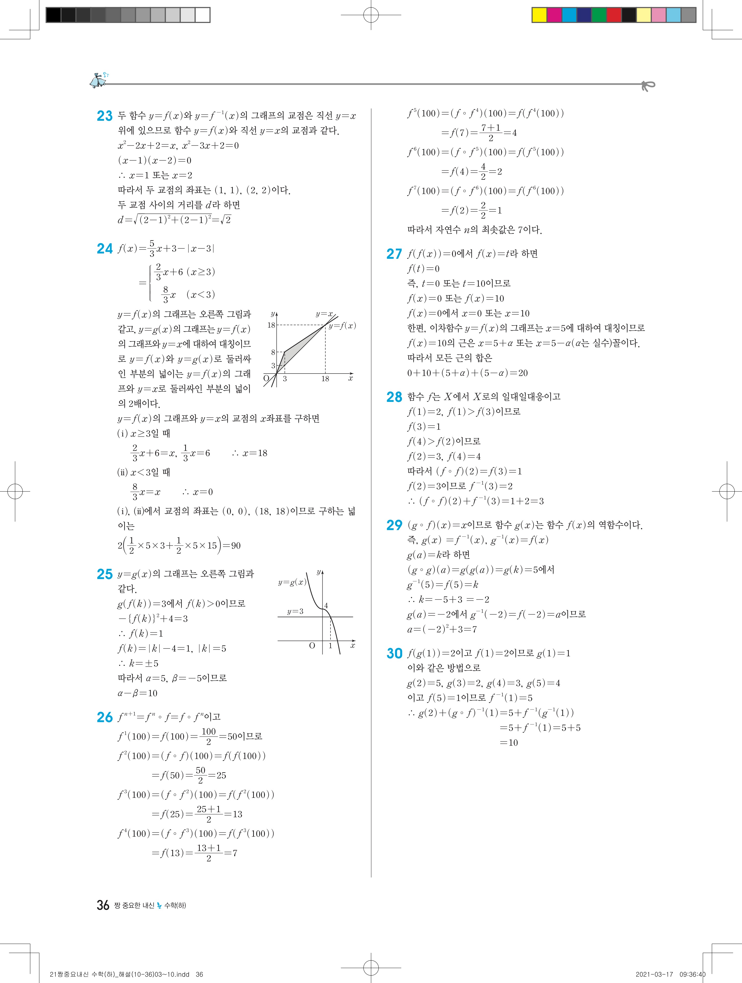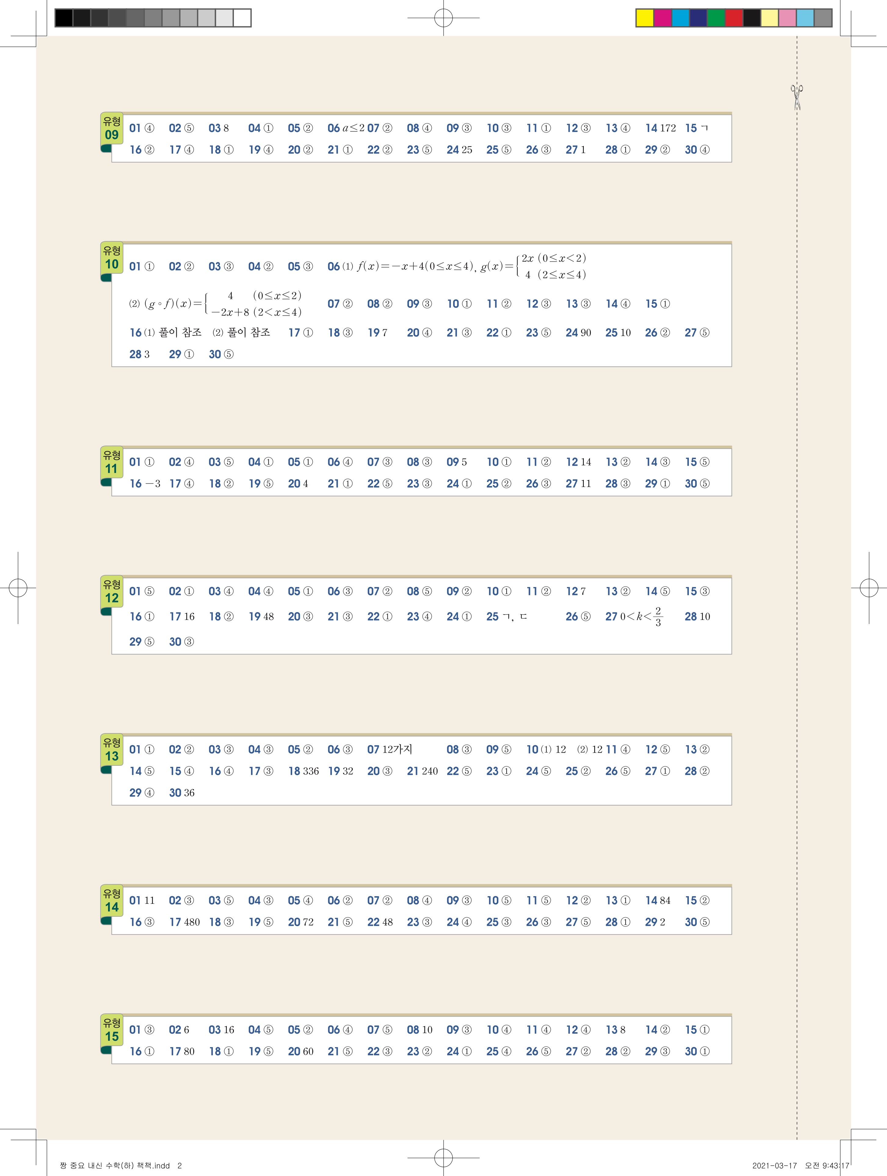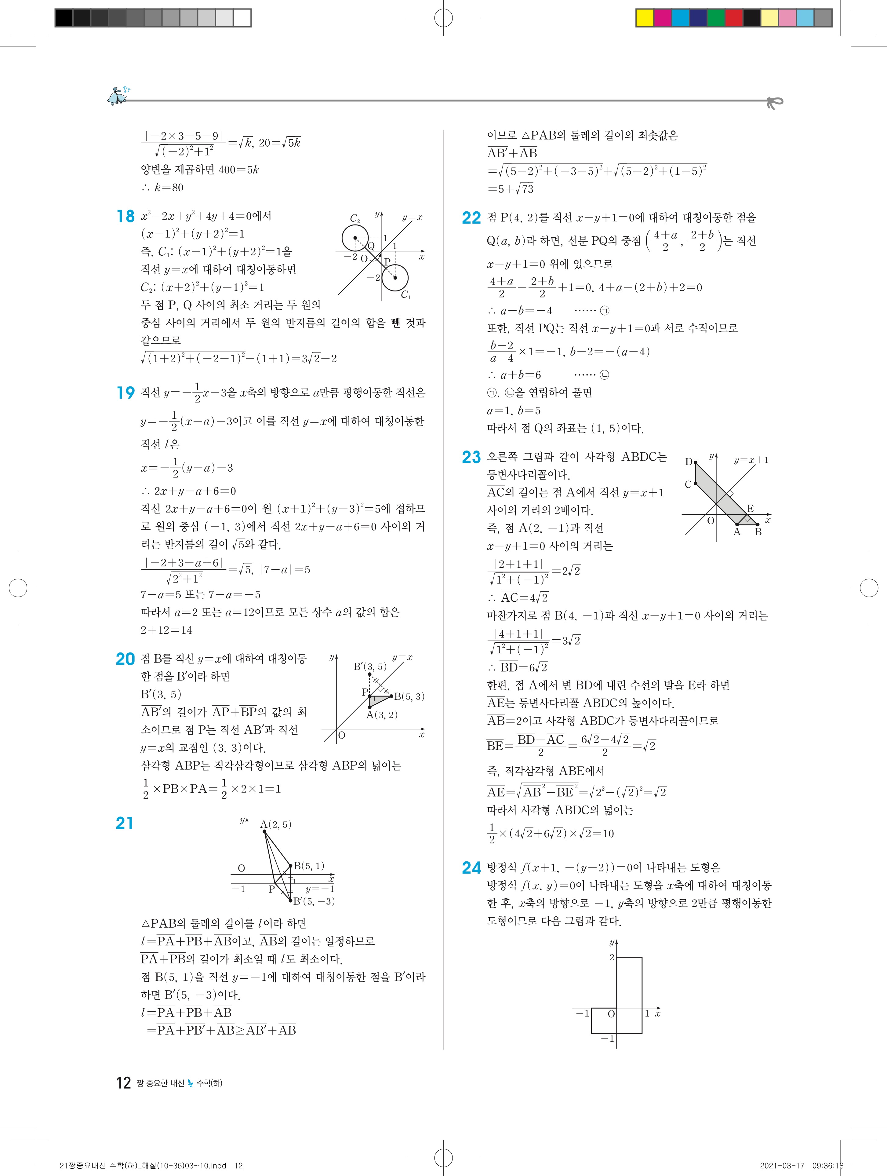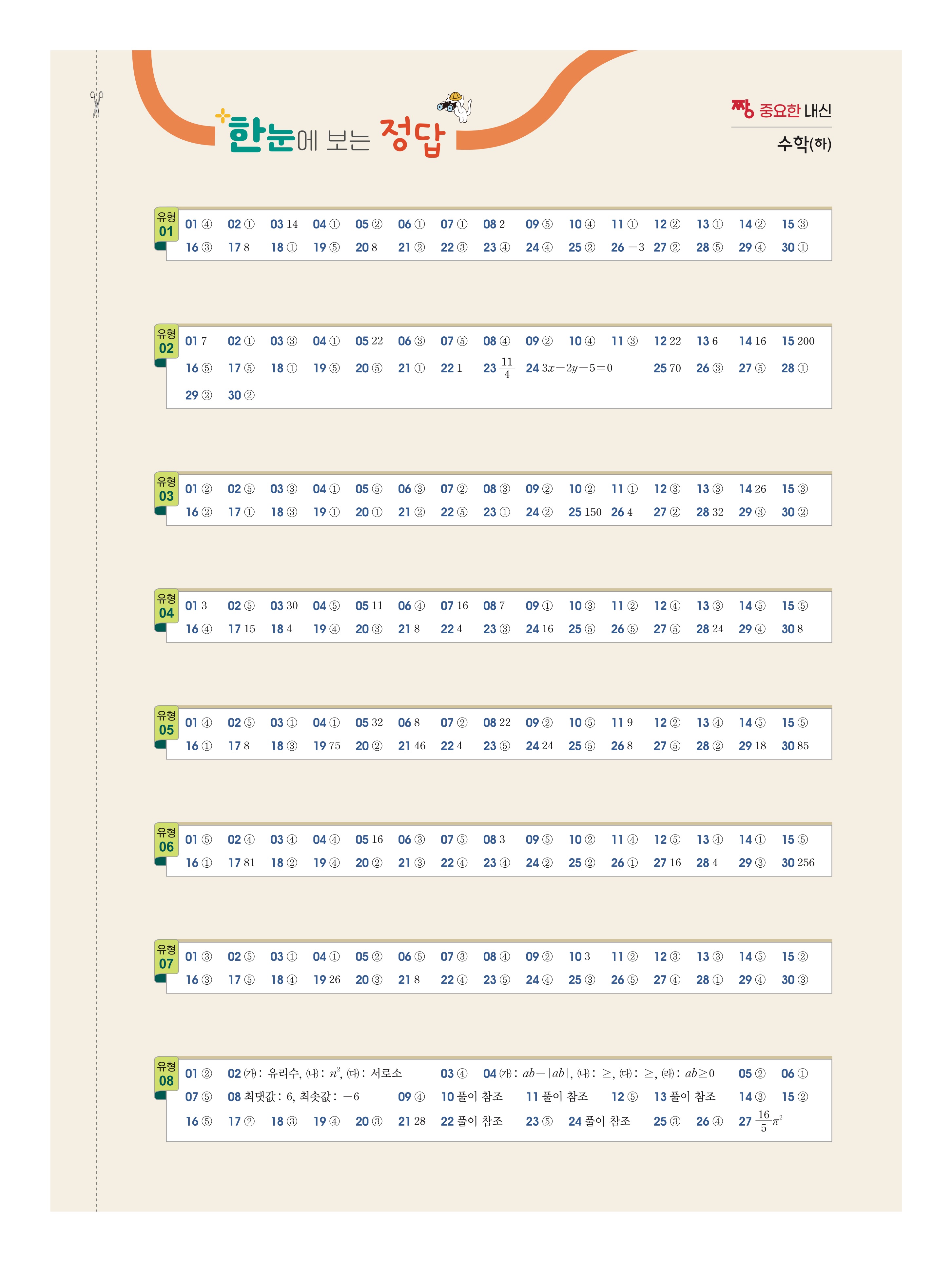 짱쉬운내신 수학하 답지 해설 바로보는 사진답지 빠른답지 모바일최적화