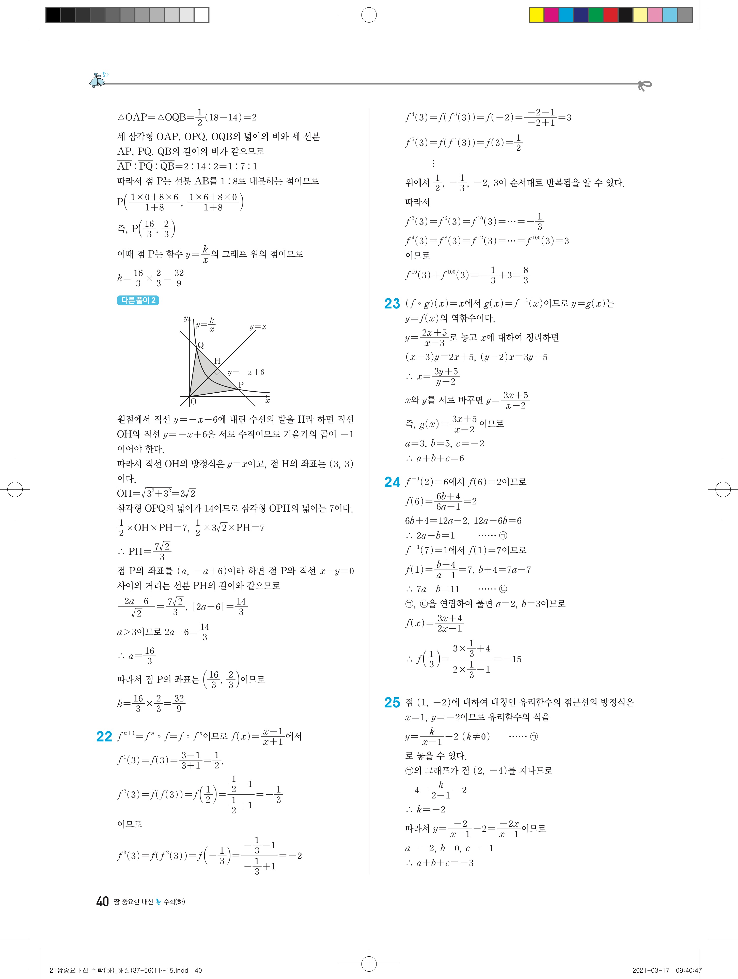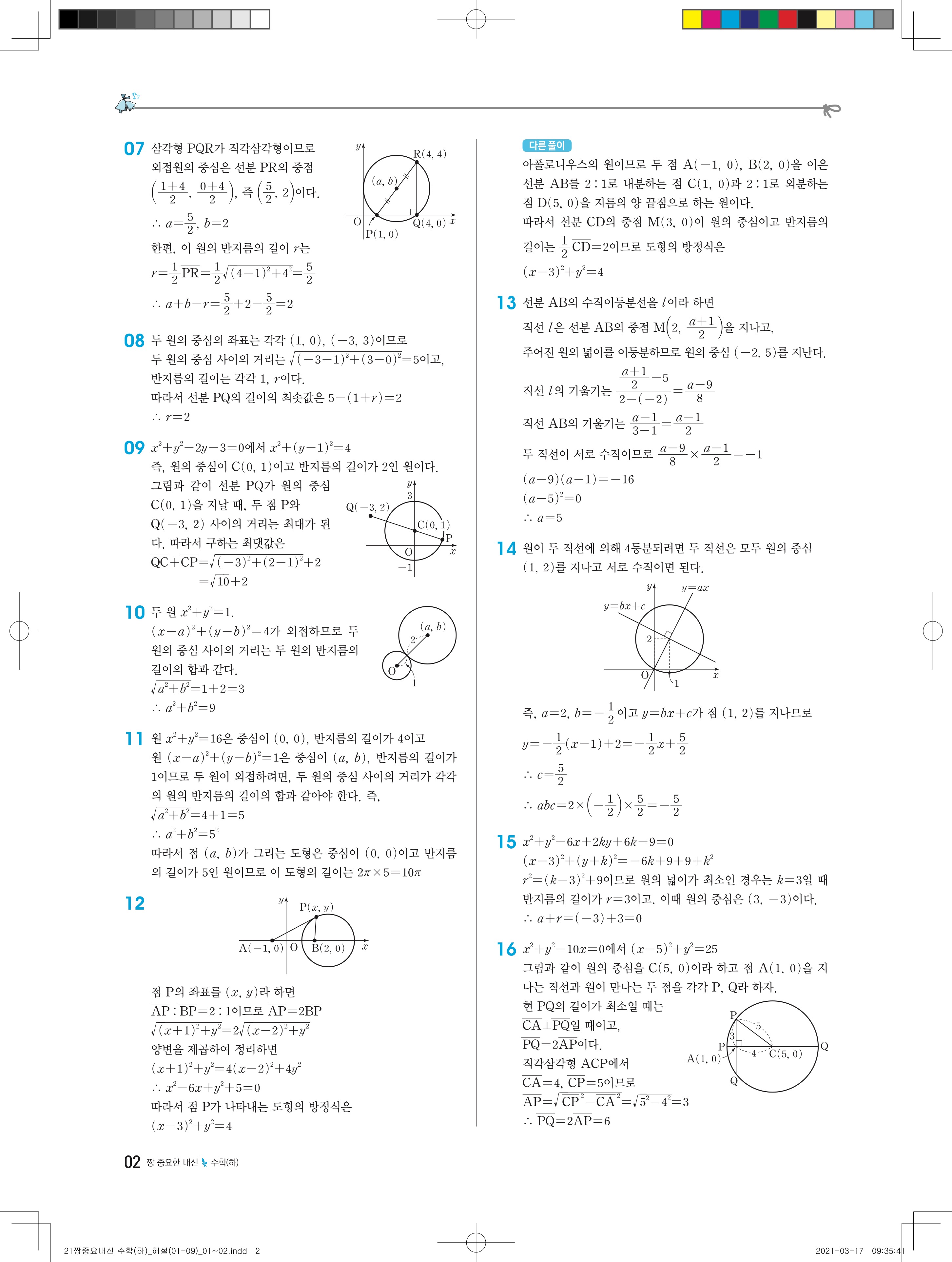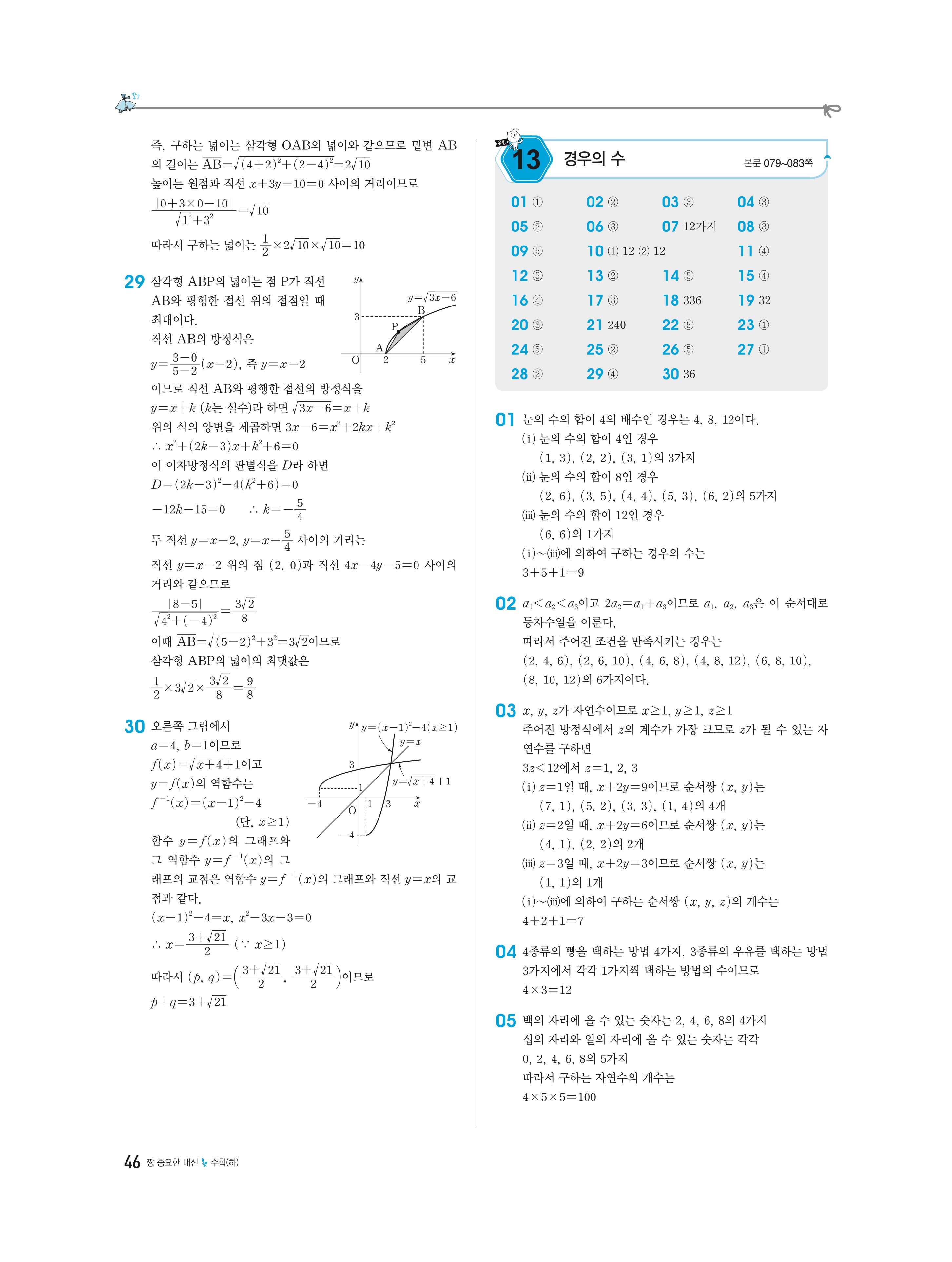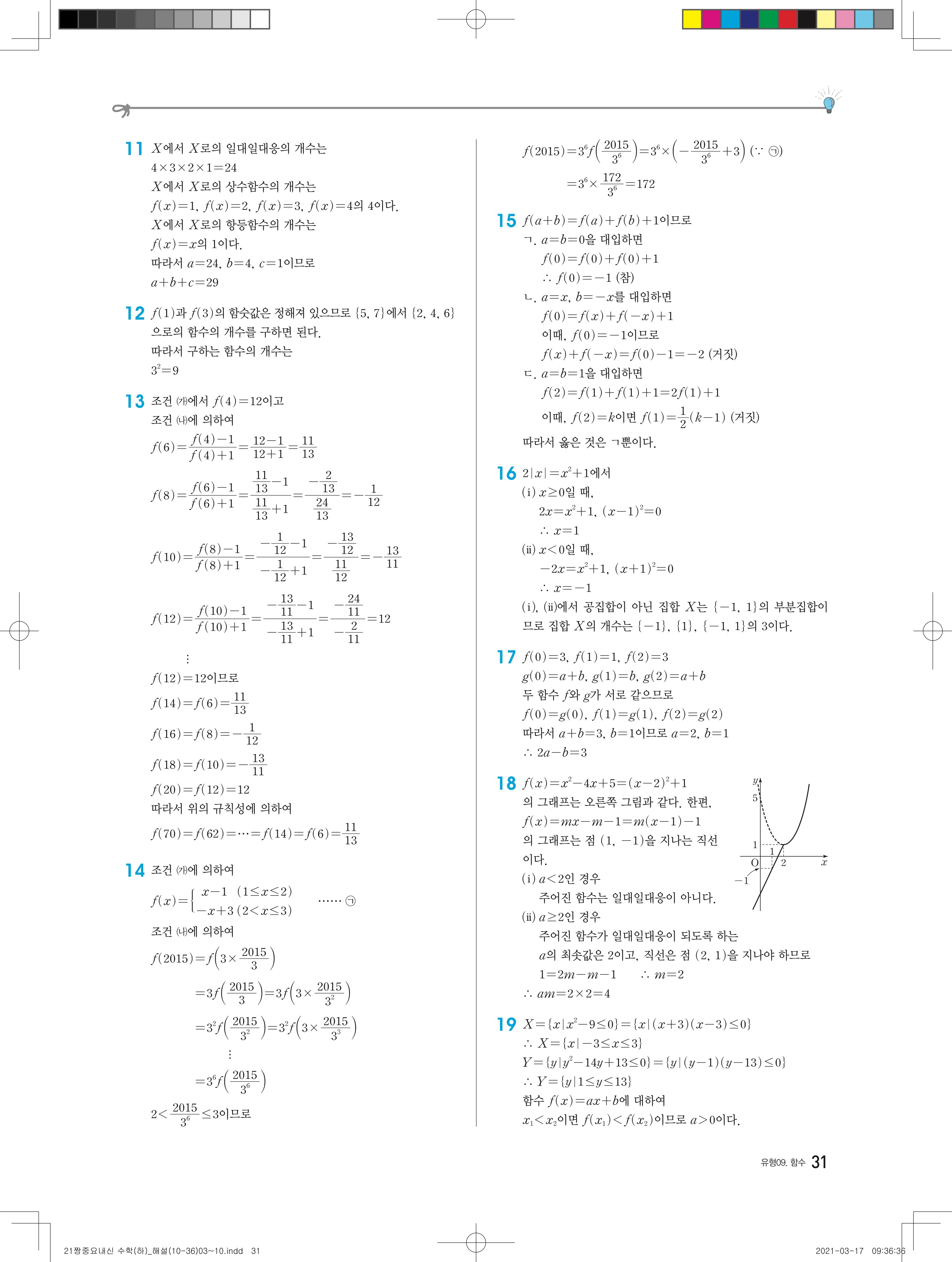 짱쉬운내신 수학하 답지 해설 바로보는 사진답지 빠른답지 모바일최적화