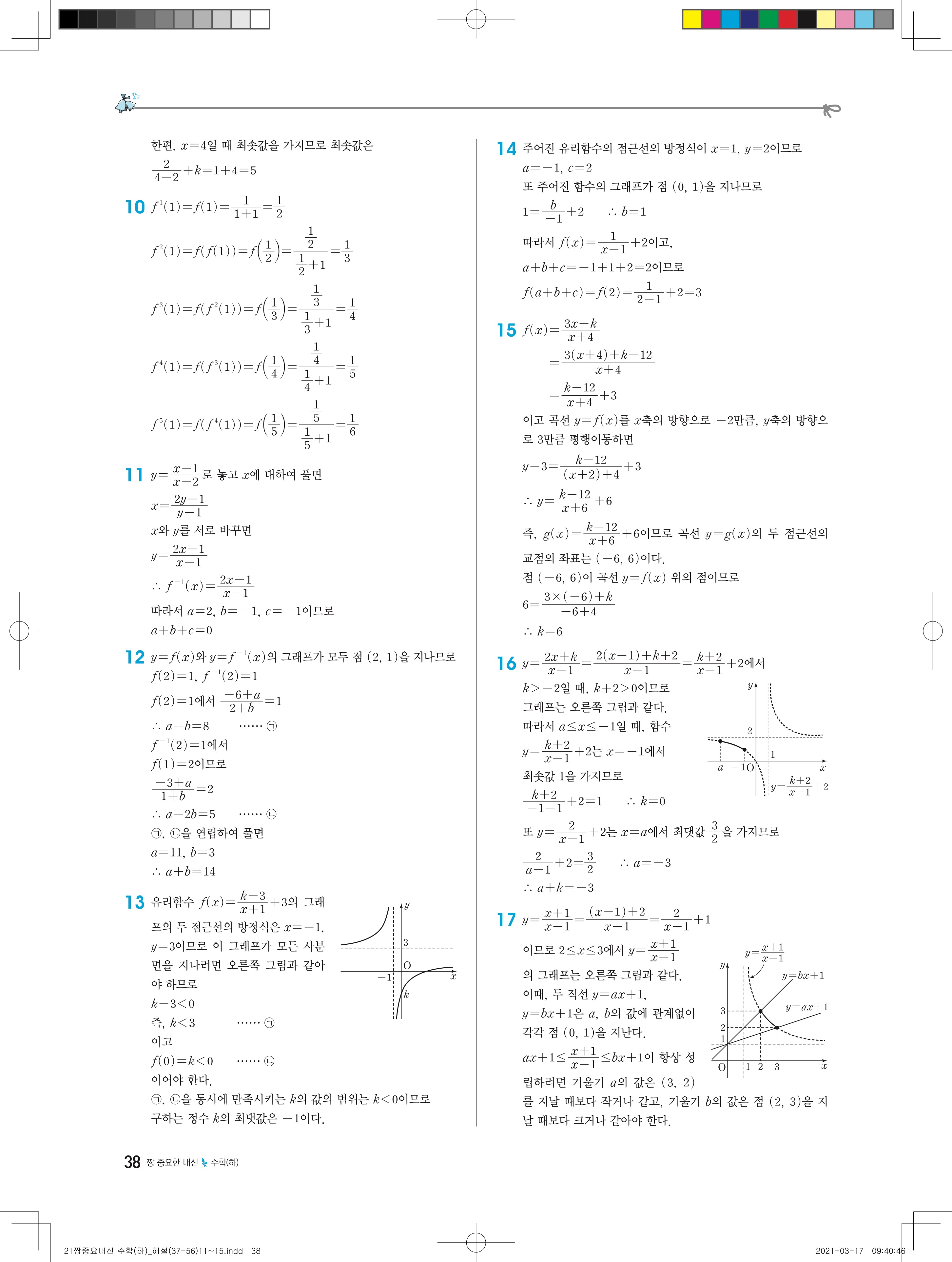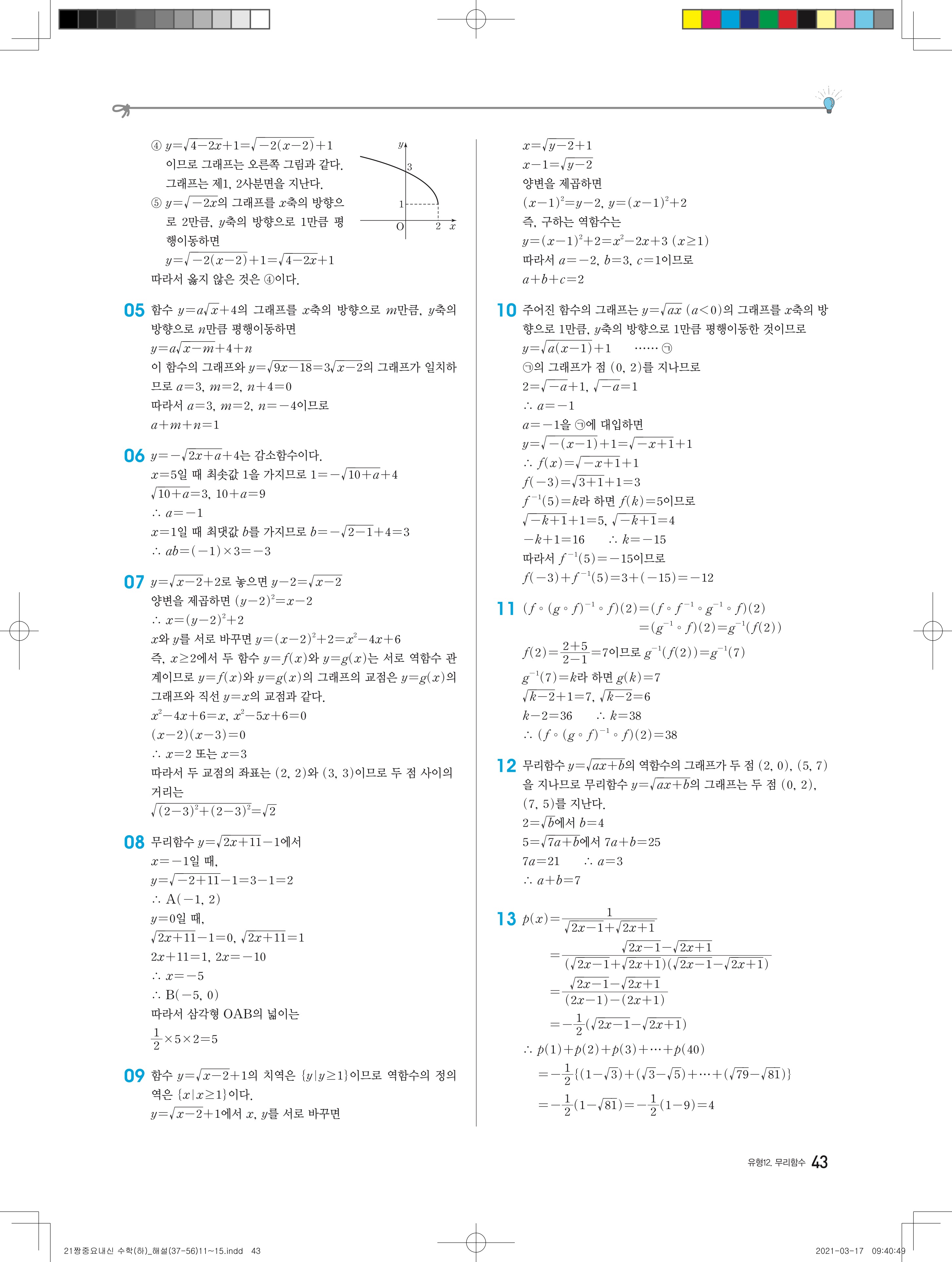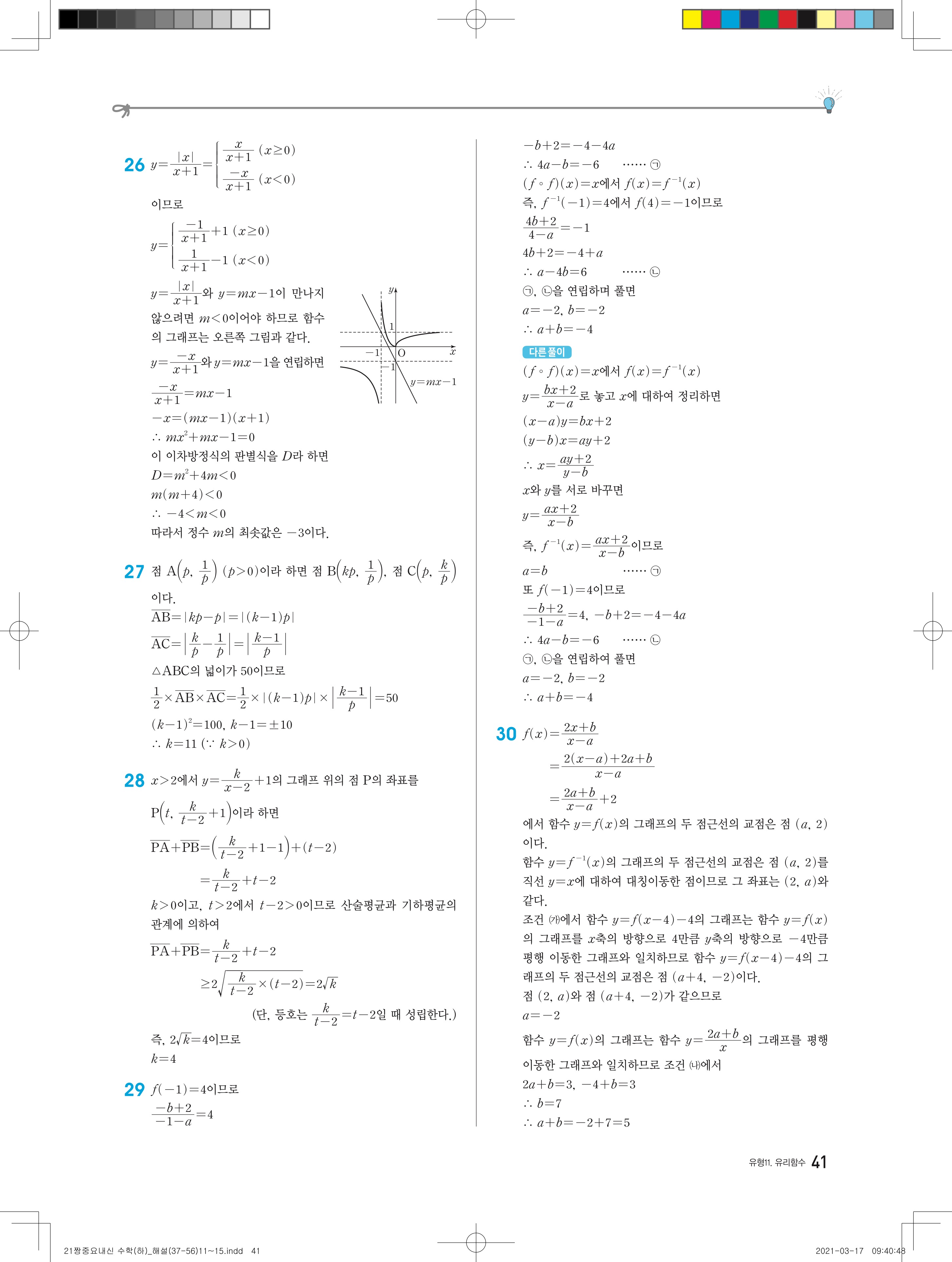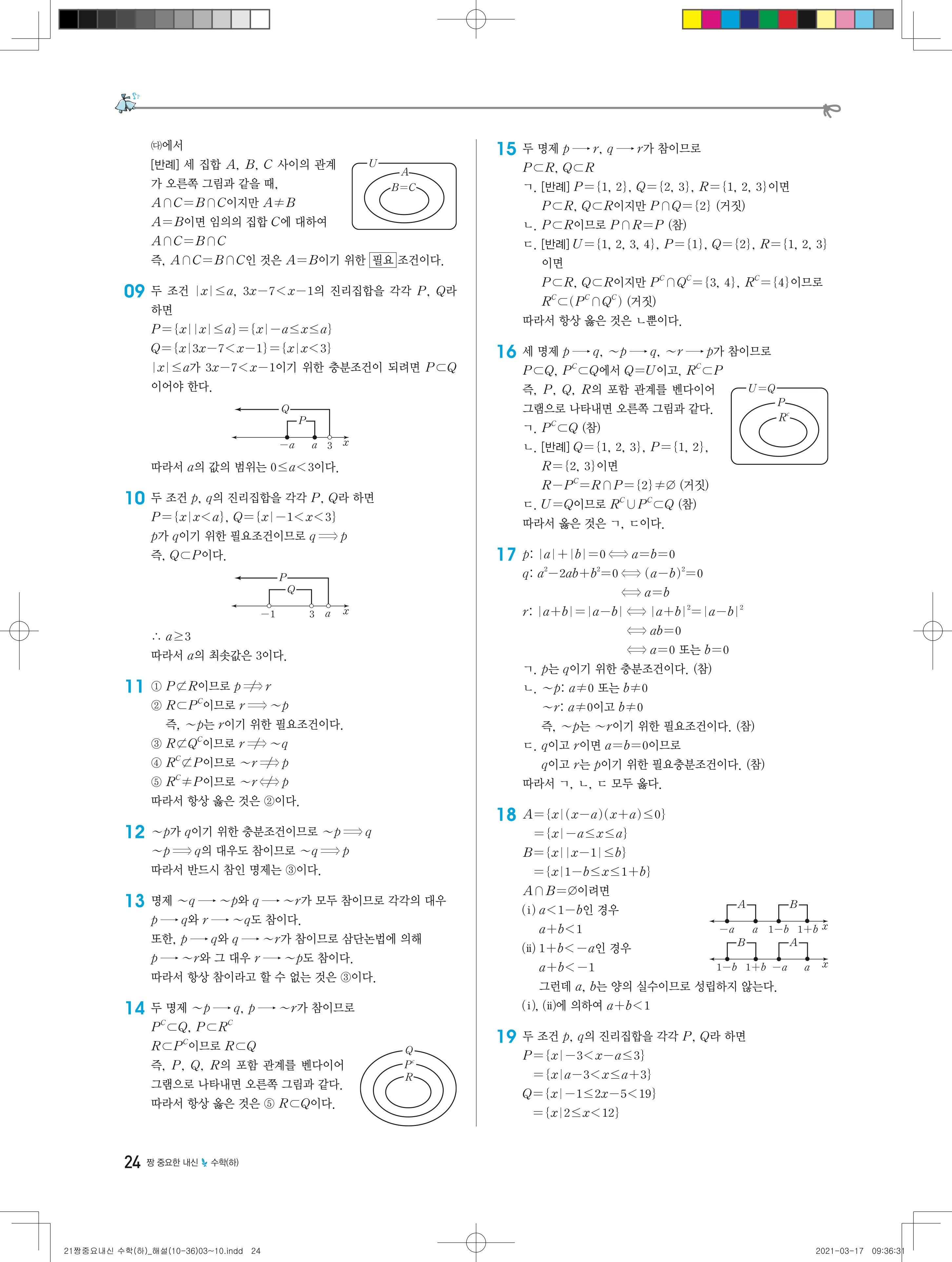 짱쉬운내신 수학하 답지 해설 바로보는 사진답지 빠른답지 모바일최적화