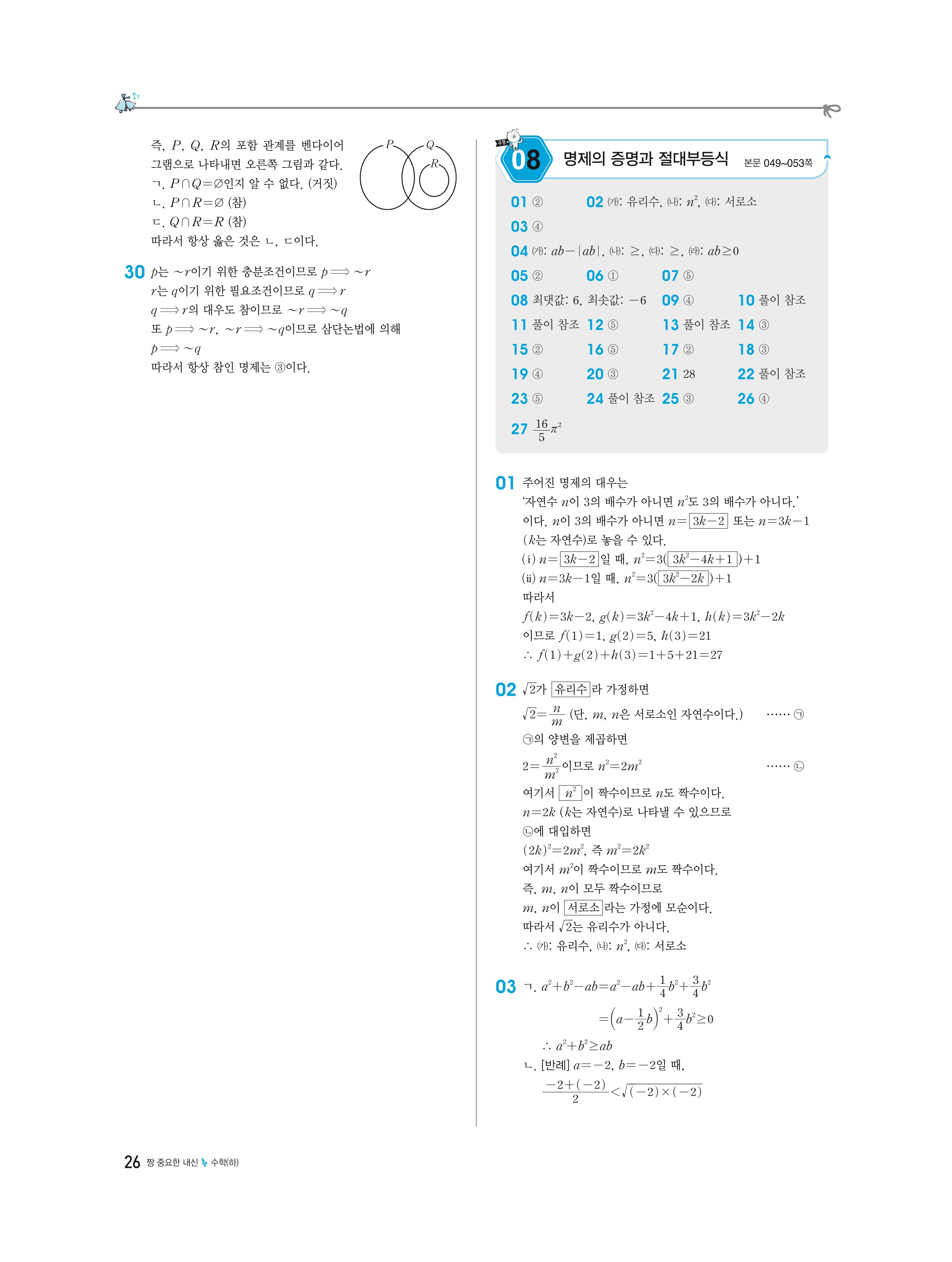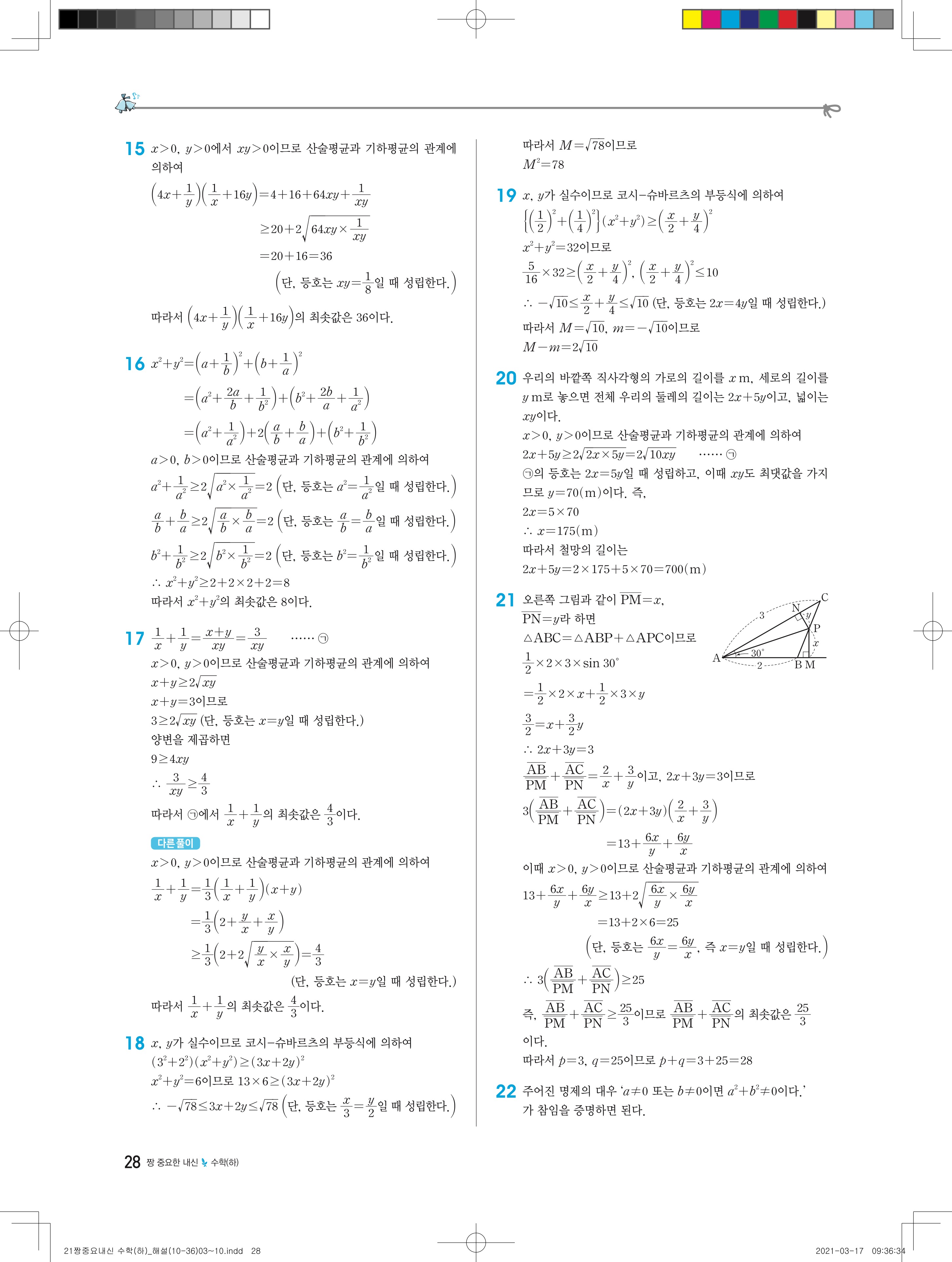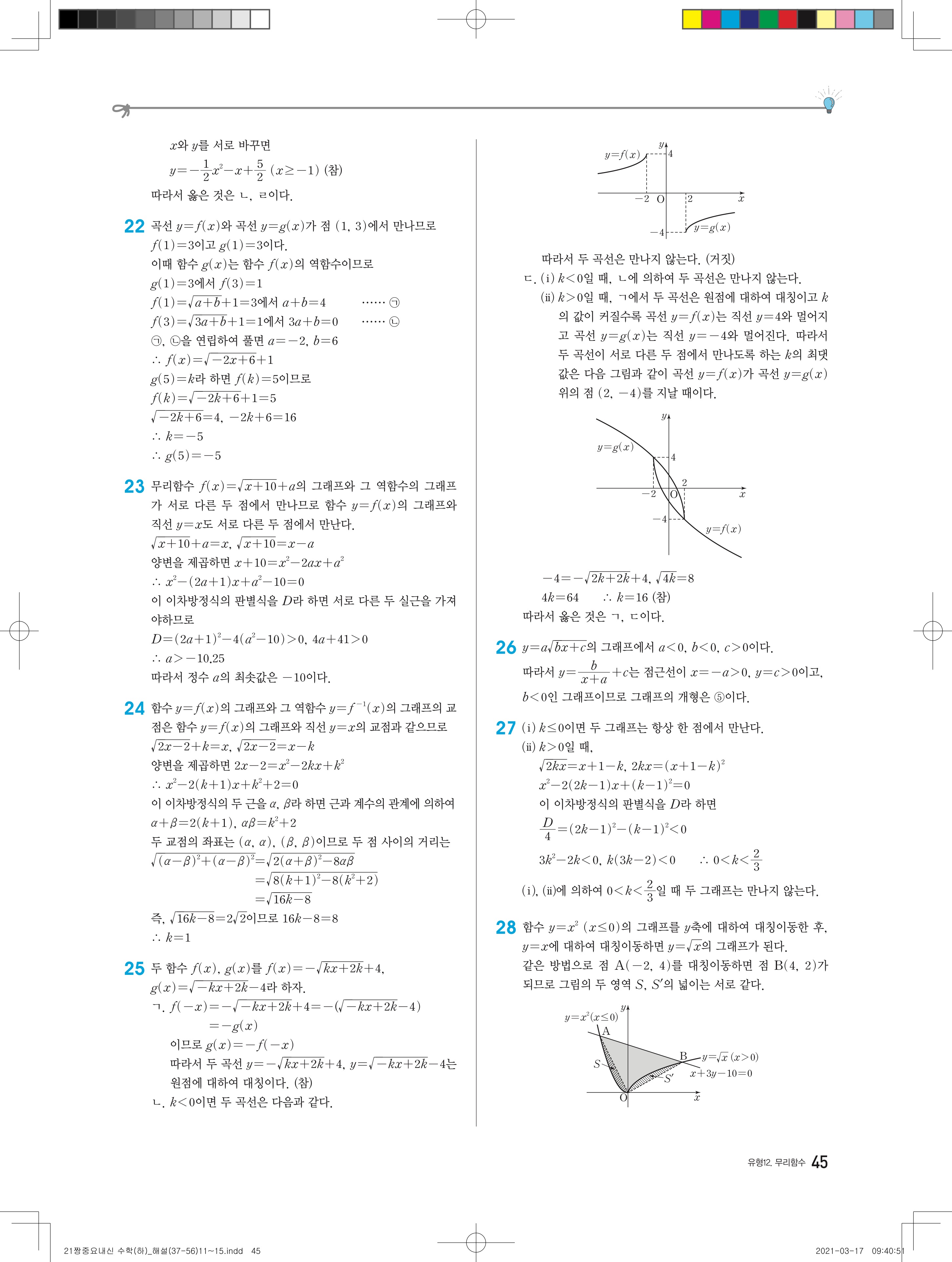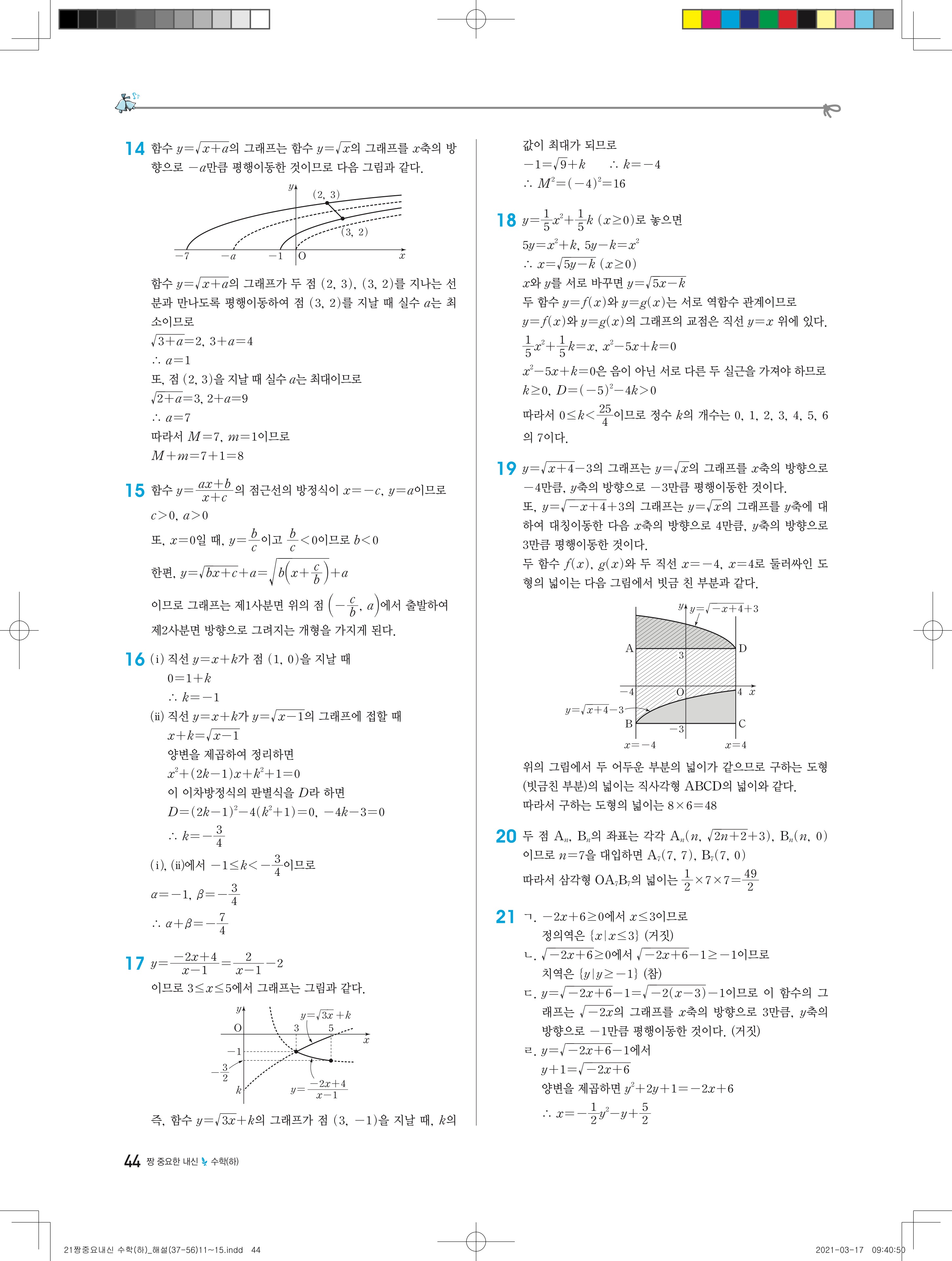 짱쉬운내신 수학하 답지 해설 바로보는 사진답지 빠른답지 모바일최적화
