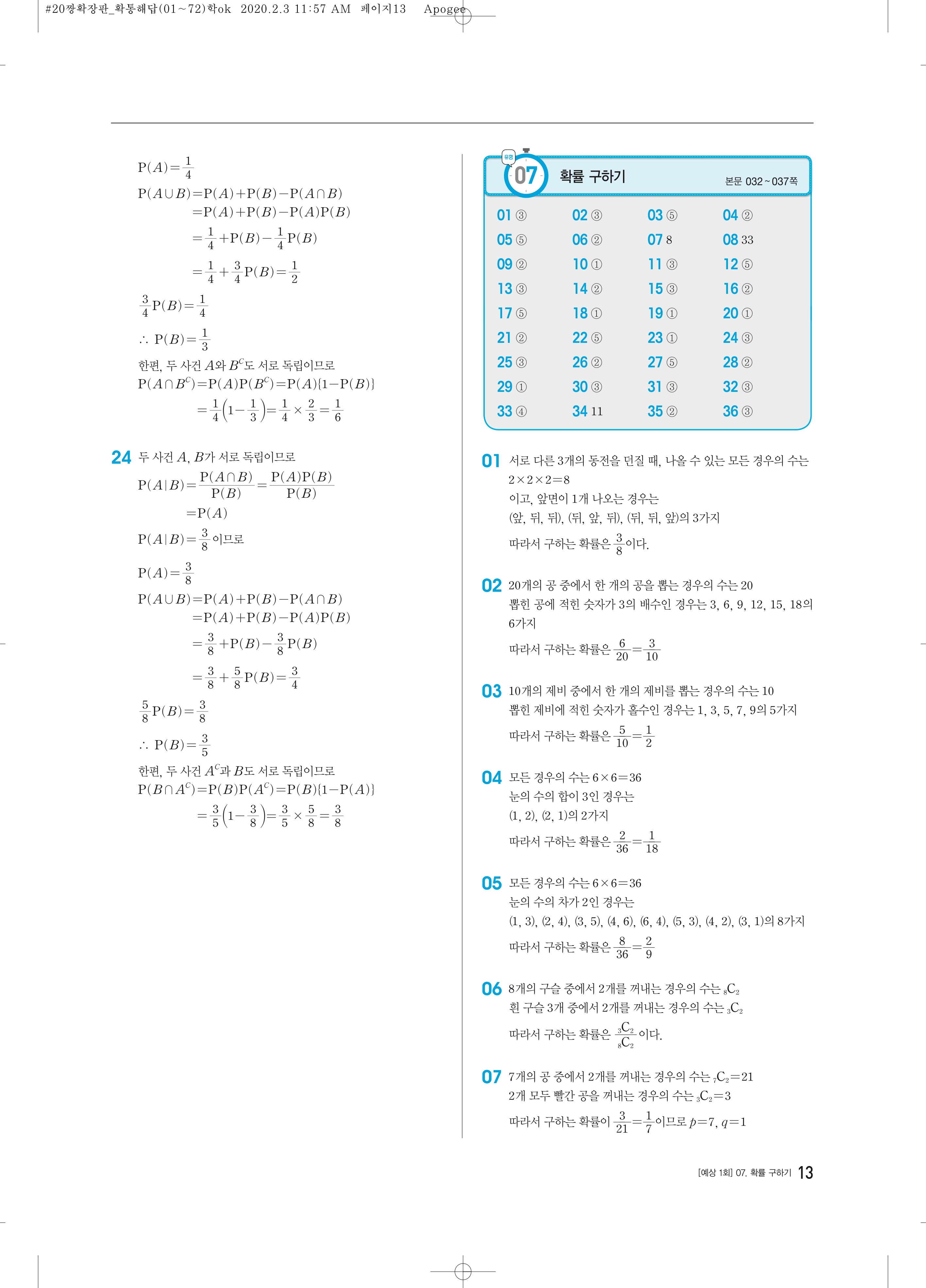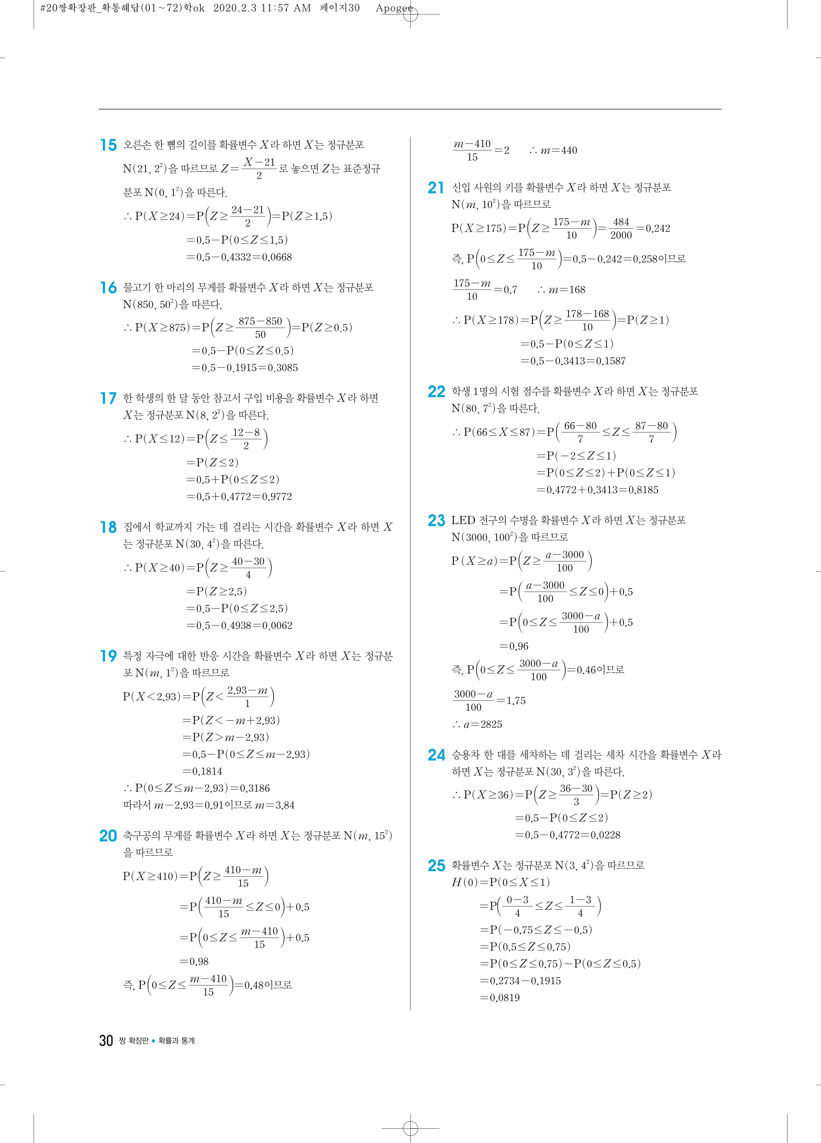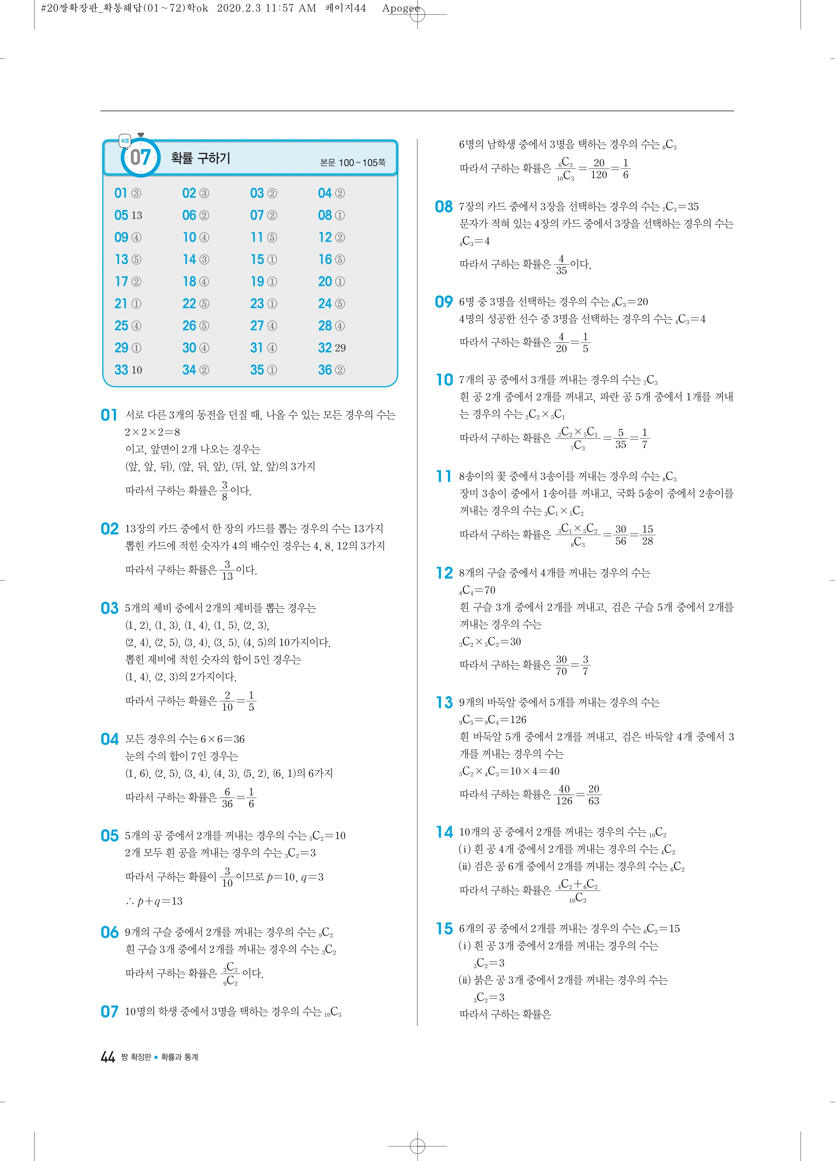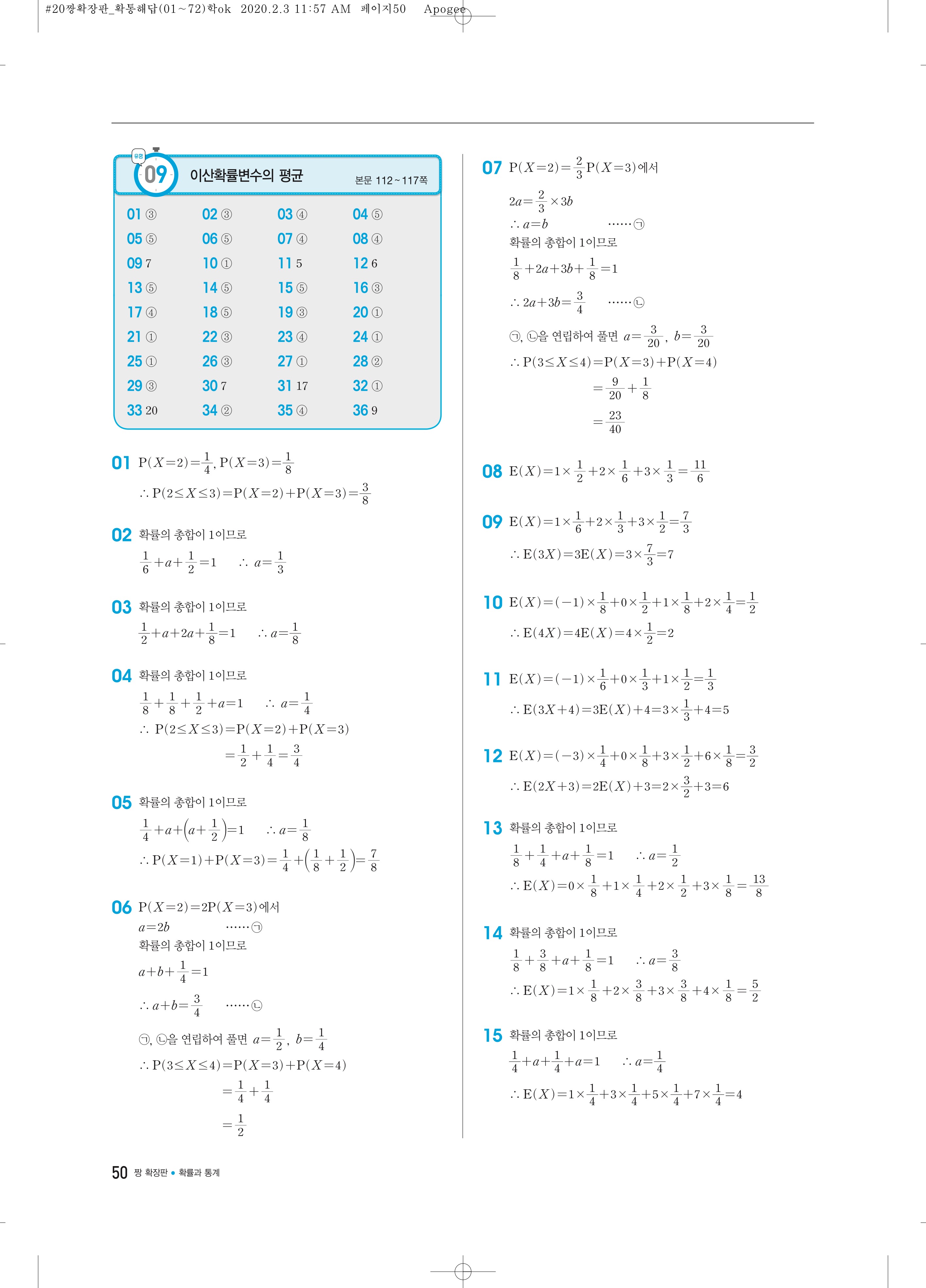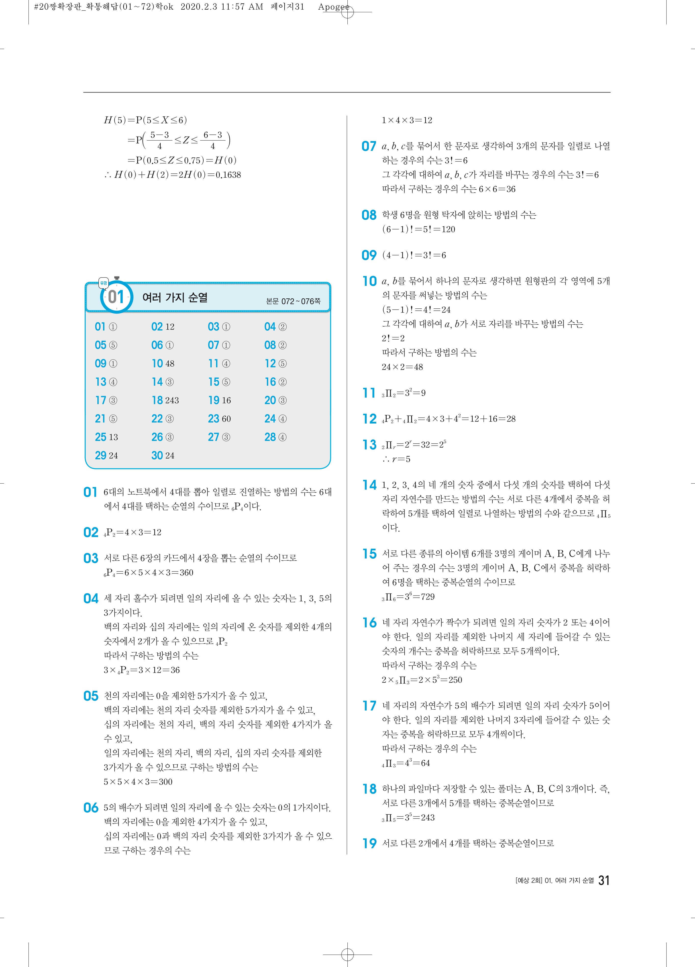 짱쉬운유형 확장판 확률과통계 답지 해설 바로보는 사진답지 빠른답지 모바일최적화