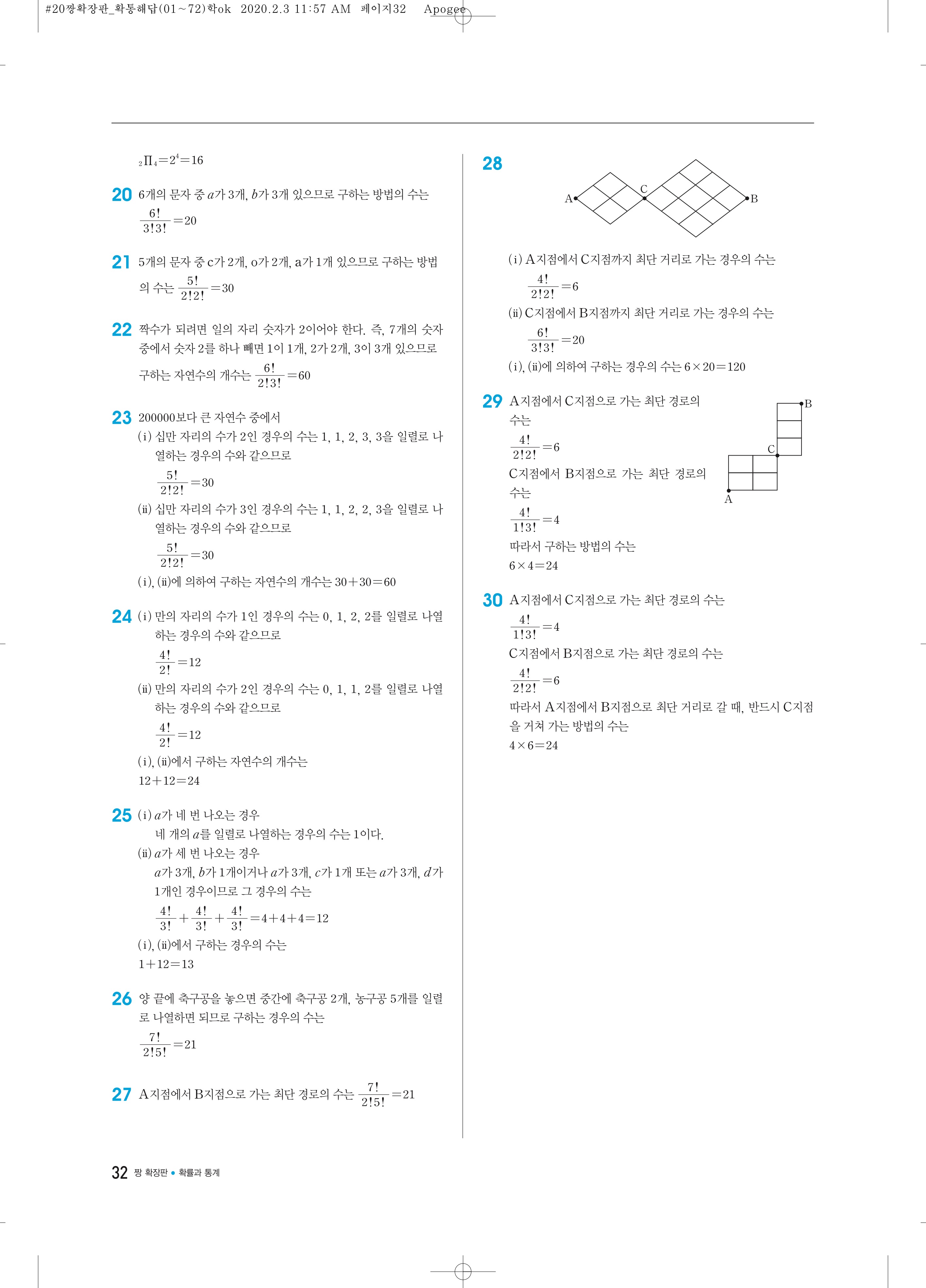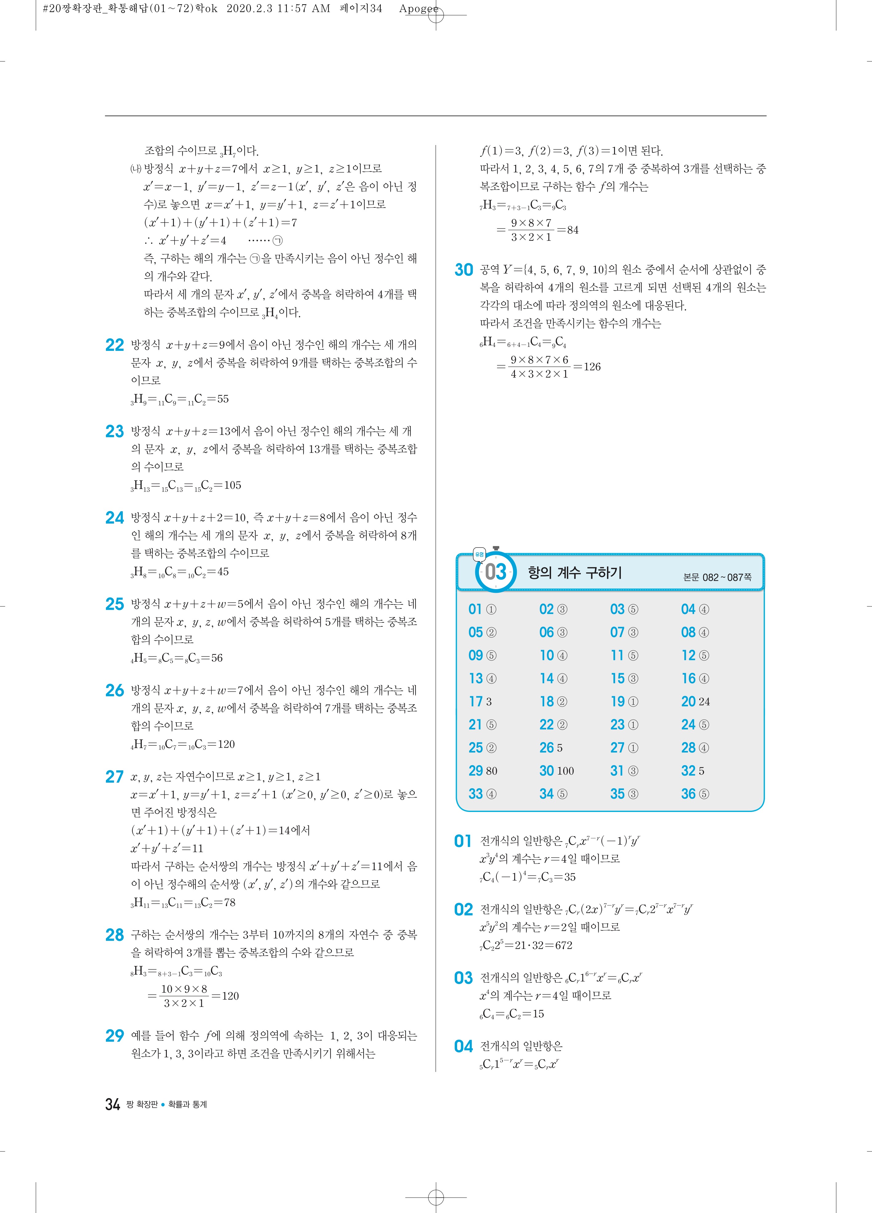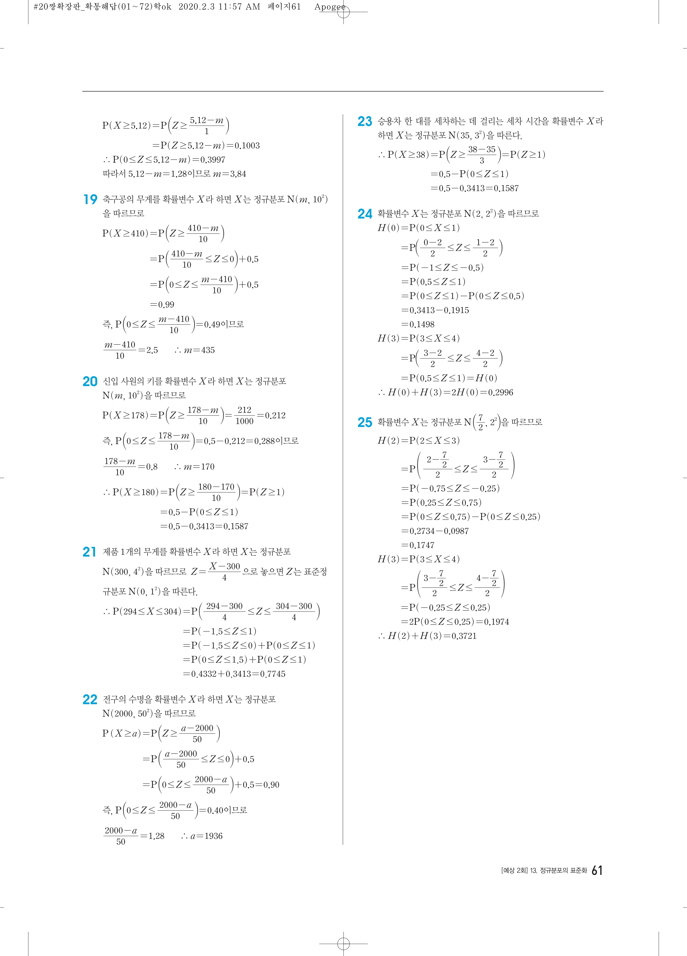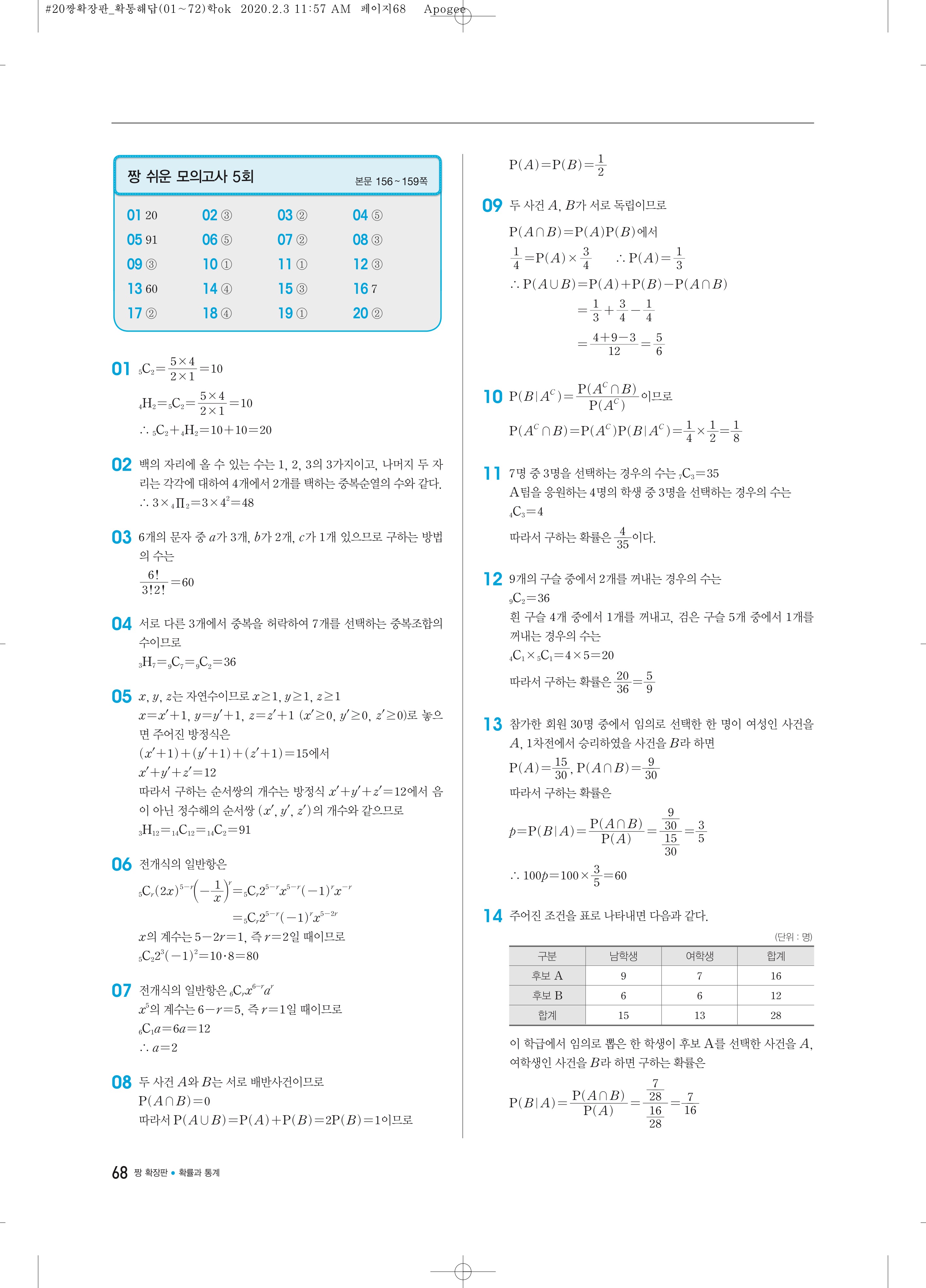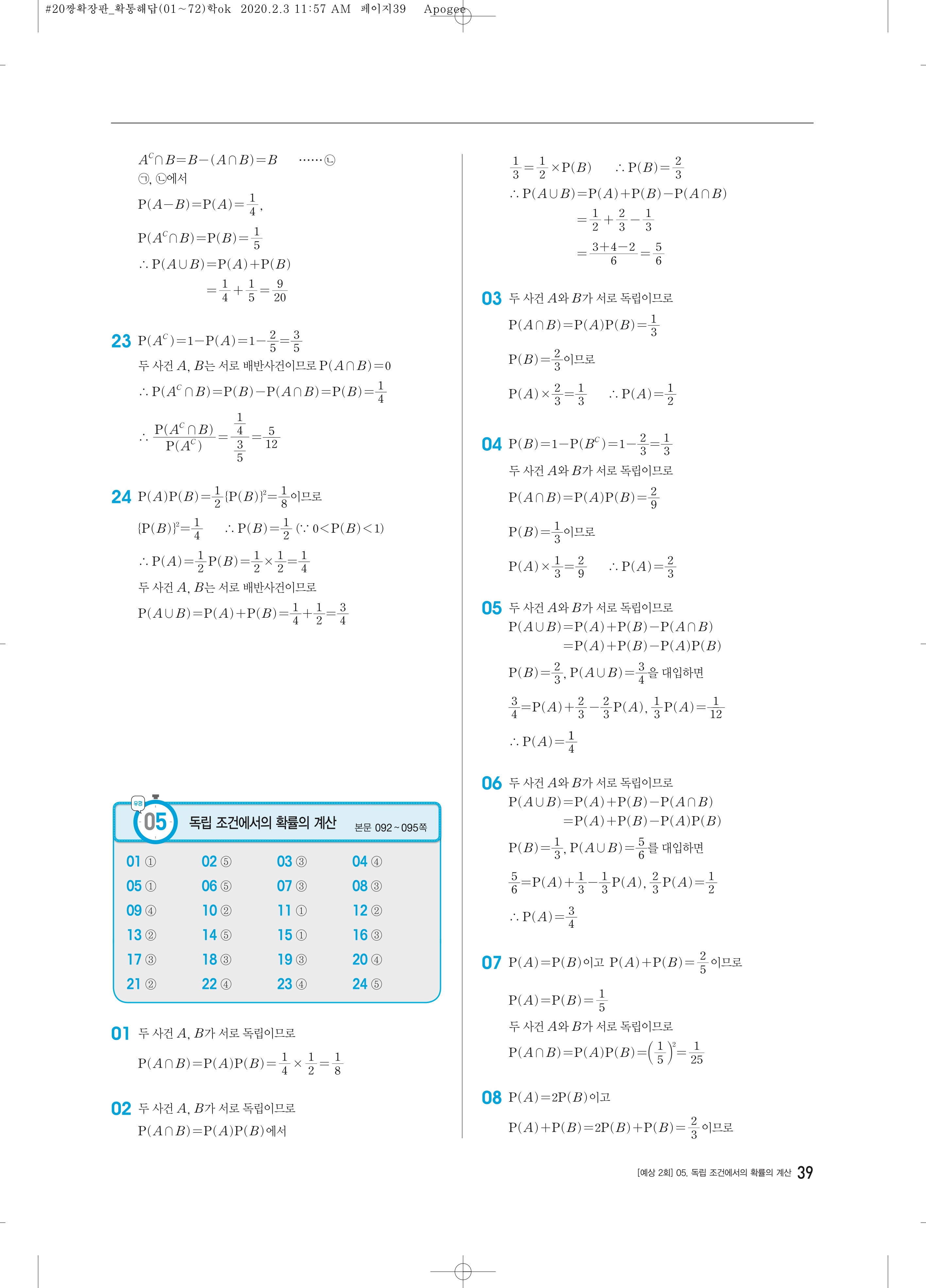 짱쉬운유형 확장판 확률과통계 답지 해설 바로보는 사진답지 빠른답지 모바일최적화