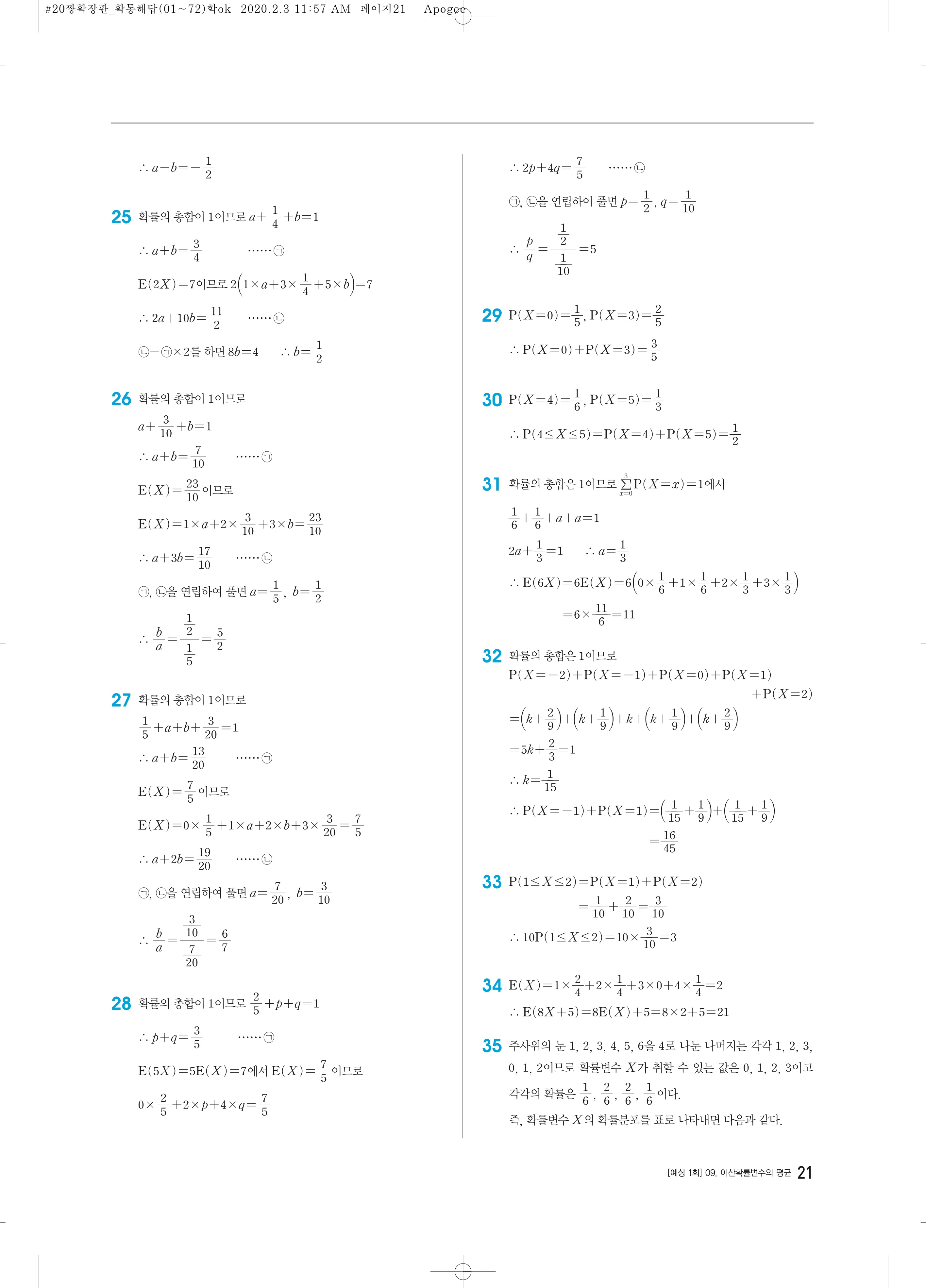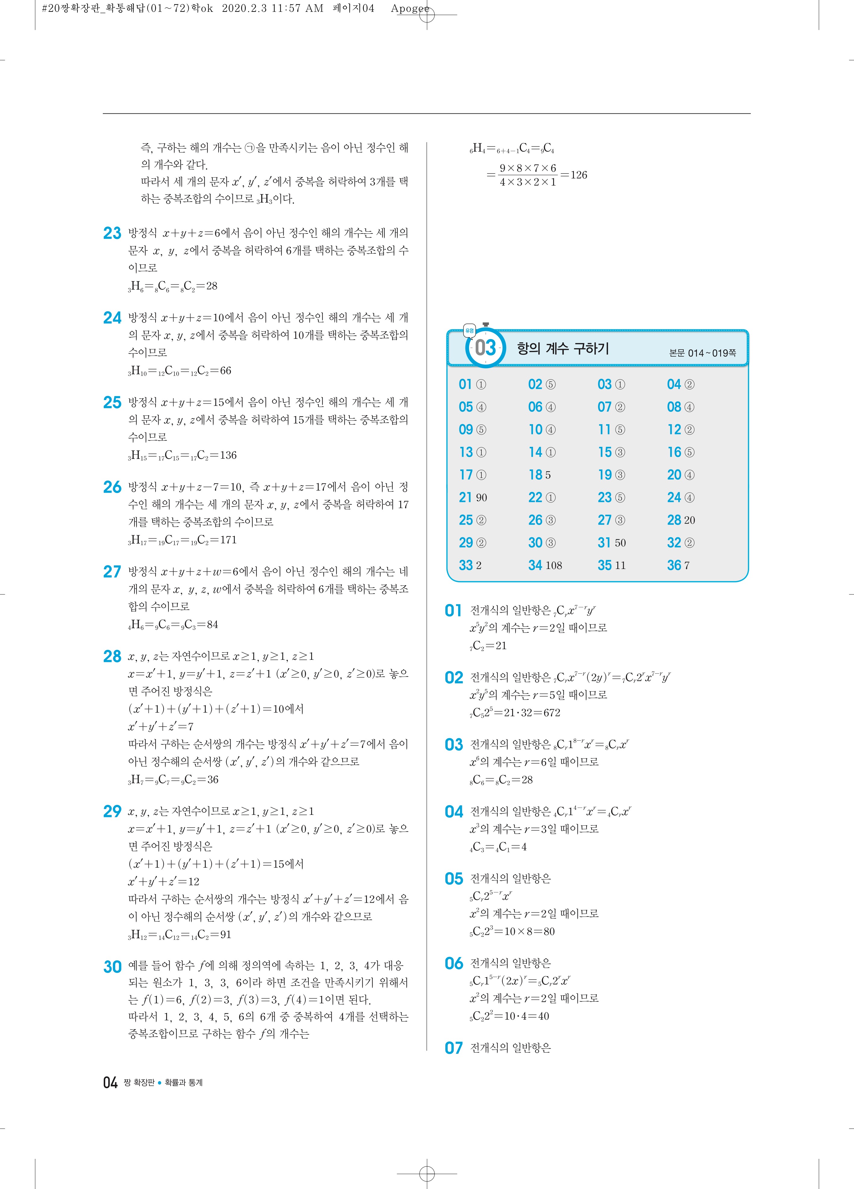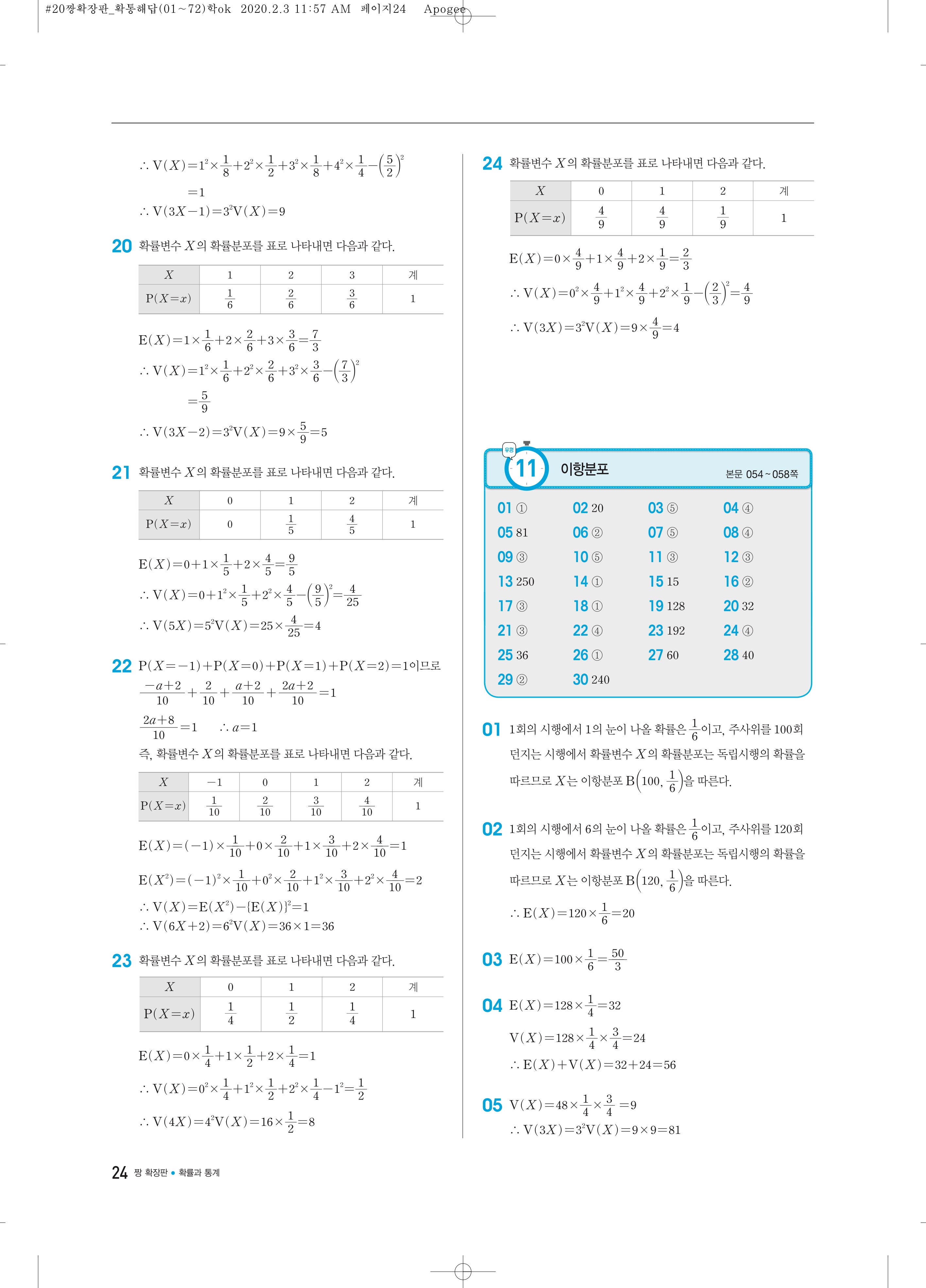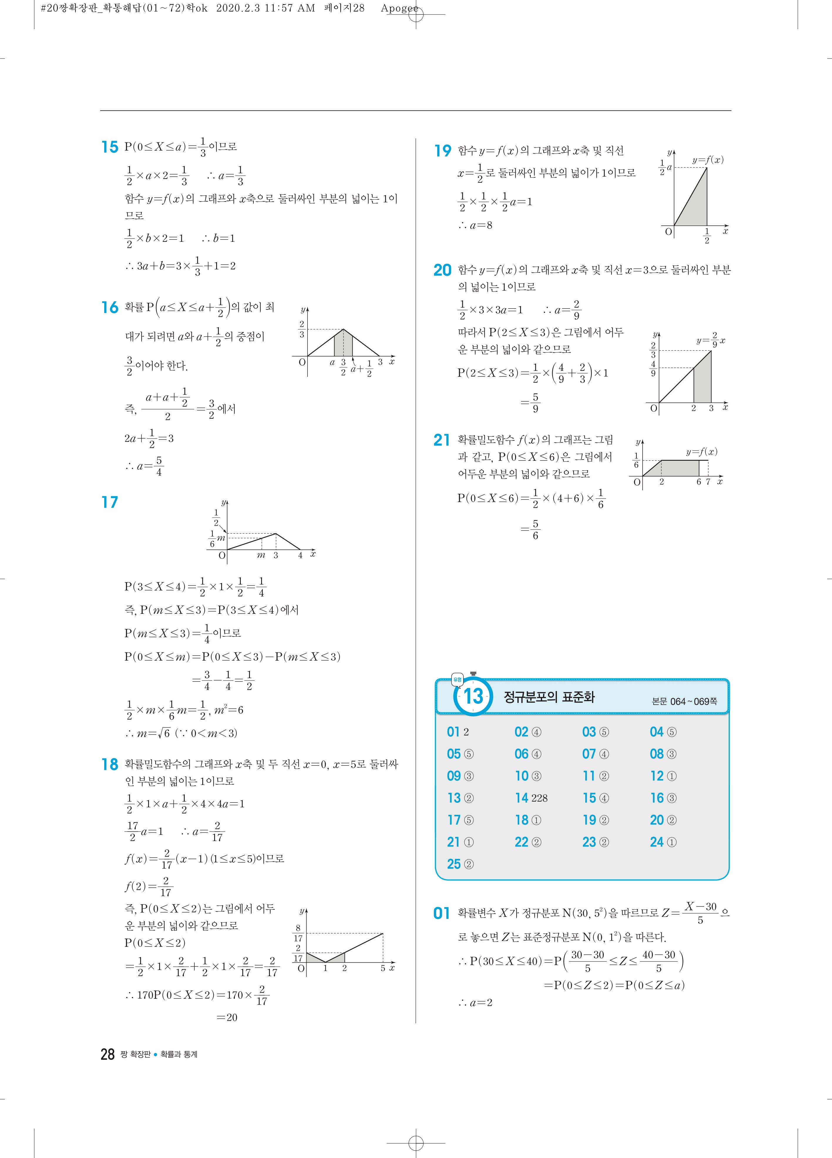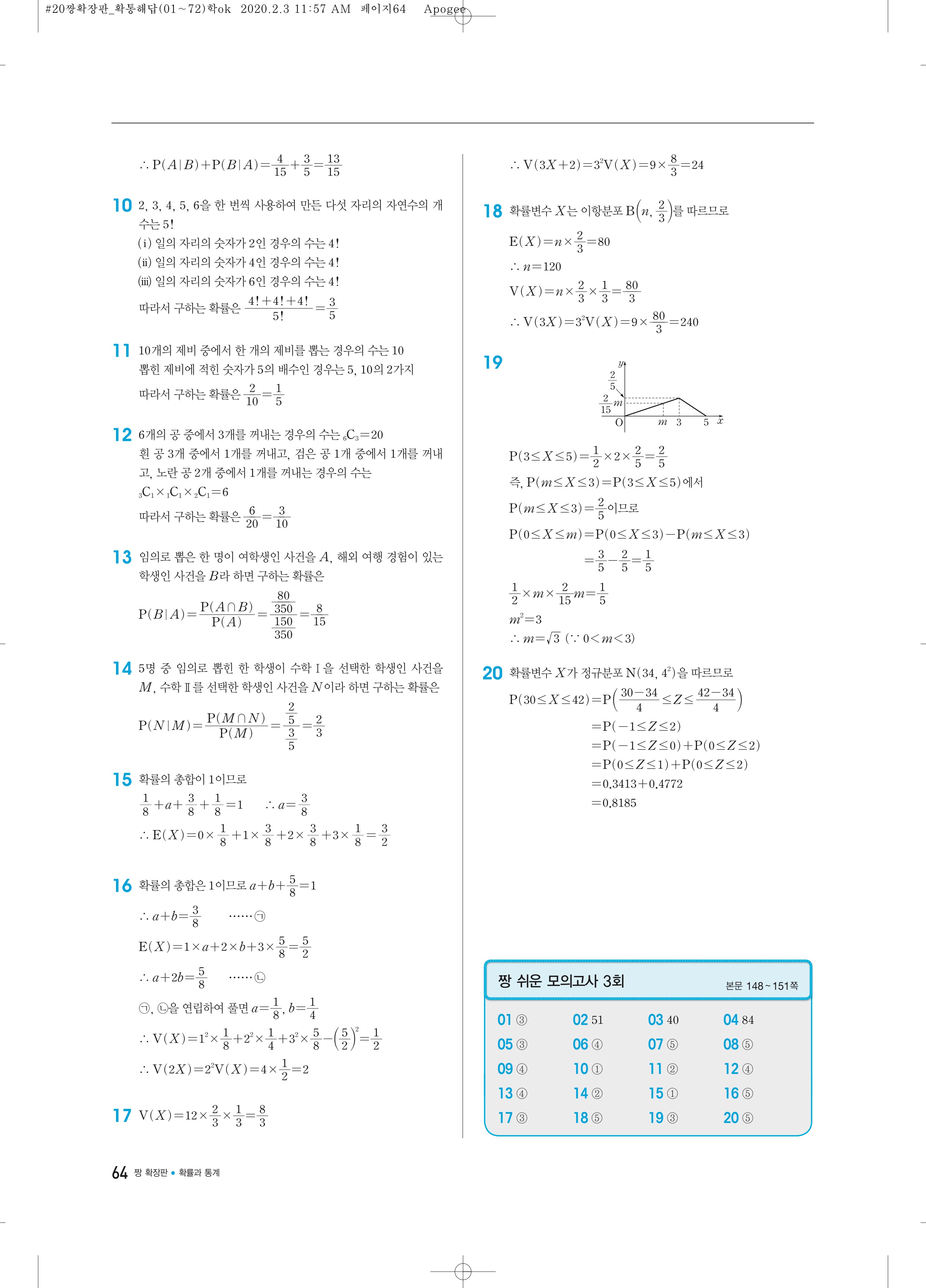 짱쉬운유형 확장판 확률과통계 답지 해설 바로보는 사진답지 빠른답지 모바일최적화