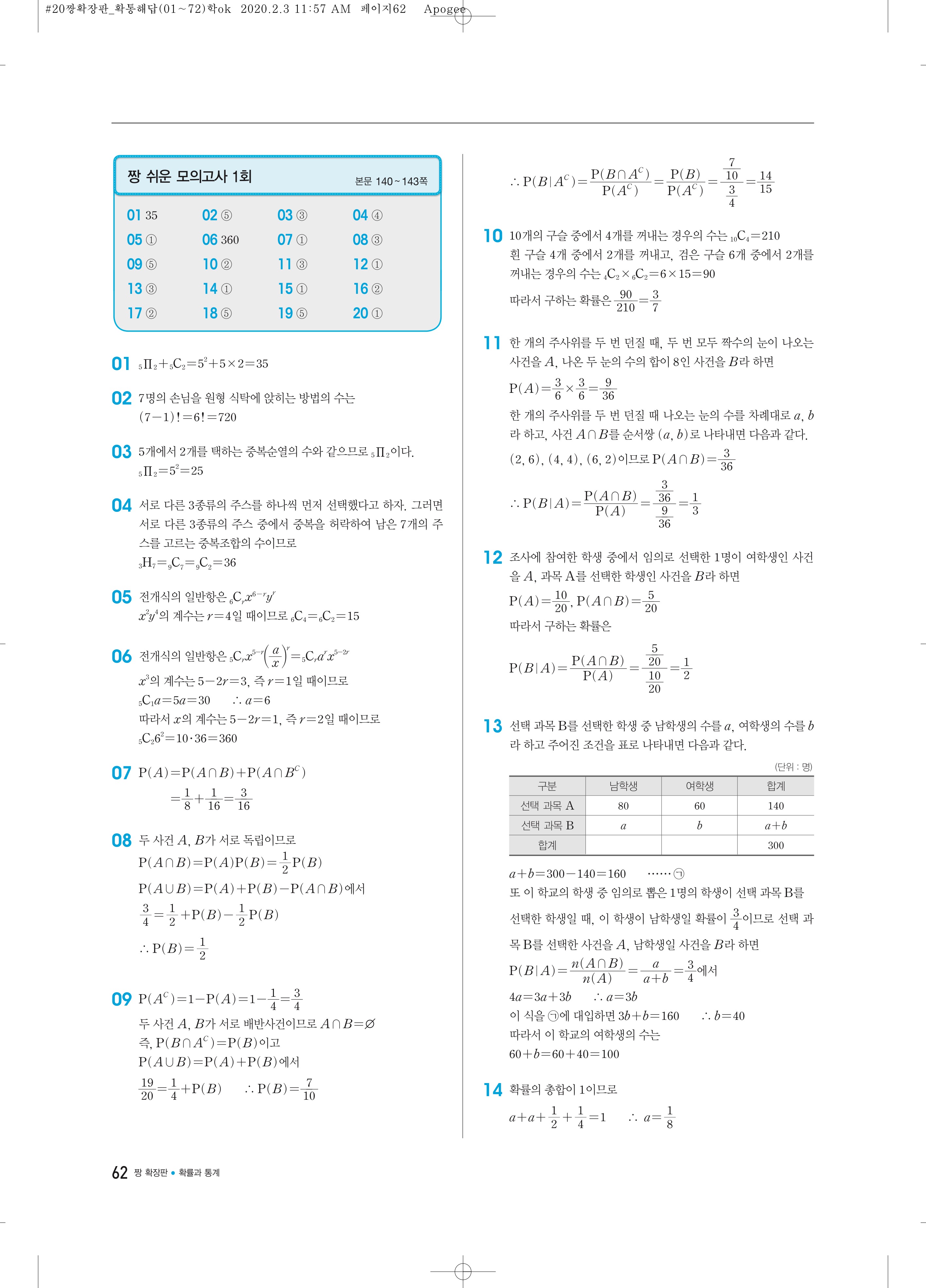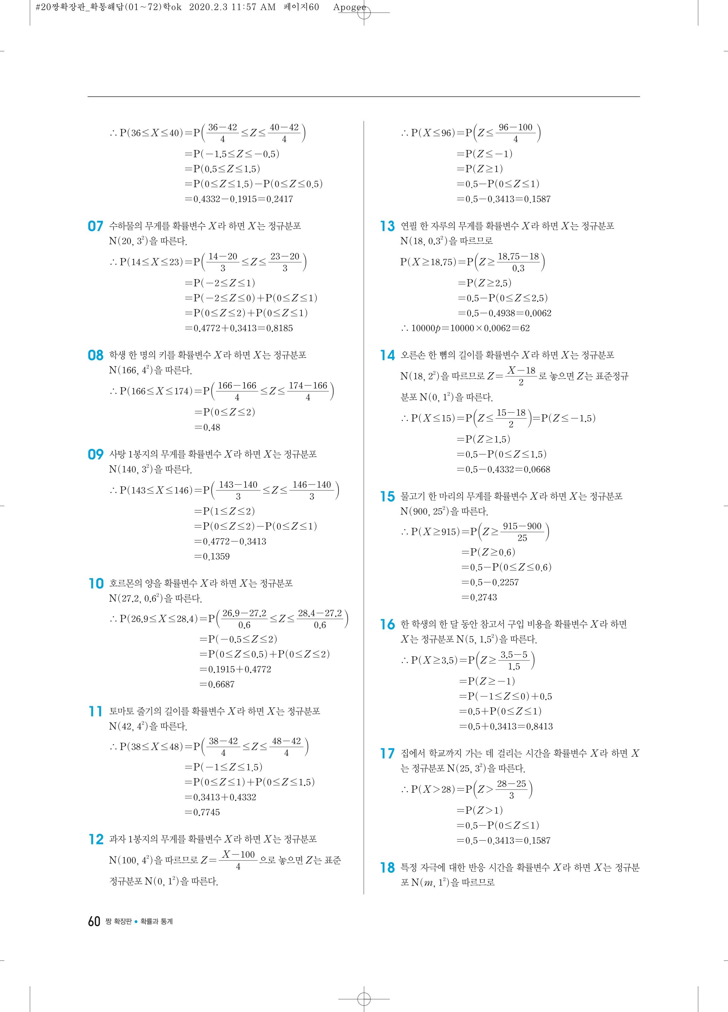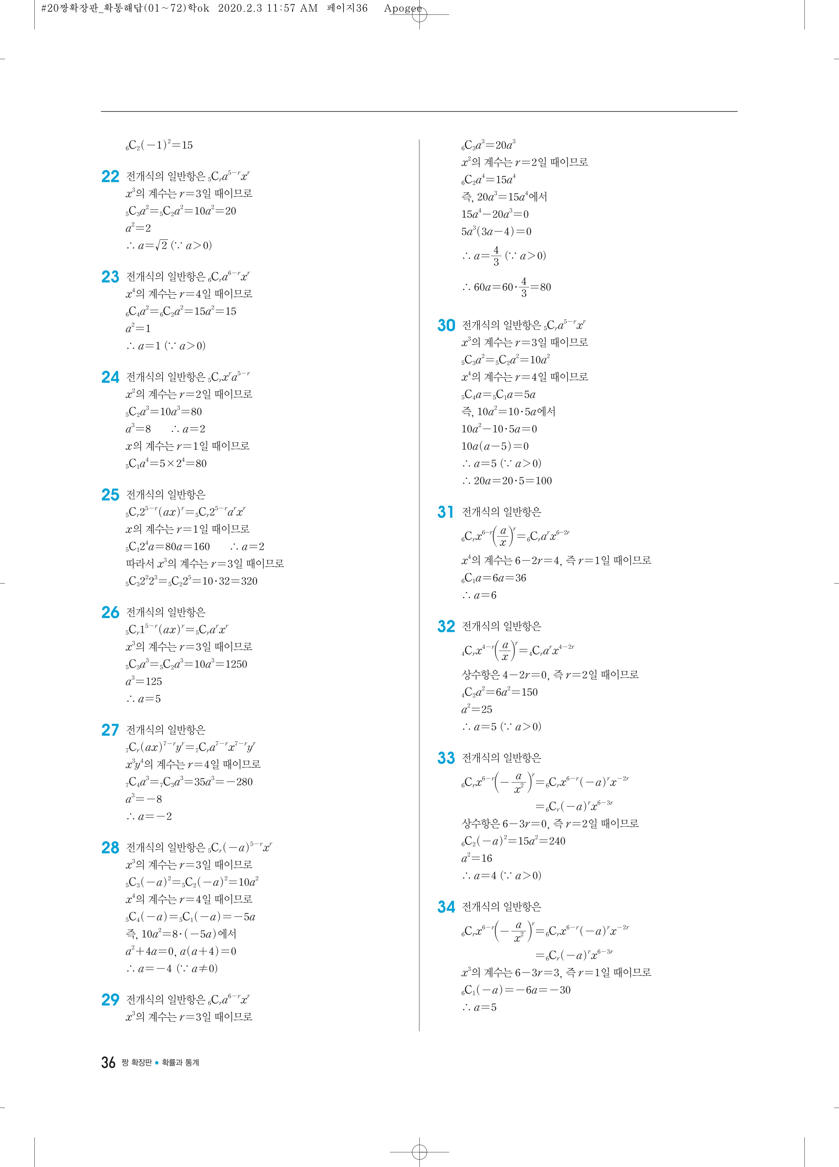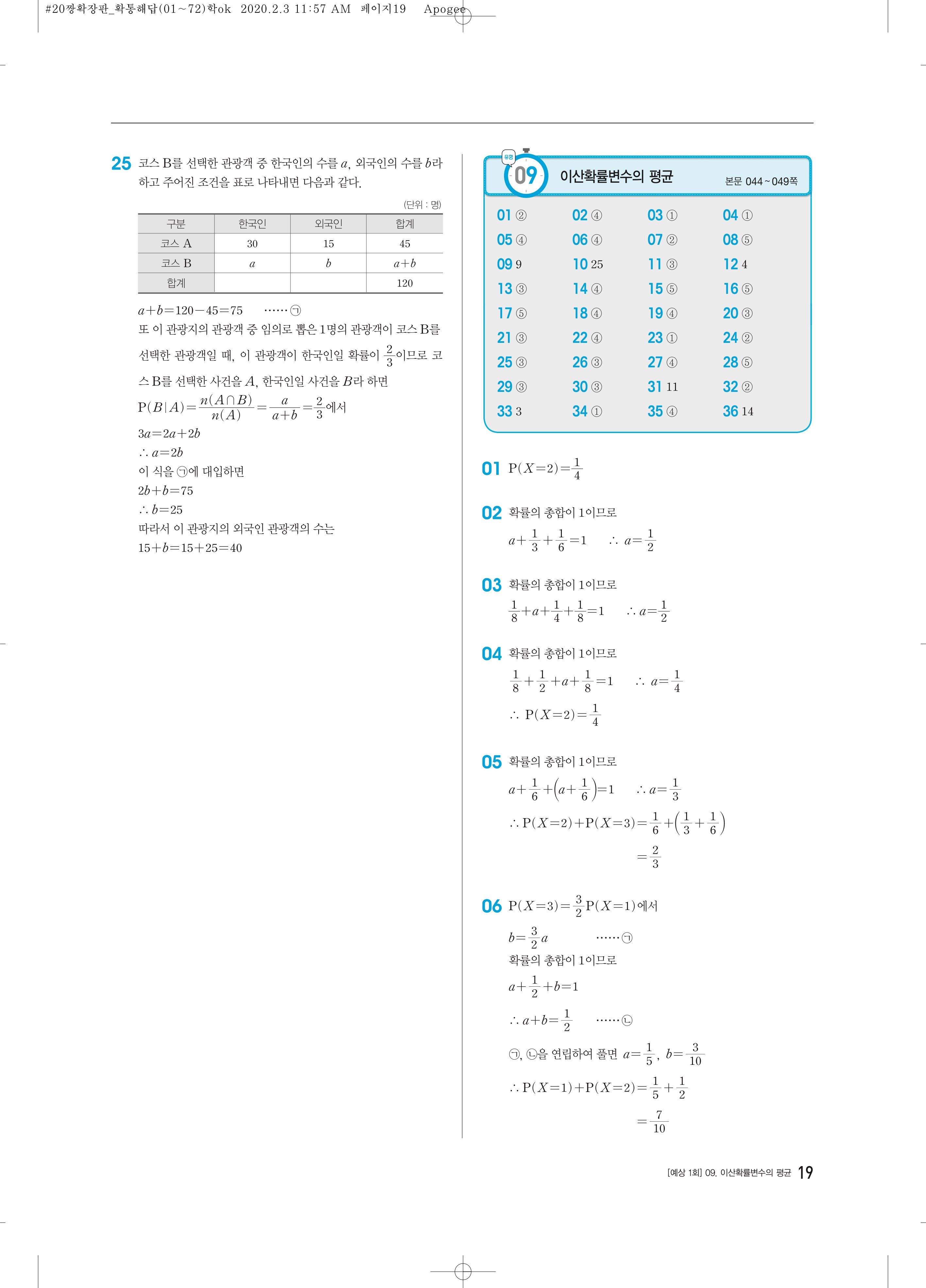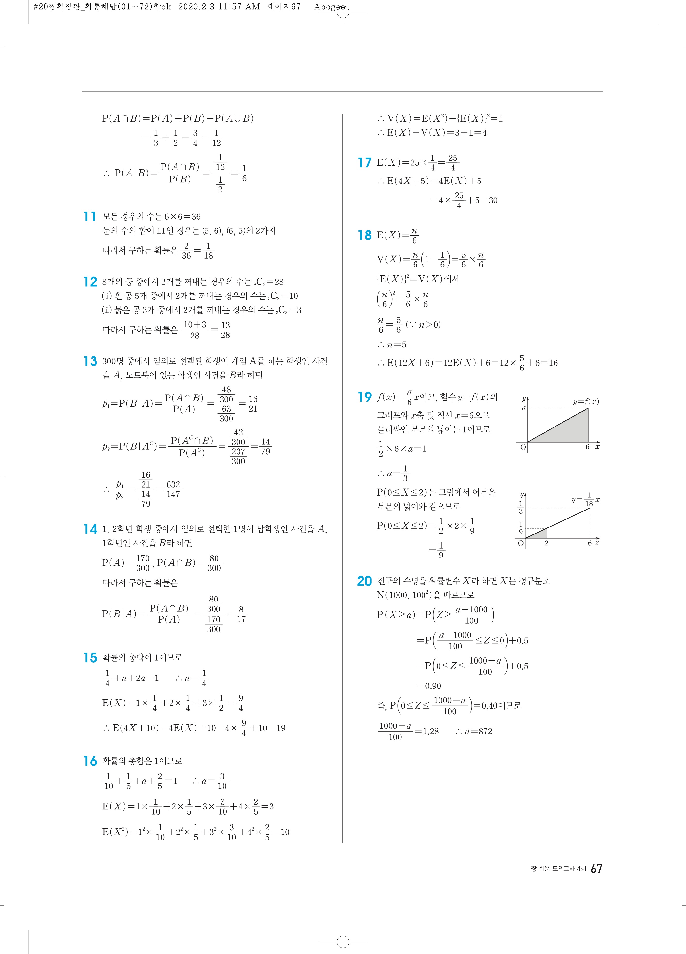 짱쉬운유형 확장판 확률과통계 답지 해설 바로보는 사진답지 빠른답지 모바일최적화