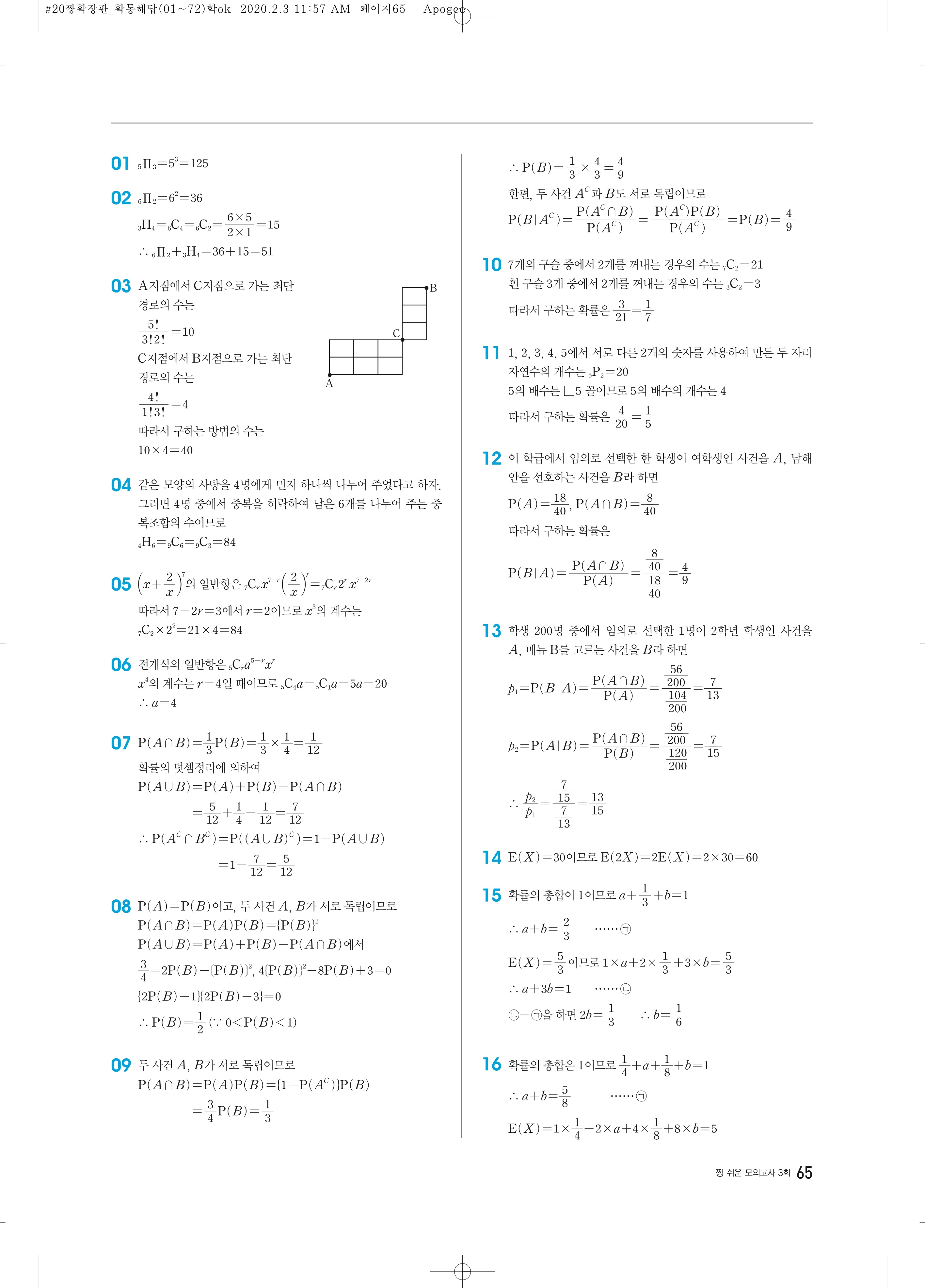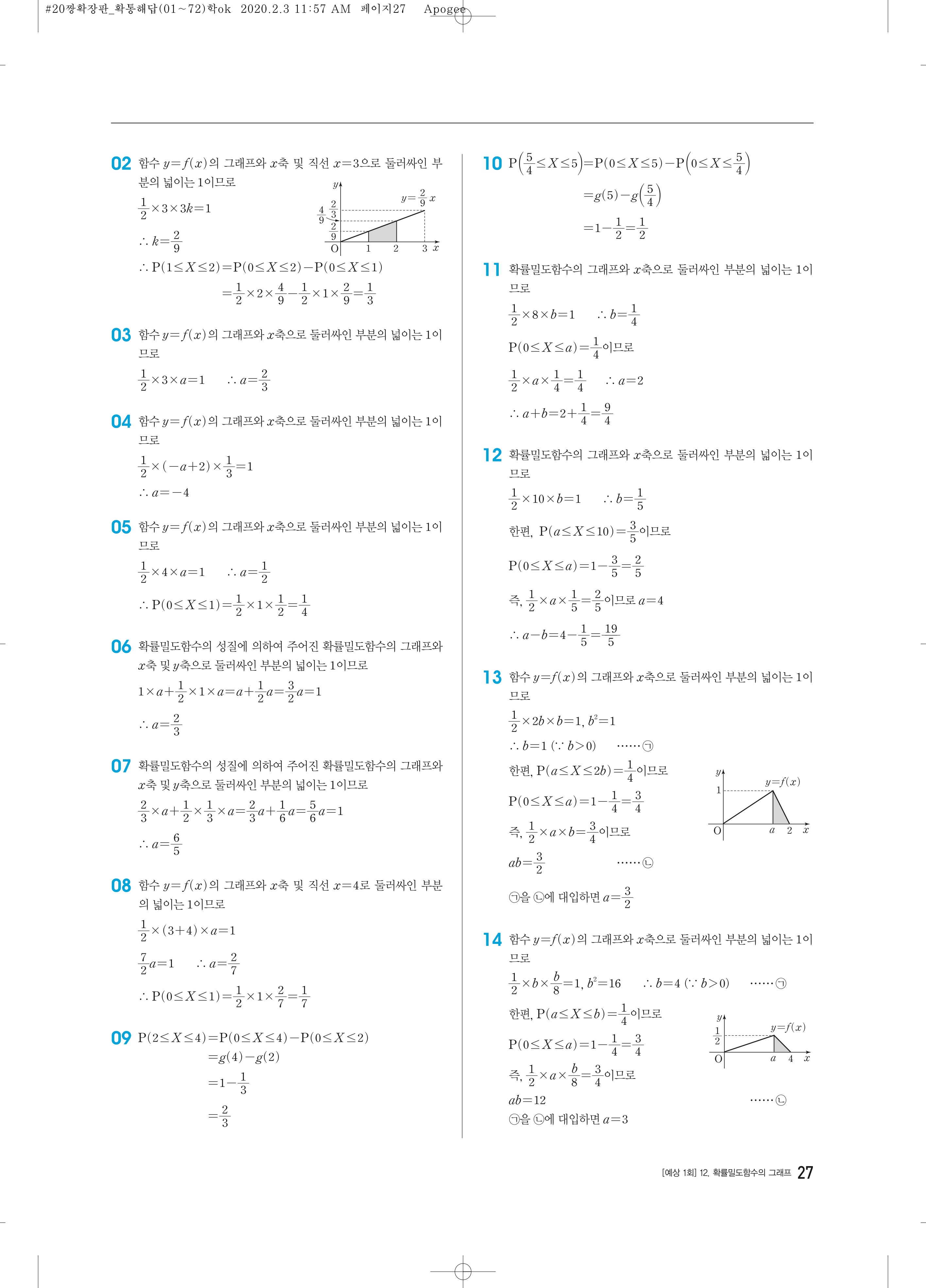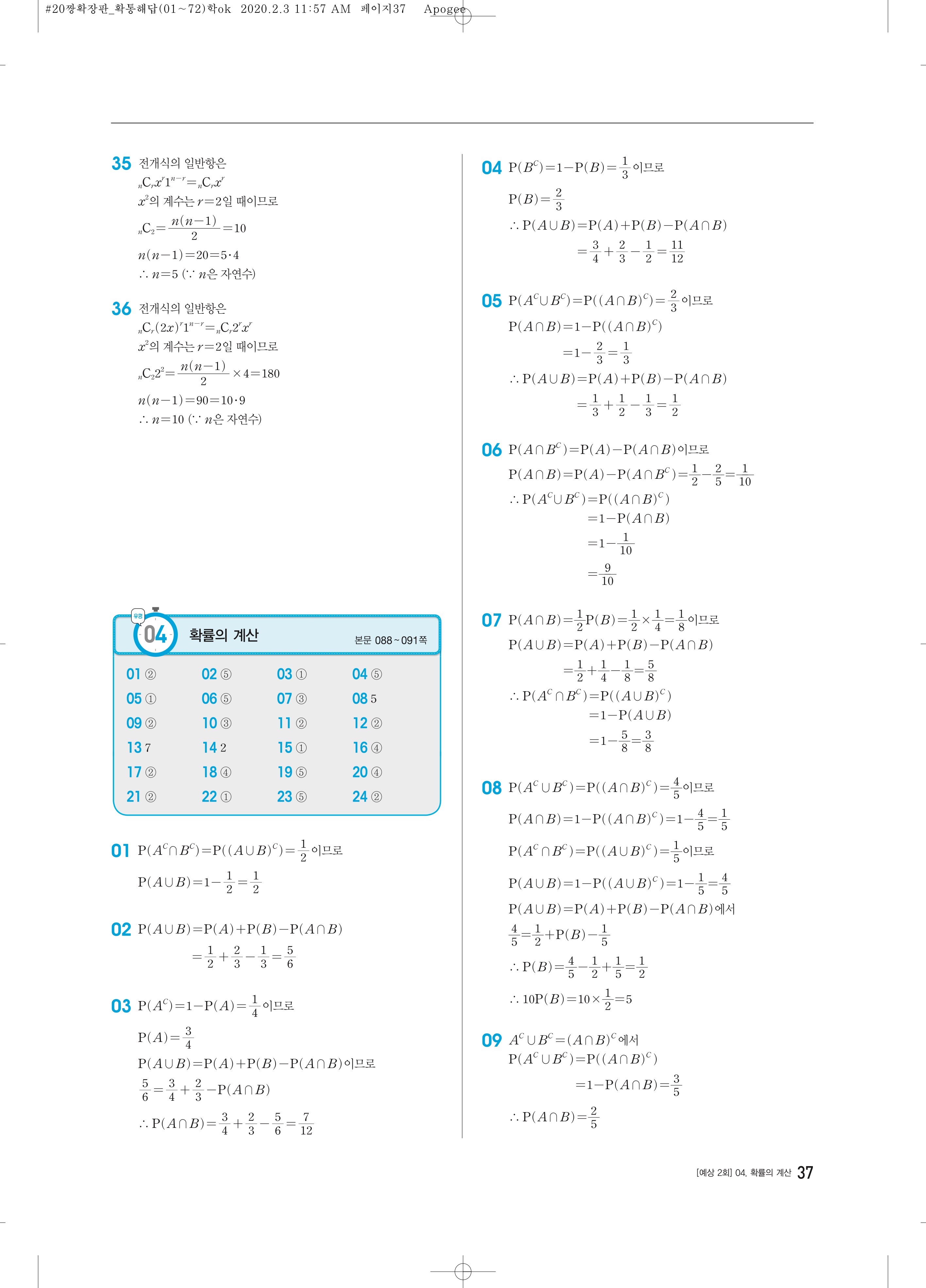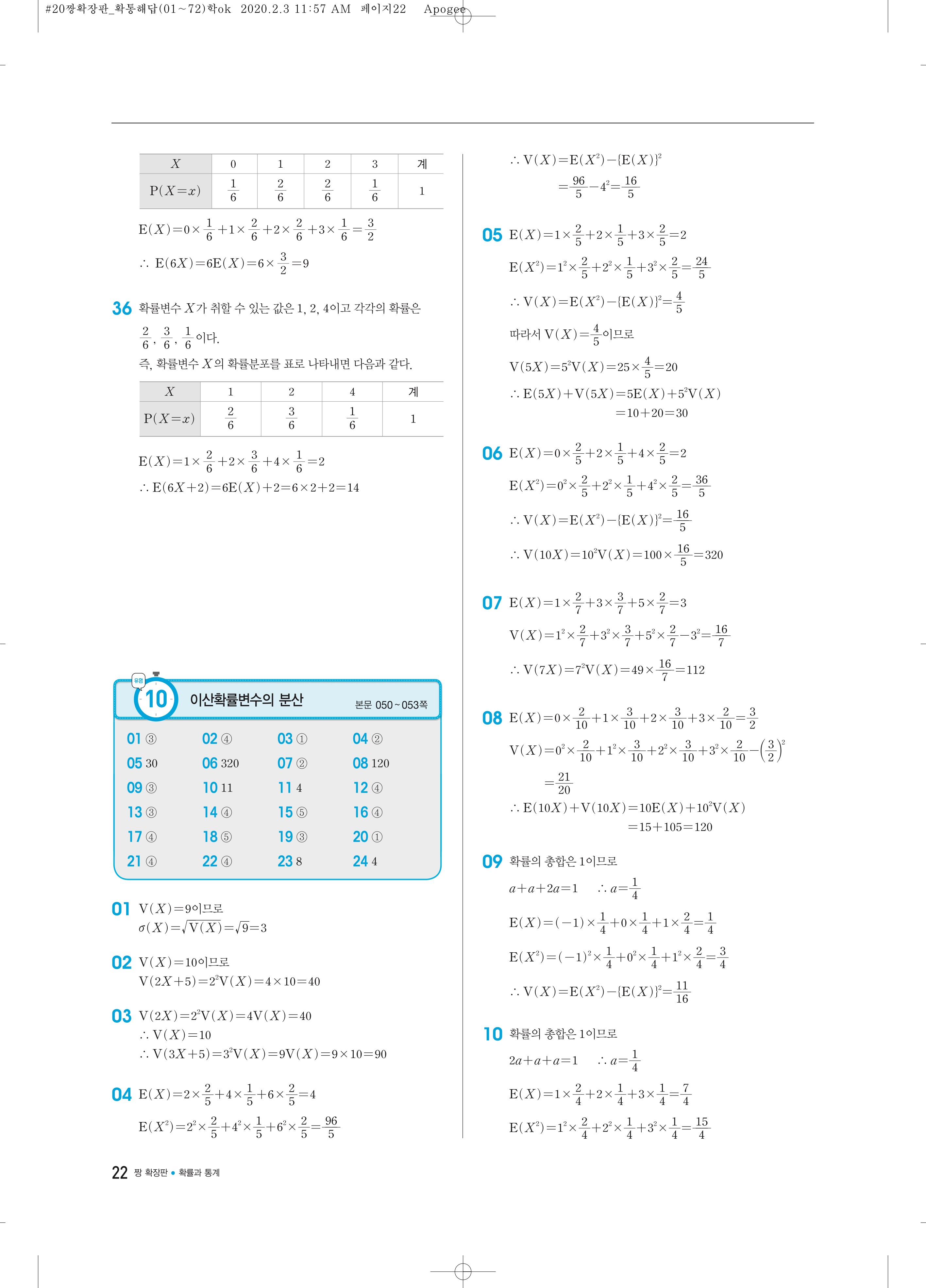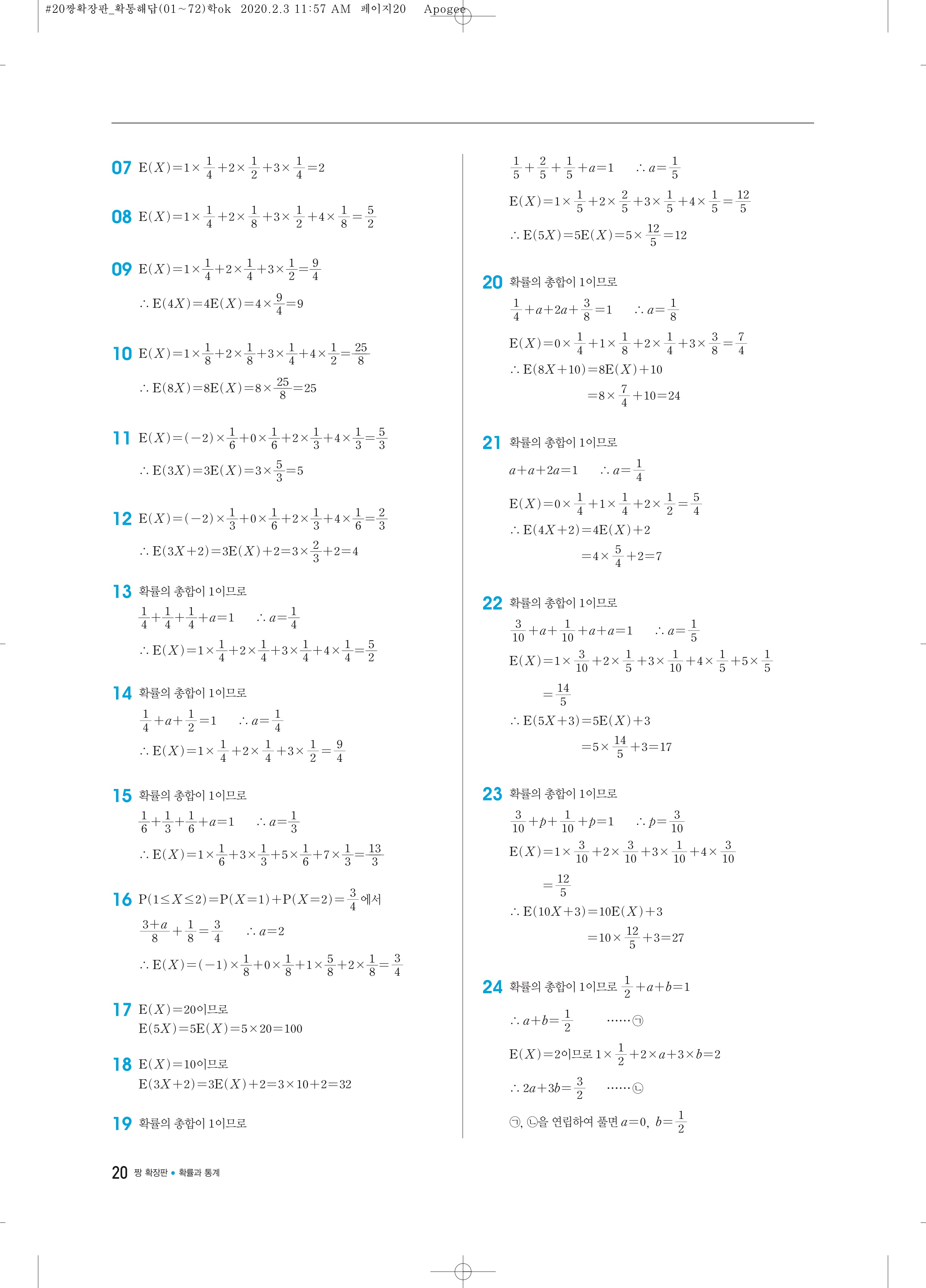 짱쉬운유형 확장판 확률과통계 답지 해설 바로보는 사진답지 빠른답지 모바일최적화