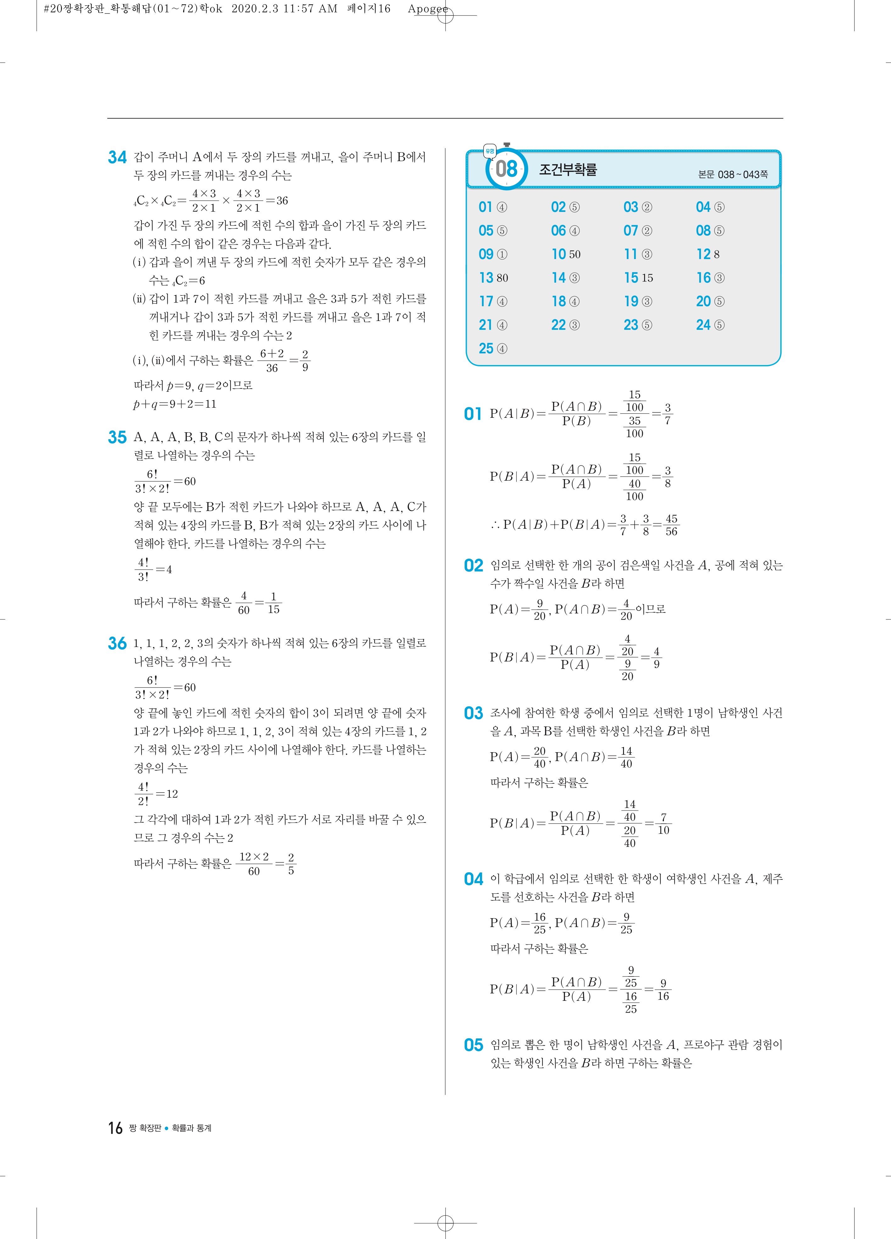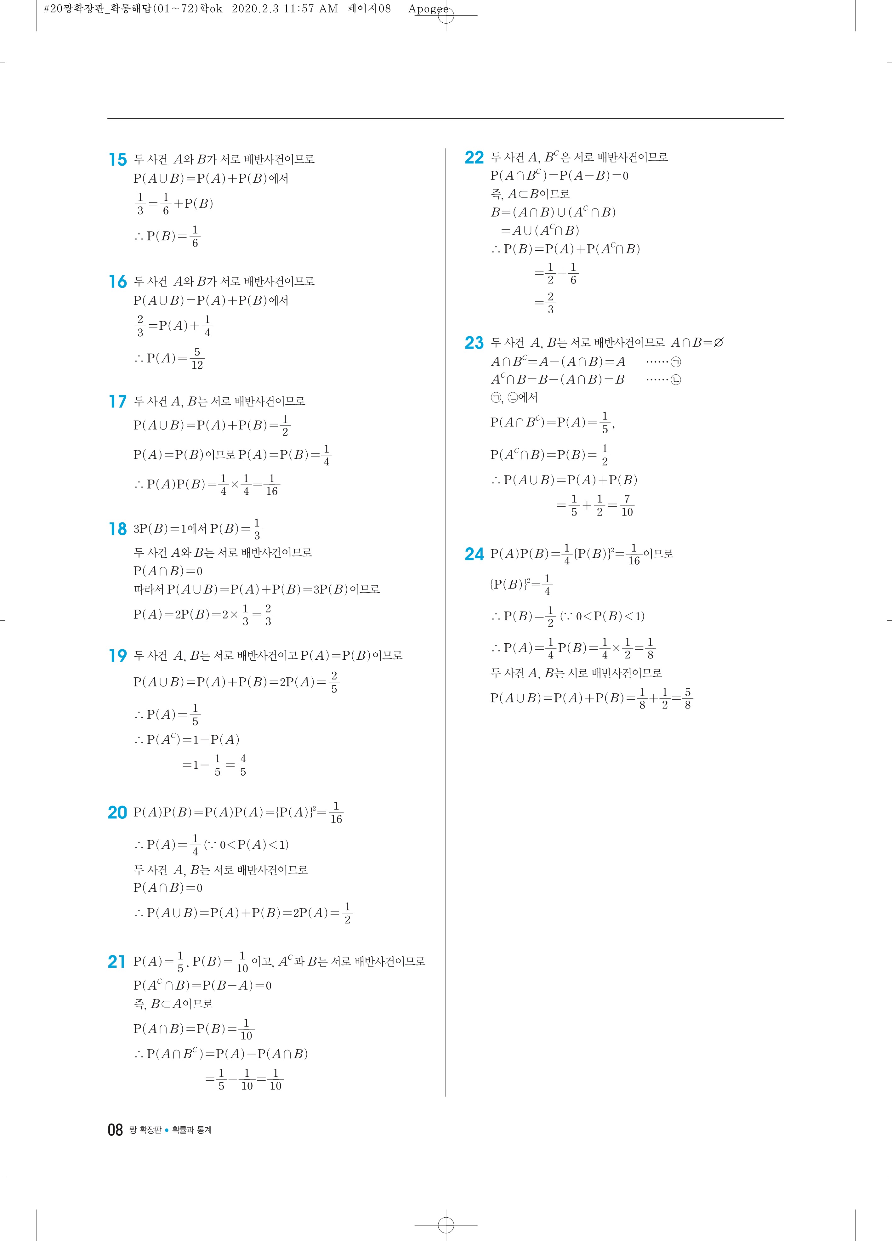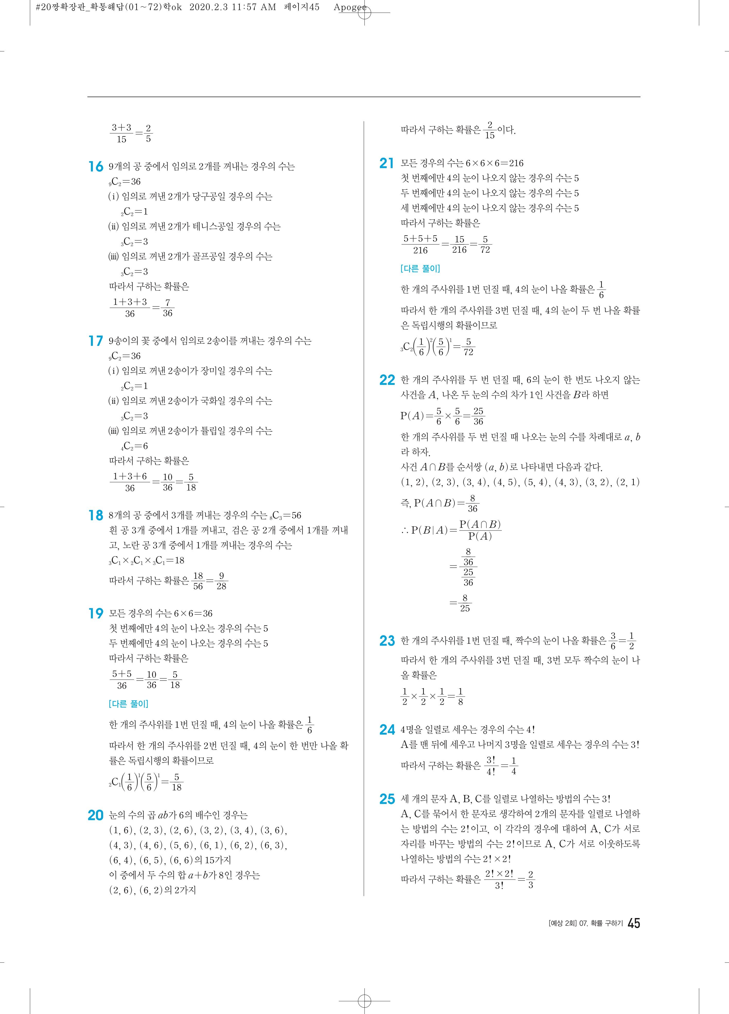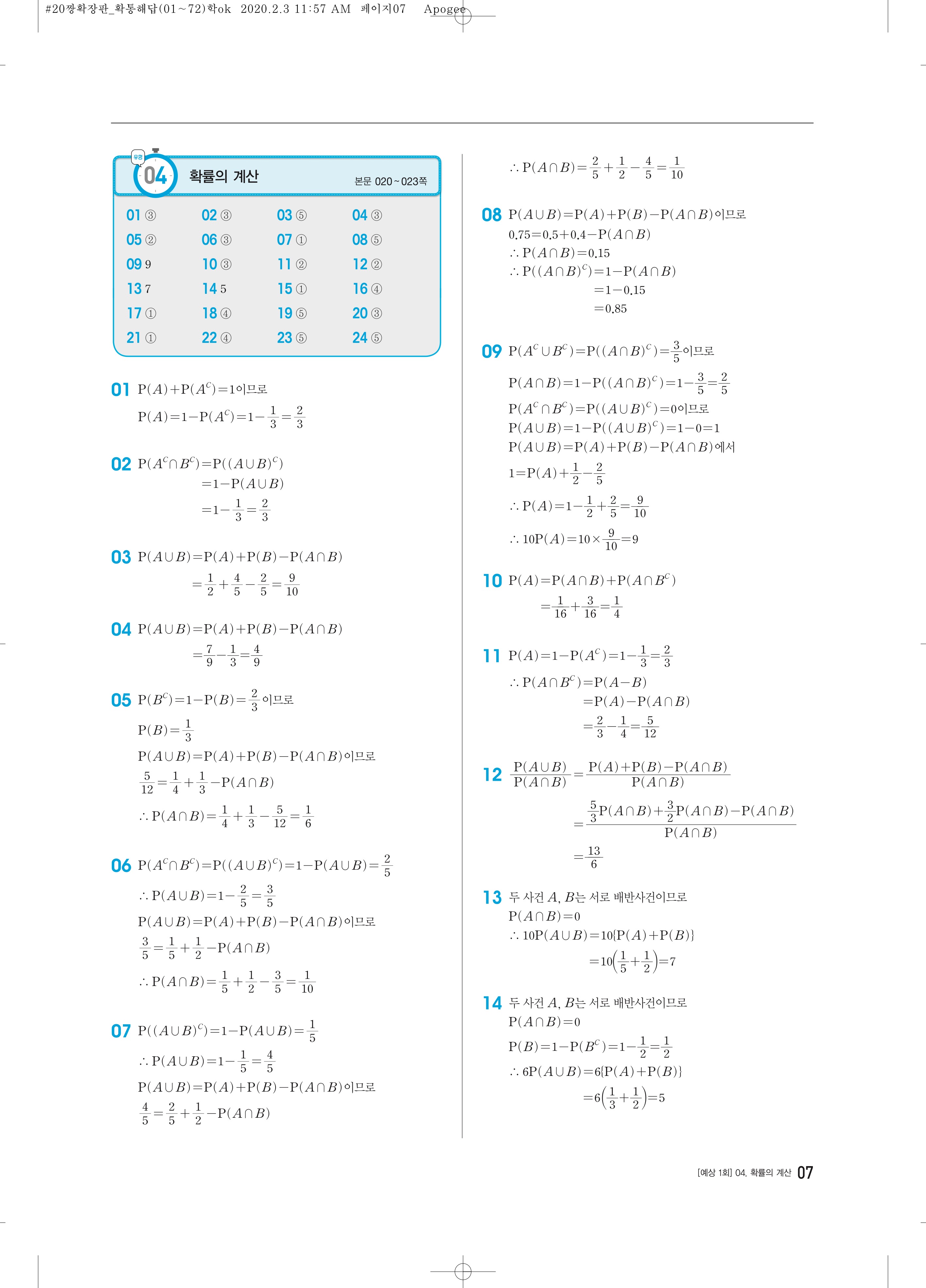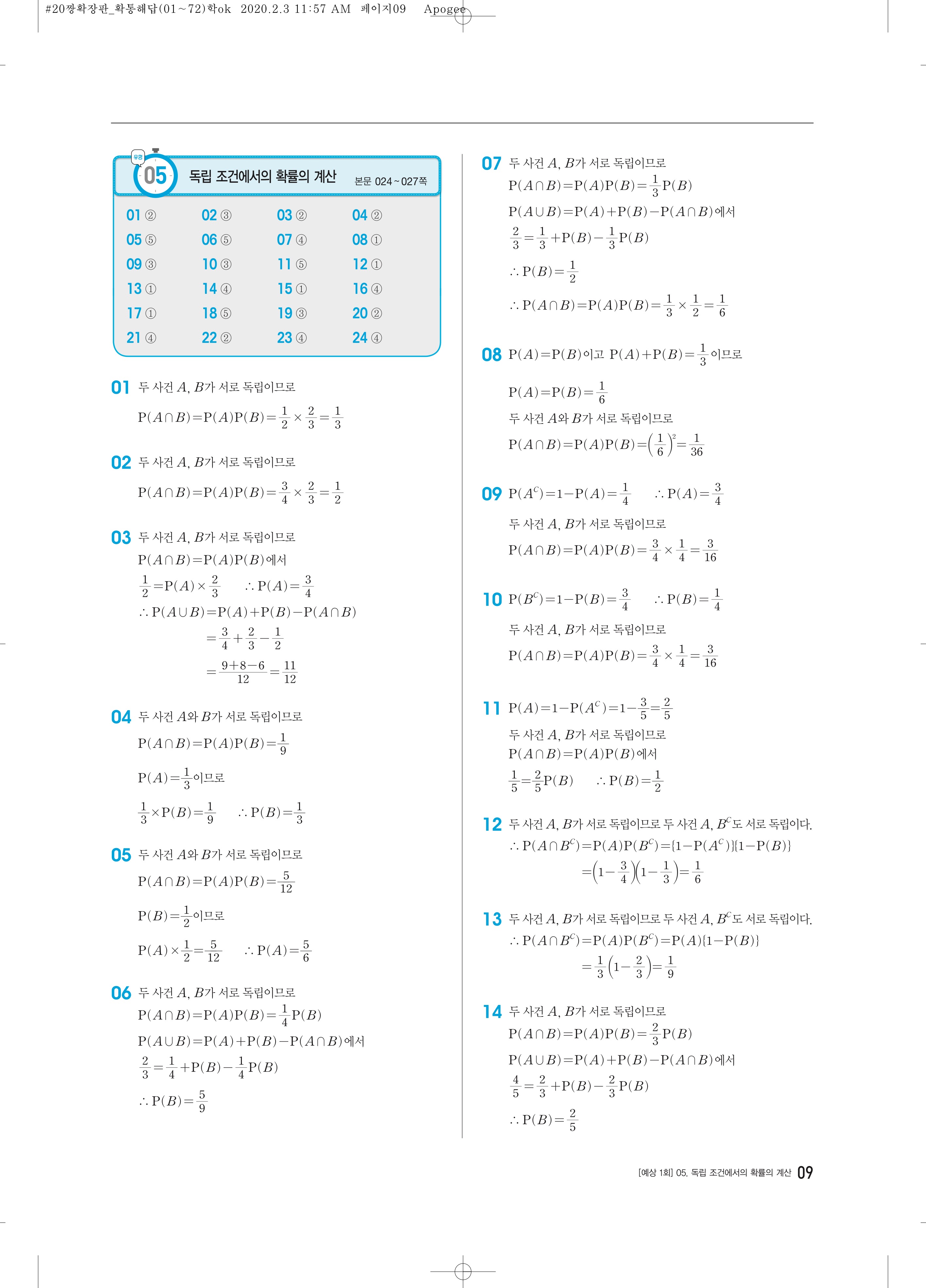 짱쉬운유형 확장판 확률과통계 답지 해설 바로보는 사진답지 빠른답지 모바일최적화