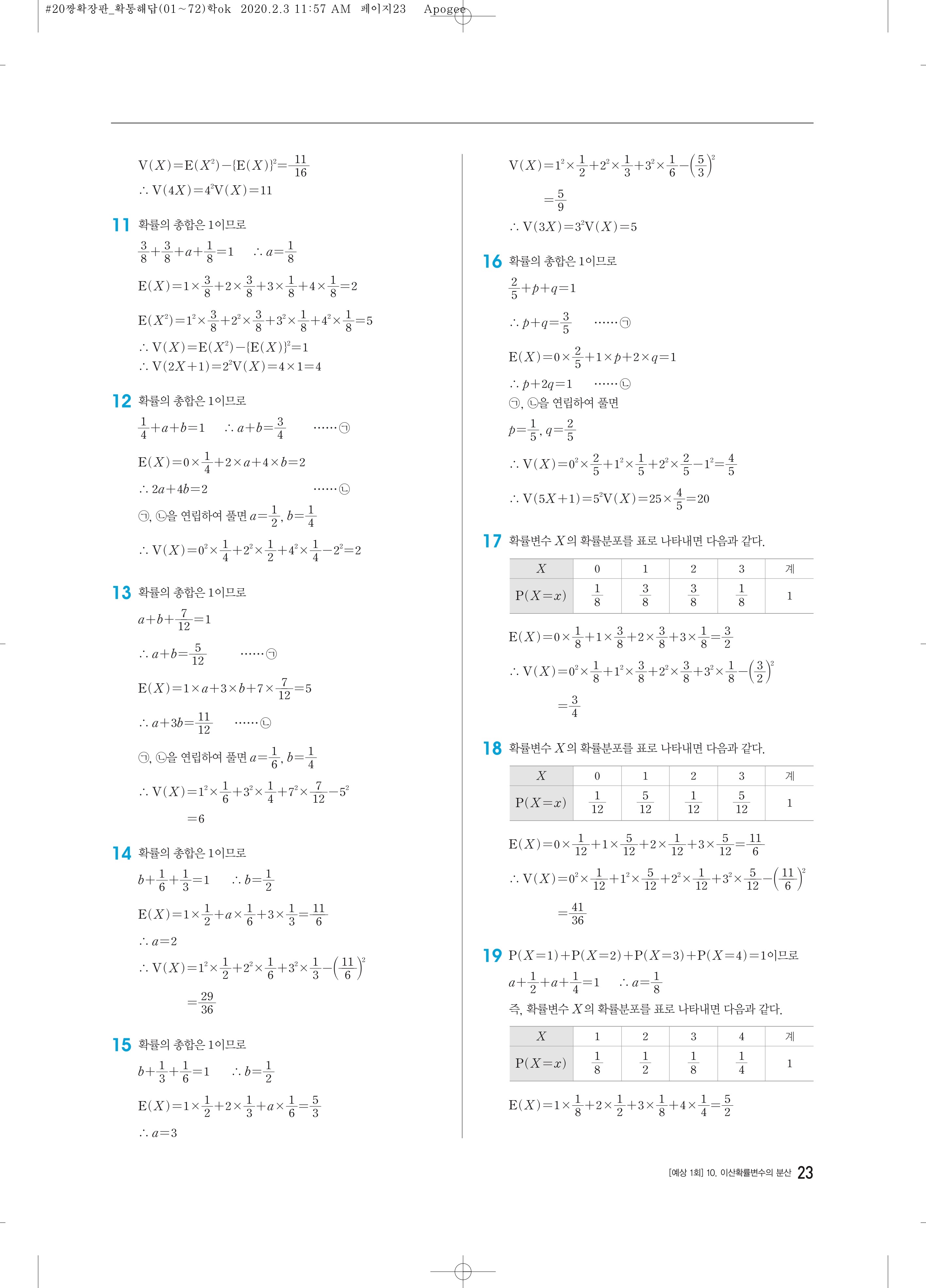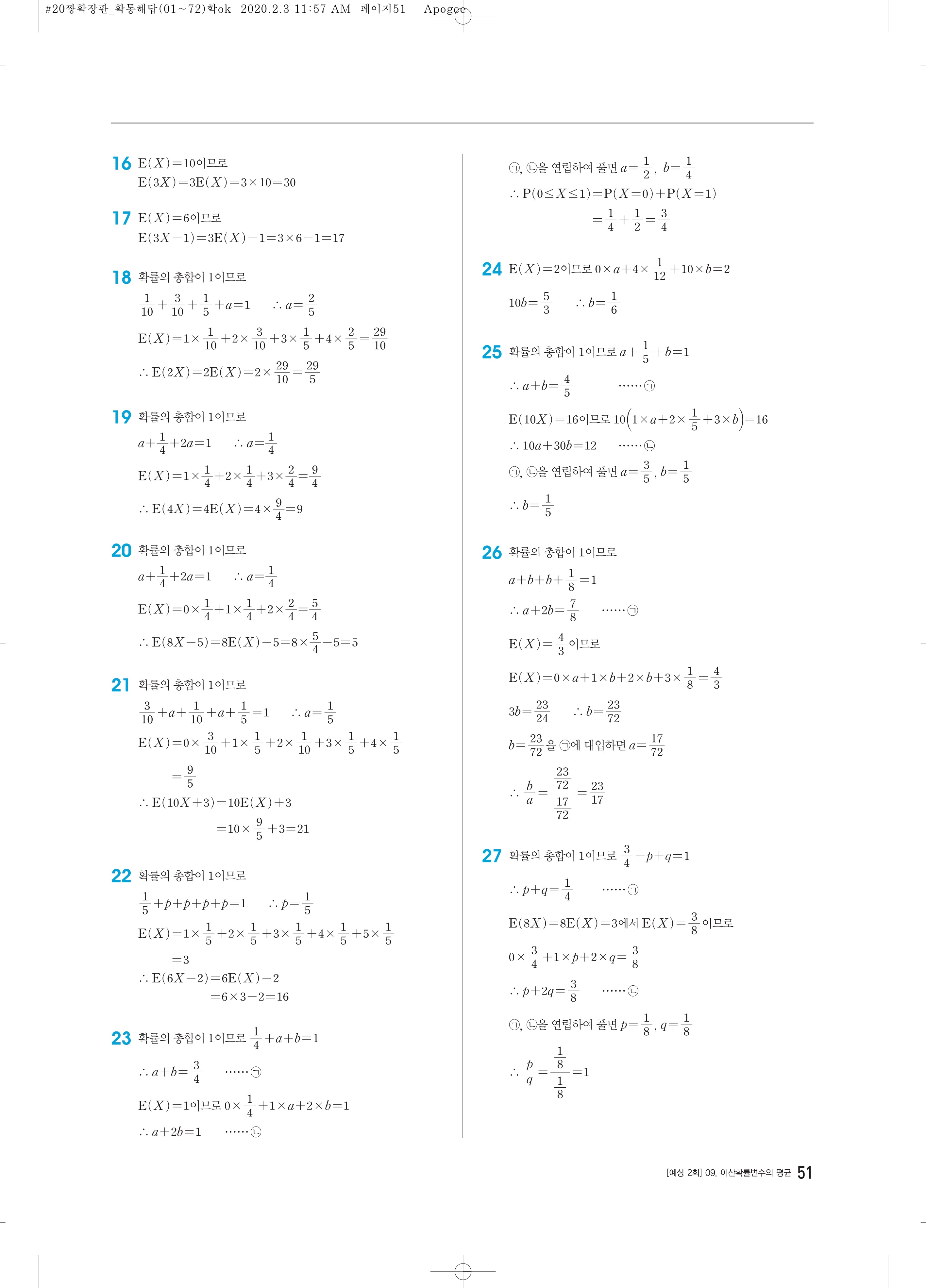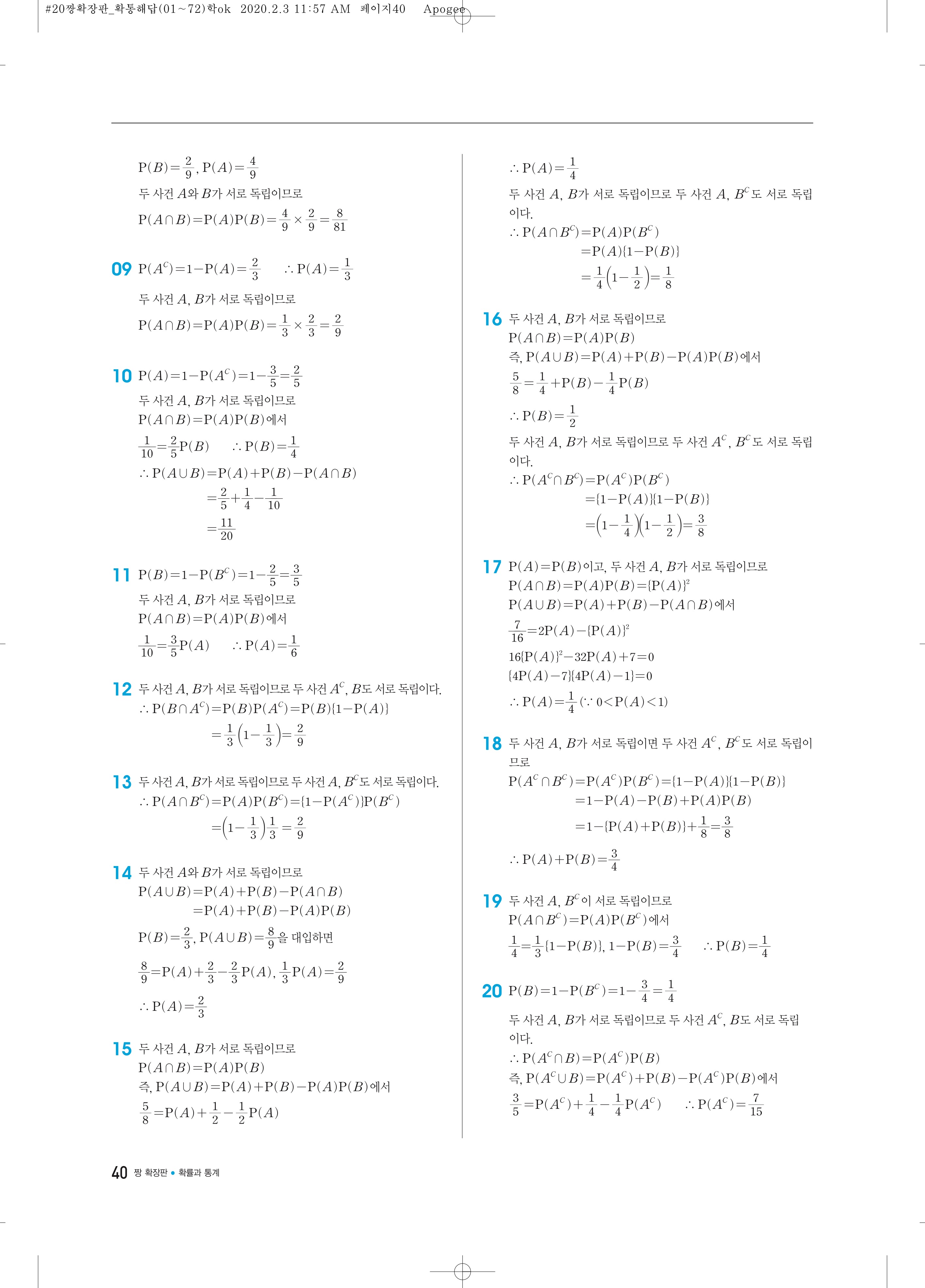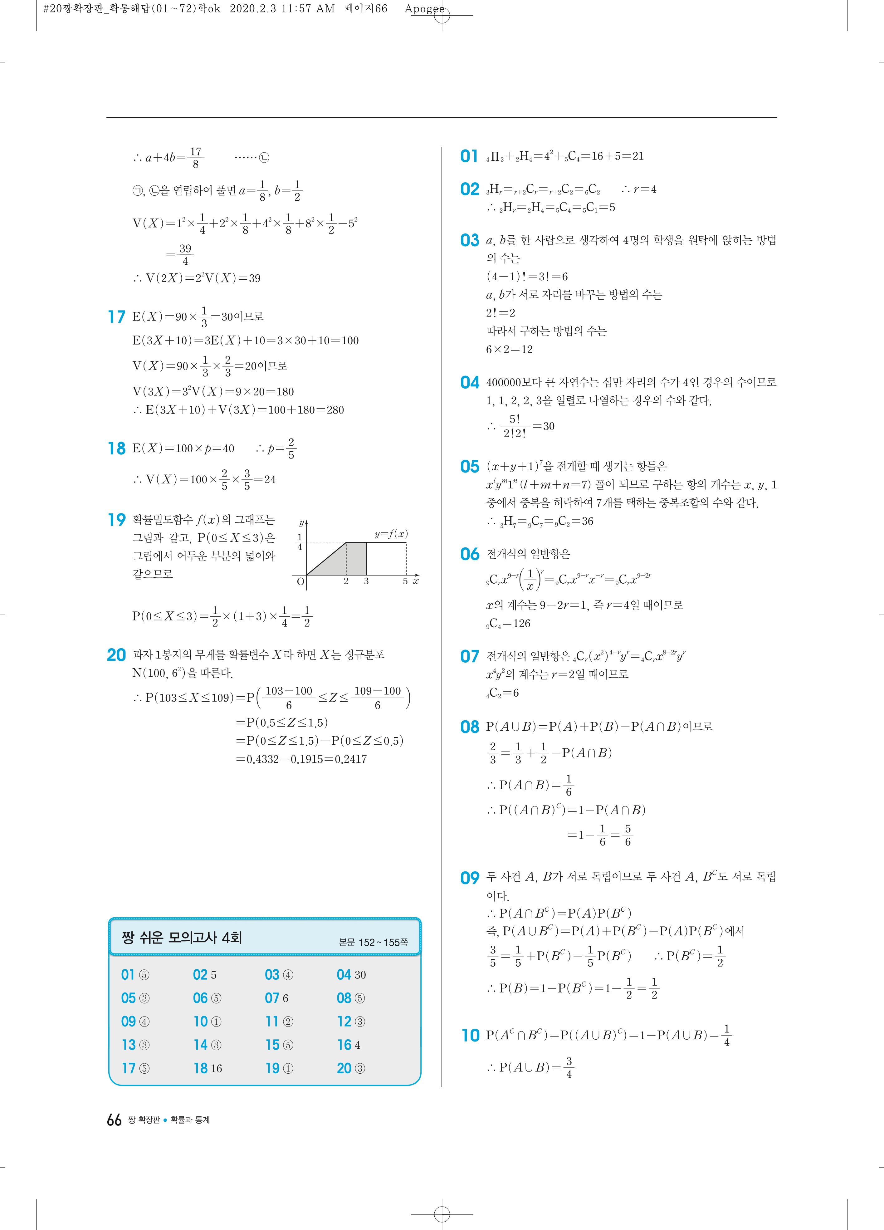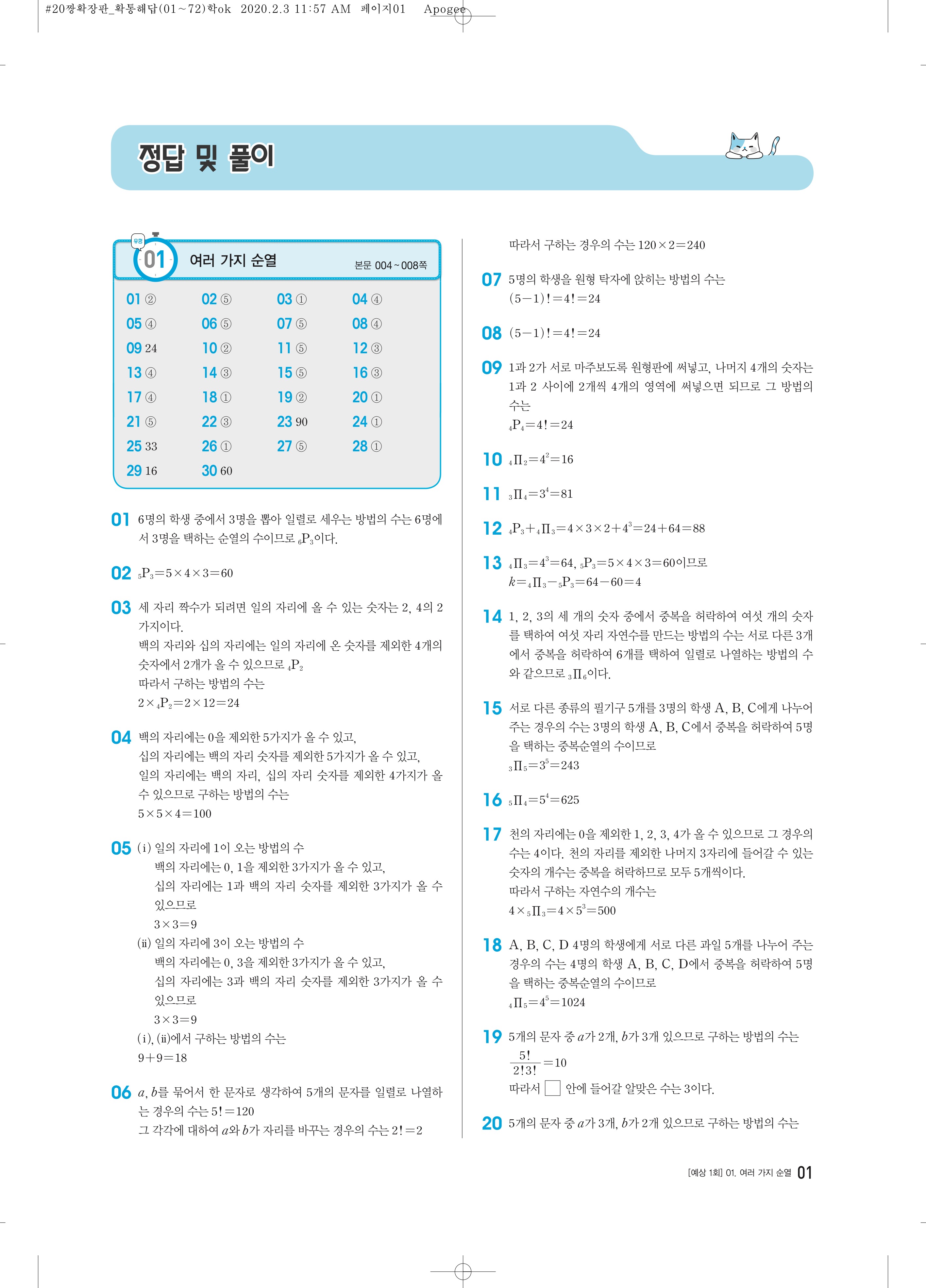 짱쉬운유형 확장판 확률과통계 답지 해설 바로보는 사진답지 빠른답지 모바일최적화