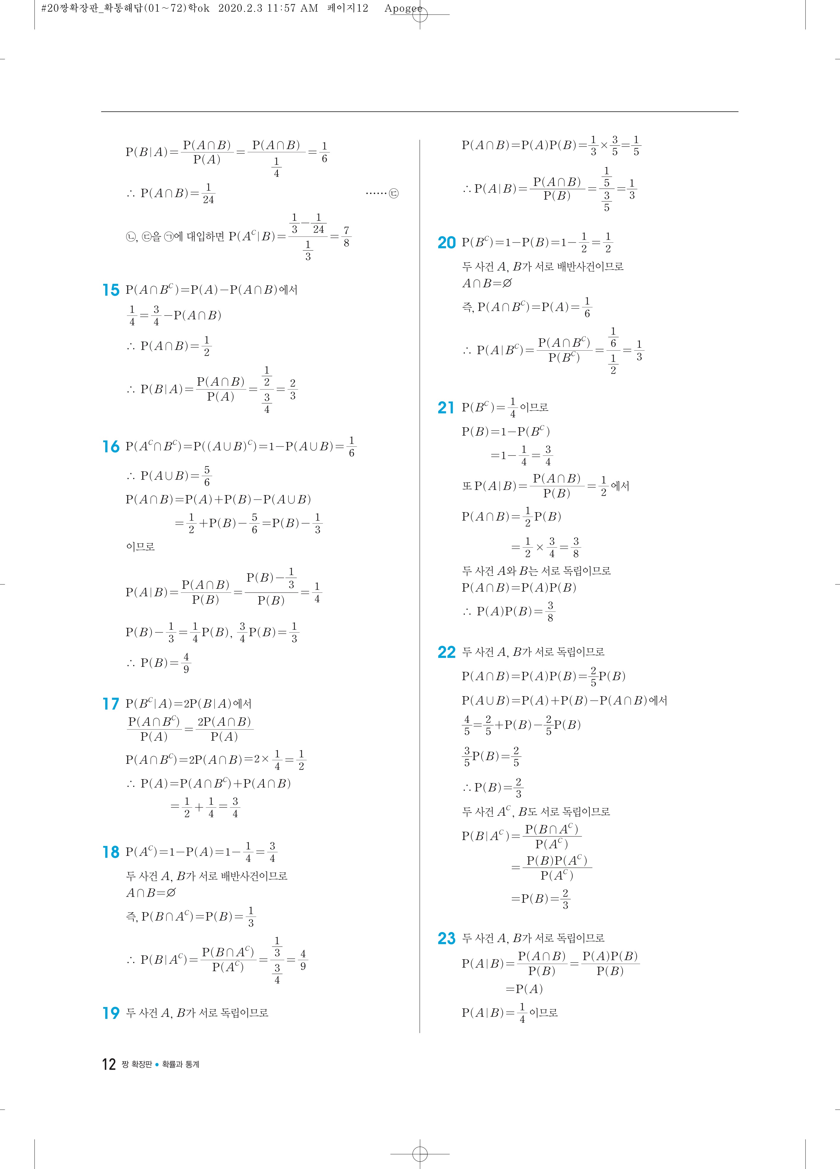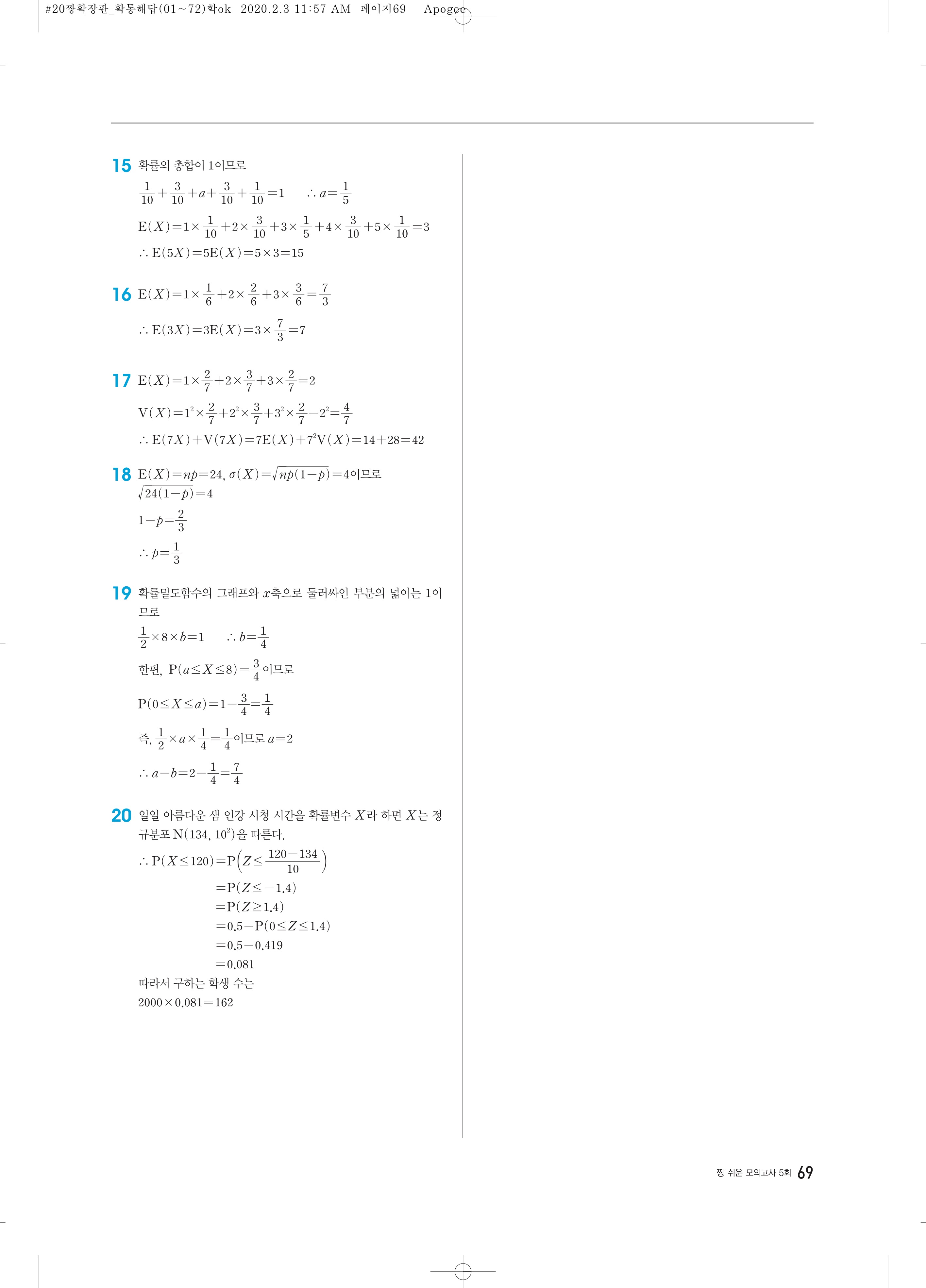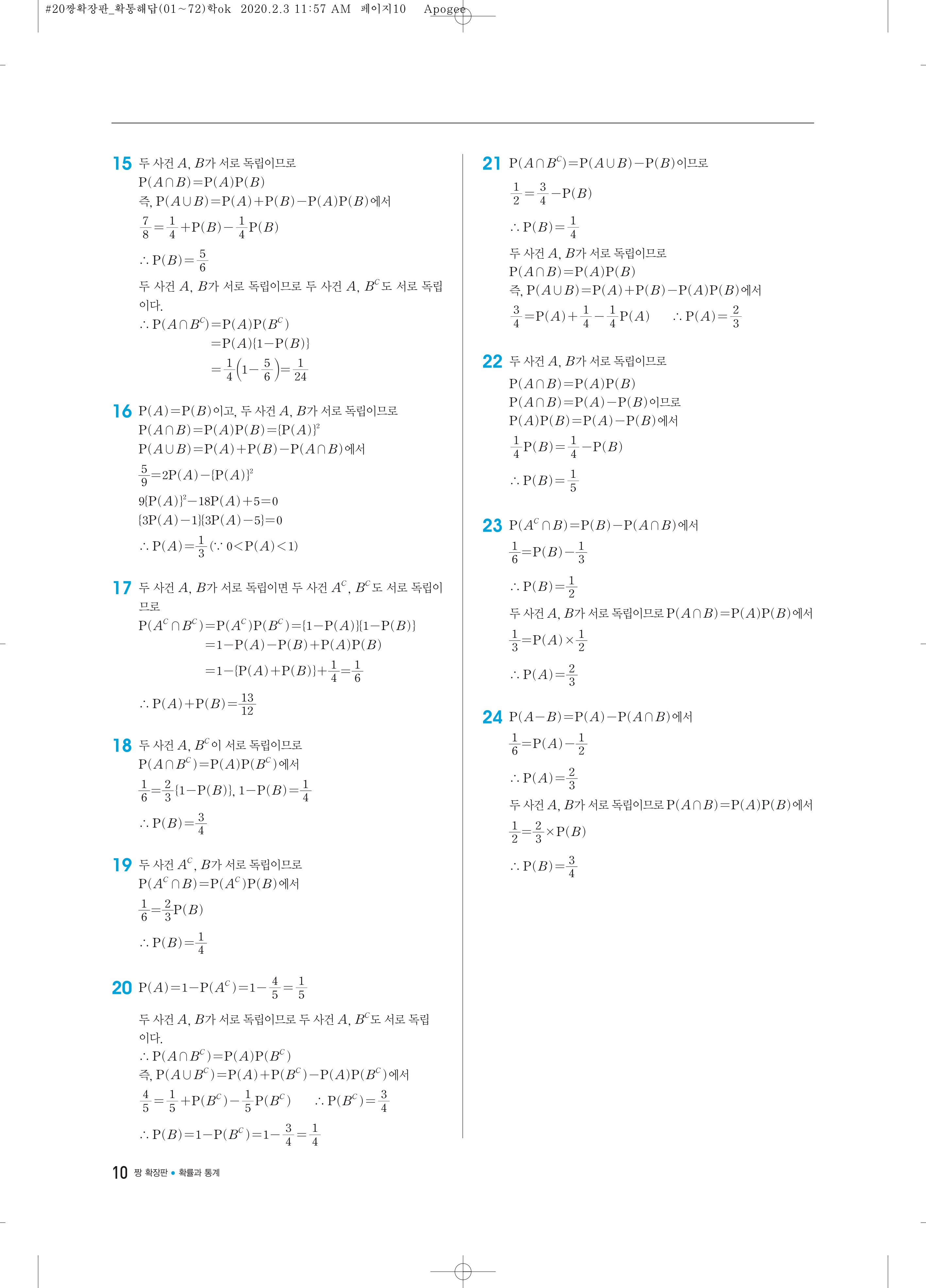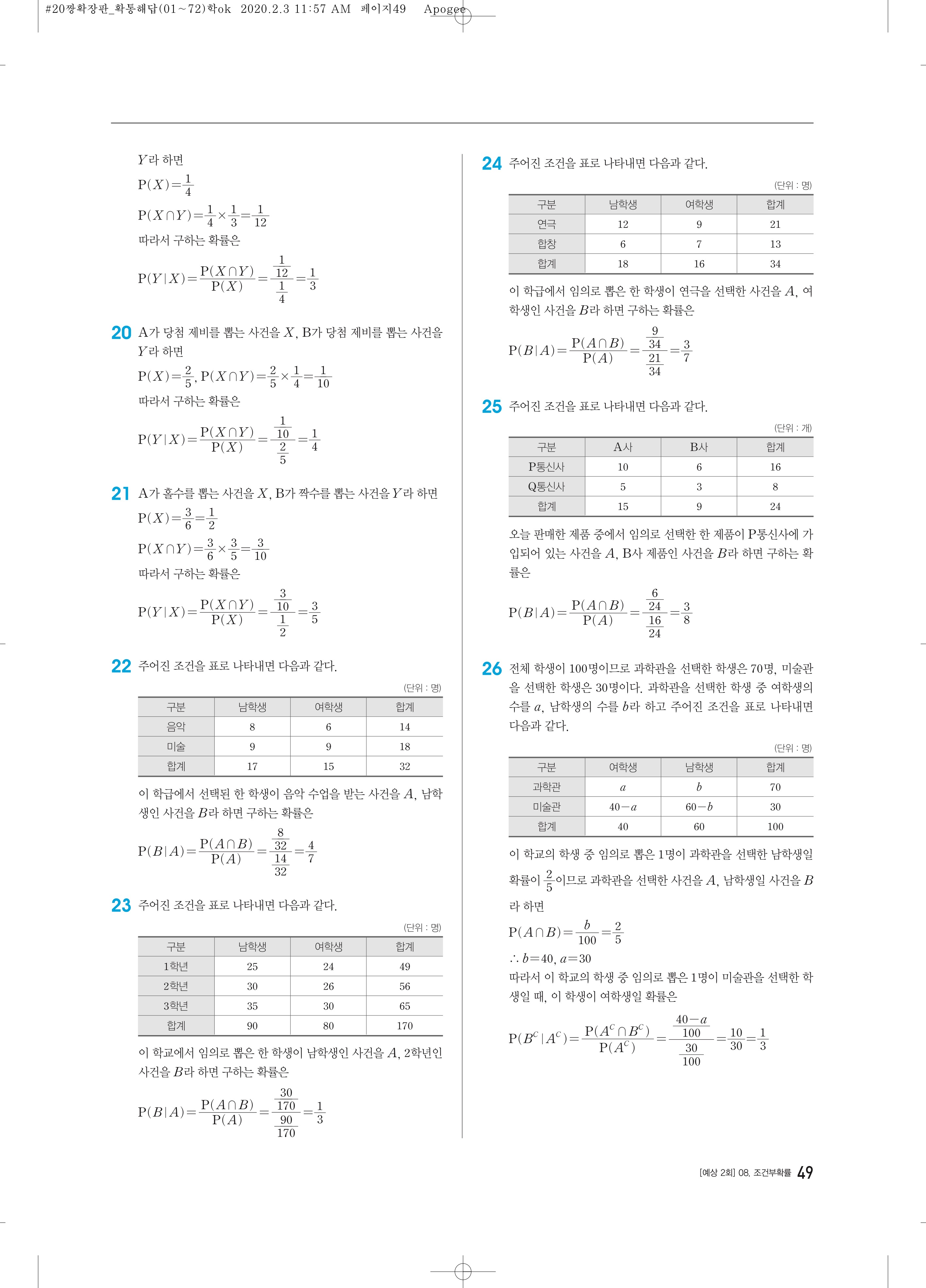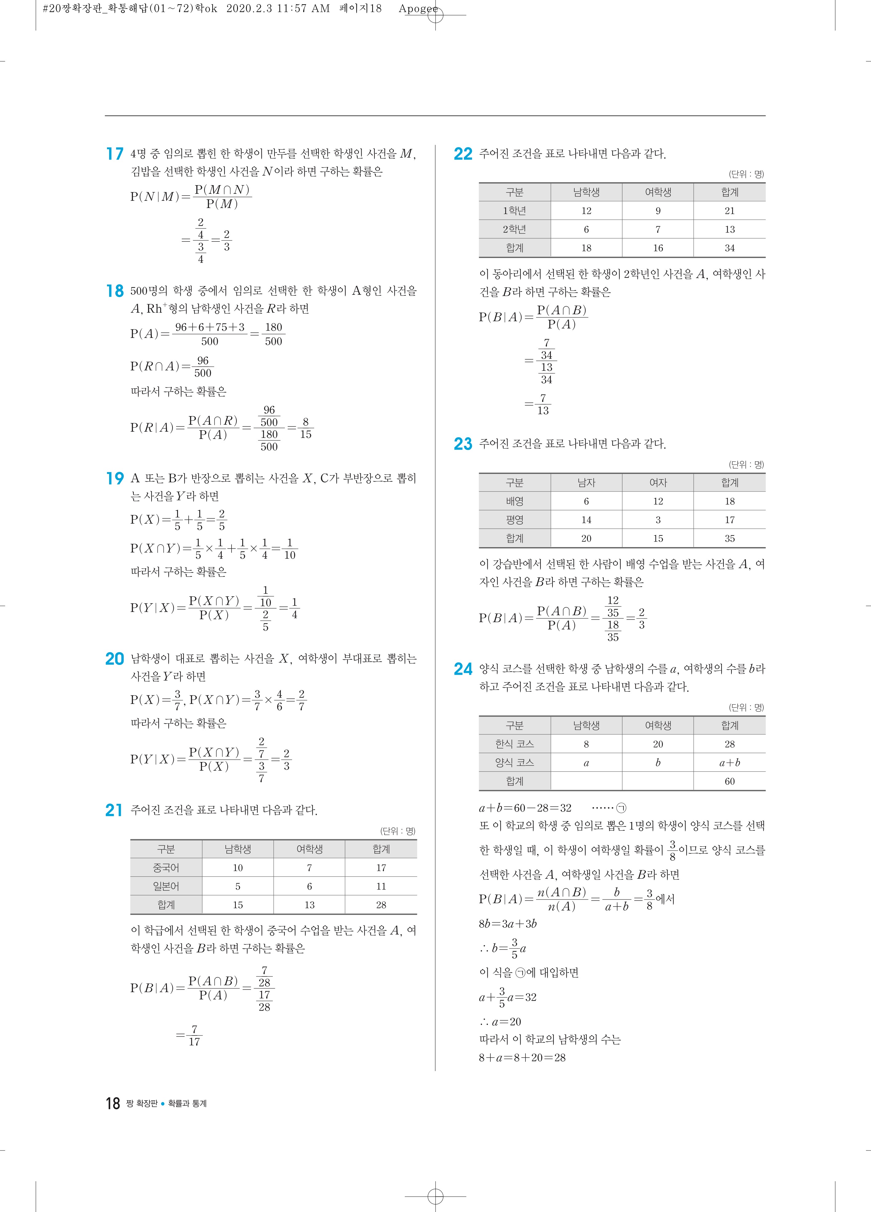 짱쉬운유형 확장판 확률과통계 답지 해설 바로보는 사진답지 빠른답지 모바일최적화