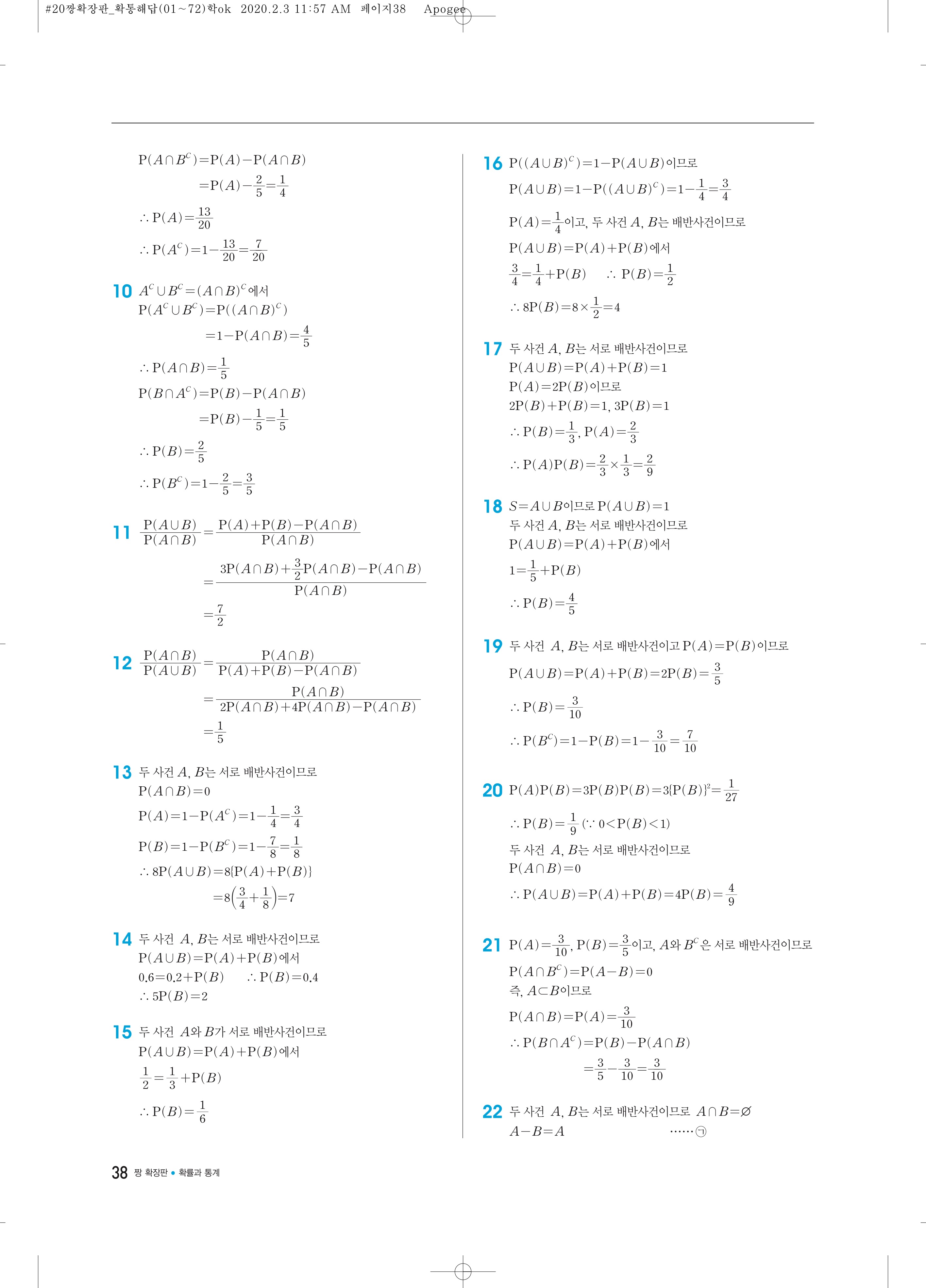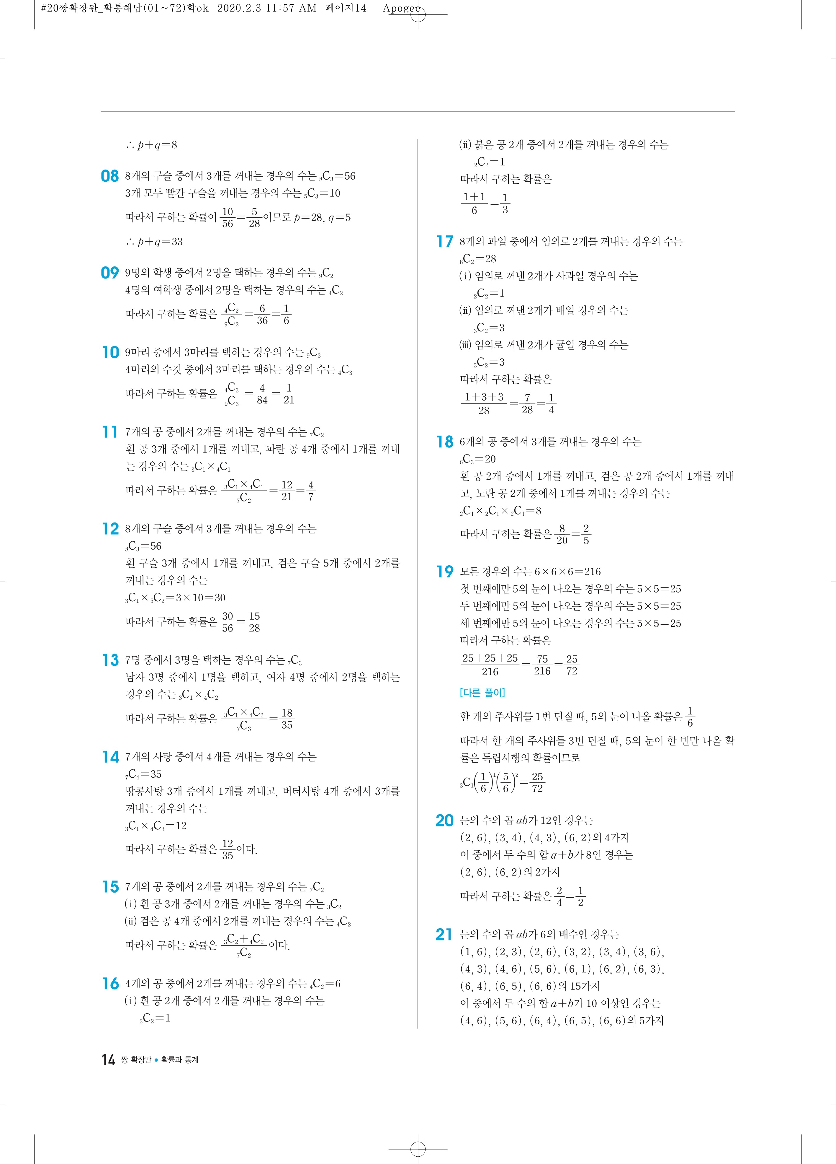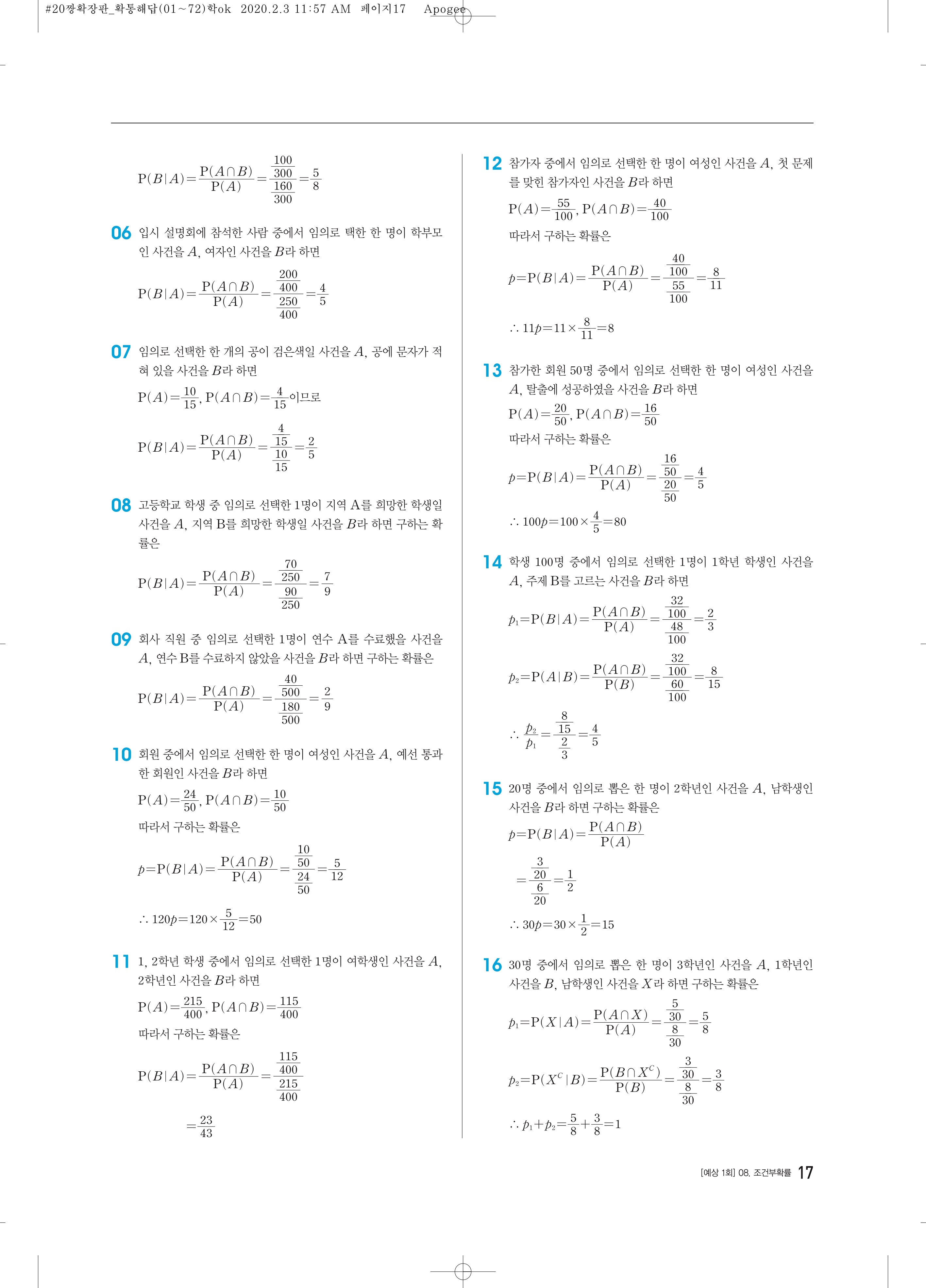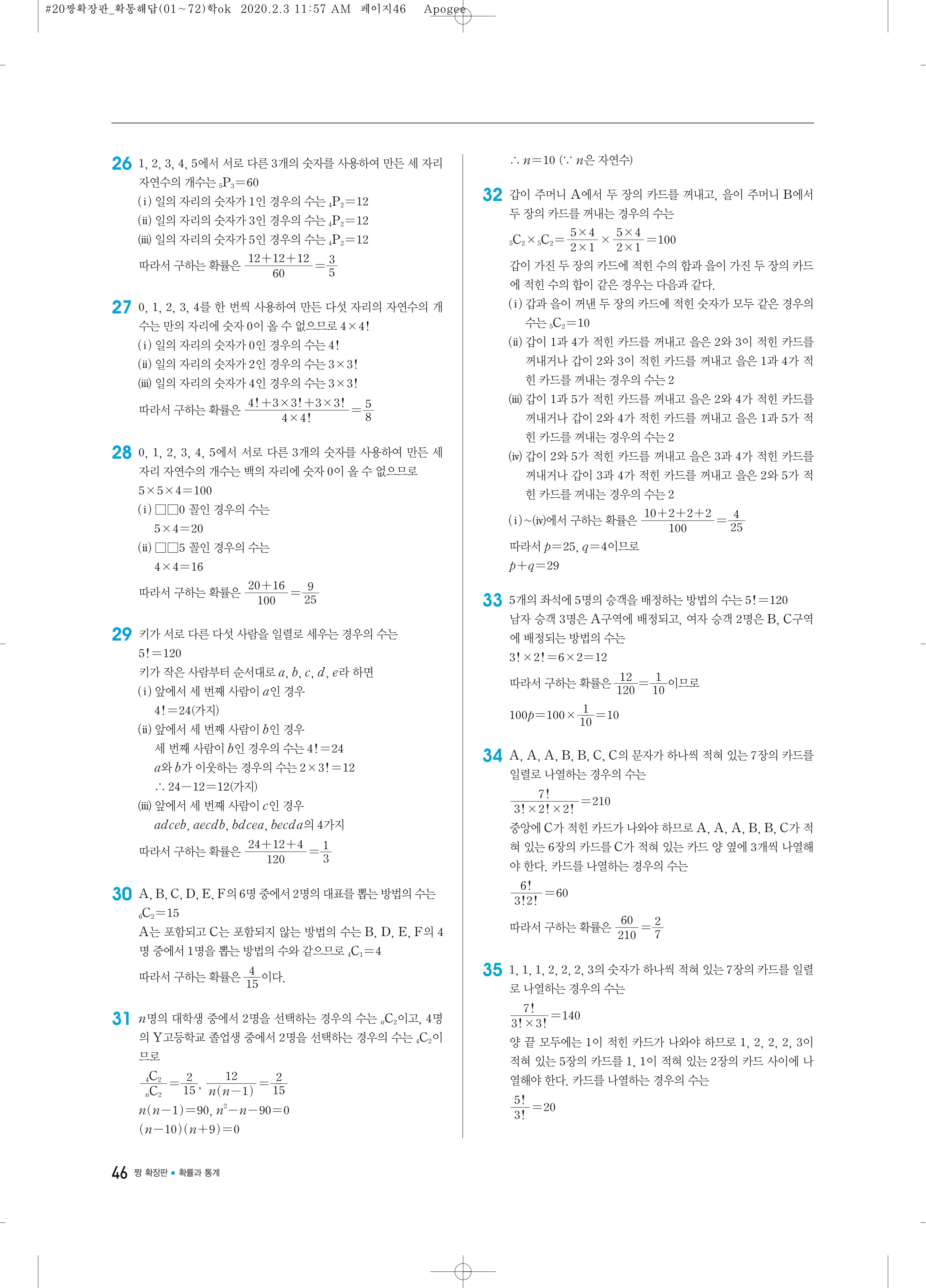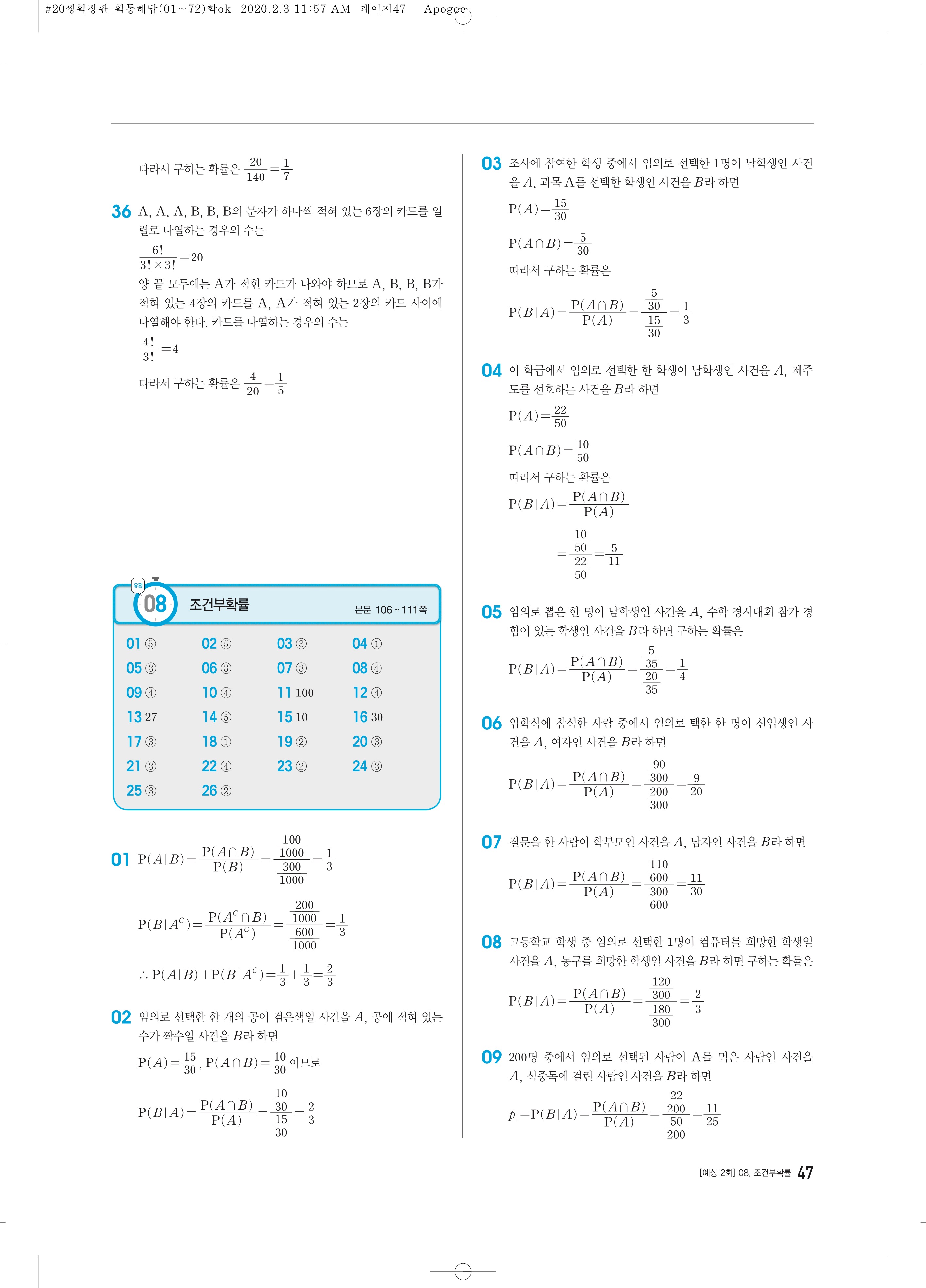 짱쉬운유형 확장판 확률과통계 답지 해설 바로보는 사진답지 빠른답지 모바일최적화
