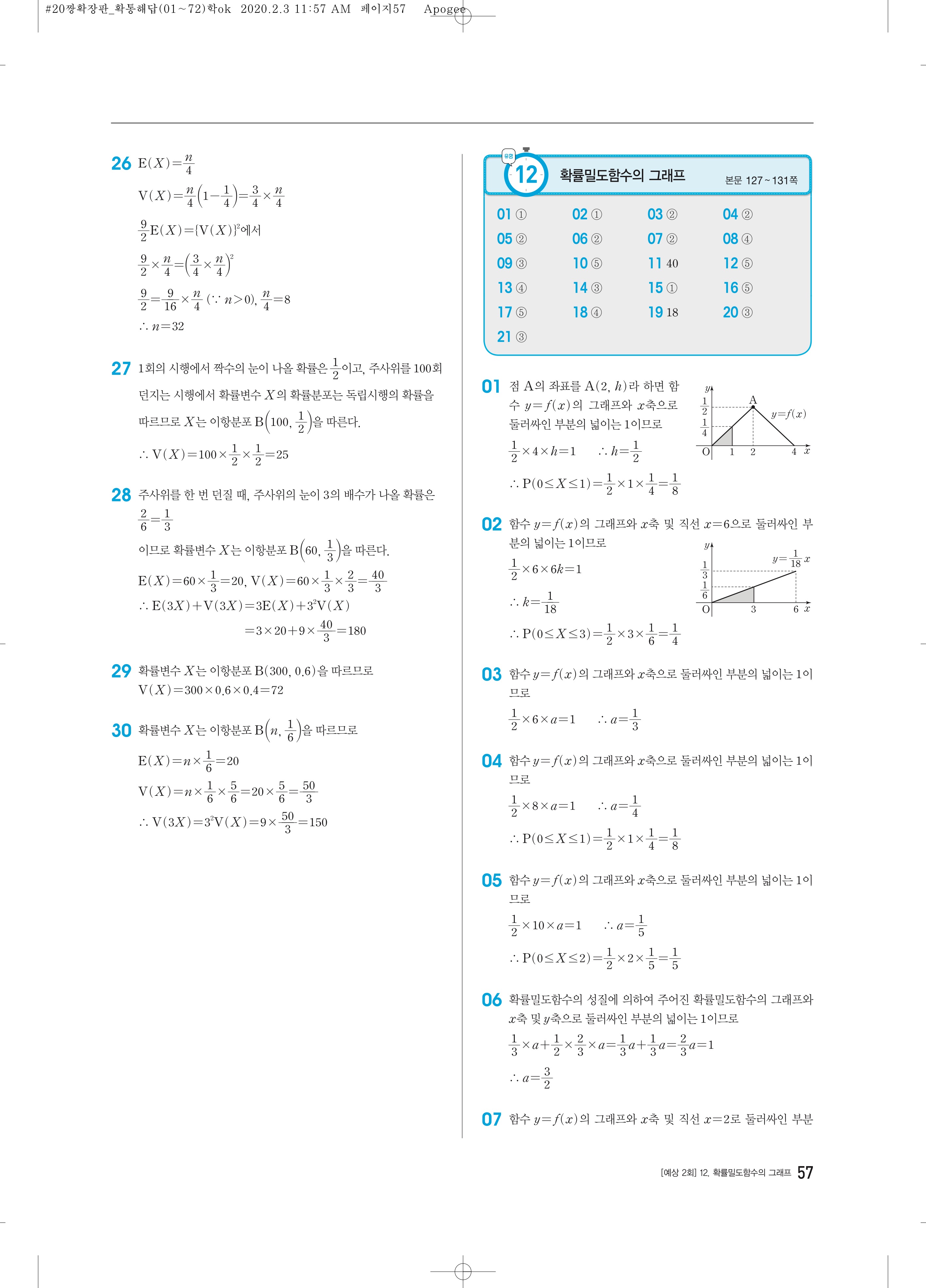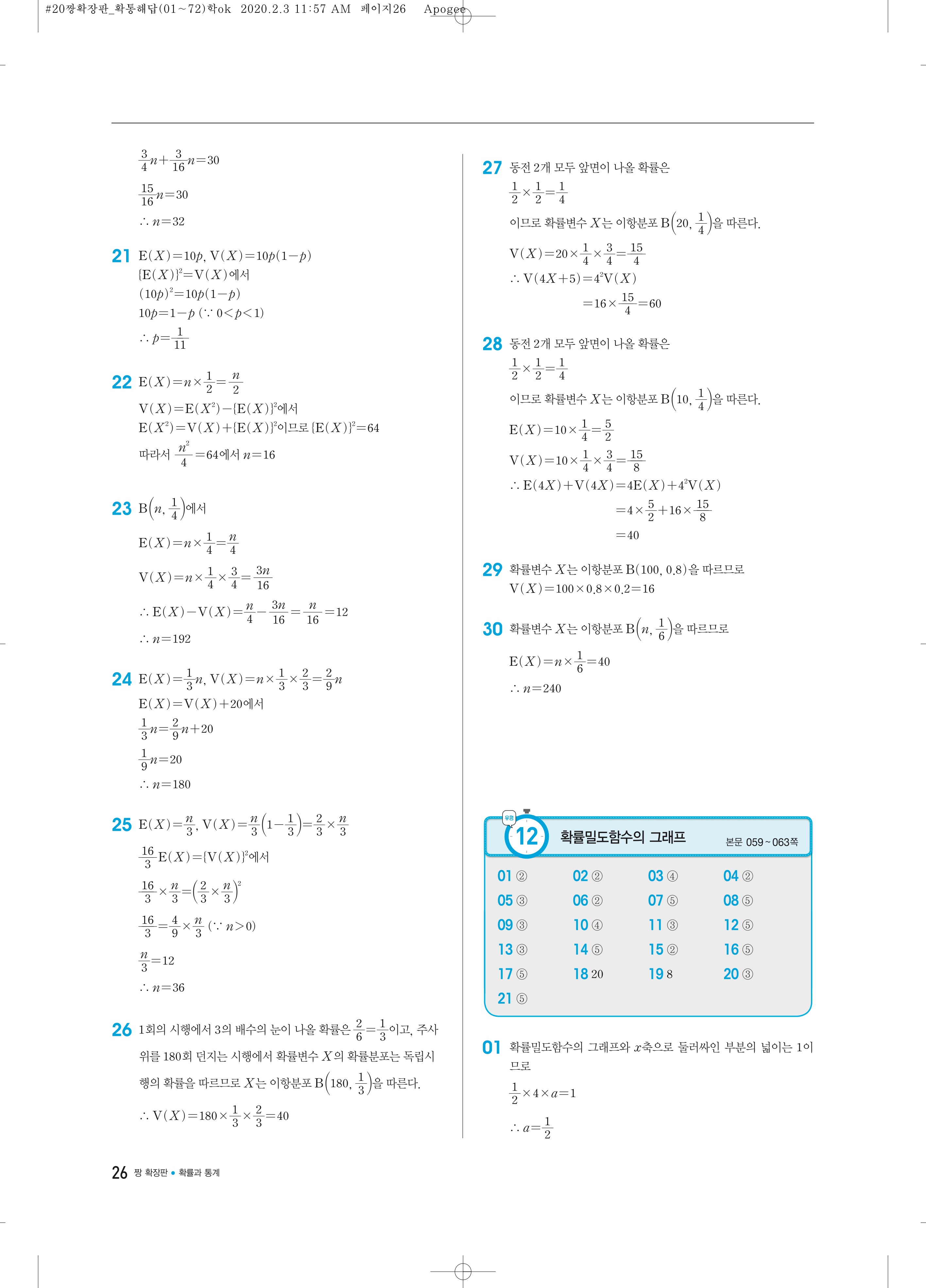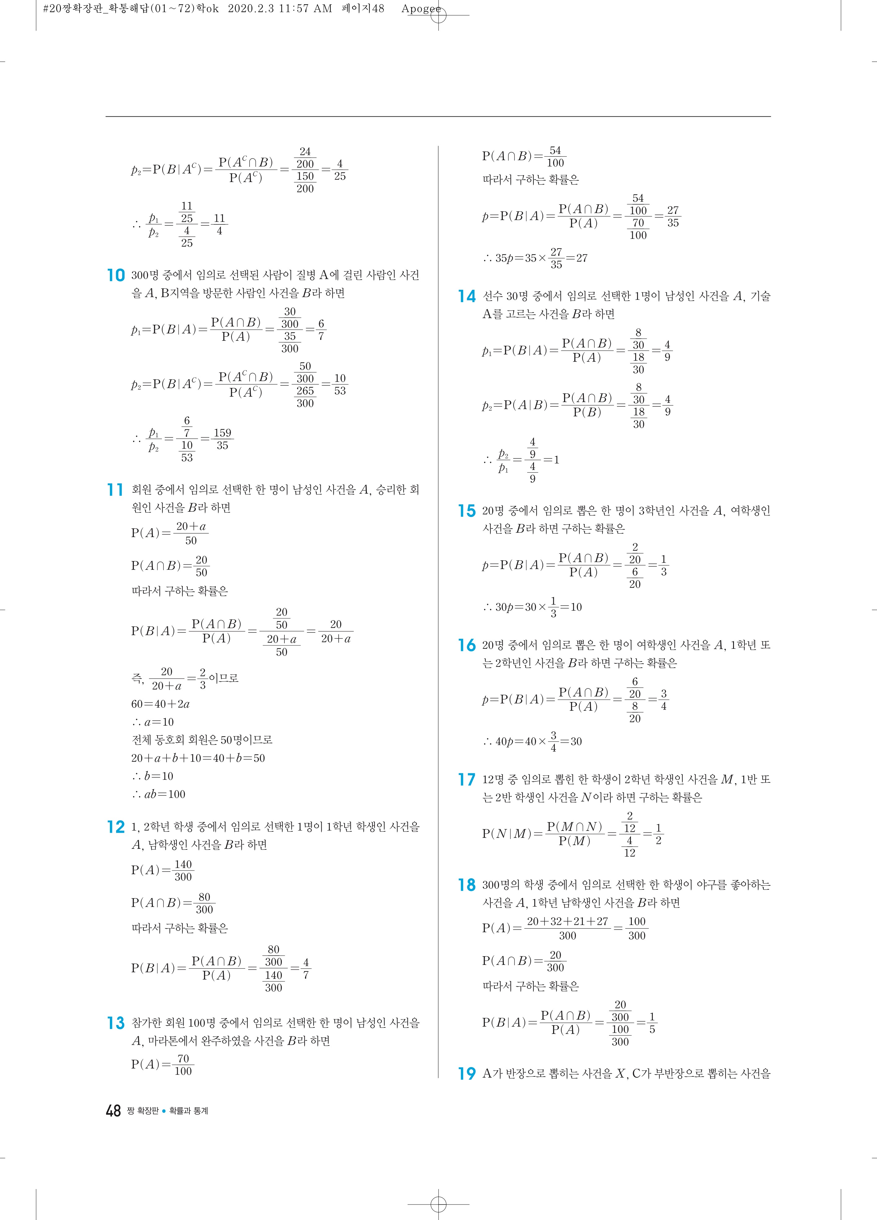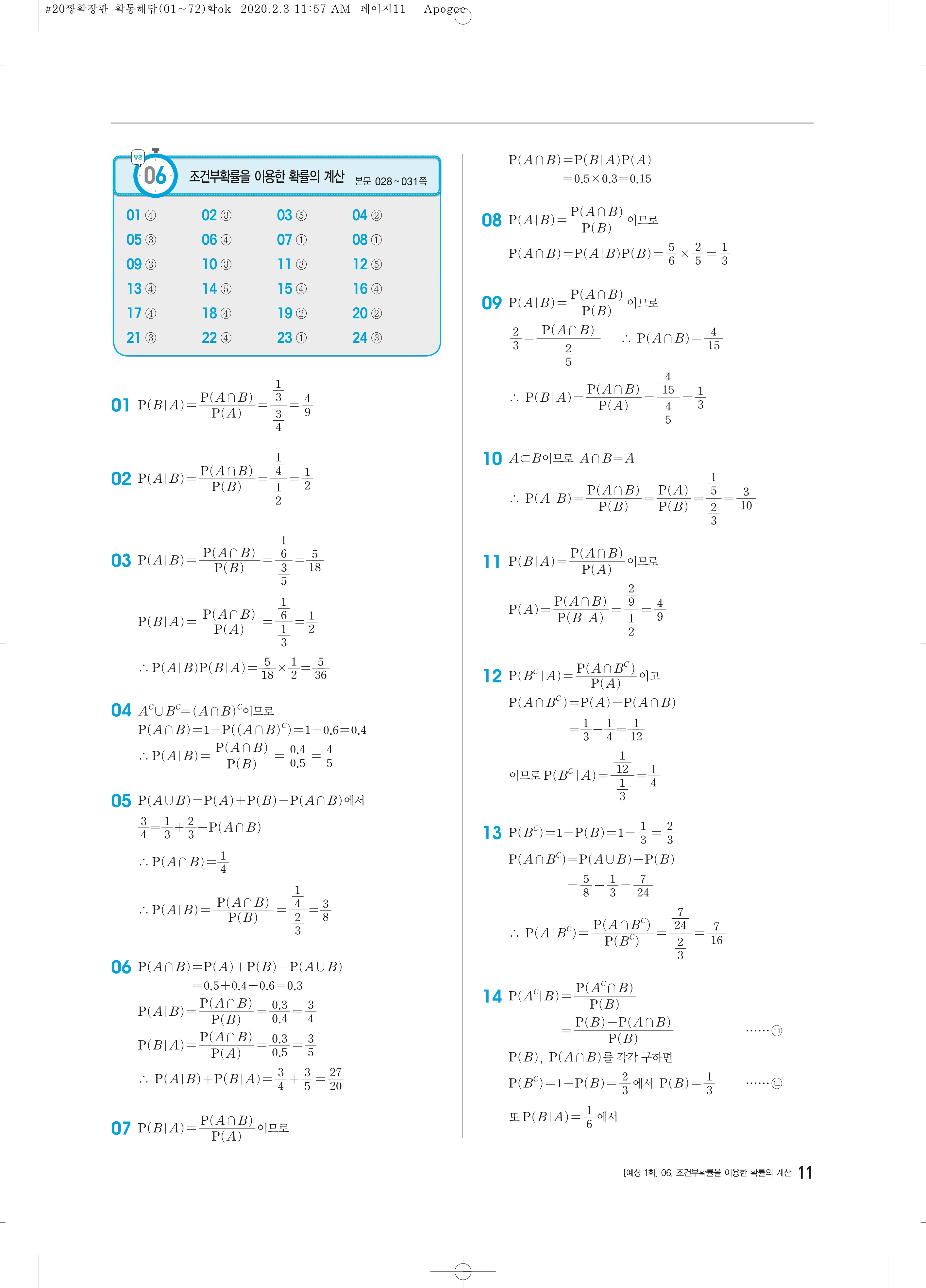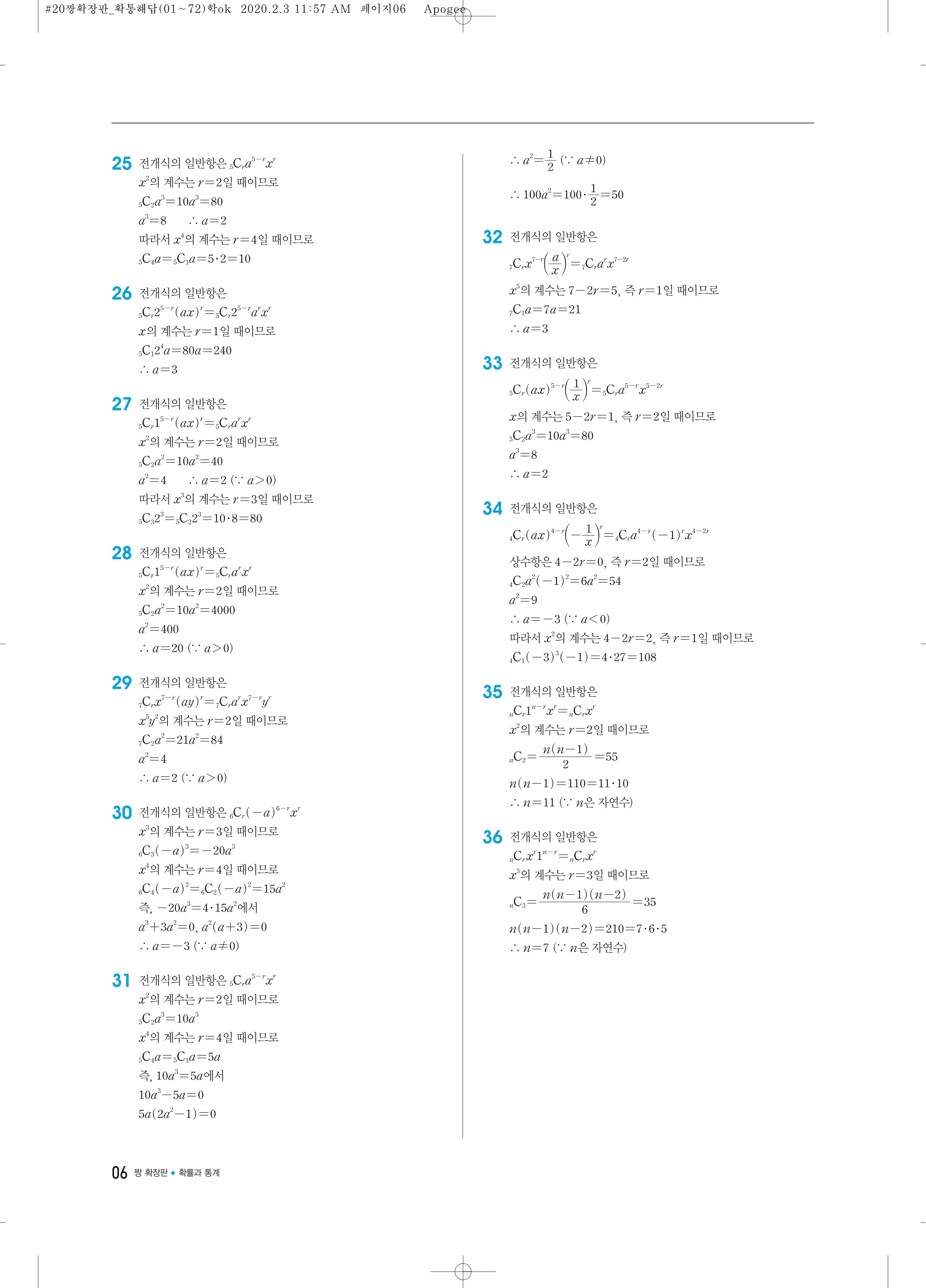 짱쉬운유형 확장판 확률과통계 답지 해설 바로보는 사진답지 빠른답지 모바일최적화