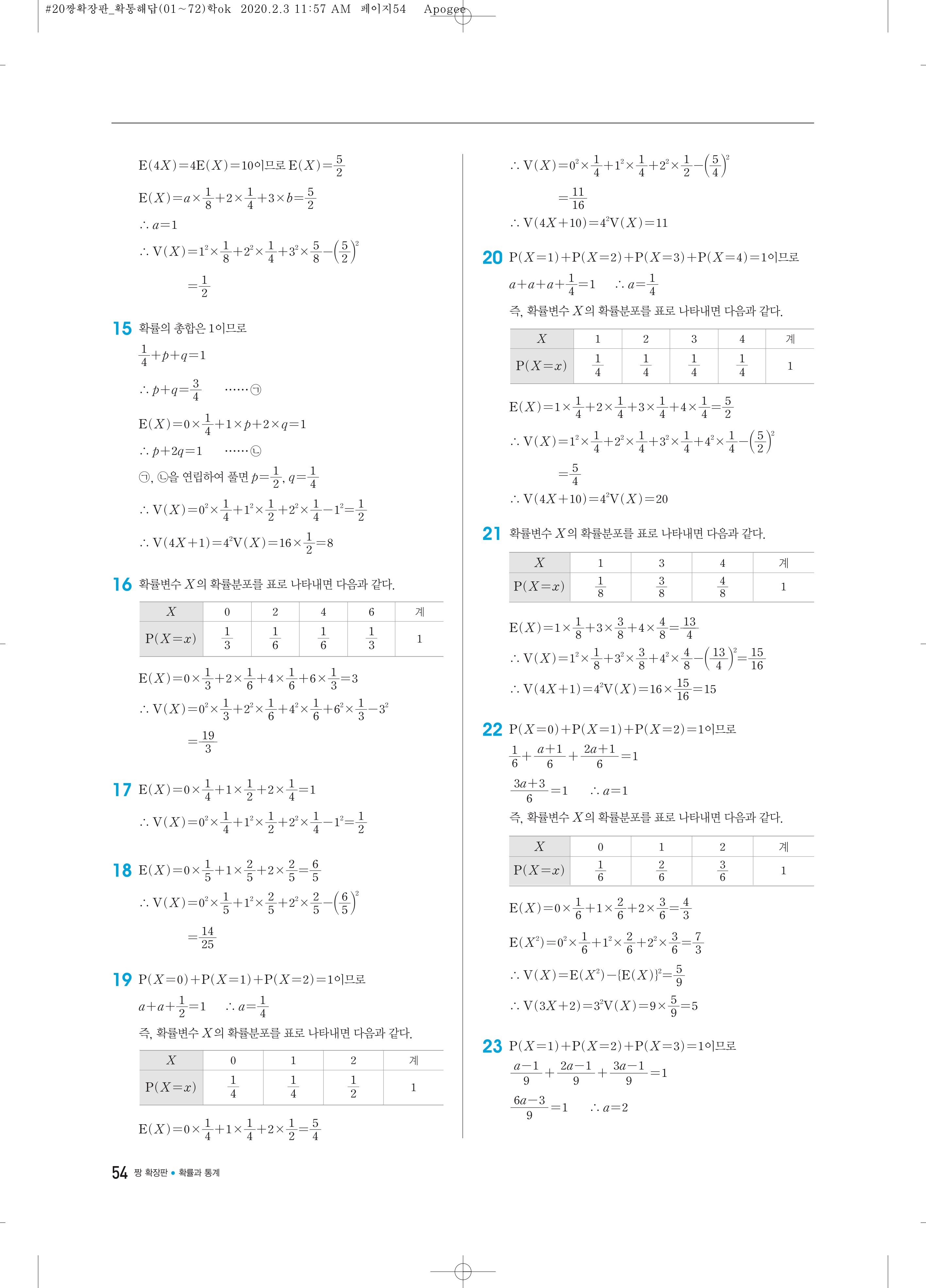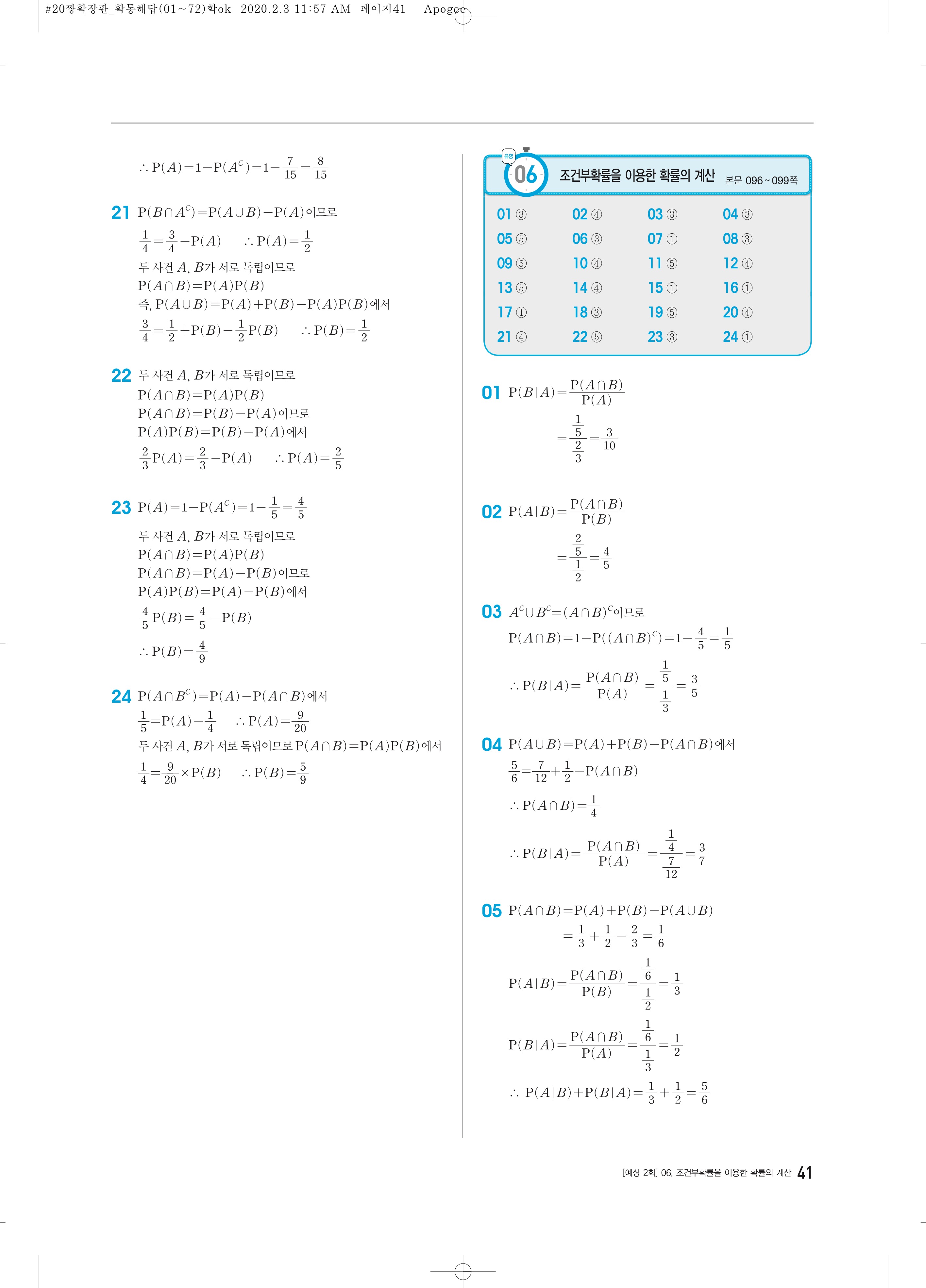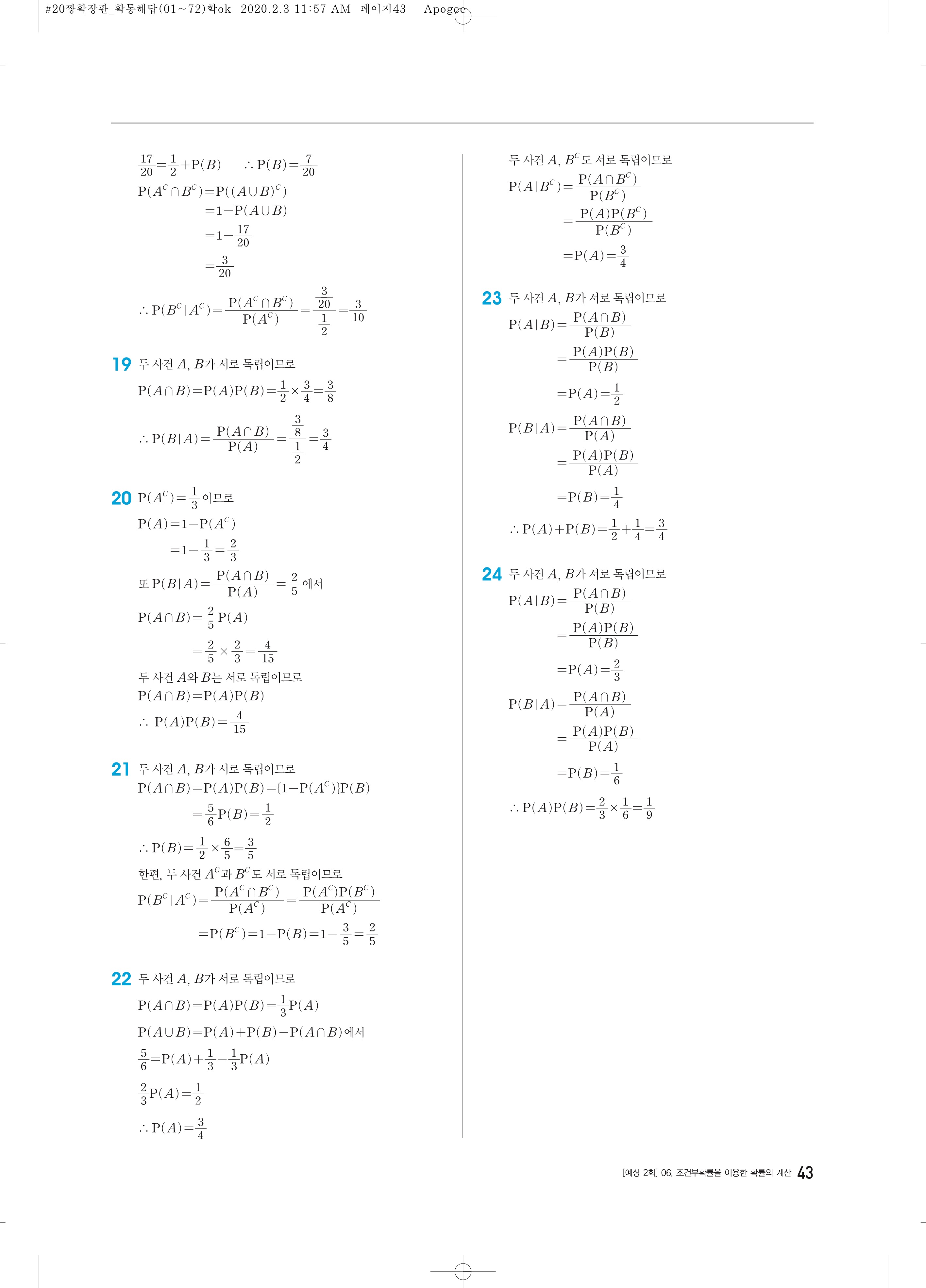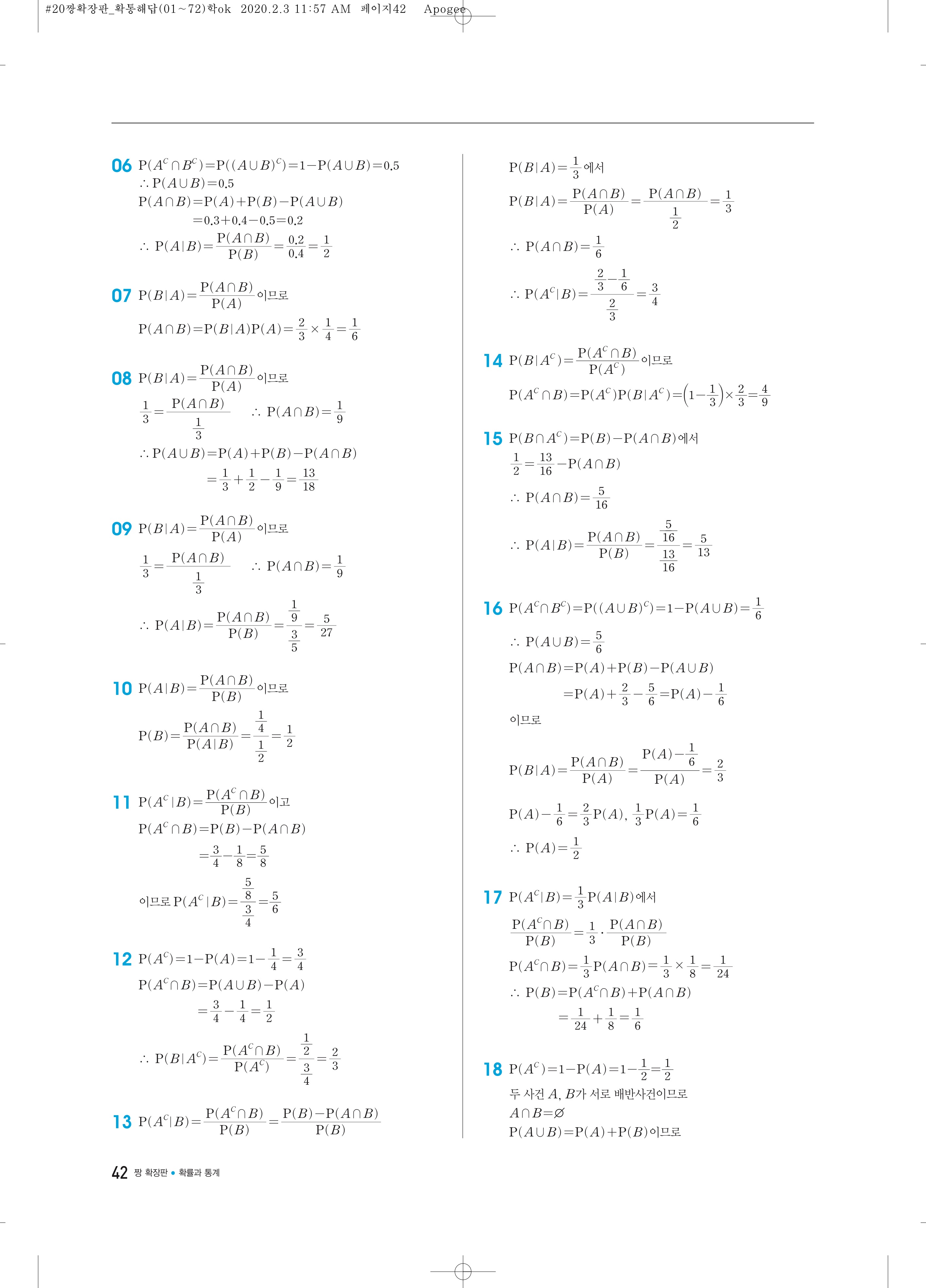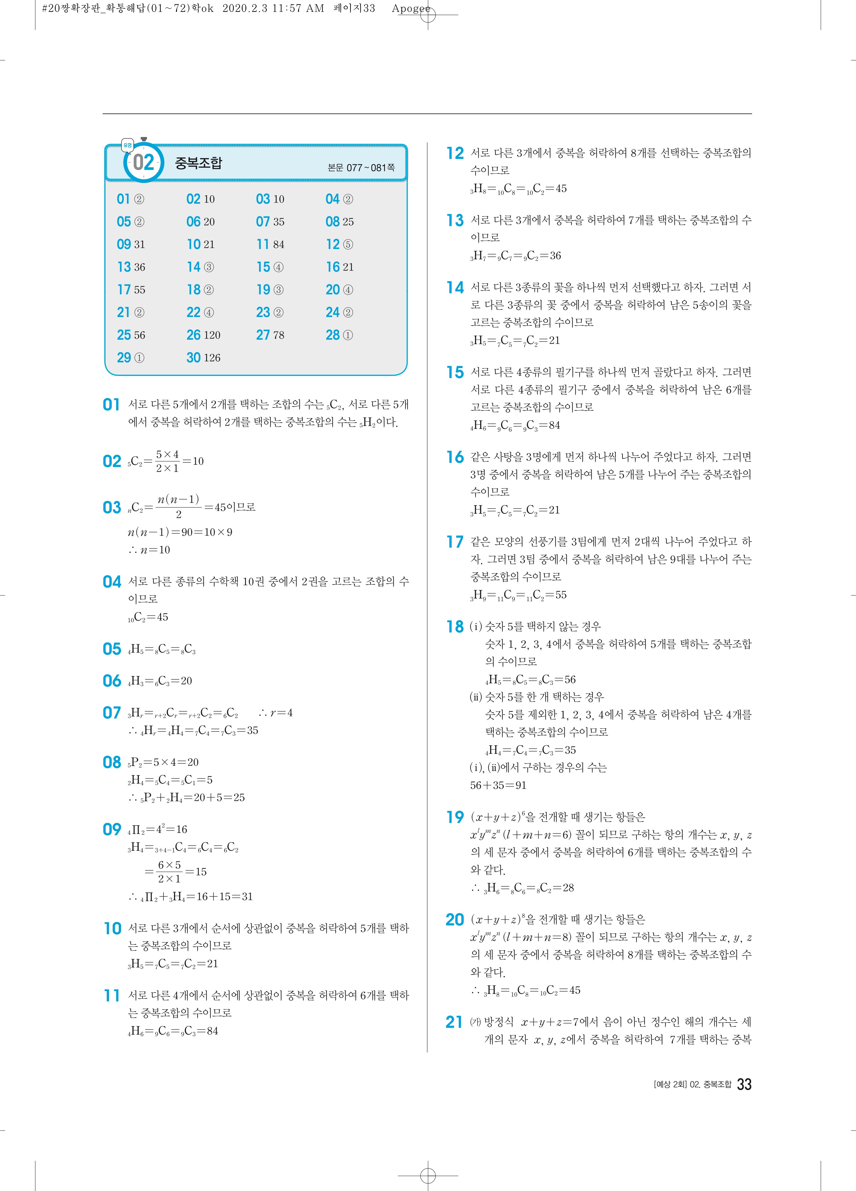 짱쉬운유형 확장판 확률과통계 답지 해설 바로보는 사진답지 빠른답지 모바일최적화
