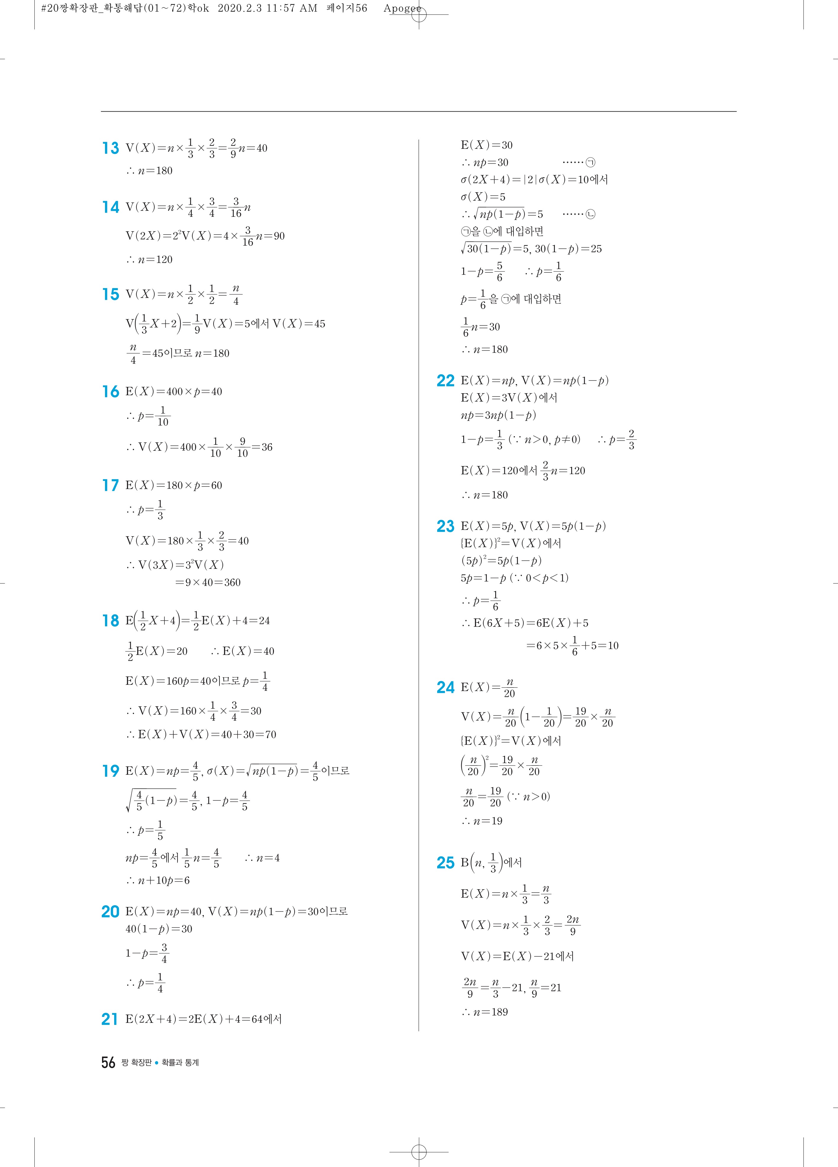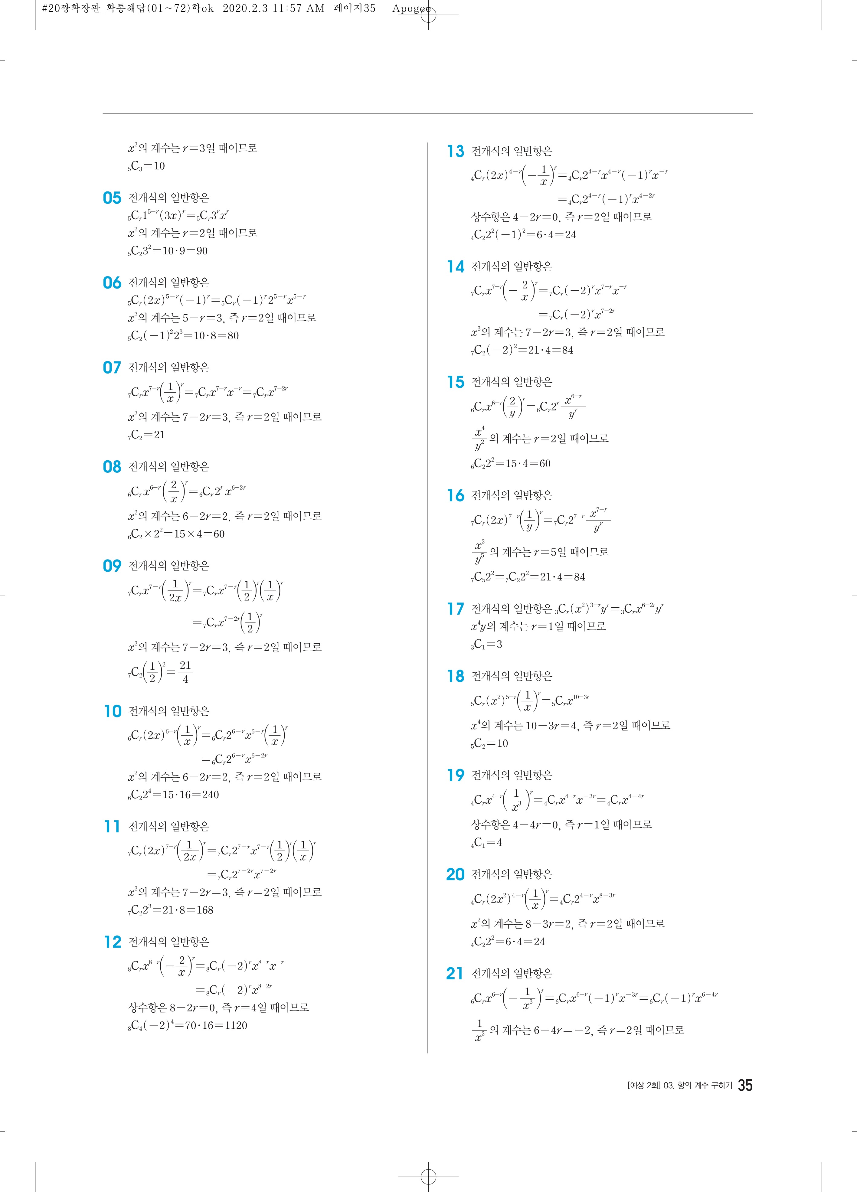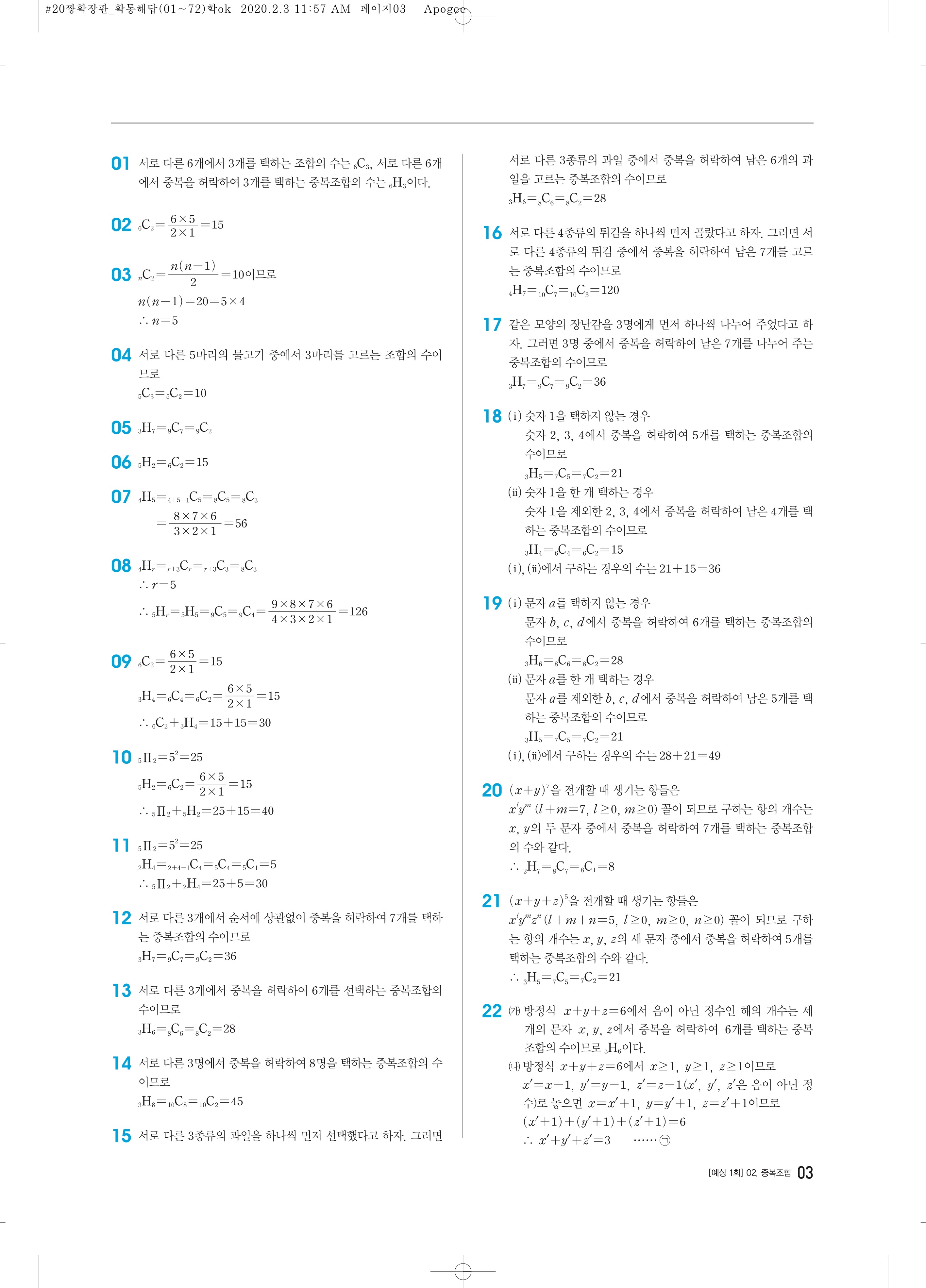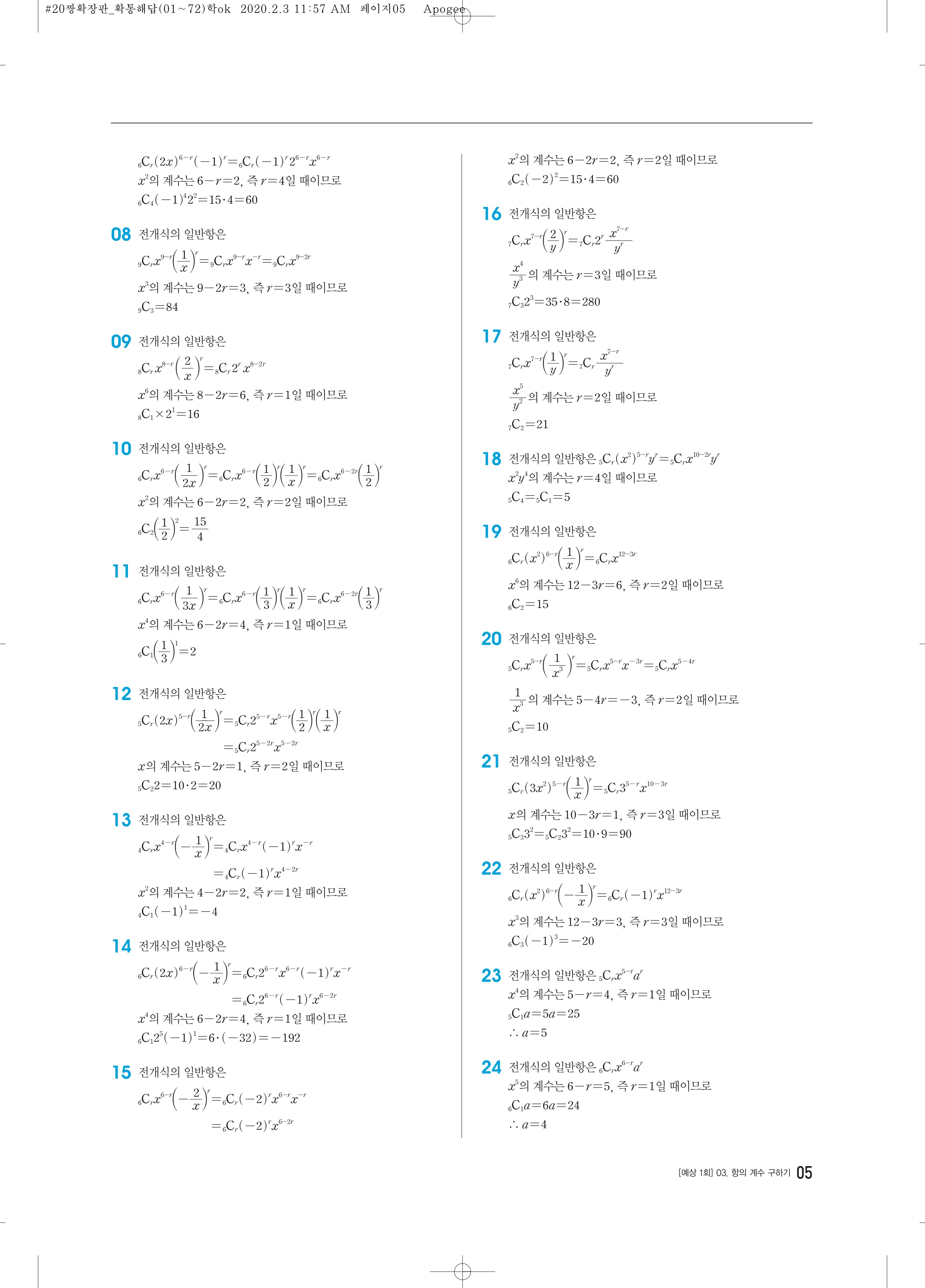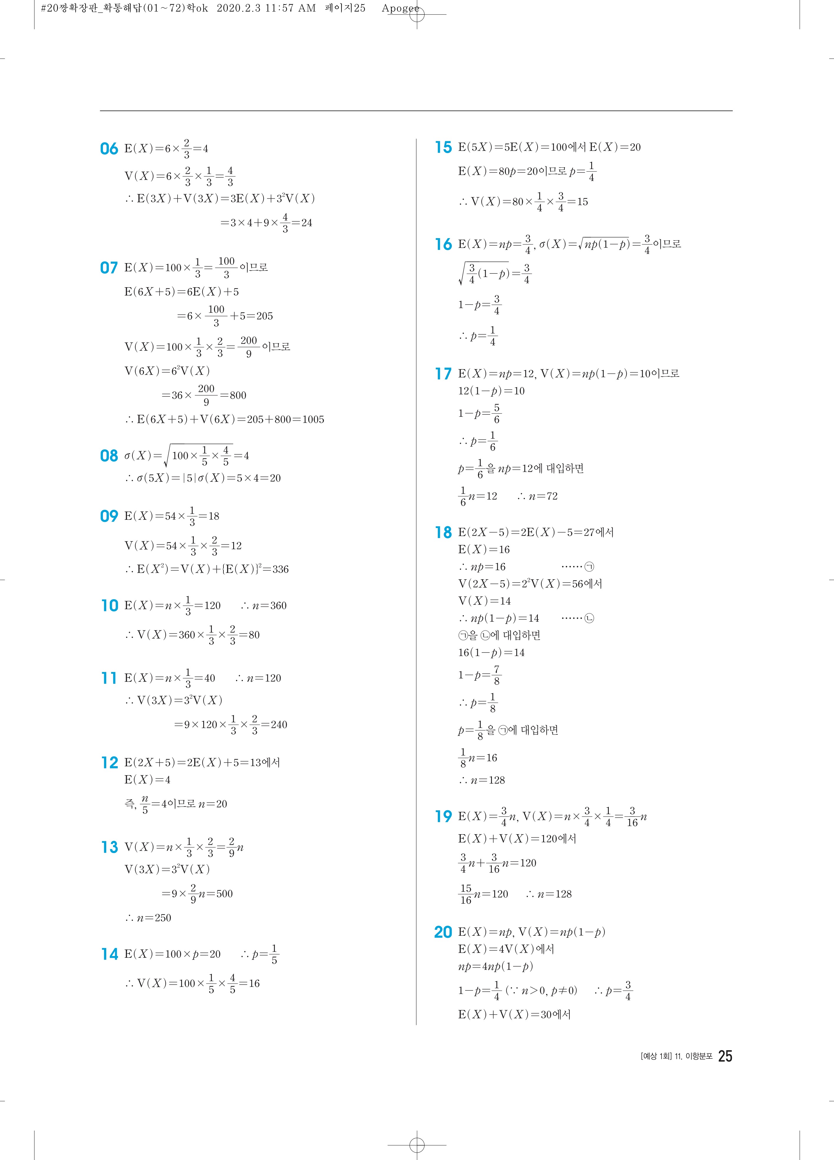 짱쉬운유형 확장판 확률과통계 답지 해설 바로보는 사진답지 빠른답지 모바일최적화