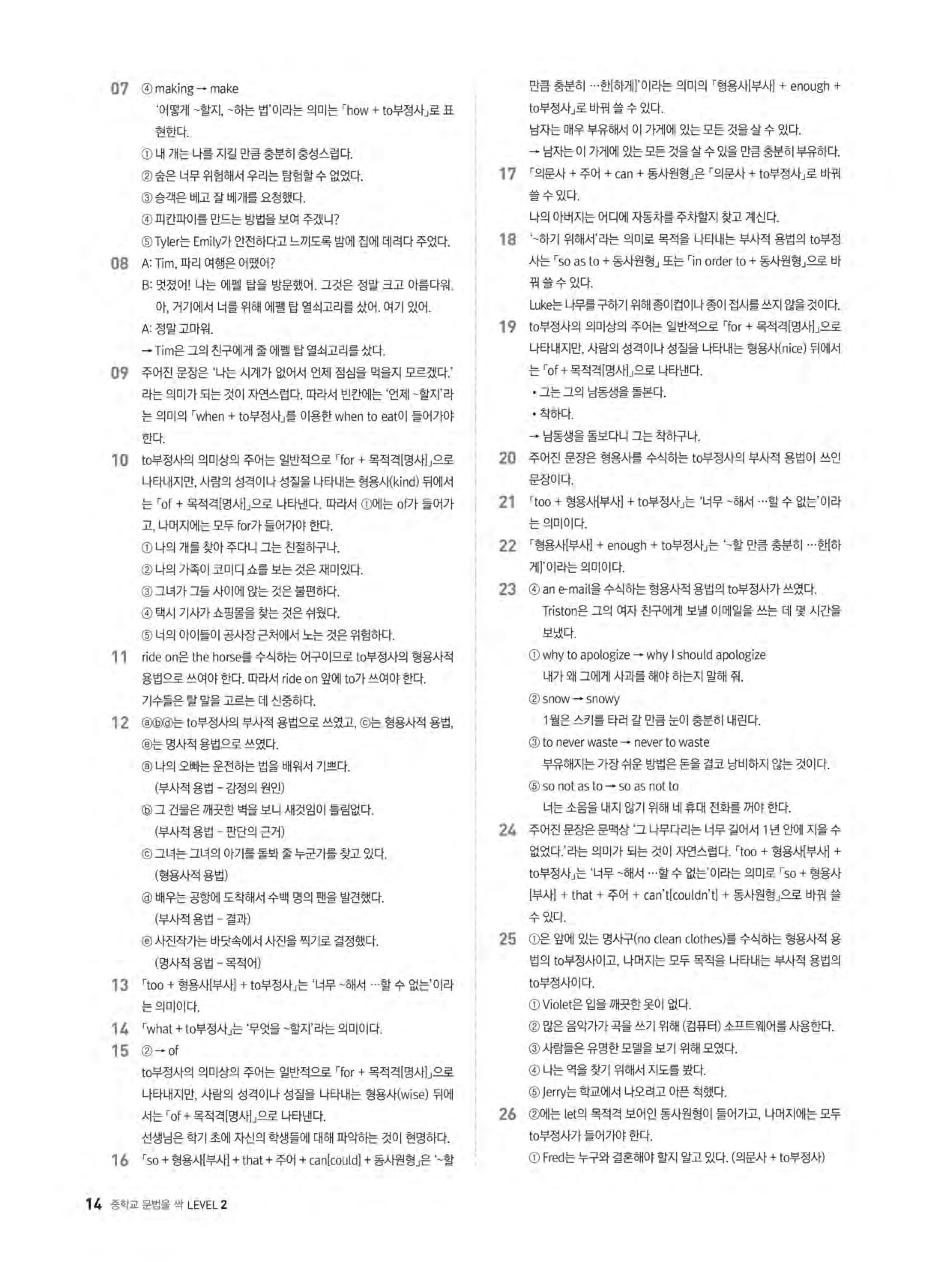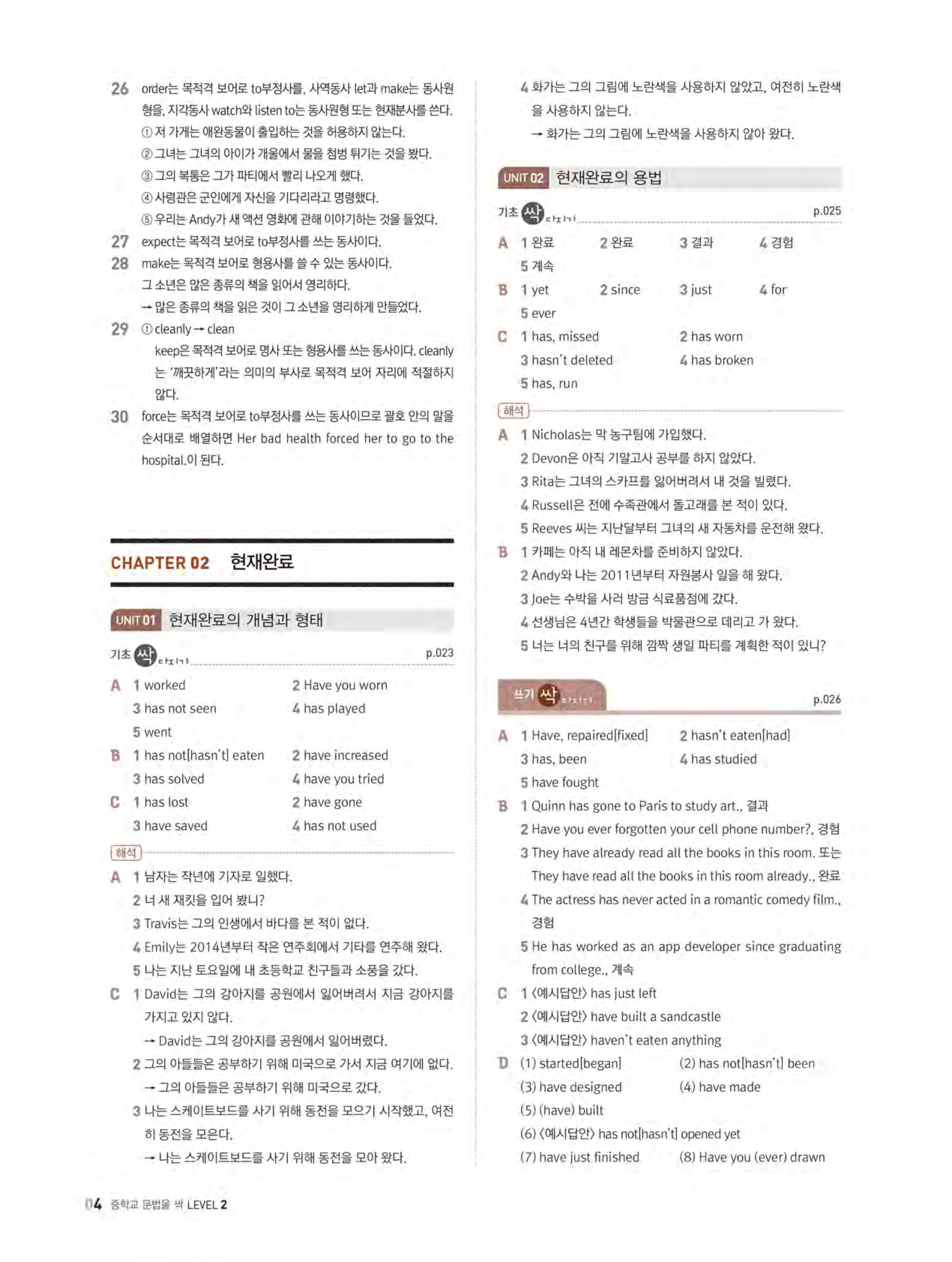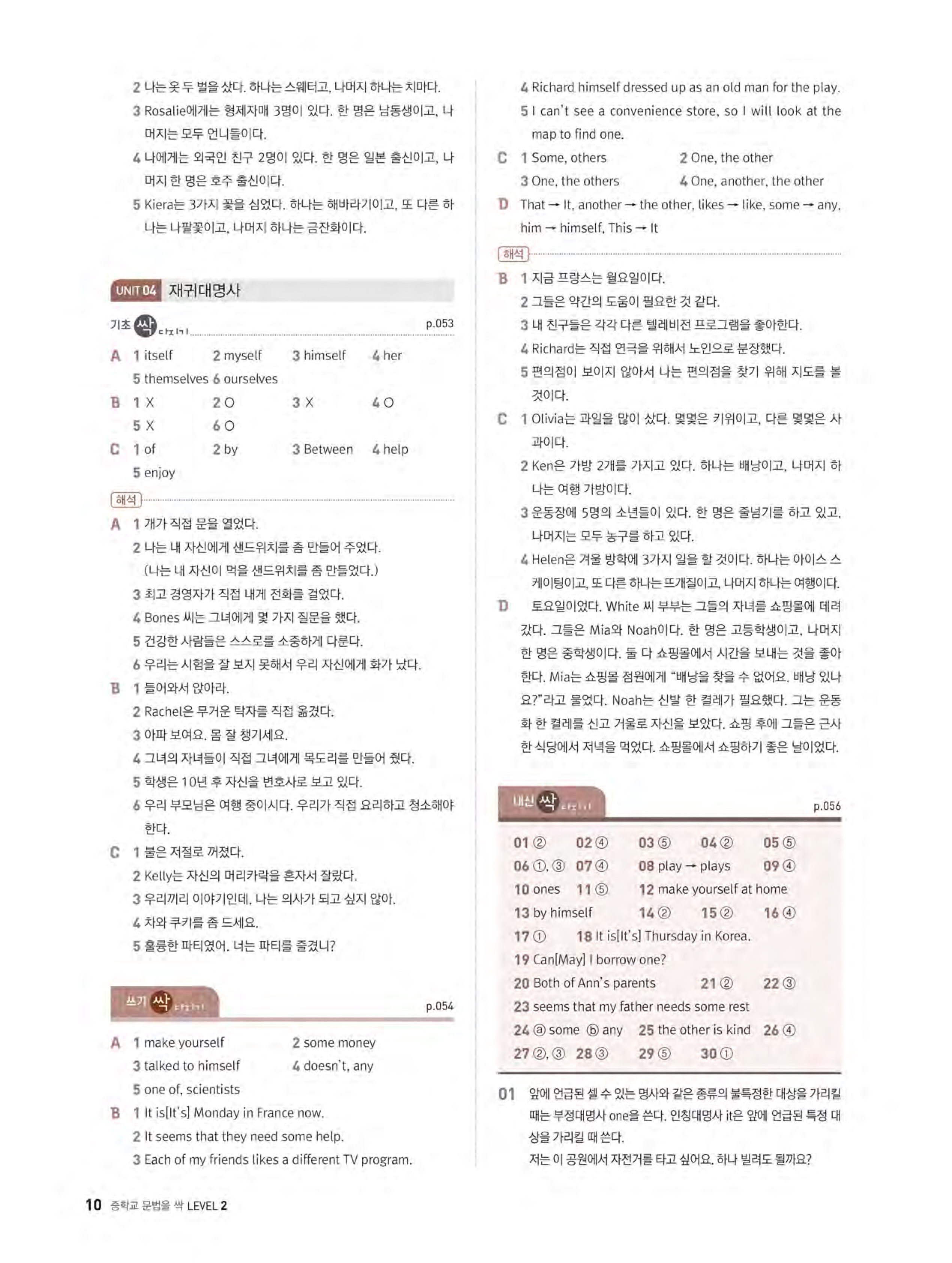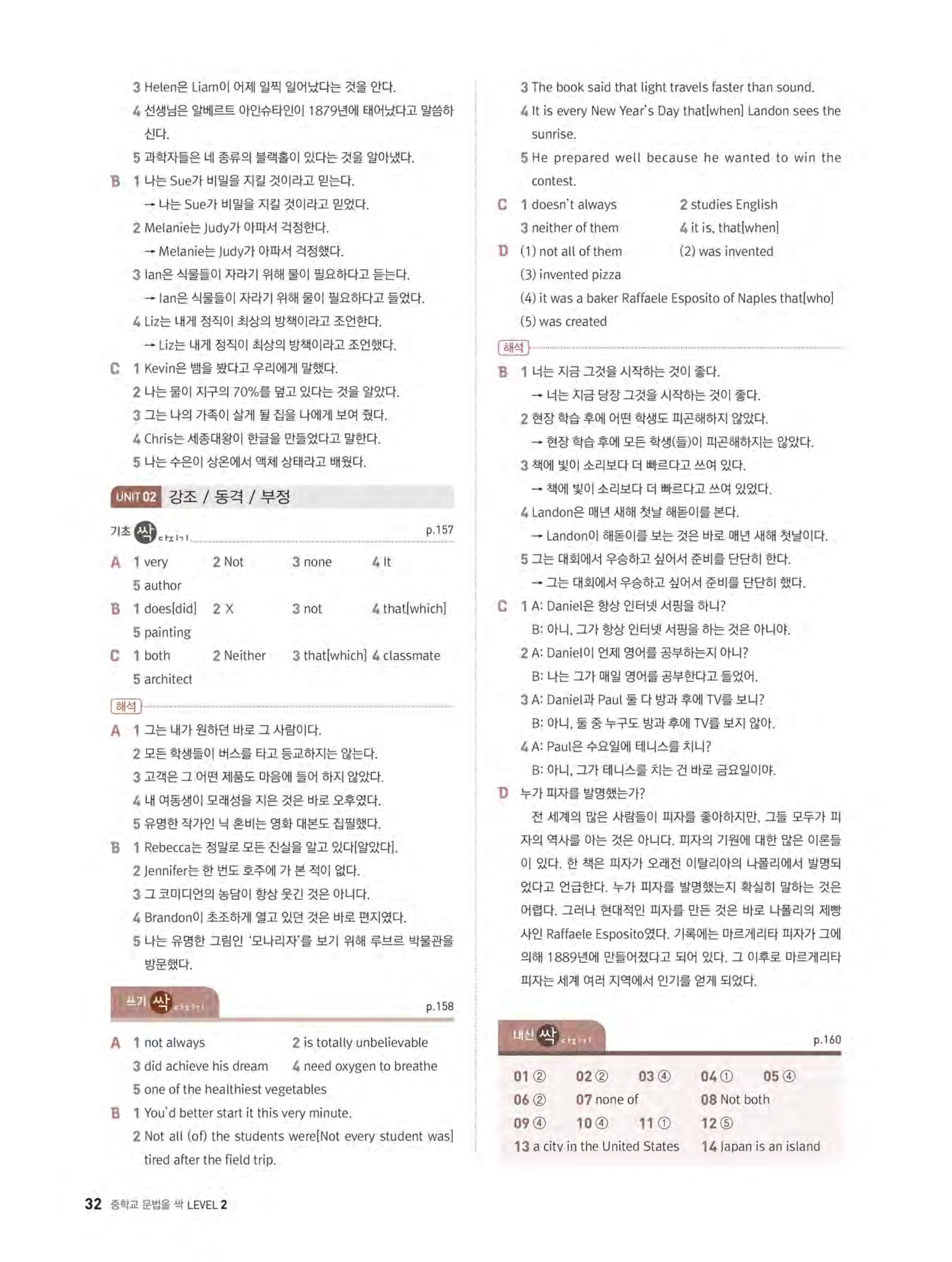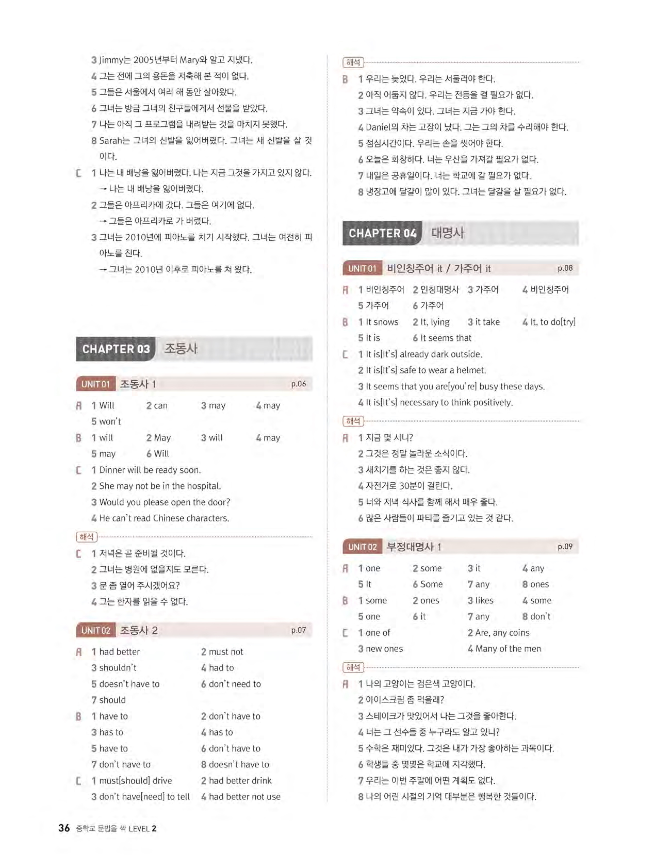 중학교 문법을 싹 레벨2 답지 해설 바로보는 사진답지 빠른답지 모바일최적화