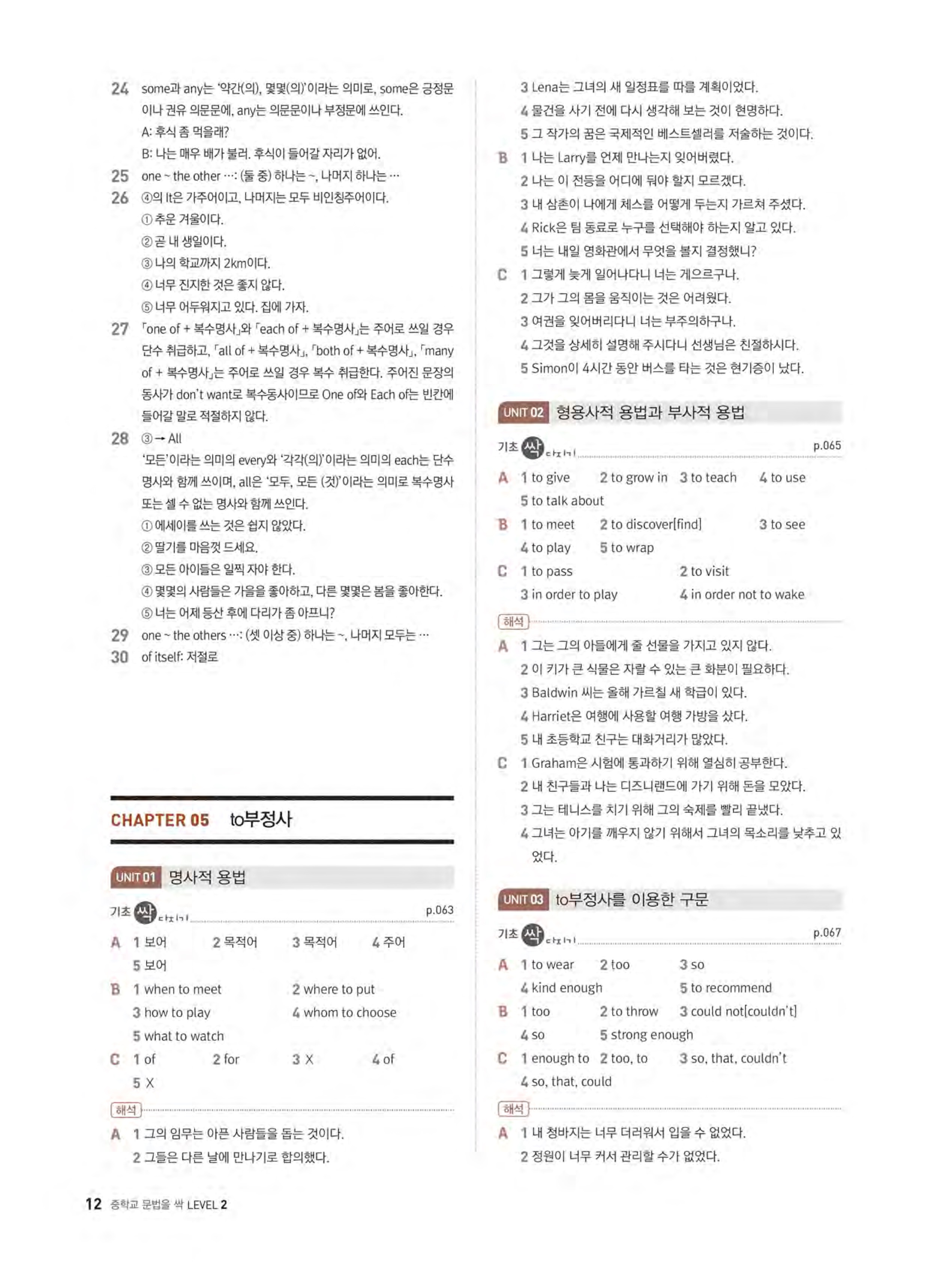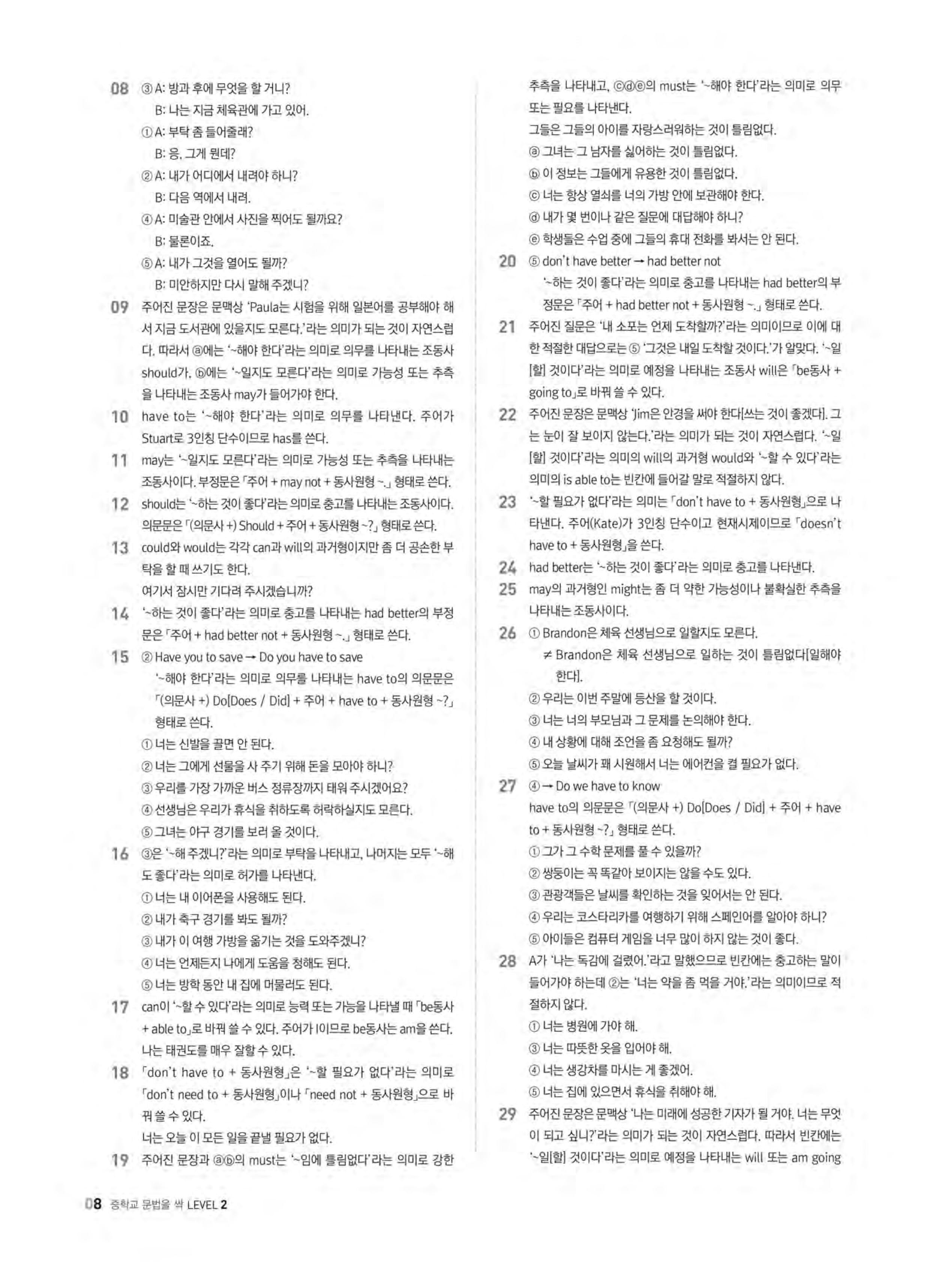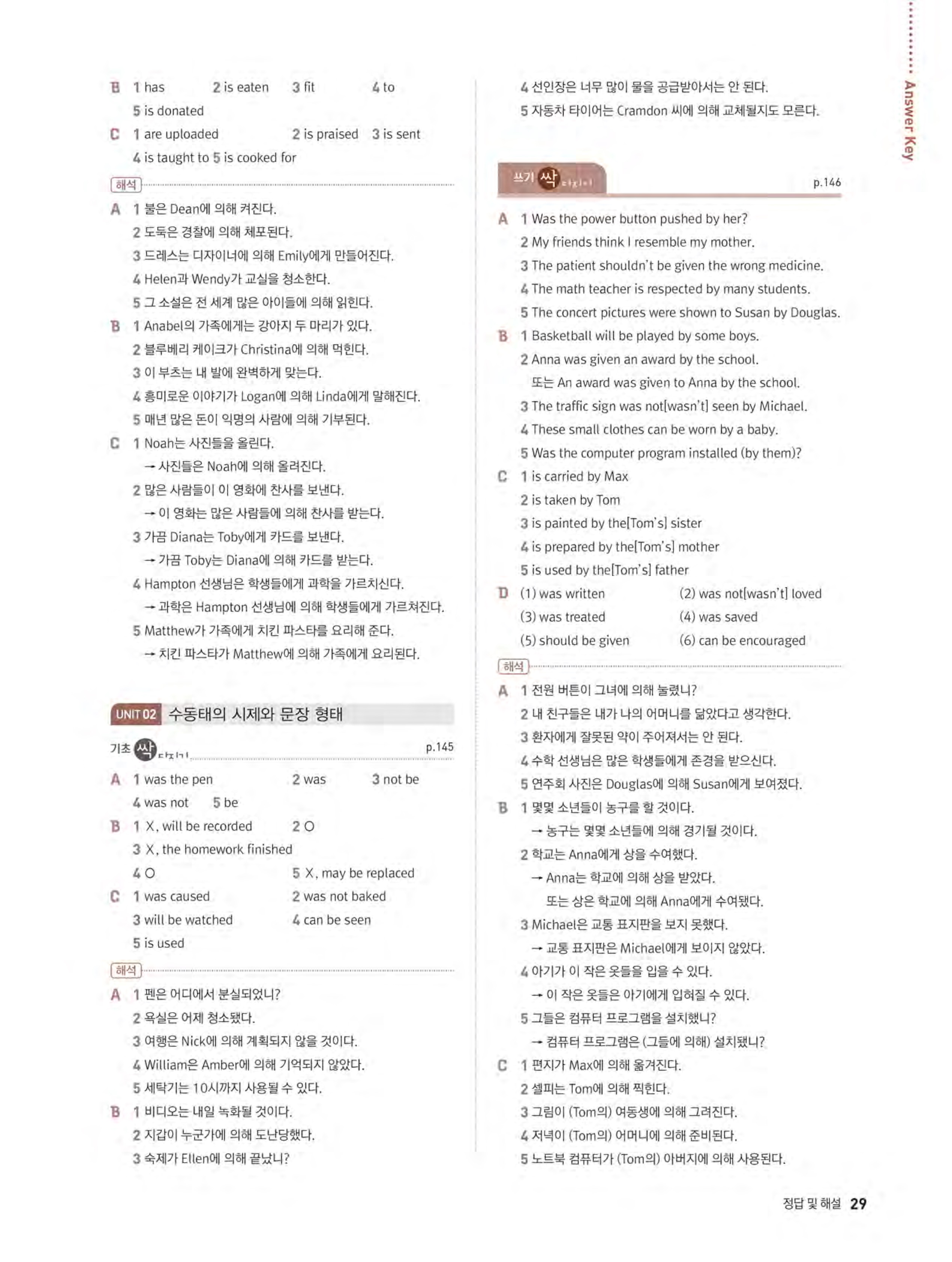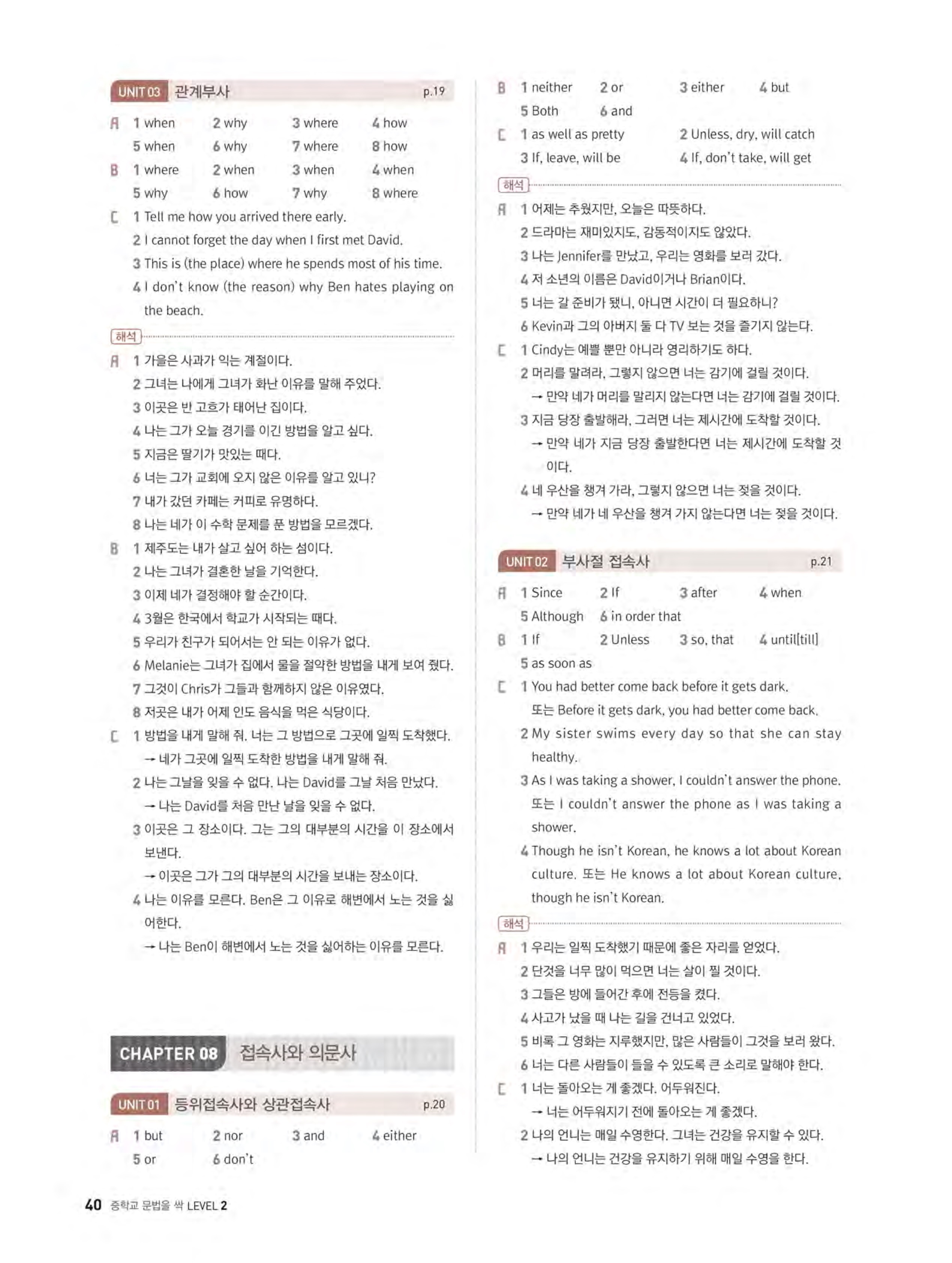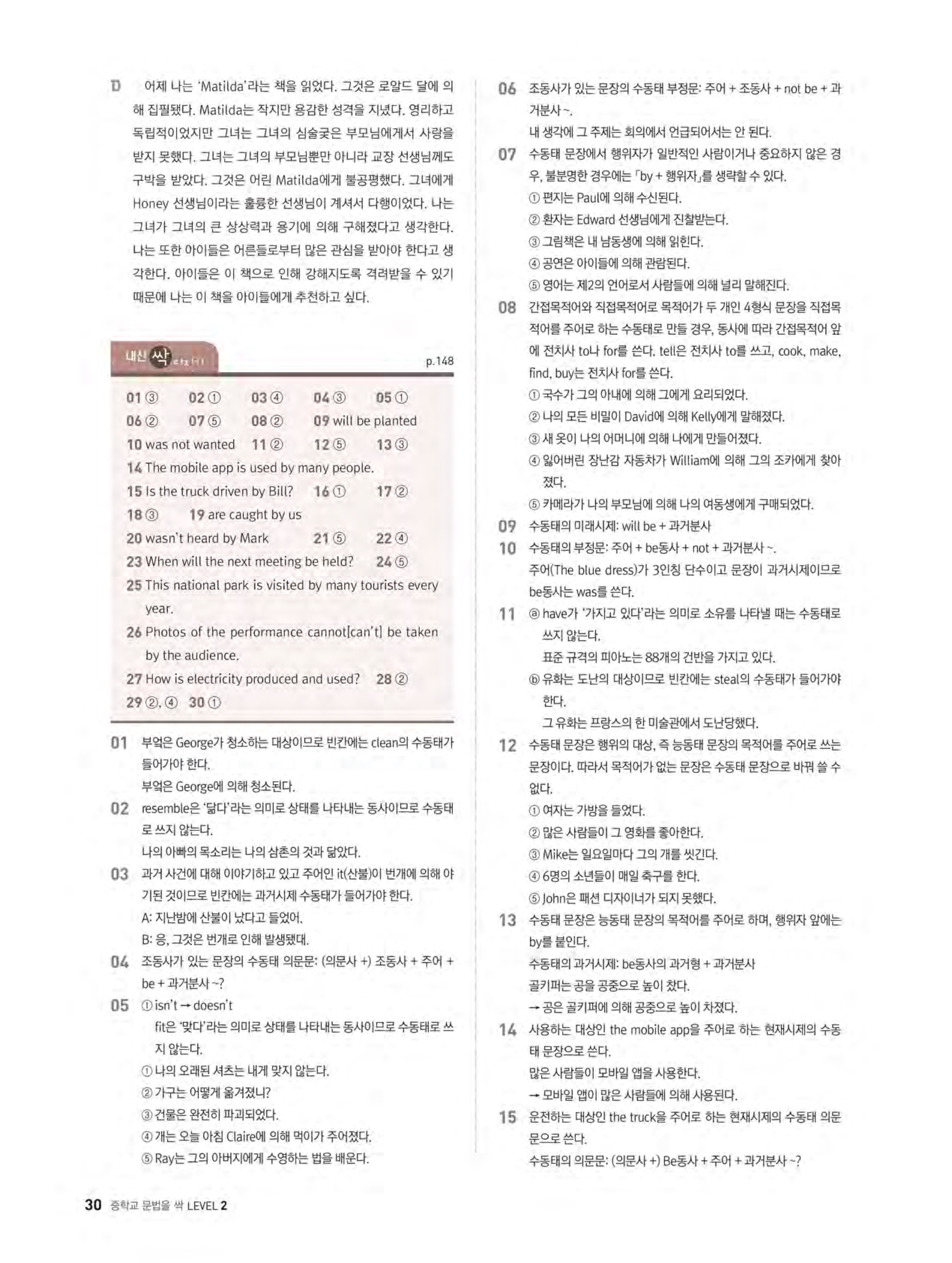 중학교 문법을 싹 레벨2 답지 해설 바로보는 사진답지 빠른답지 모바일최적화