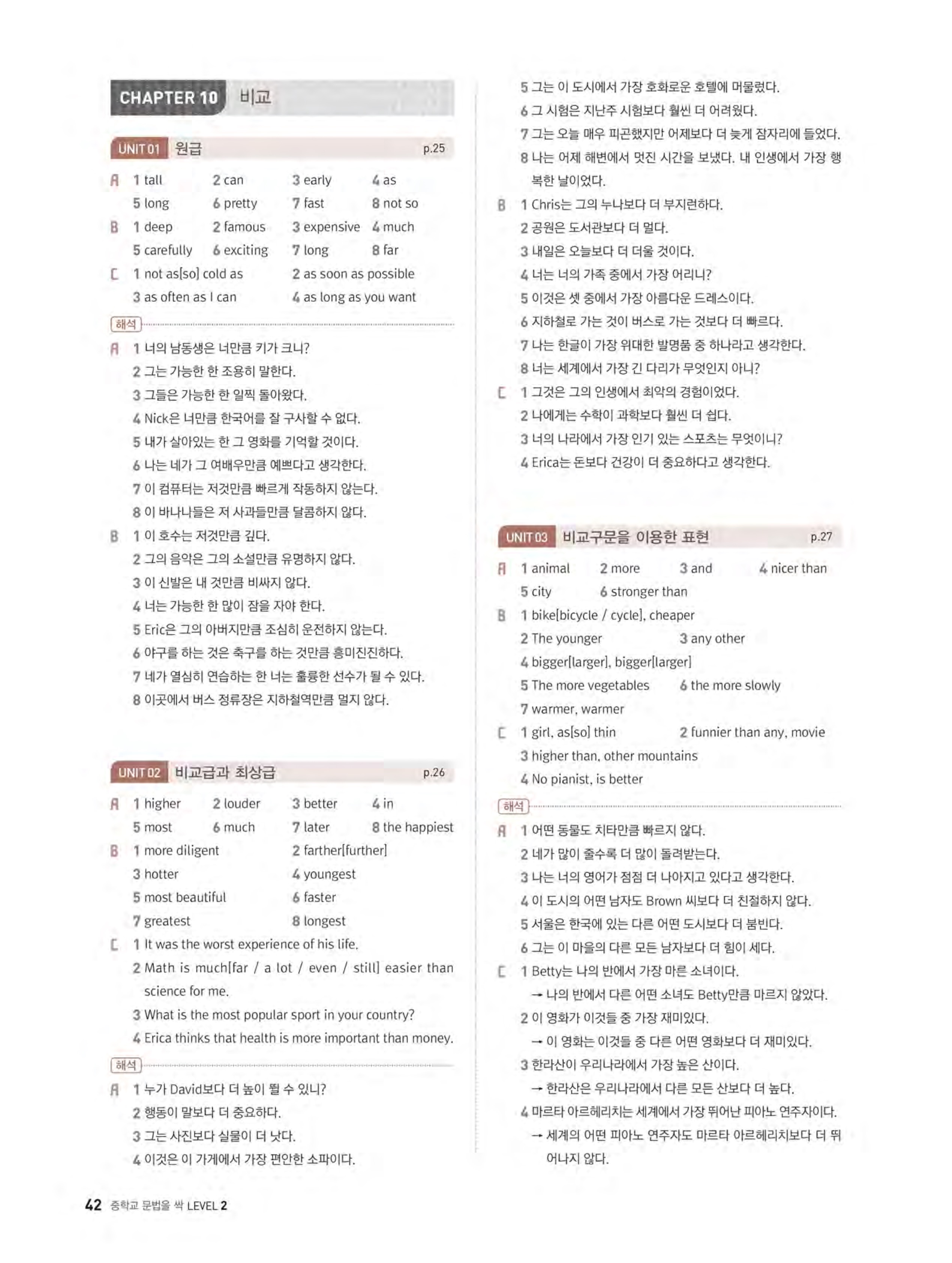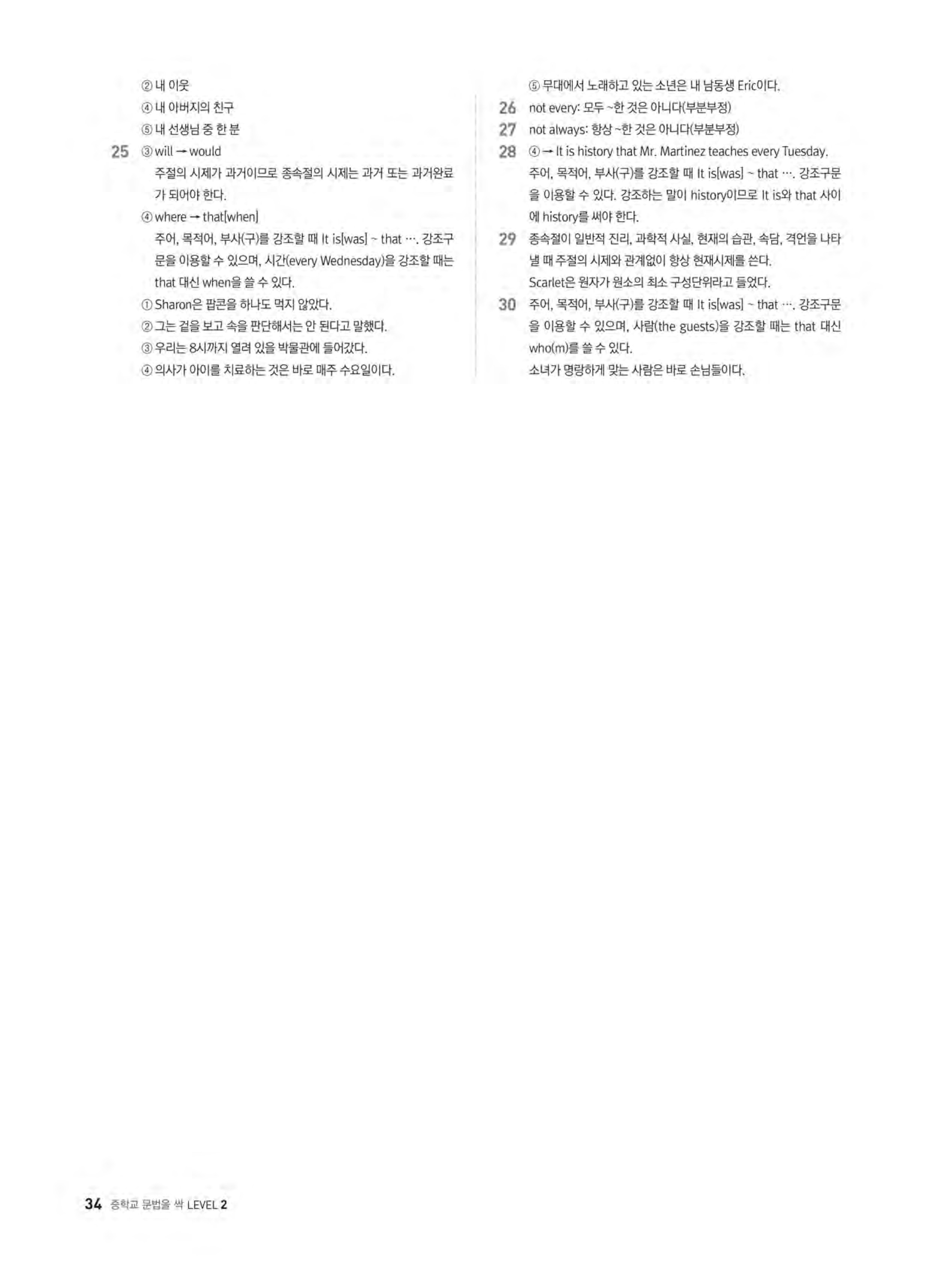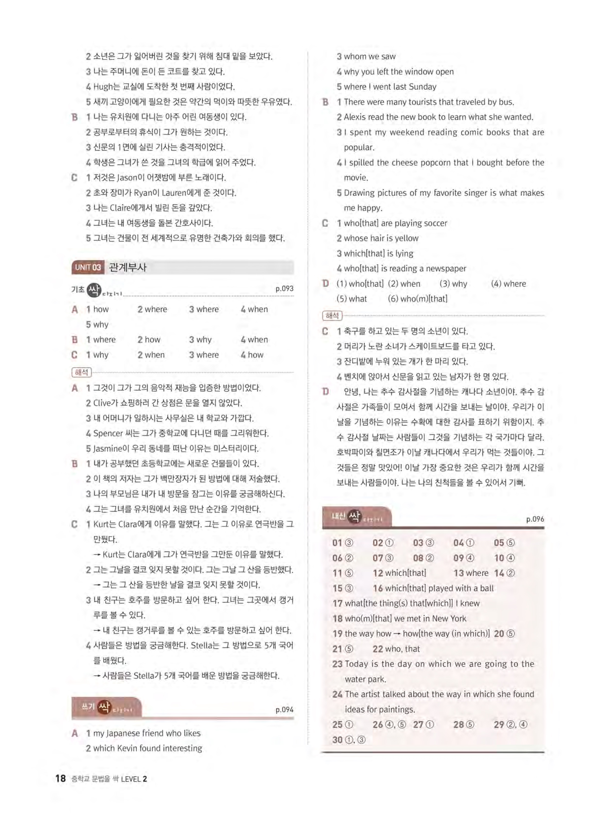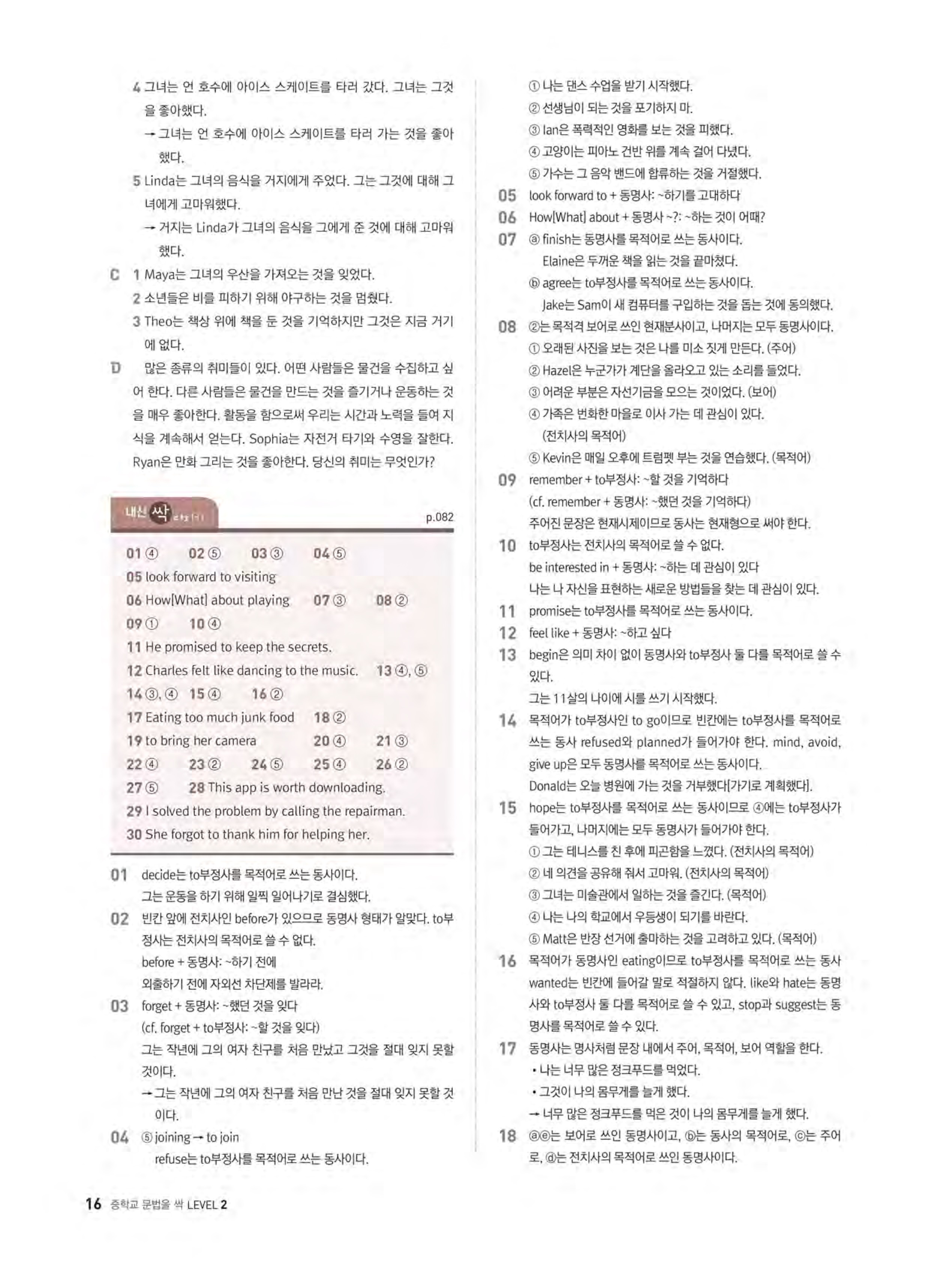 중학교 문법을 싹 레벨2 답지 해설 바로보는 사진답지 빠른답지 모바일최적화