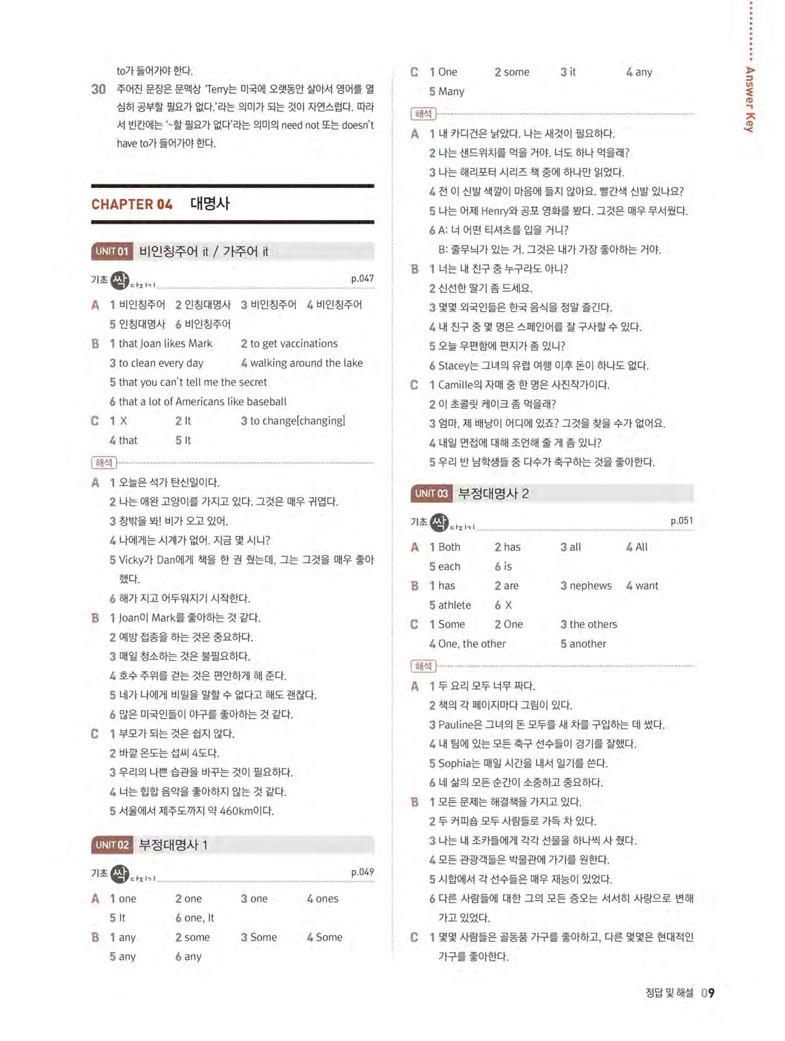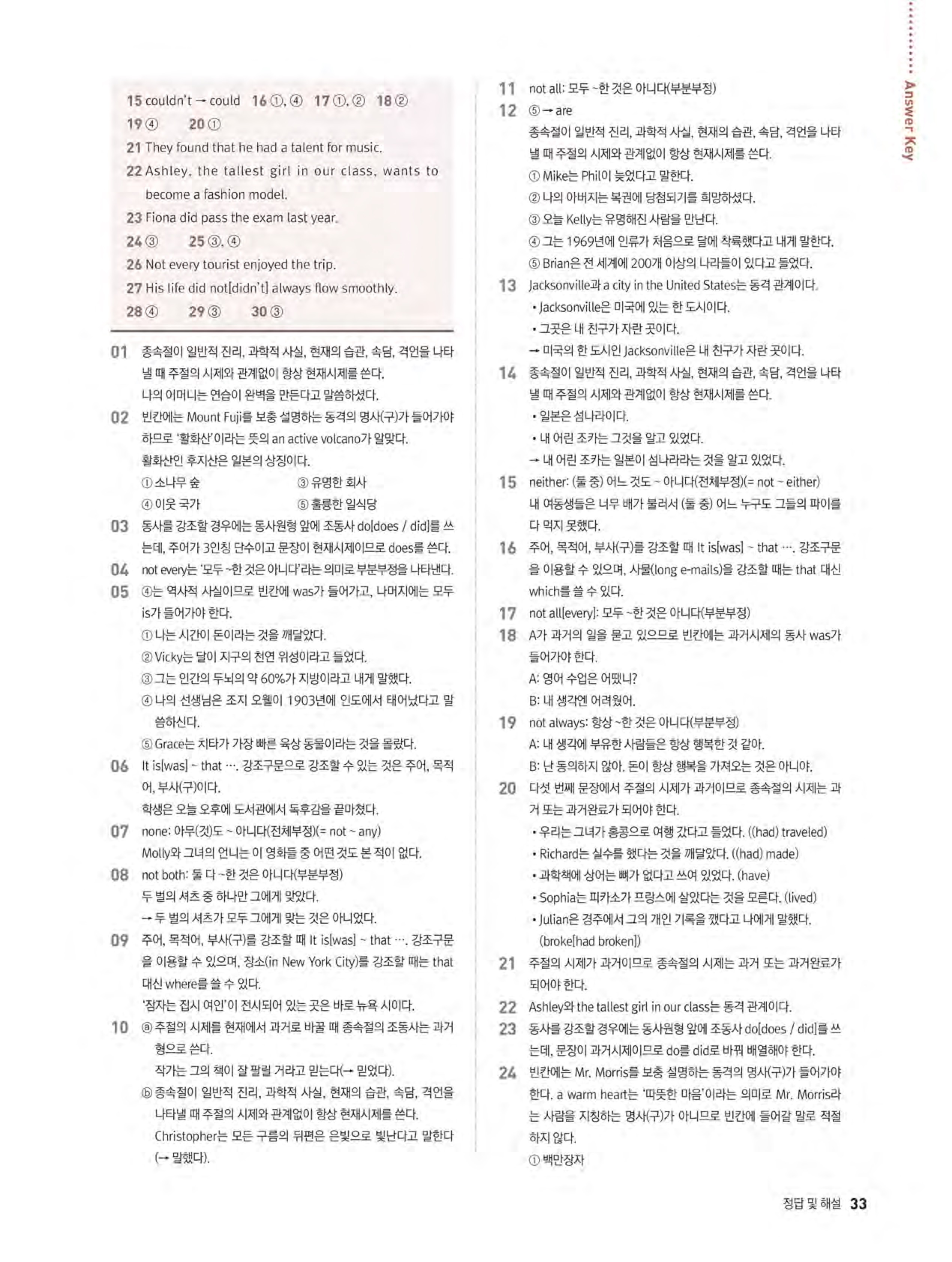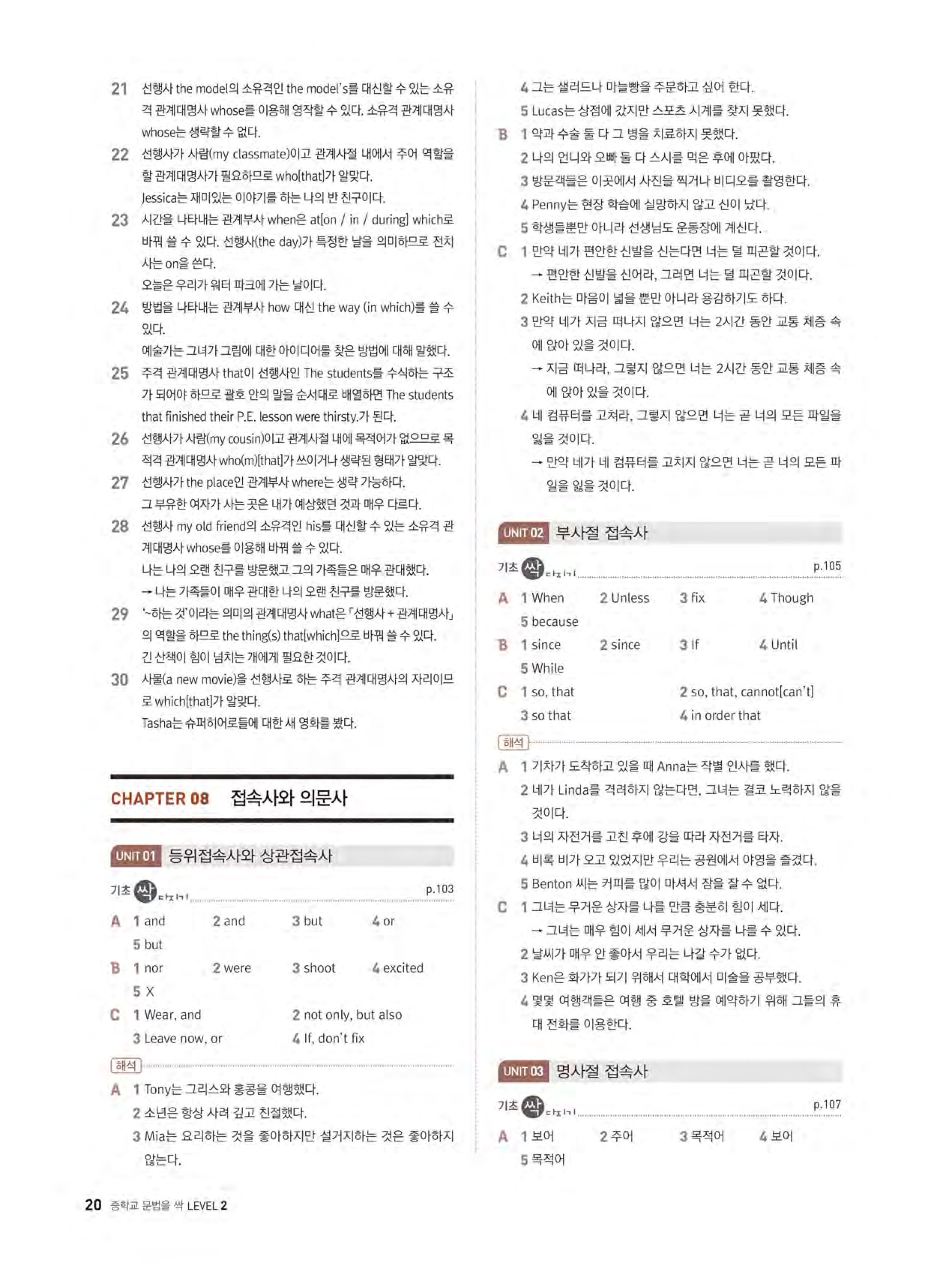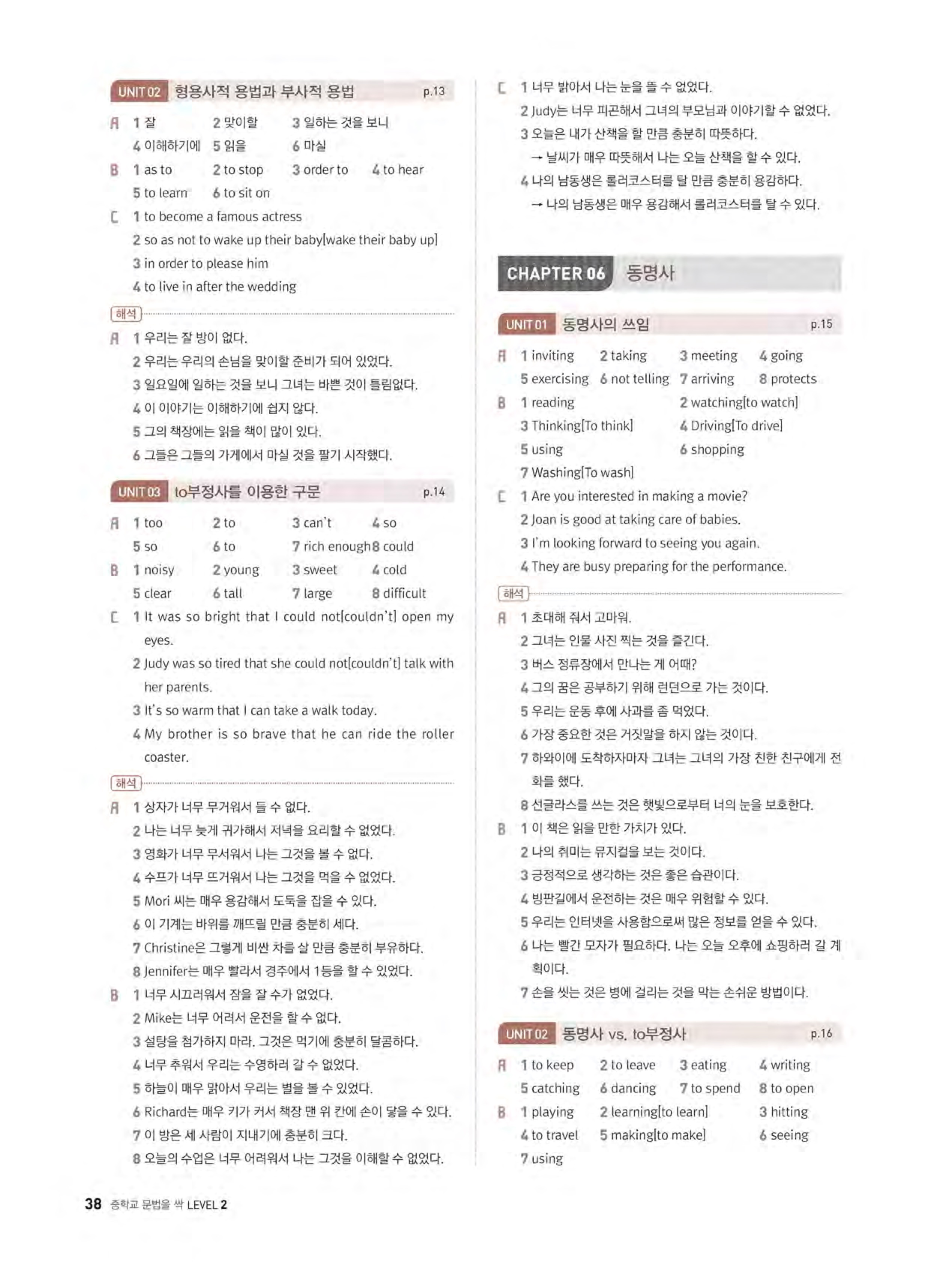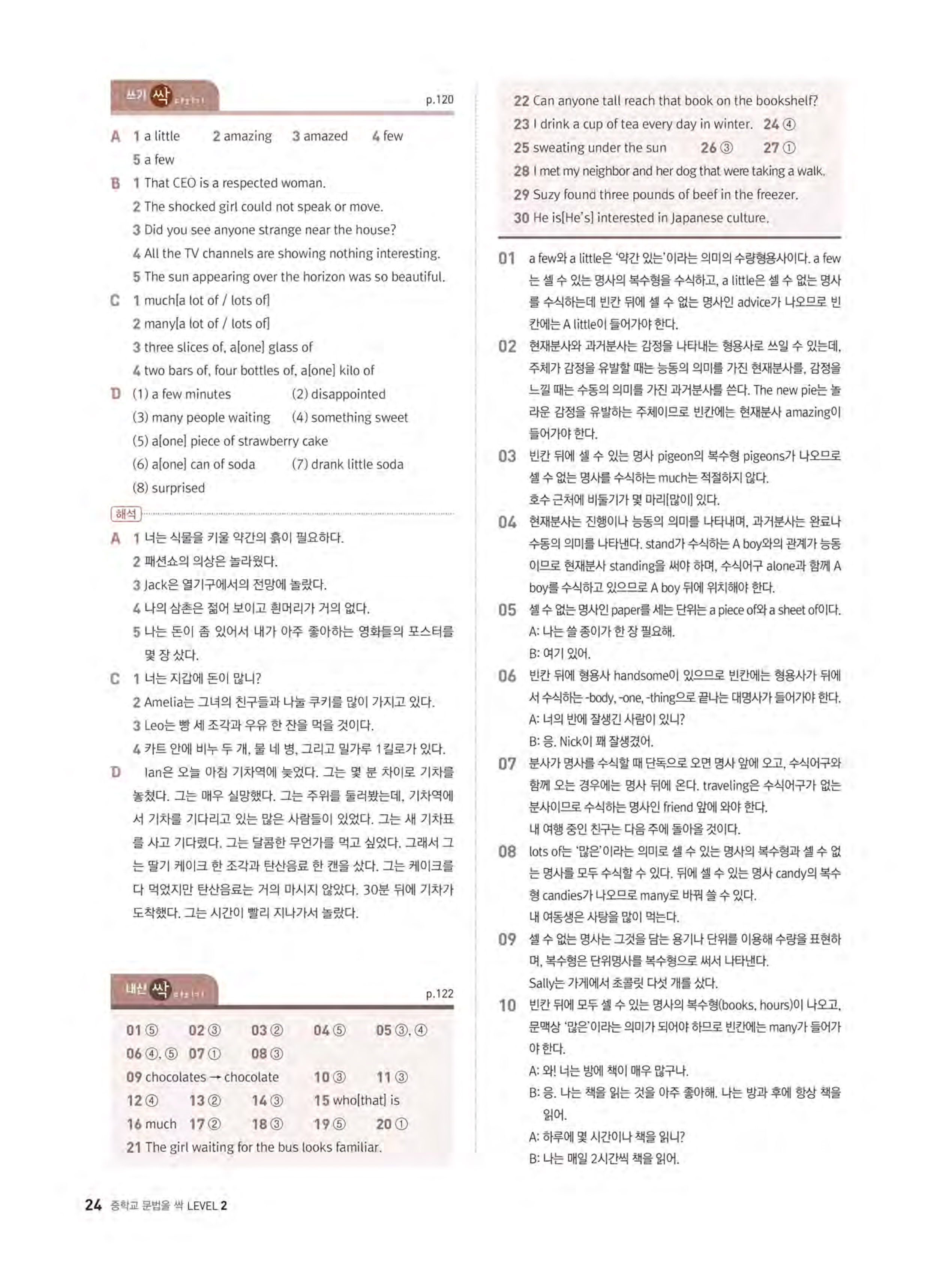 중학교 문법을 싹 레벨2 답지 해설 바로보는 사진답지 빠른답지 모바일최적화