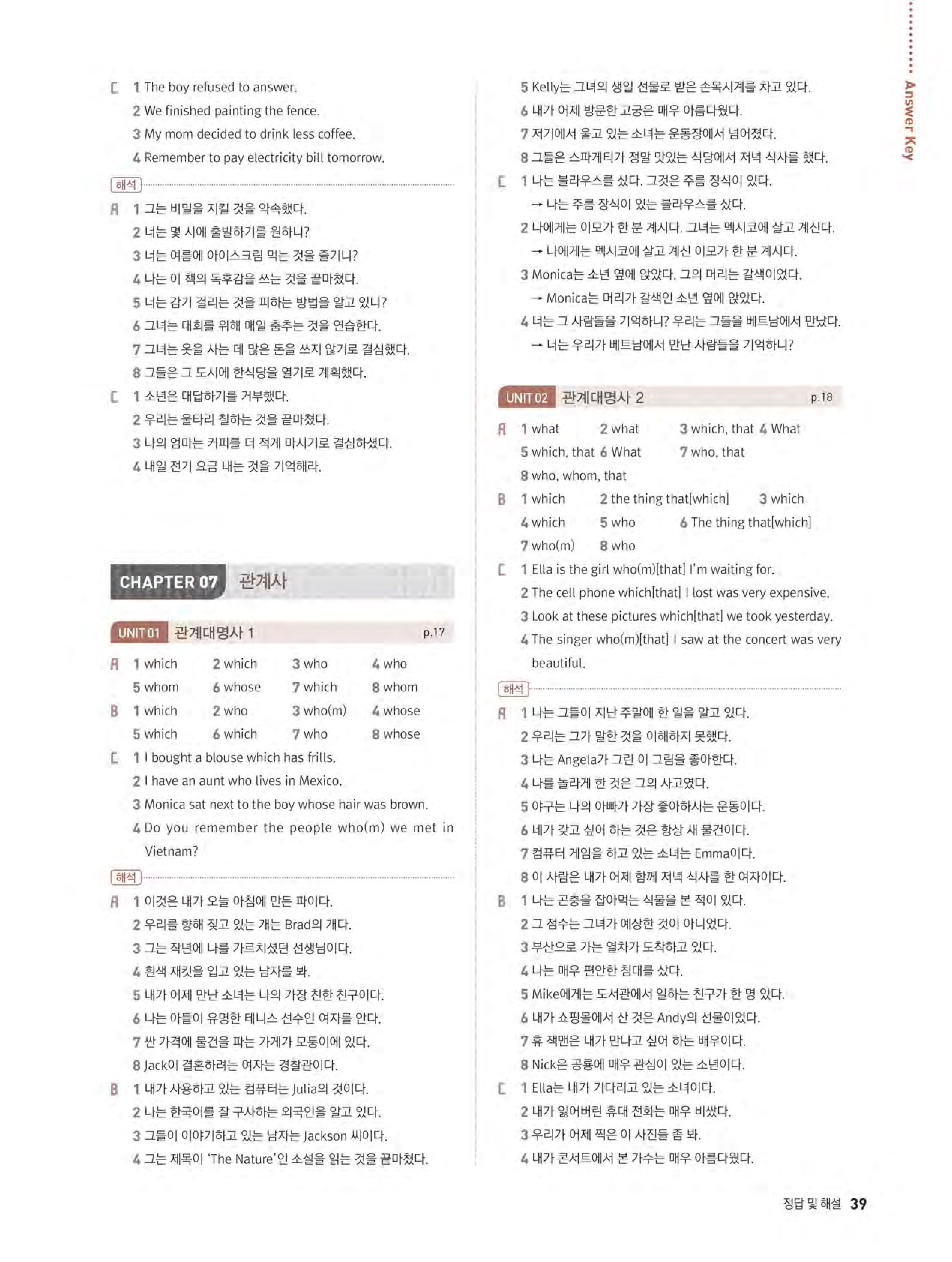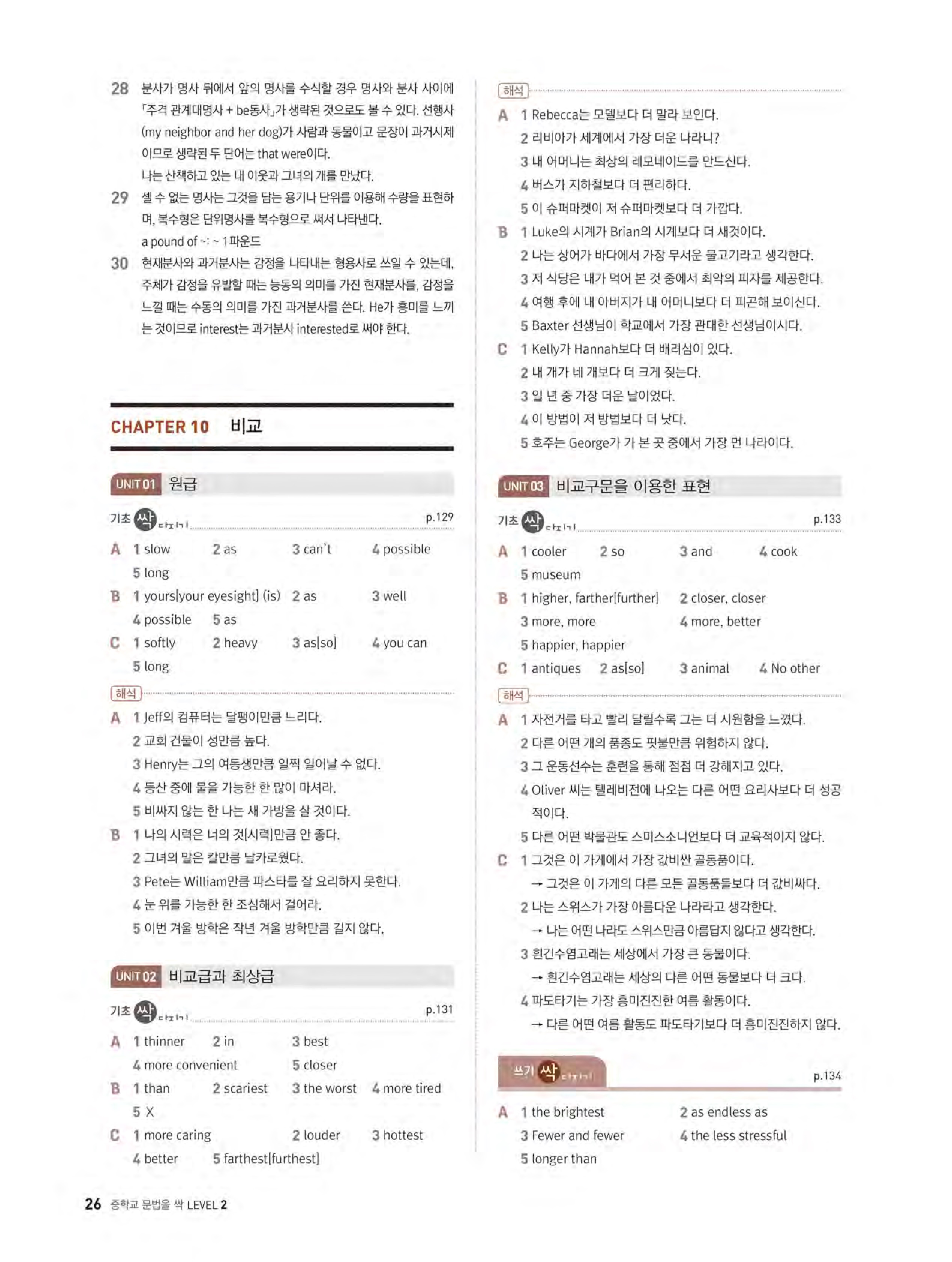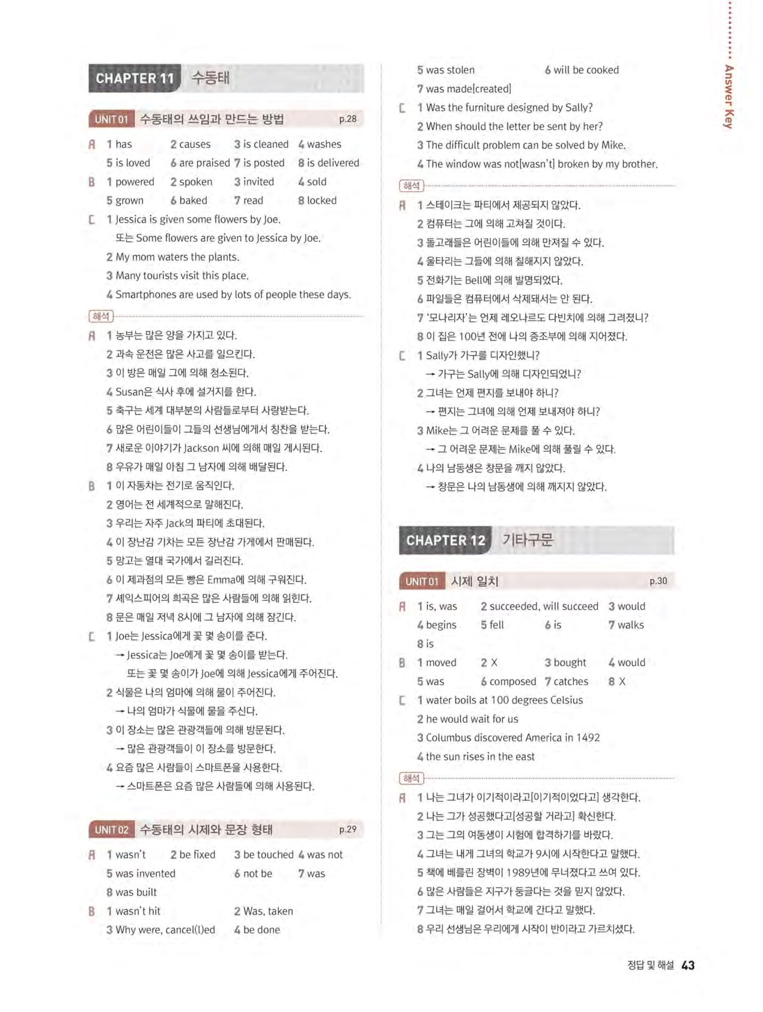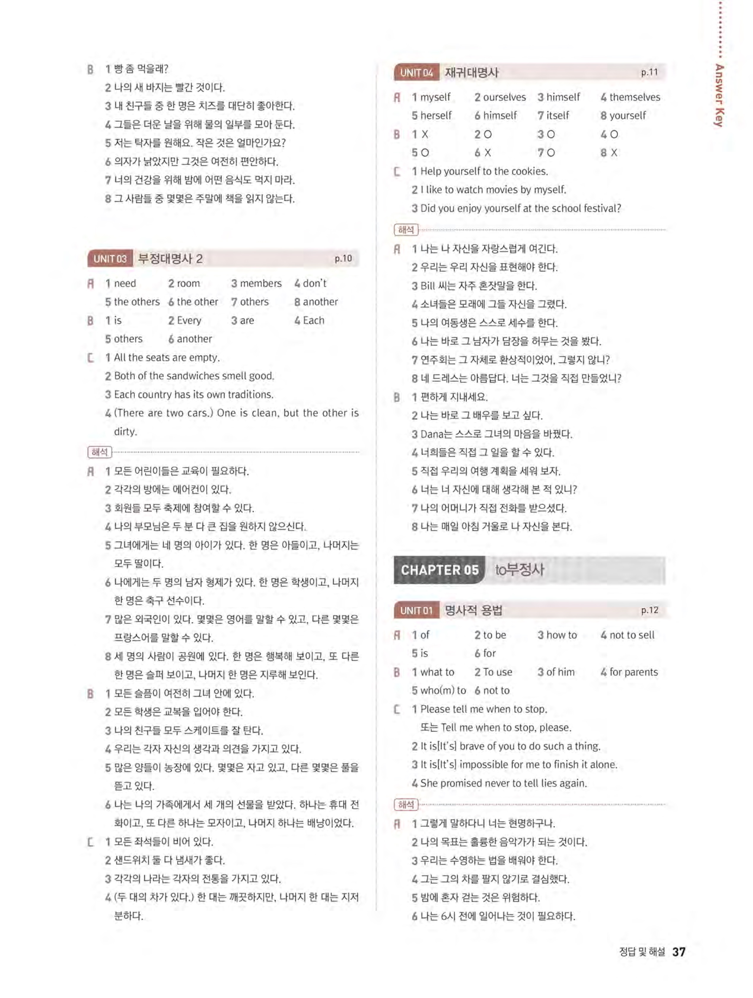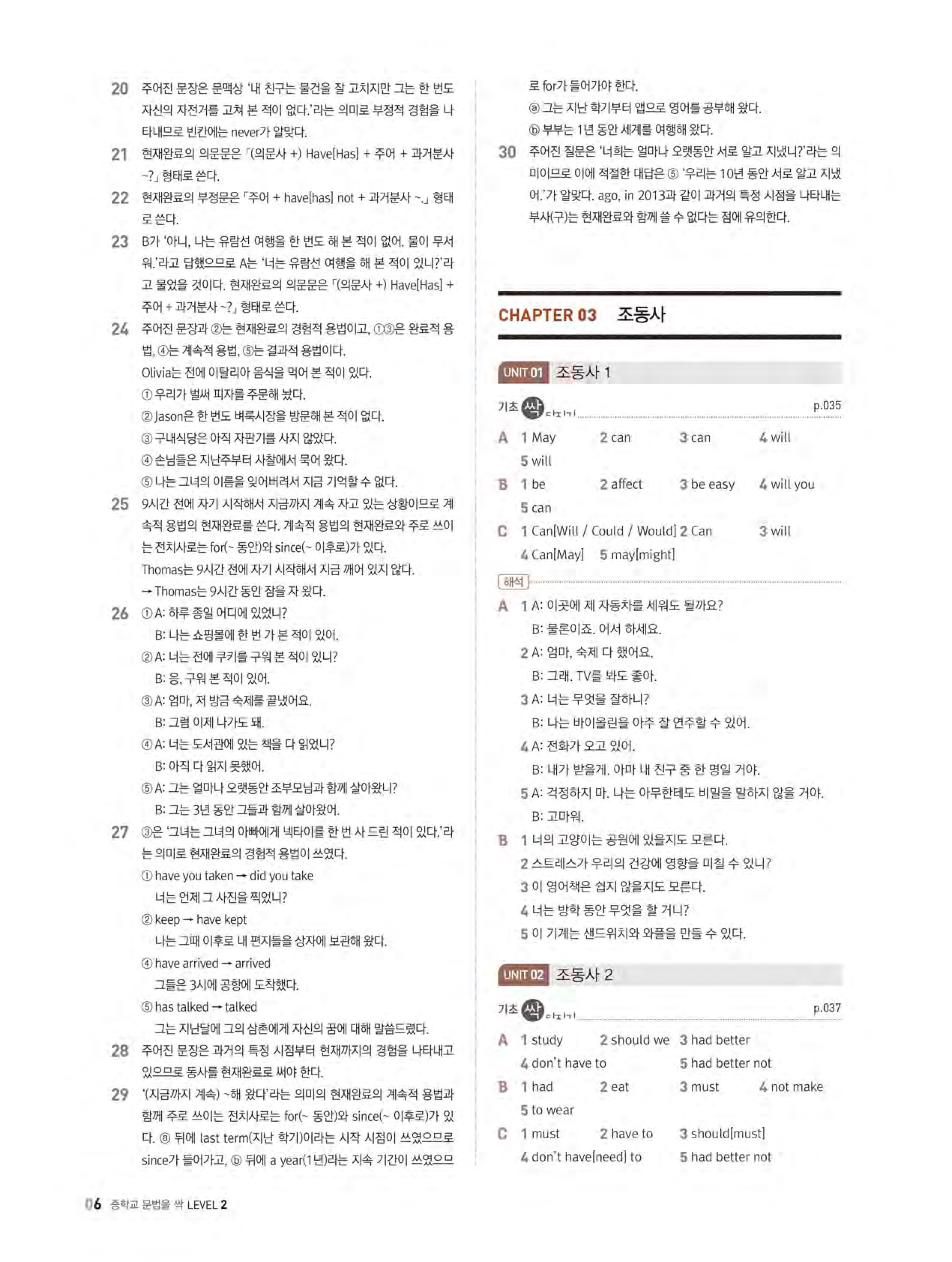 중학교 문법을 싹 레벨2 답지 해설 바로보는 사진답지 빠른답지 모바일최적화
