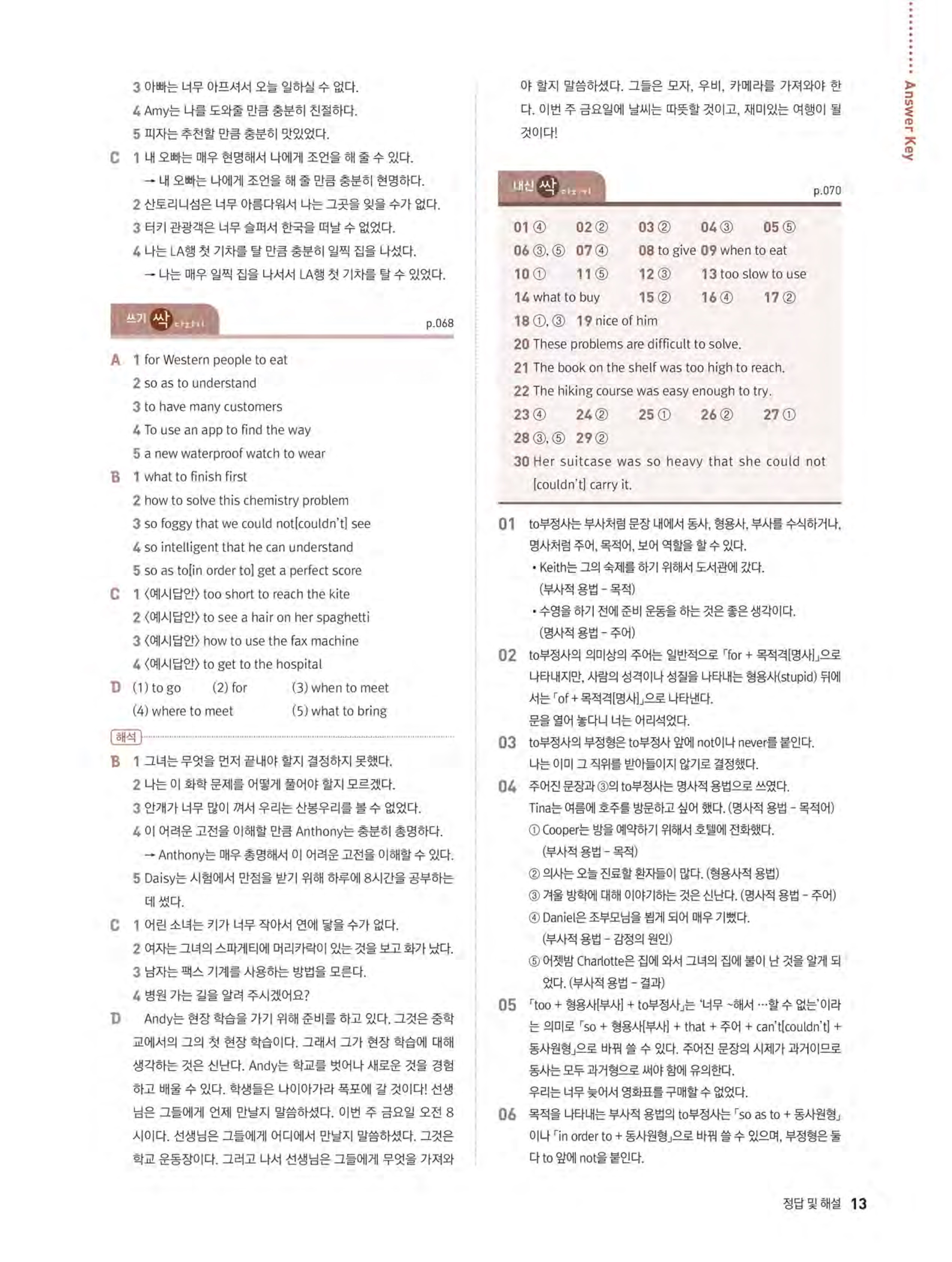 다운로드 받을필요 없이 바로 볼수 있는 모바일에 최적화된 답지 입니다