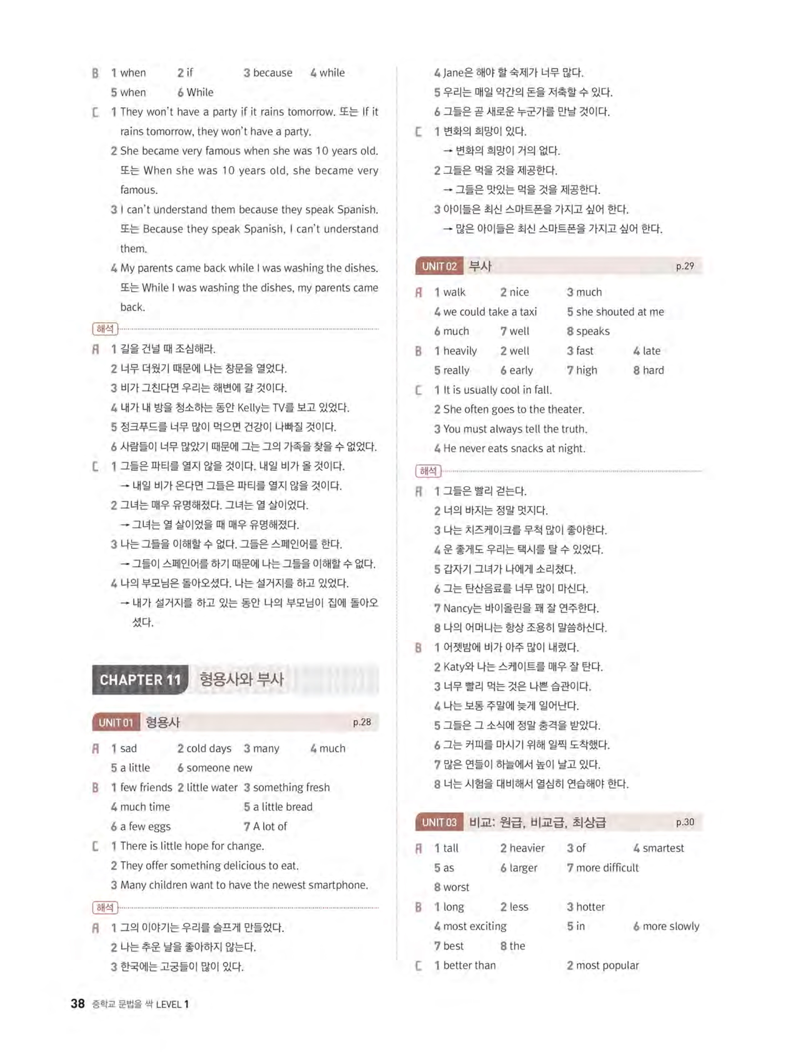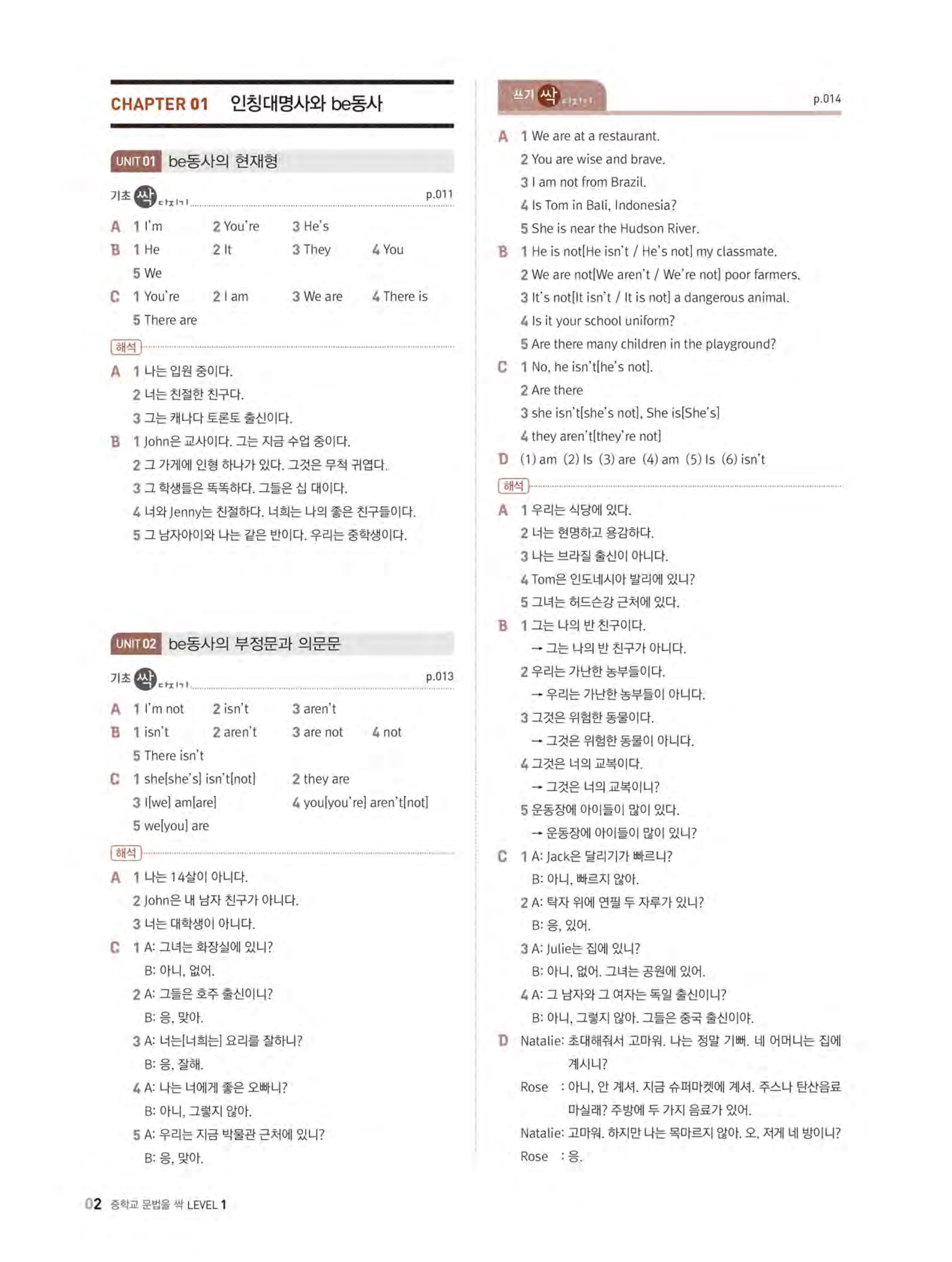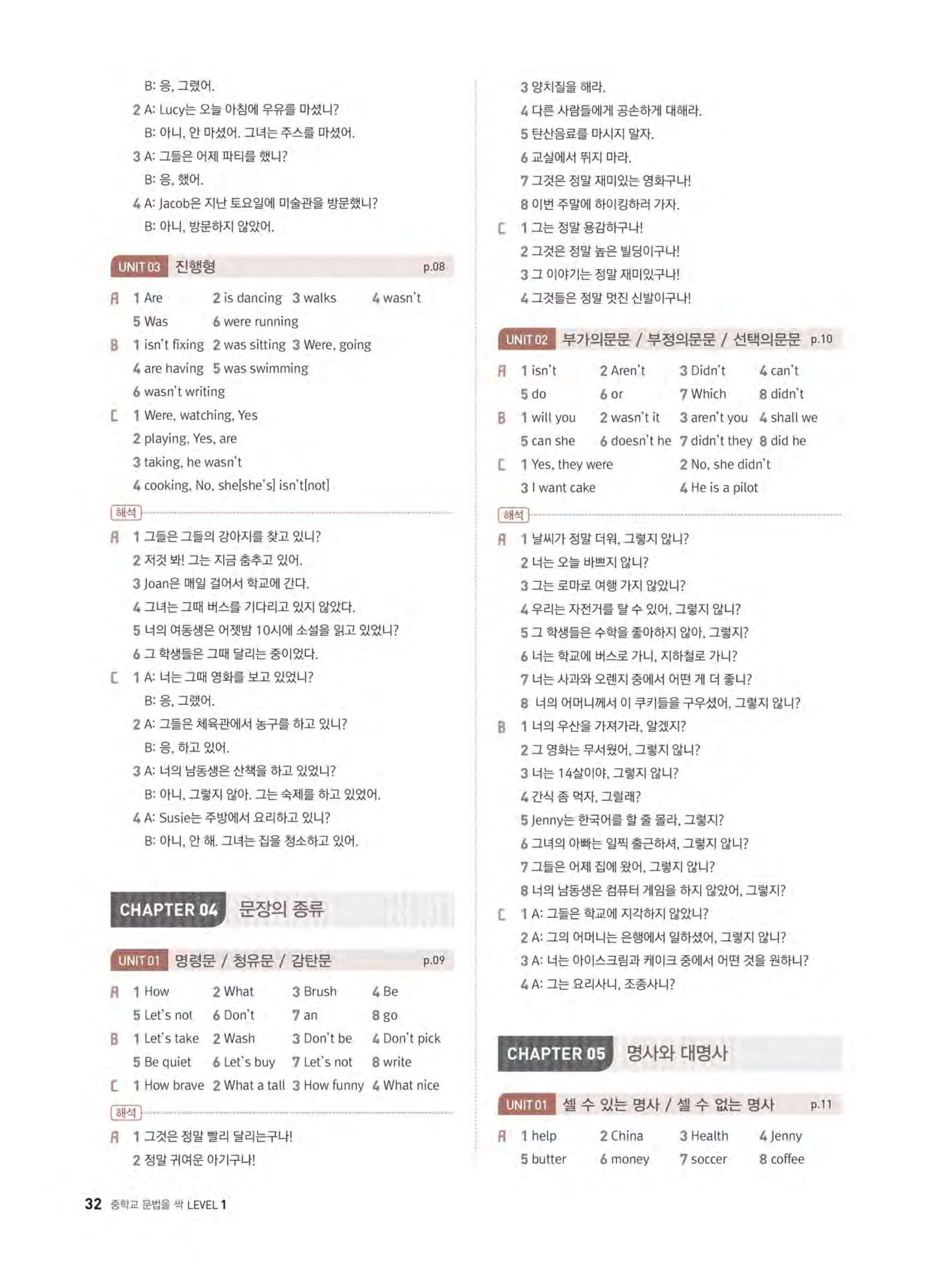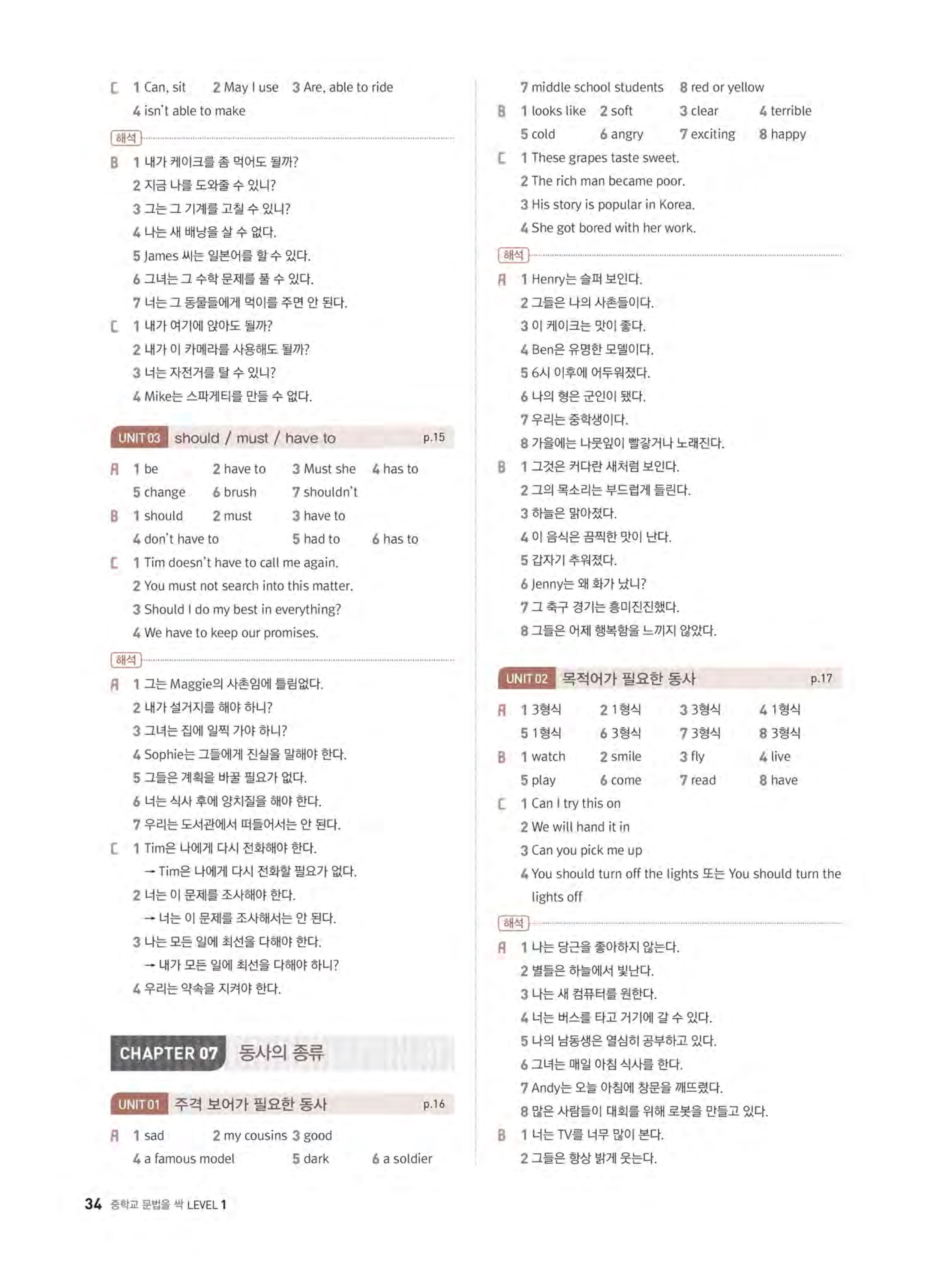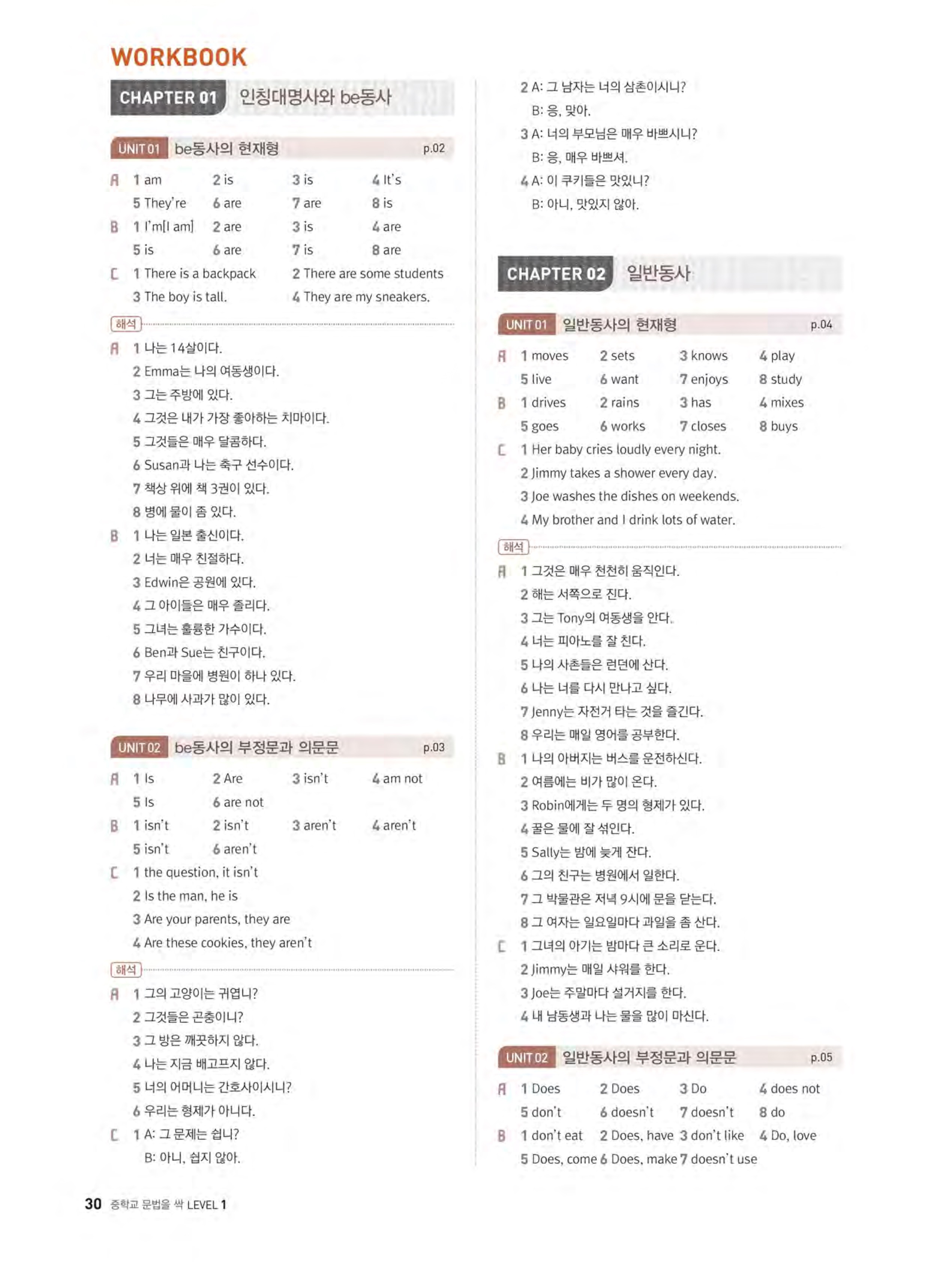 중학교 문법을 싹 레벨1 답지 해설 바로보는 사진답지 빠른답지 모바일최적화