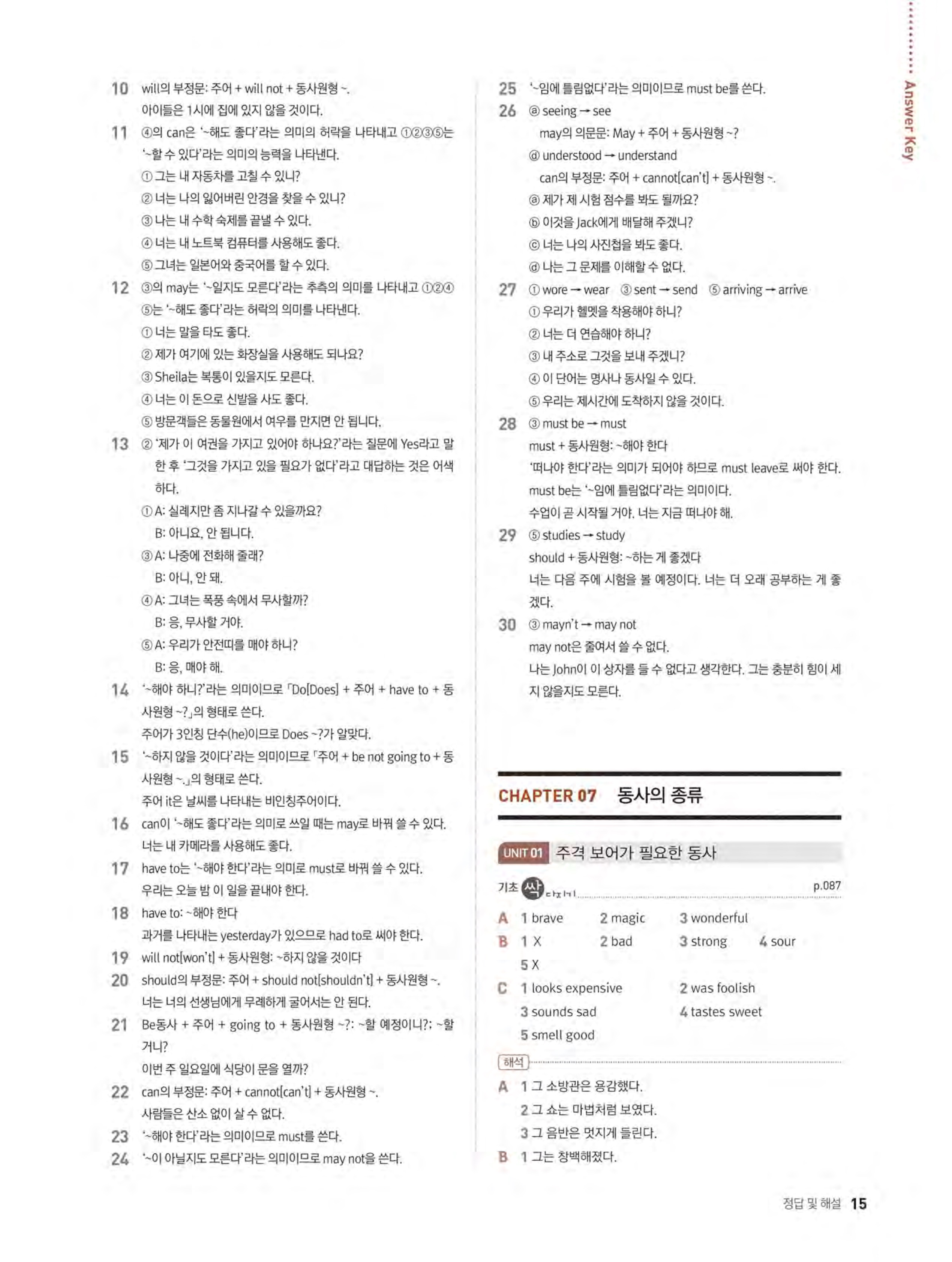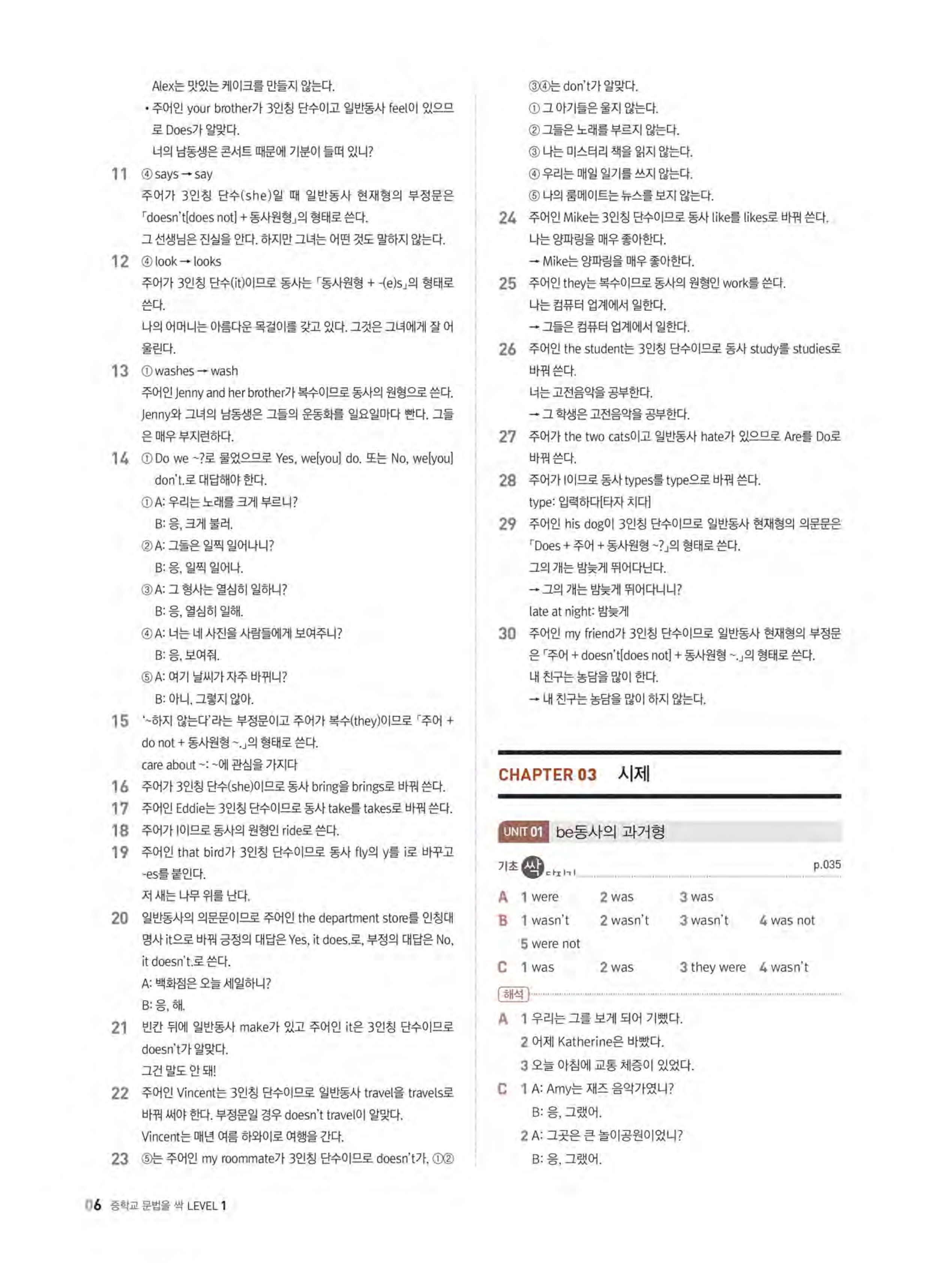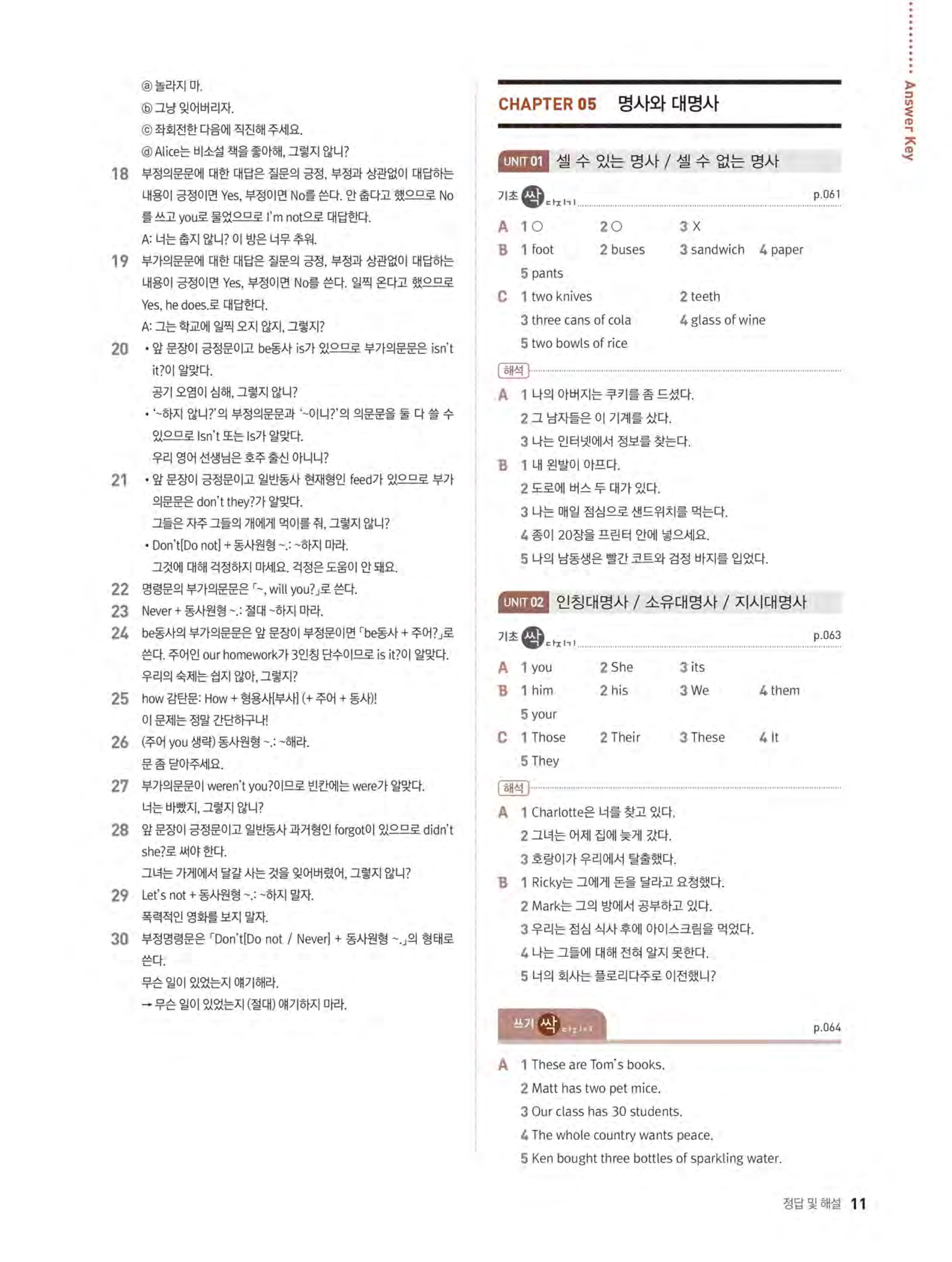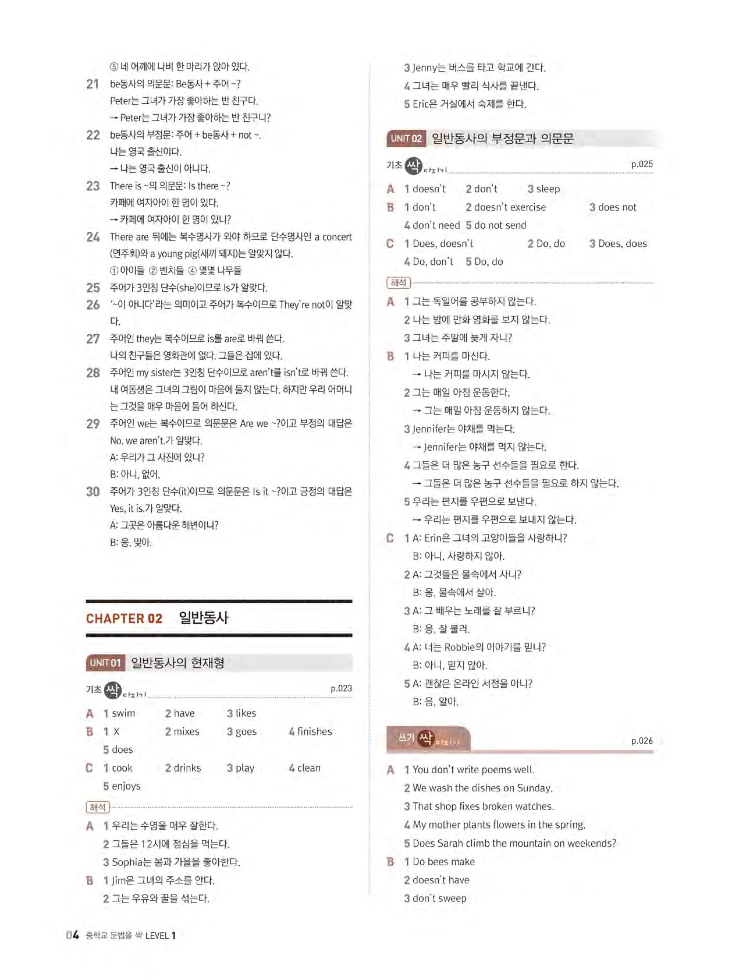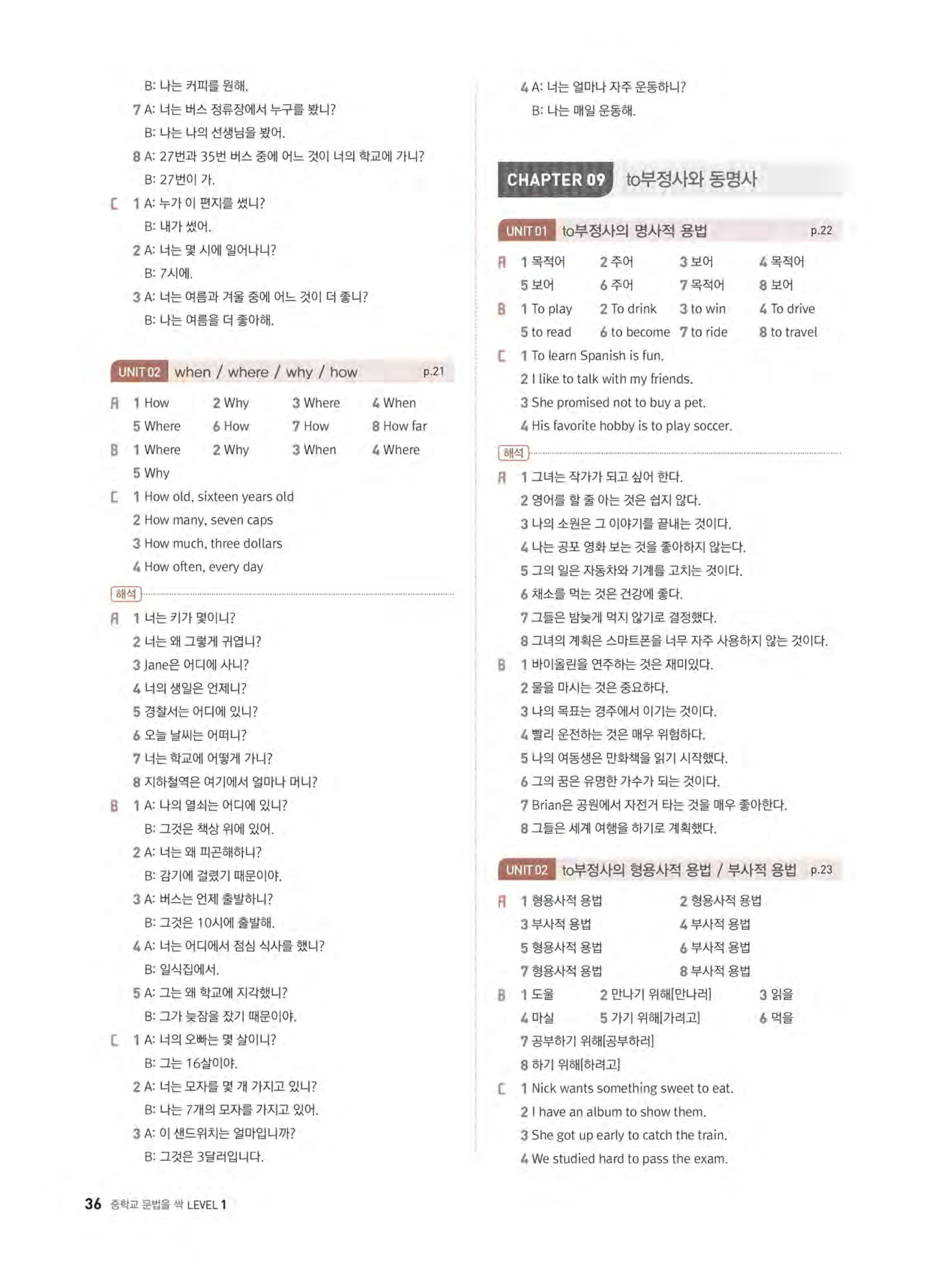 중학교 문법을 싹 레벨1 답지 해설 바로보는 사진답지 빠른답지 모바일최적화