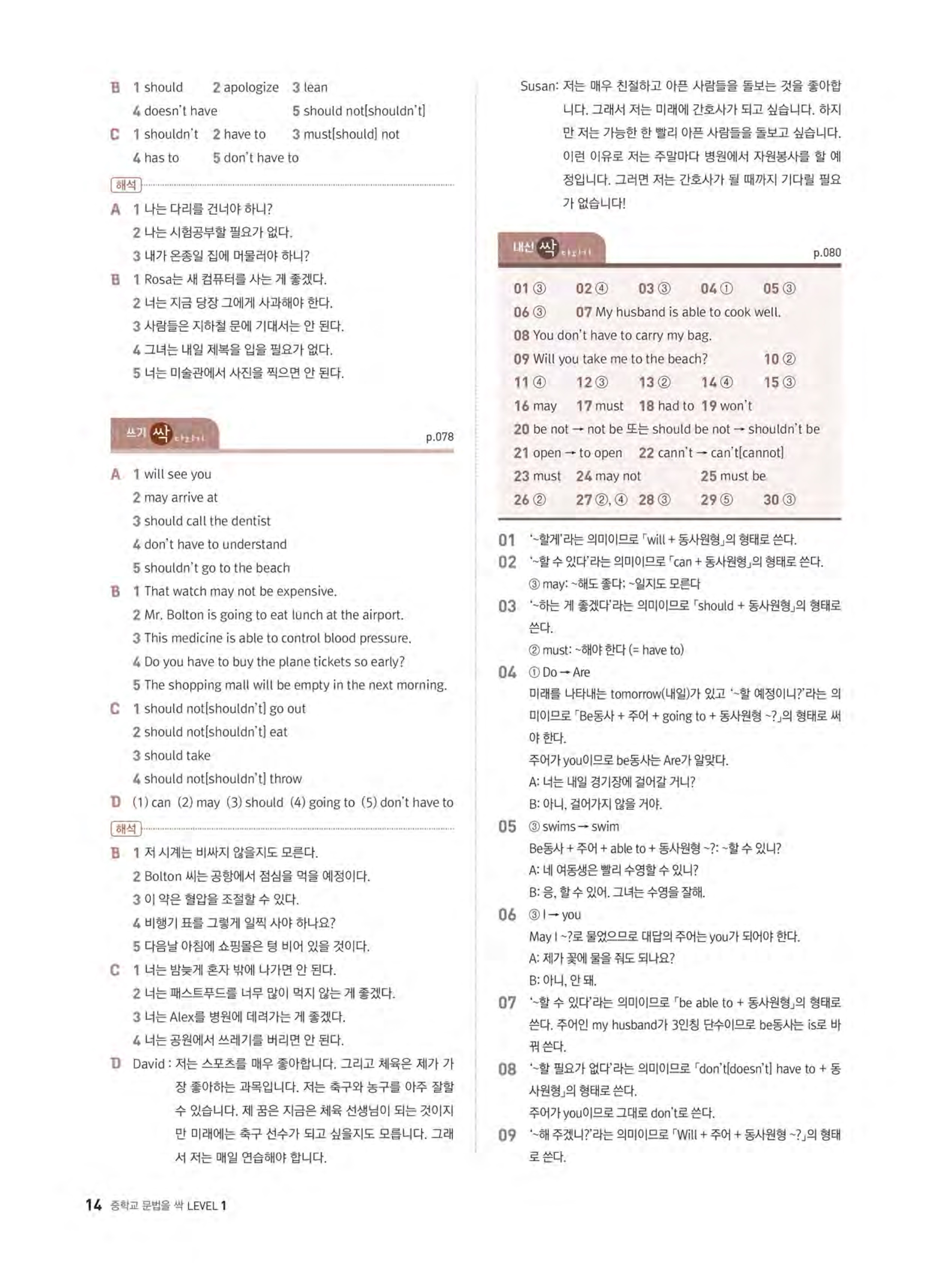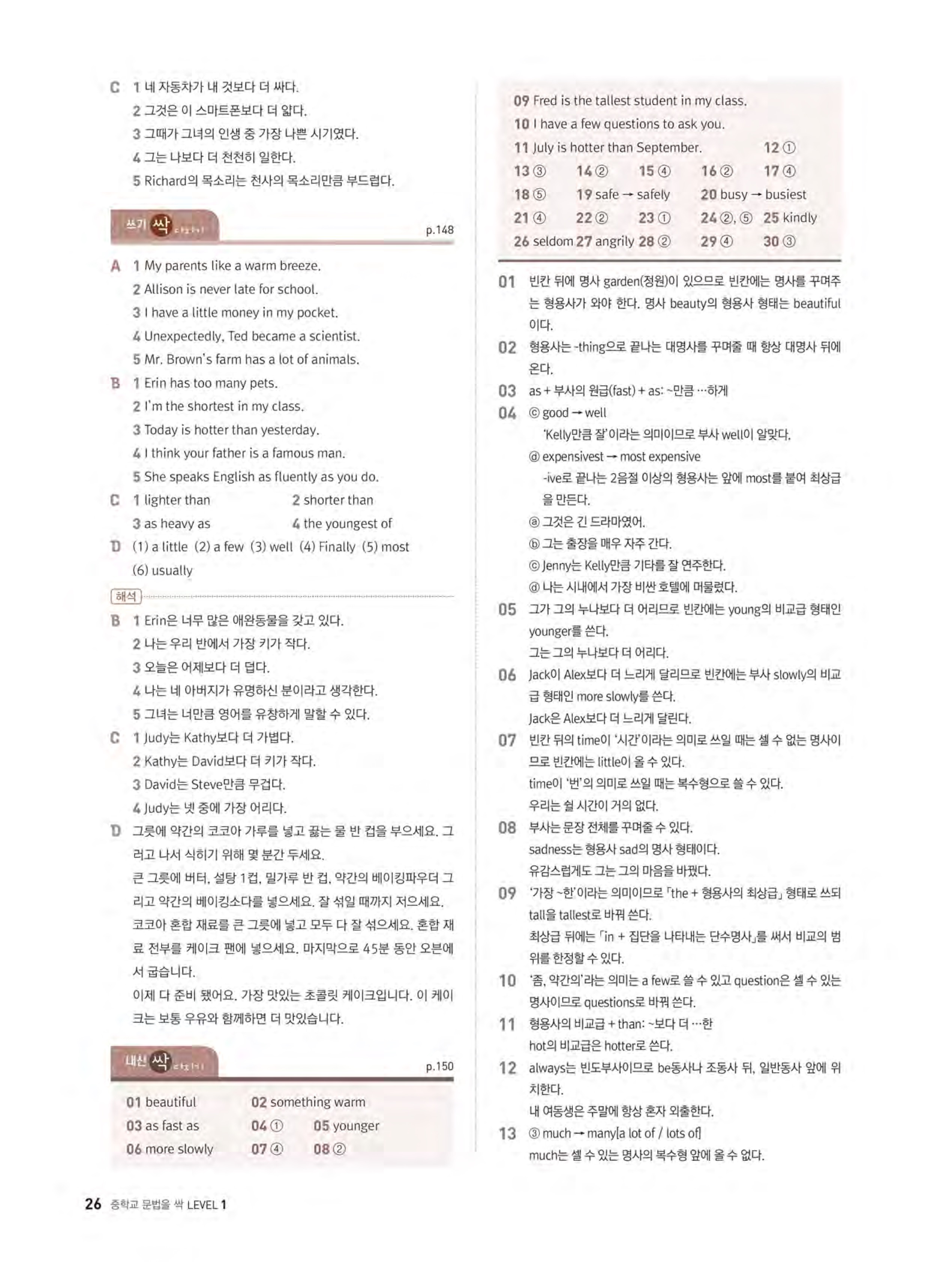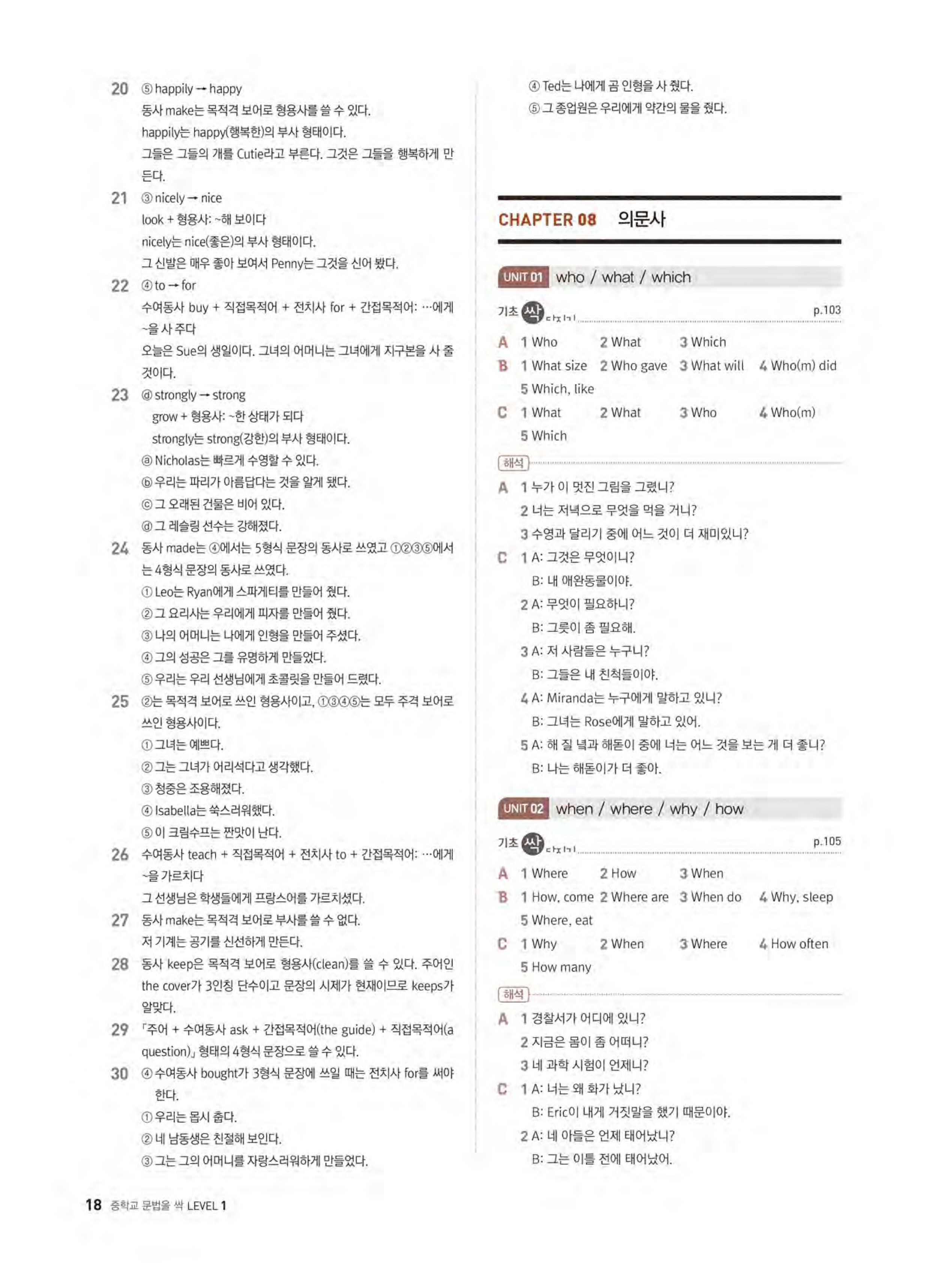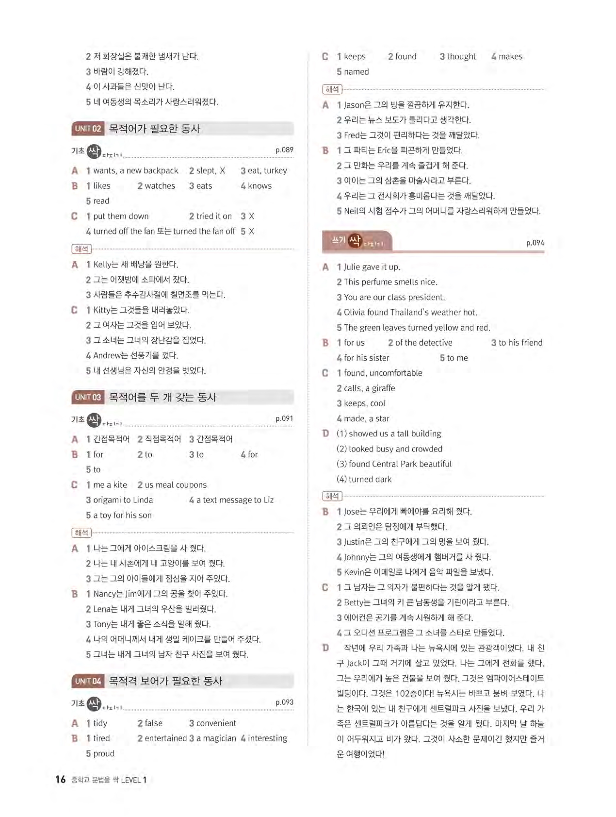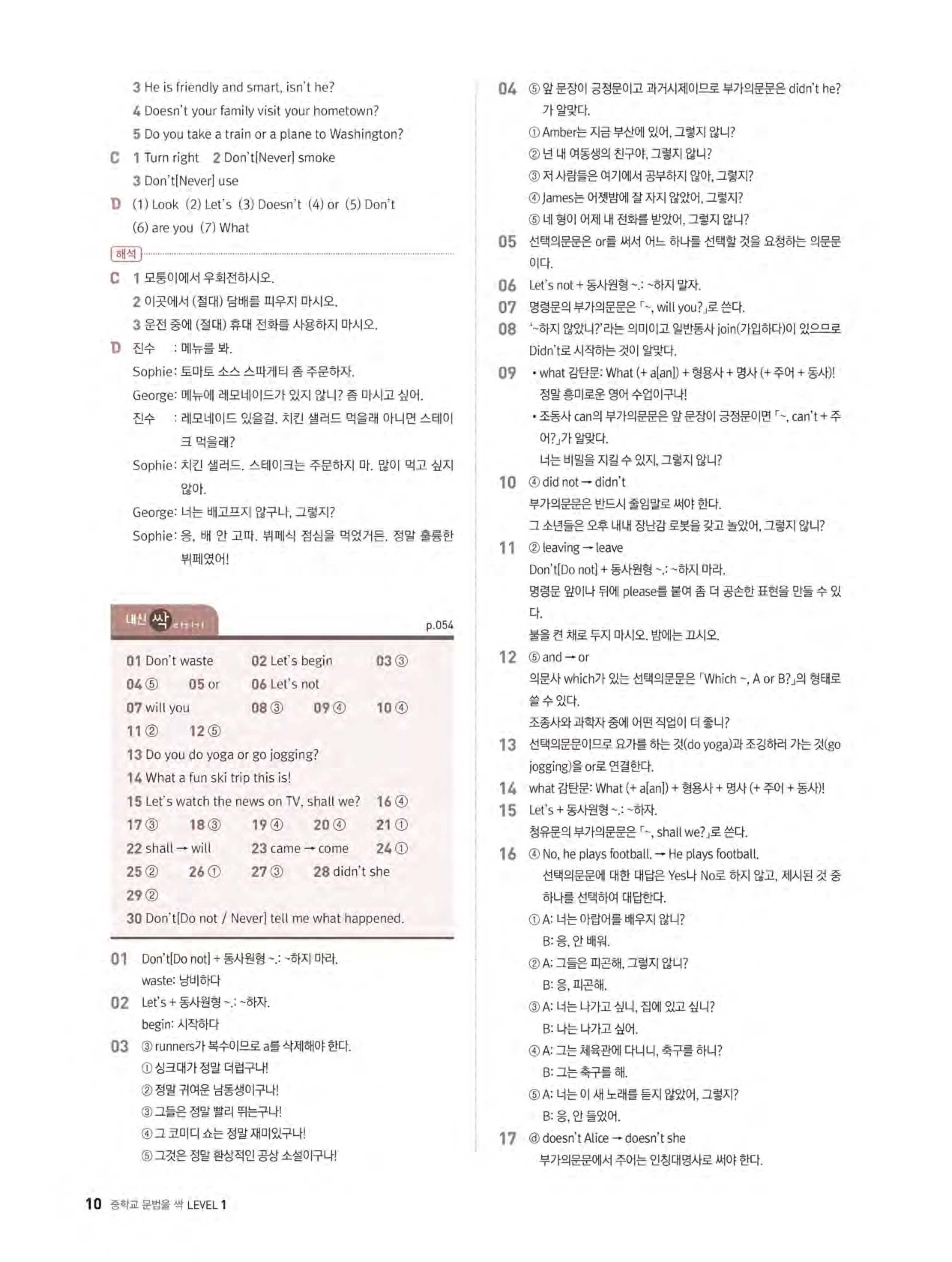 중학교 문법을 싹 레벨1 답지 해설 바로보는 사진답지 빠른답지 모바일최적화